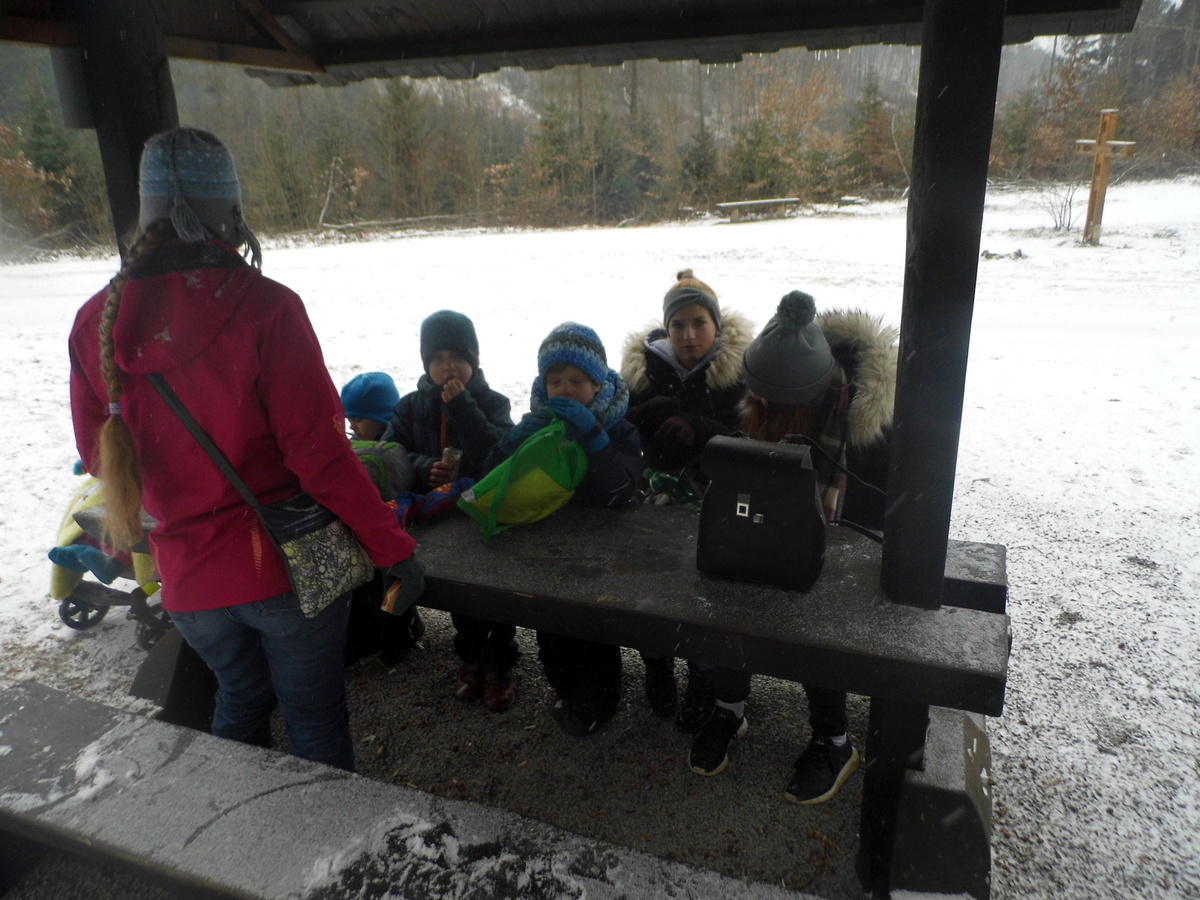 Dnešní den začal jako každá běžná sobota, no vlastně, běžná sobota to nebyla a vlastně jsme si museli asi i přivstat, ale čekal nás dneska výlet, tak to za trochu toho vstávání a oblékání přece stojí... Sešli jsme se na konečné trolejbusu chvilku před odjezdem trolejbusu, bylo nás jen pár. Chcete vědět kdo? Tak já vám to povím. Přišel Matýsek a Matýsek a Ráďa, přidal se k nám ještě Maky a Sádra a Knihomol a nesměla chybět Nakana a malá Markétka (té by bylo doma bez rodičů smutno). Po příjezdu trolejbusu jsme nasedli a zamávali rodičům a vydali se vstříc lesu, sněhu a cestě. Museli jsme přestoupit, ale to jsme krásně stihli a autobus nás vysadil až pod Velkou Klajdovkou. Tady na nás začal padat sníh, ale nejsme z cukru, tak hurá do lesa. Les Nakana vybrala téměř listnatý, tak nás zasypával sníh i nadále, ale zase jsme víc viděli a různé stromy a značky a taky, kde se můžeme sklouznout na zledovatělém sněhu, nebo kde je více sněhu. Cesta byla pohodlná a my si užívali pohyb v přírodě. Občas jsme kopli do nějakého kamínku nebo kousku sněhu, zkontrolovali jsme na mapě, jestli jdeme dobře a taky bylo potřeba uvolnit místo v batůžku a odlehčit zádům, kdo by se přece tahal s tolika jídlem zase až domů, že jo? Na druhé svačící zastávce jsme nechali i pár lojových koulí, které jsme v prosinci vyrobili. Můžeme mít tedy i dobrý pocit, že pomůžeme pár ptáčkům lépe najít potravu pod sněhem a oni nám na jaře třeba zazpívají :-) Viděli jsme Resslův pomník, studánku i s tekoucí vodou a to nejlepší nás čekalo na závěr, vláček, do kterého jsme nasedli v Bílovicích nad Svitavou. Cesta nám uběhla hodně rychle. Vláček na nás byl hodný a odvezl nás do Brna, kde jsme přesedli na trolejbus, který nás odvezl zpátky do Šlapanic.