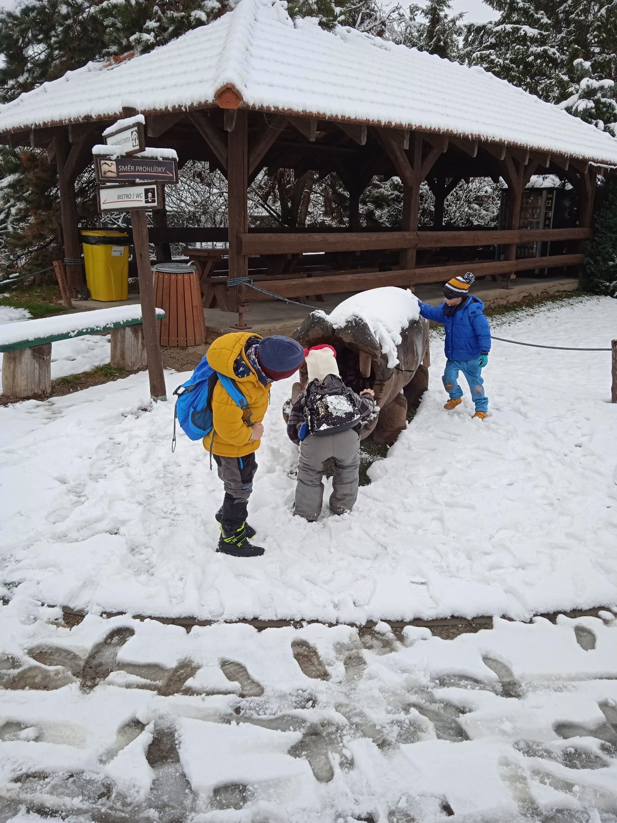 Parkoviště před ZOO zelo prázdnotou a já bála, že bude zavřeno. Naštěstí bylo otevřeno a navíc v ZOO nikdo nebyl. Cesty byly zasněžené a my mohli dělat první stopy. ZOO bylo celé jen naše.