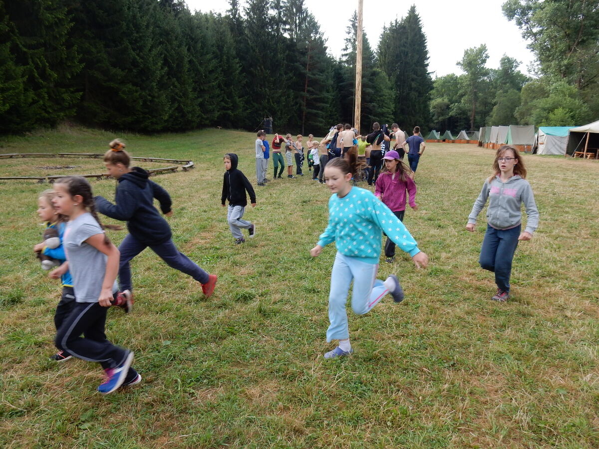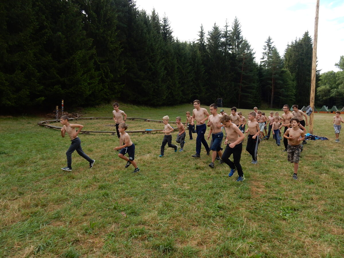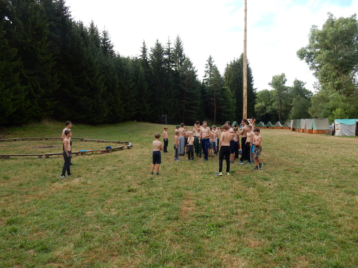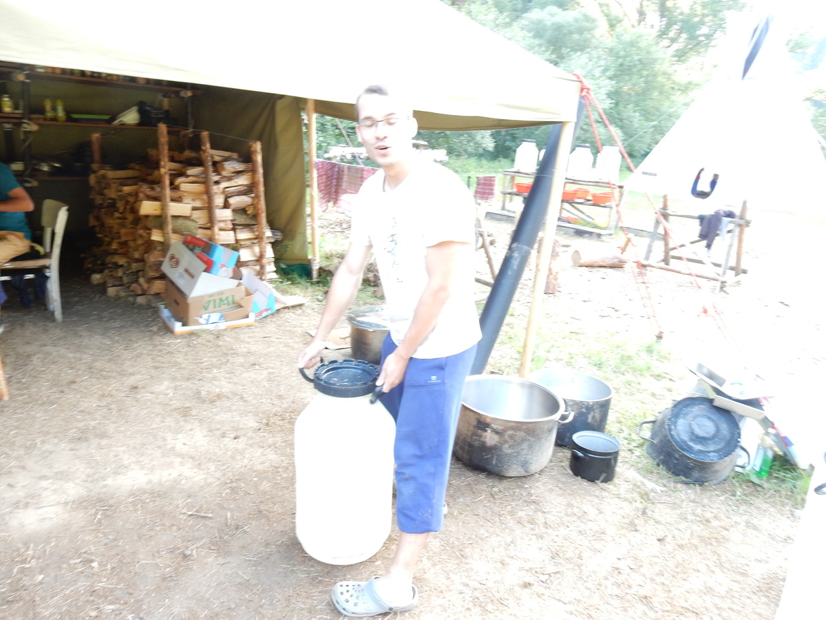 V pondělí ráno nastala v táboře naprosto nečekaná situace. Došly úplně všechny potraviny! Naštěstí nedaleko tábora vykvetl strom koláčovník a pod ním byl nalezen hrnec kakaa. Parádní snídaně v trávě... Dopoledne nás navštívila hygiena, proběhly etapy a odpoledne se mohli táborníci vydat na koupaliště. Večer se zpívalo u ohně a v noci pak náš tábor přepadli další přepadači, tentokráte ovšem bez dýmovnic. Jura