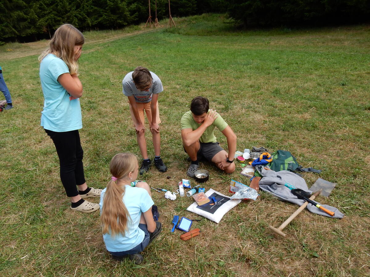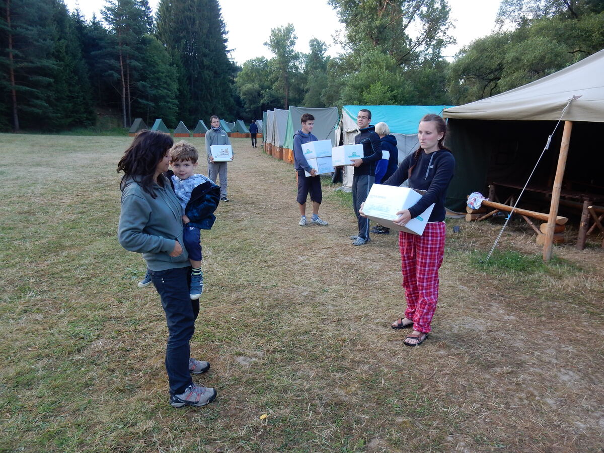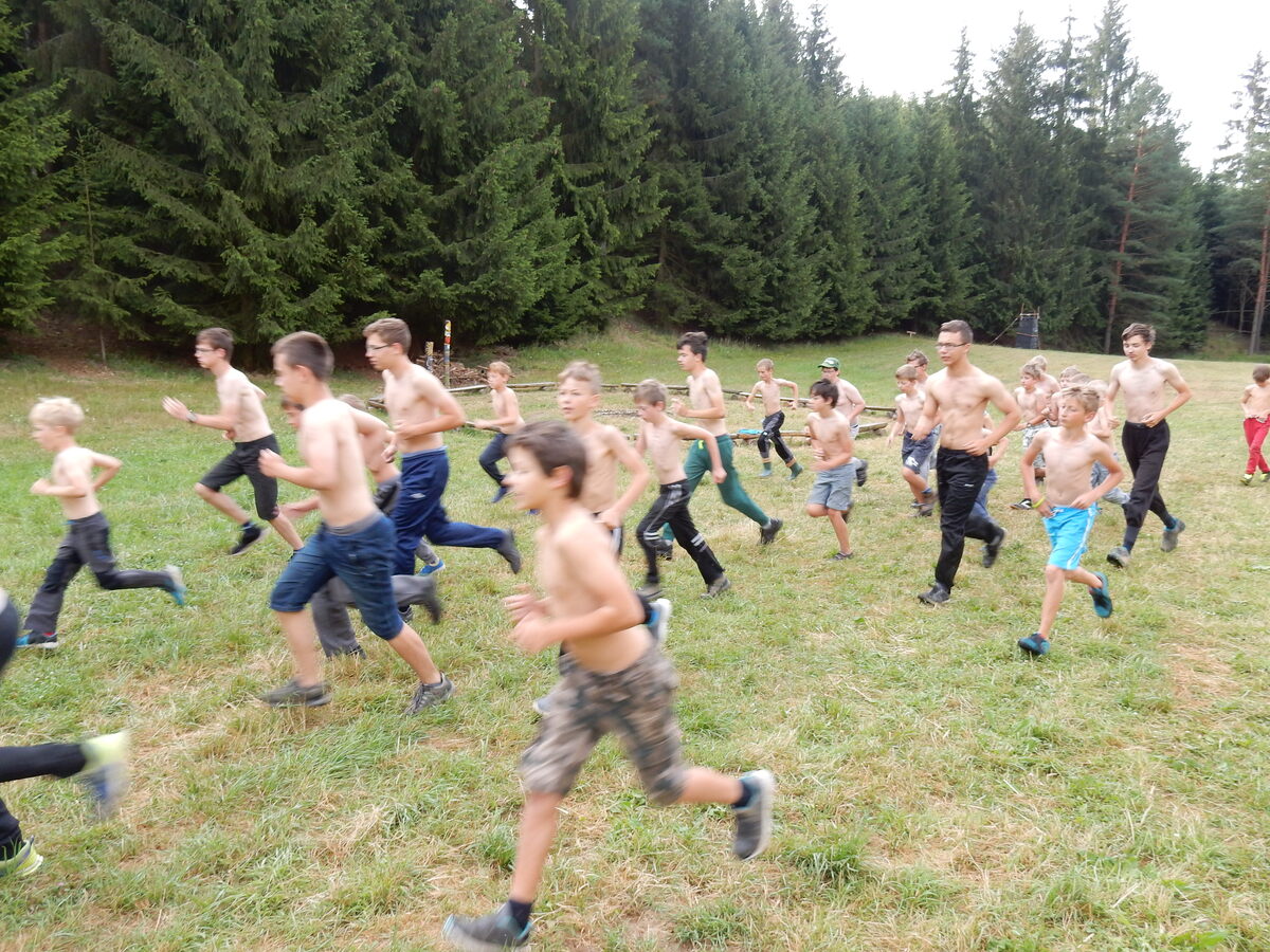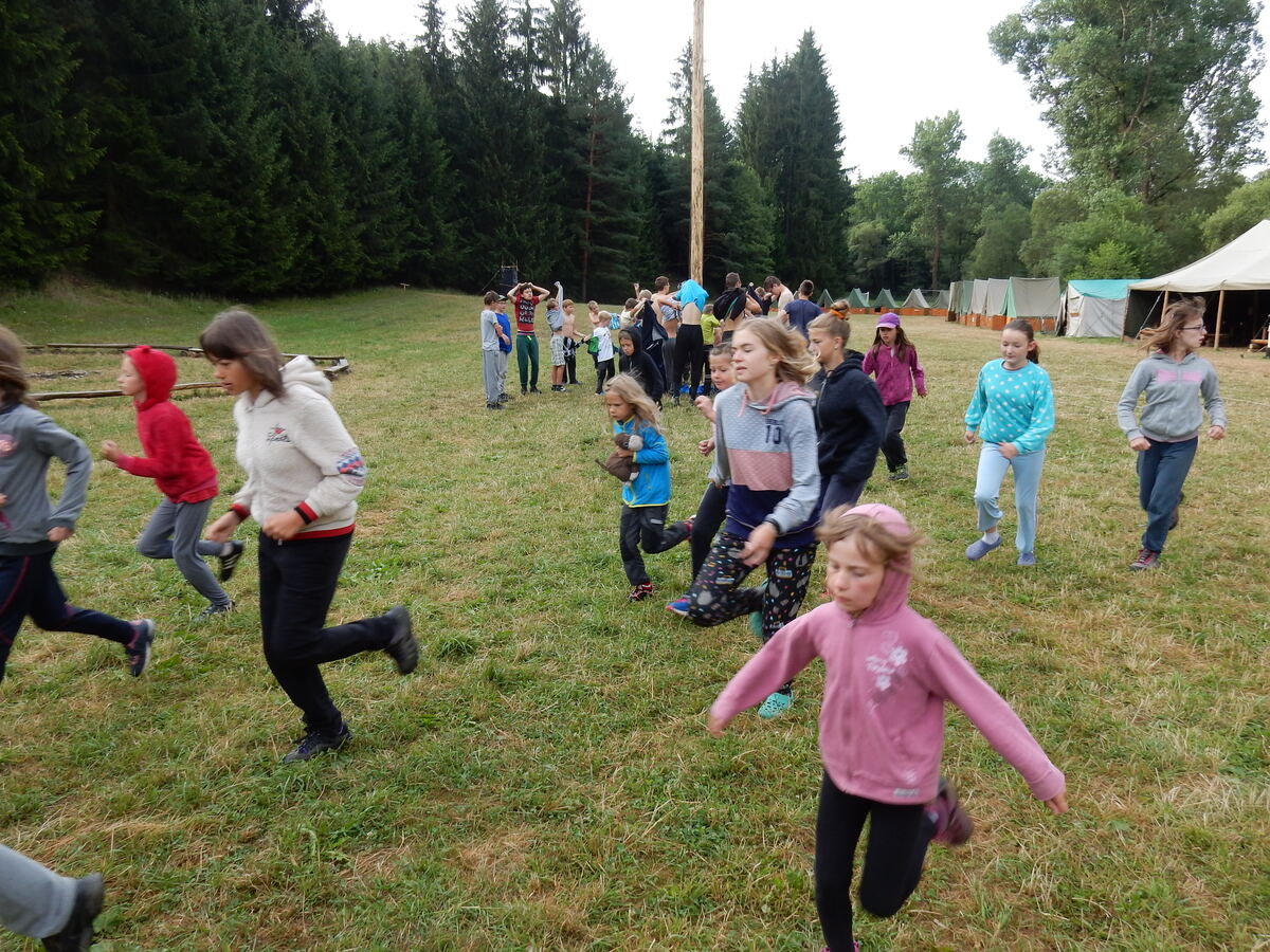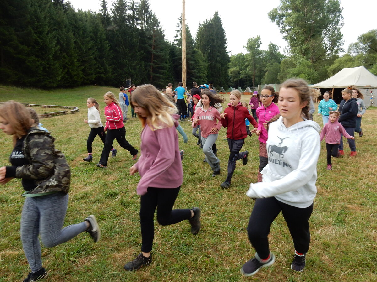 V pondělí ráno nastala v táboře naprosto nečekaná situace. Došly úplně všechny potraviny! Naštěstí nedaleko tábora vykvetl strom koláčovník a pod ním byl nalezen hrnec kakaa. Parádní snídaně v trávě... Dopoledne nás navštívila hygiena, proběhly etapy a odpoledne se mohli táborníci vydat na koupaliště. Večer se zpívalo u ohně a v noci pak náš tábor přepadli další přepadači, tentokráte ovšem bez dýmovnic. Jura