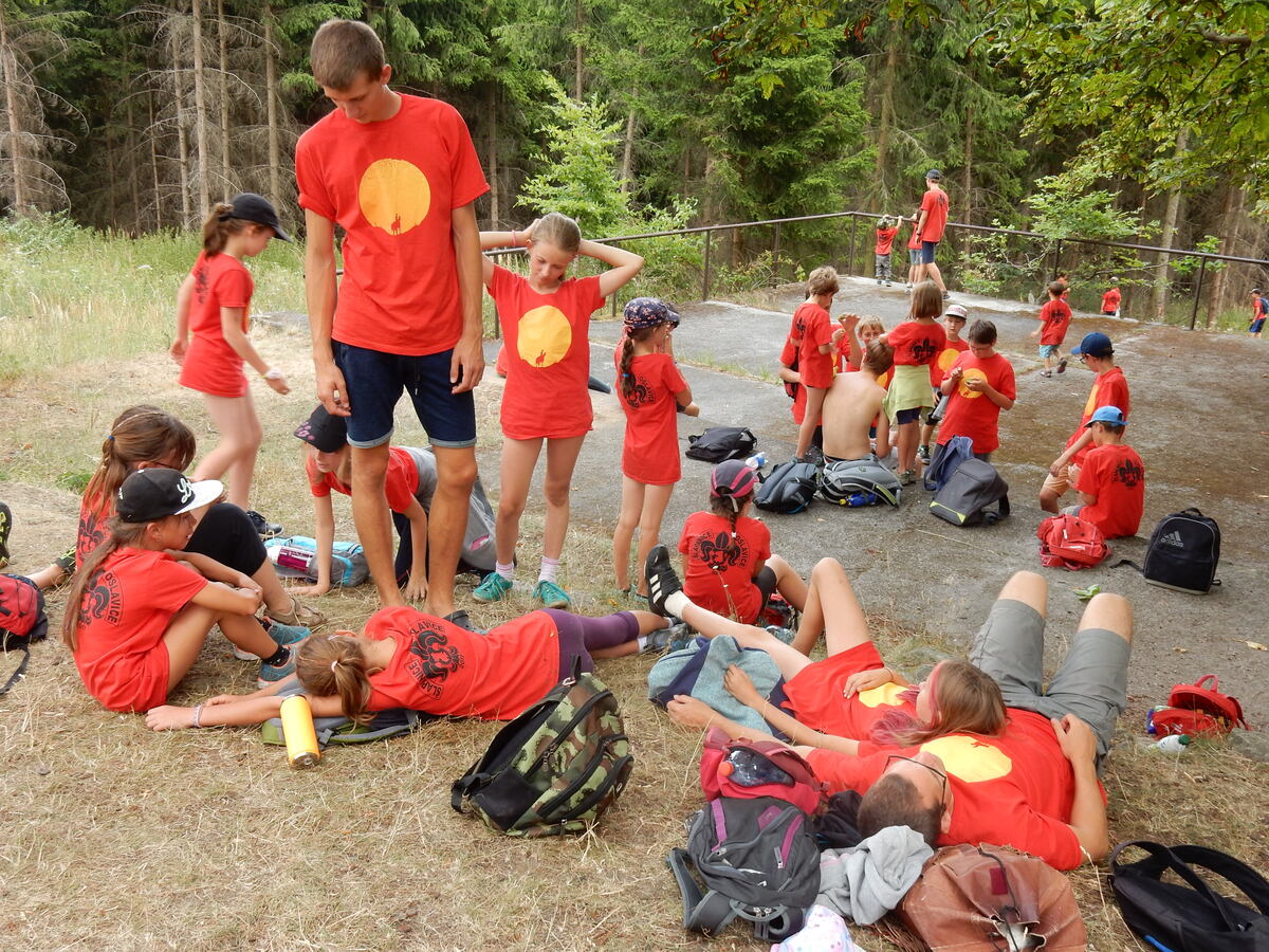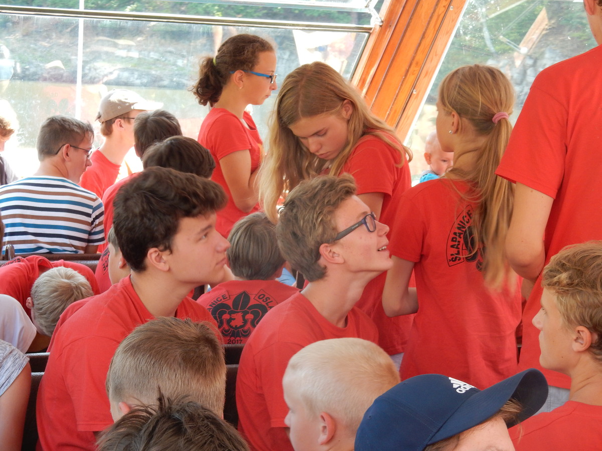 Úterý. Po rozcvičce a snídani balíme a suneme se do Oslavice, kde nás již očekávají dva autobusy. Jedeme na Dalešárnu. V přístavišti Třesov nastupujeme, loď nás sotva pobere. Kapitán je skaut a tak dobře pokecáme. Nedaleko od hráze, kde naše plavba končí, navštěvujeme zavřenou hospůdku. Vedoucí je skaut a tak pro nás otevře. Takový scénář by člověk nevymyslel. Další zastávkou na cestě je rozhledna Babylon, moc pěkná stavba z předminulého století. Autobusy nás vezou zpět do tábora, kde hlídá jen Elektronek. Pohodová výprava. Jura
