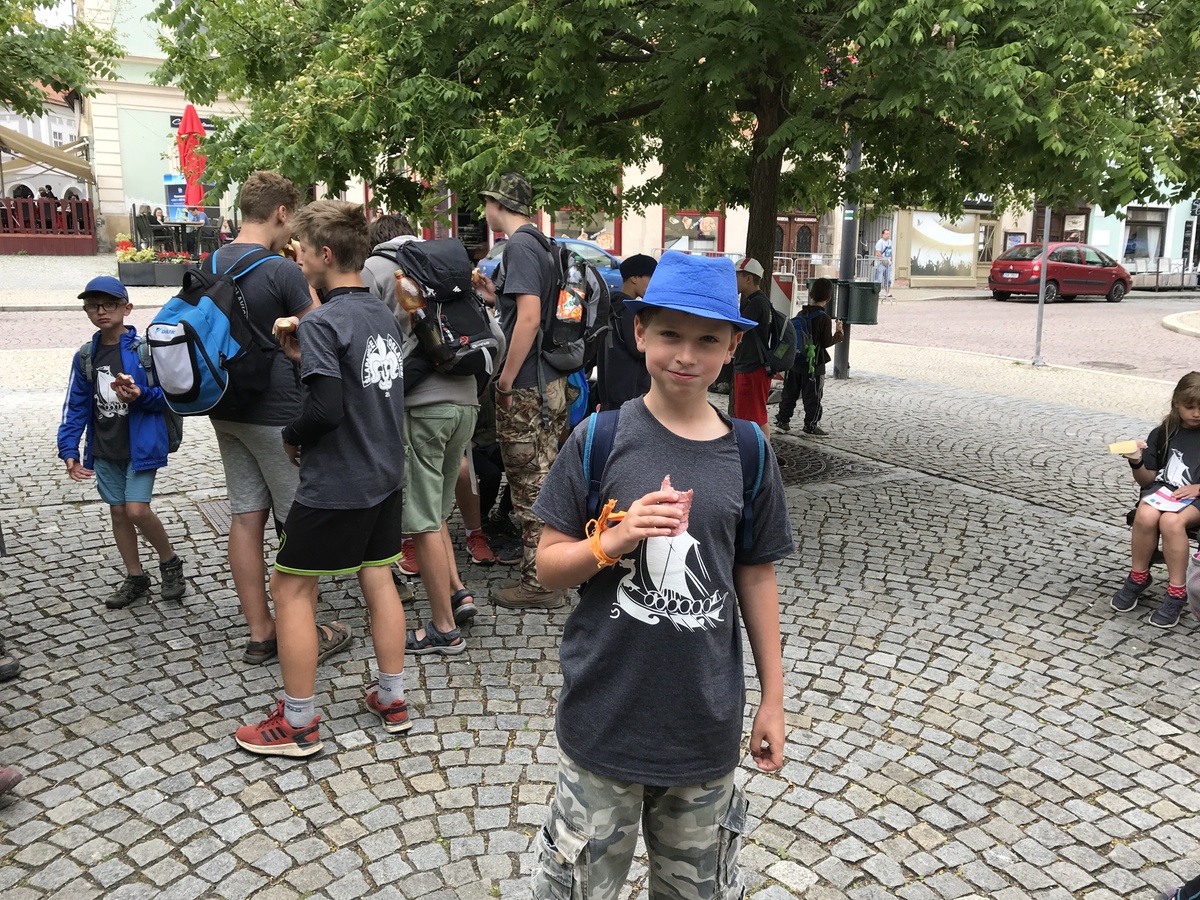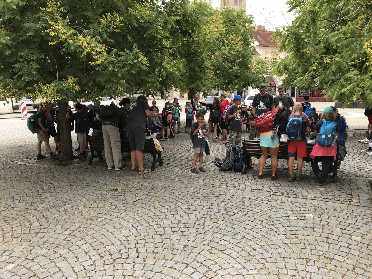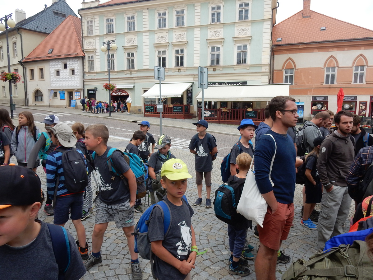 Dnes byl budíček již v 7:00, čekal nás totiž výlet do Kutné Hory. V 9:00 jsme naskákali do dvou přistavených autobusů a v 11:30 již startovaly městské etapy starších i mladších na náměstí v Kutné Hoře. Po etapách byl hoďku a půl rozchod, načež jsme popojeli do Žďáru do akvaparku. Do tábora jsme se vrátili později, než bylo v plánu a tak po sněmu byla rovnou vyhlášena příprava na večerku.