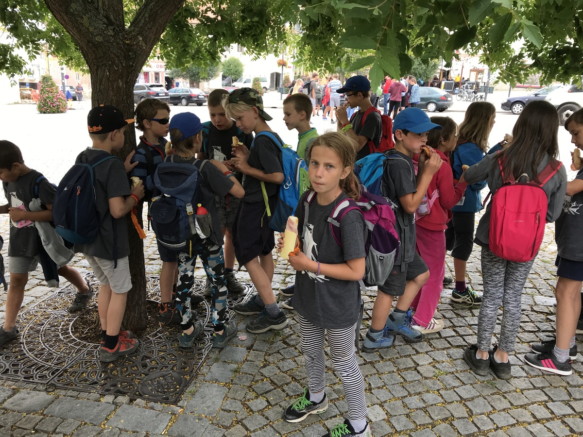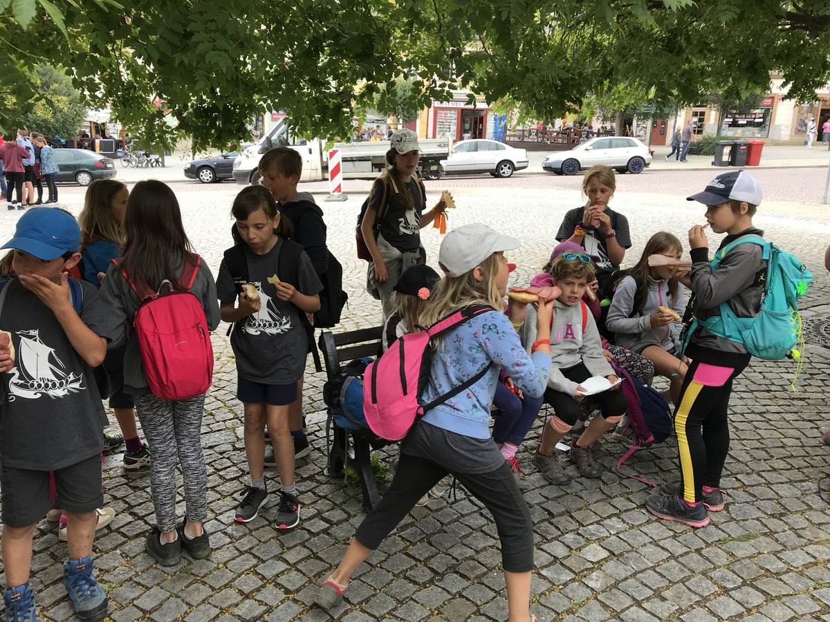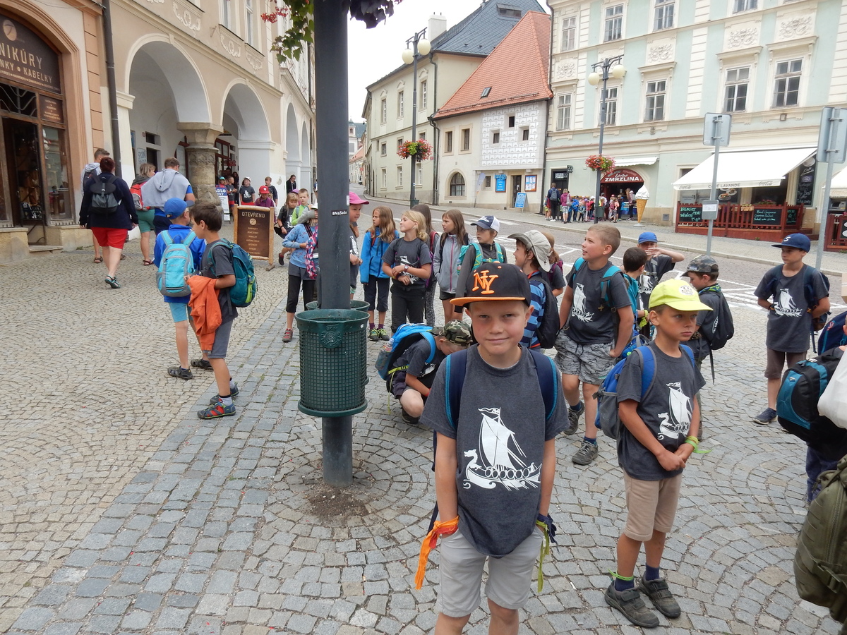 Dnes byl budíček již v 7:00, čekal nás totiž výlet do Kutné Hory. V 9:00 jsme naskákali do dvou přistavených autobusů a v 11:30 již startovaly městské etapy starších i mladších na náměstí v Kutné Hoře. Po etapách byl hoďku a půl rozchod, načež jsme popojeli do Žďáru do akvaparku. Do tábora jsme se vrátili později, než bylo v plánu a tak po sněmu byla rovnou vyhlášena příprava na večerku.