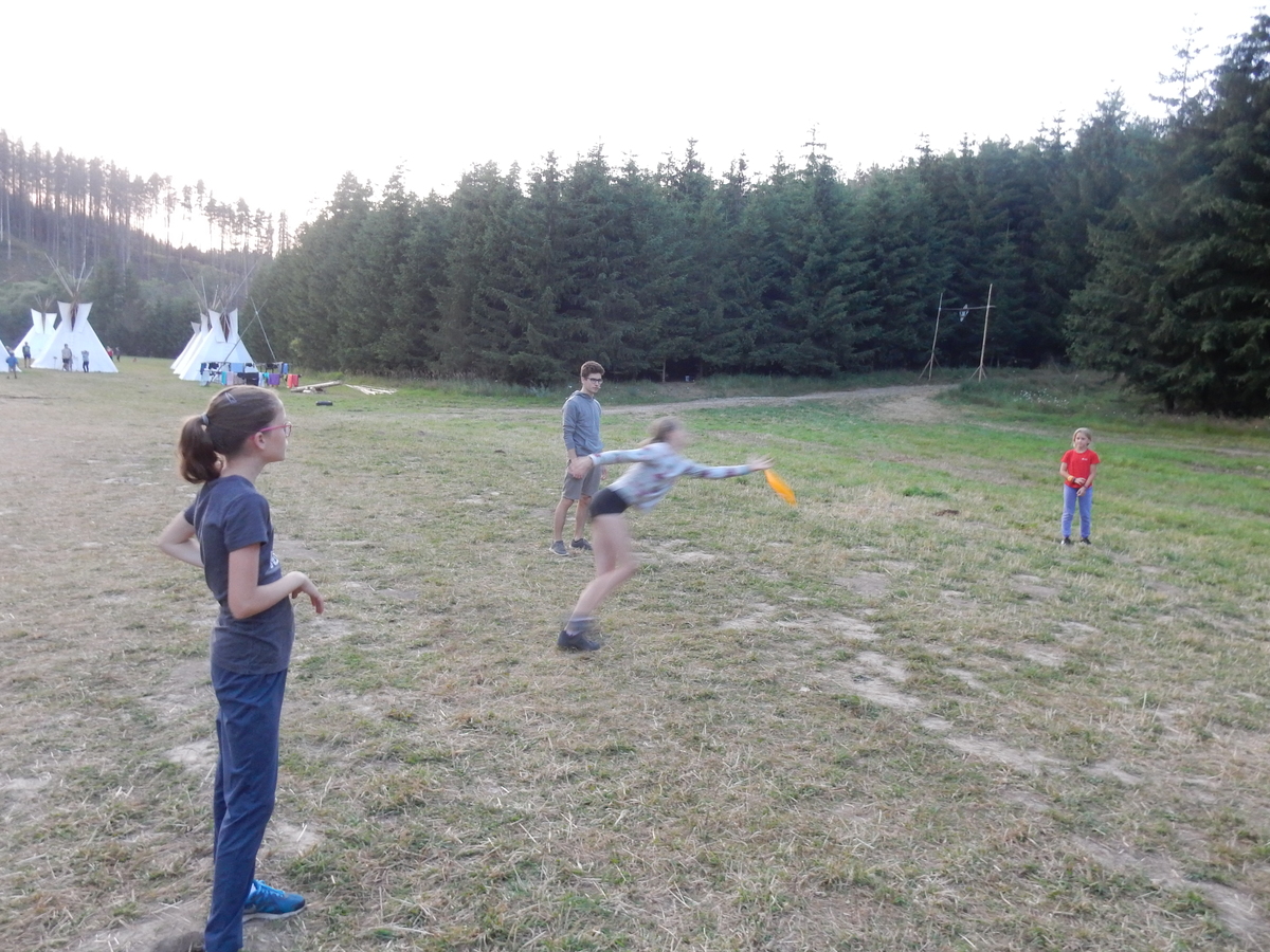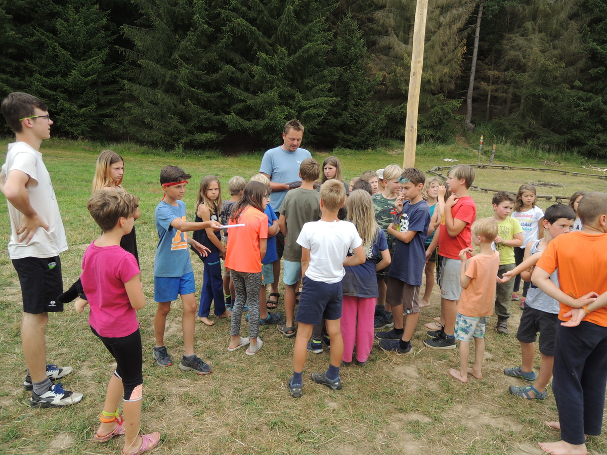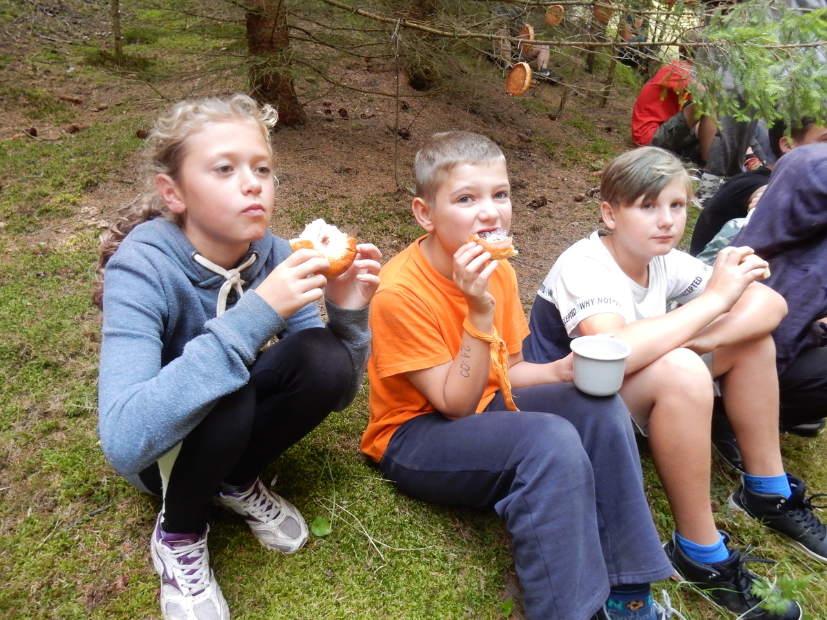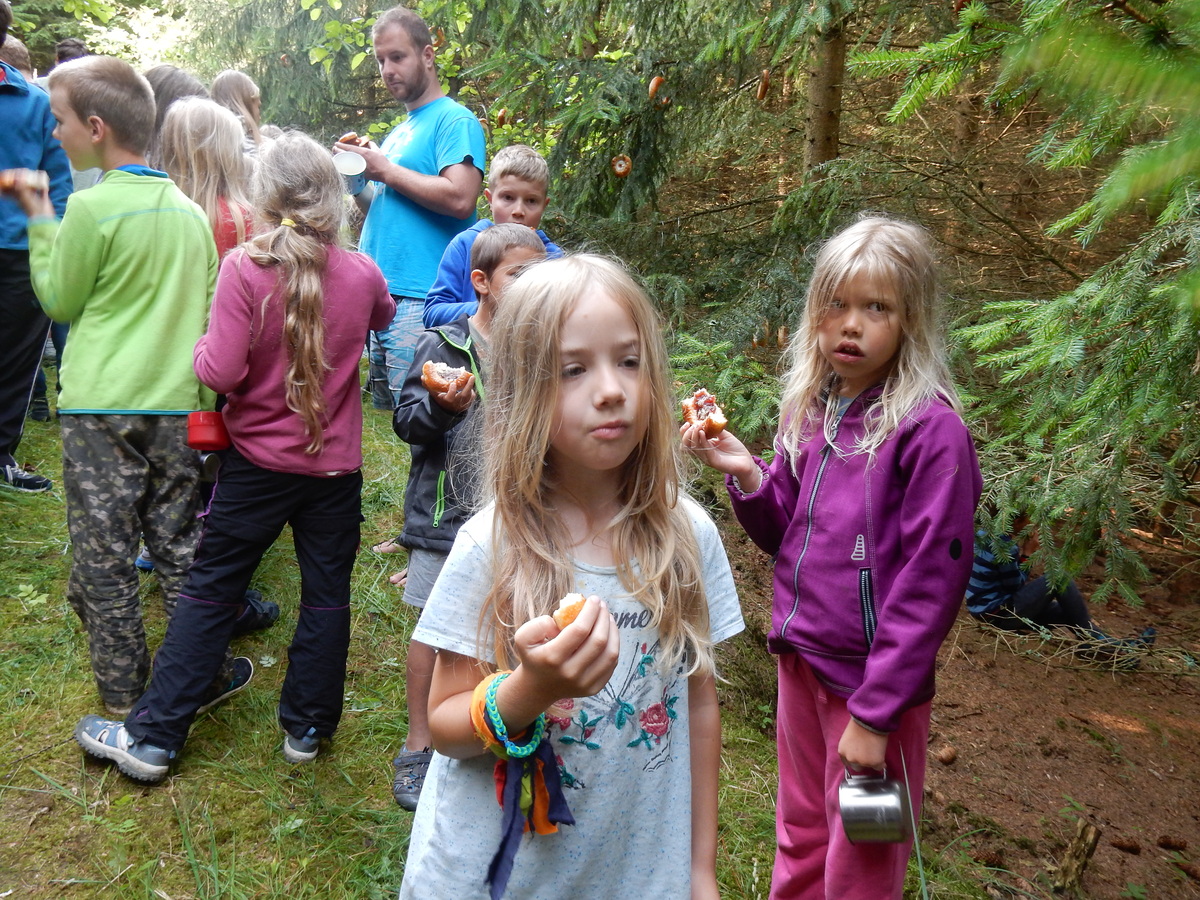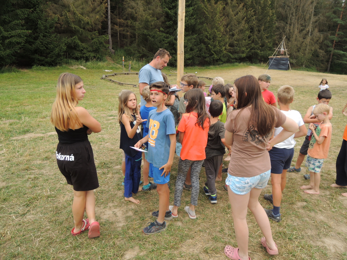 Copak nám to tu za táborem vykvetlo? No jasně, to je přece strom koláčovník! O snídani je tudíž postaráno :-). Dopoledne mají mladší družinový program, starší zahajují závěrečnou etapu celotáborovky , která potrvá i odpoledne. Mladší rozjíždějí svoji závěrečnou etapu po odpolední svačině. Před večeří už obě skupiny znají vítěze. Večerním programem pak jsou sportovní hry.