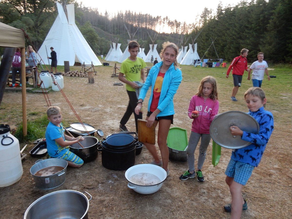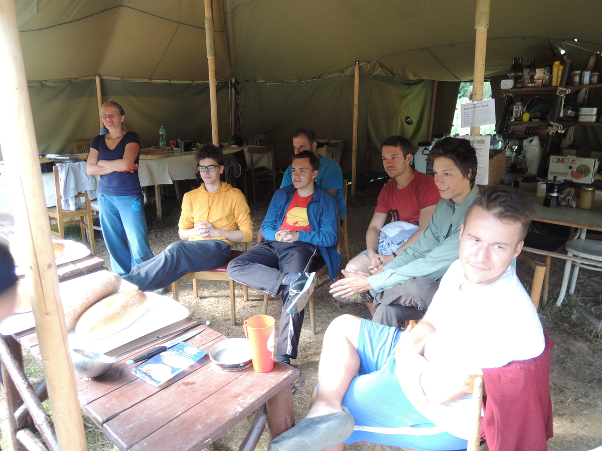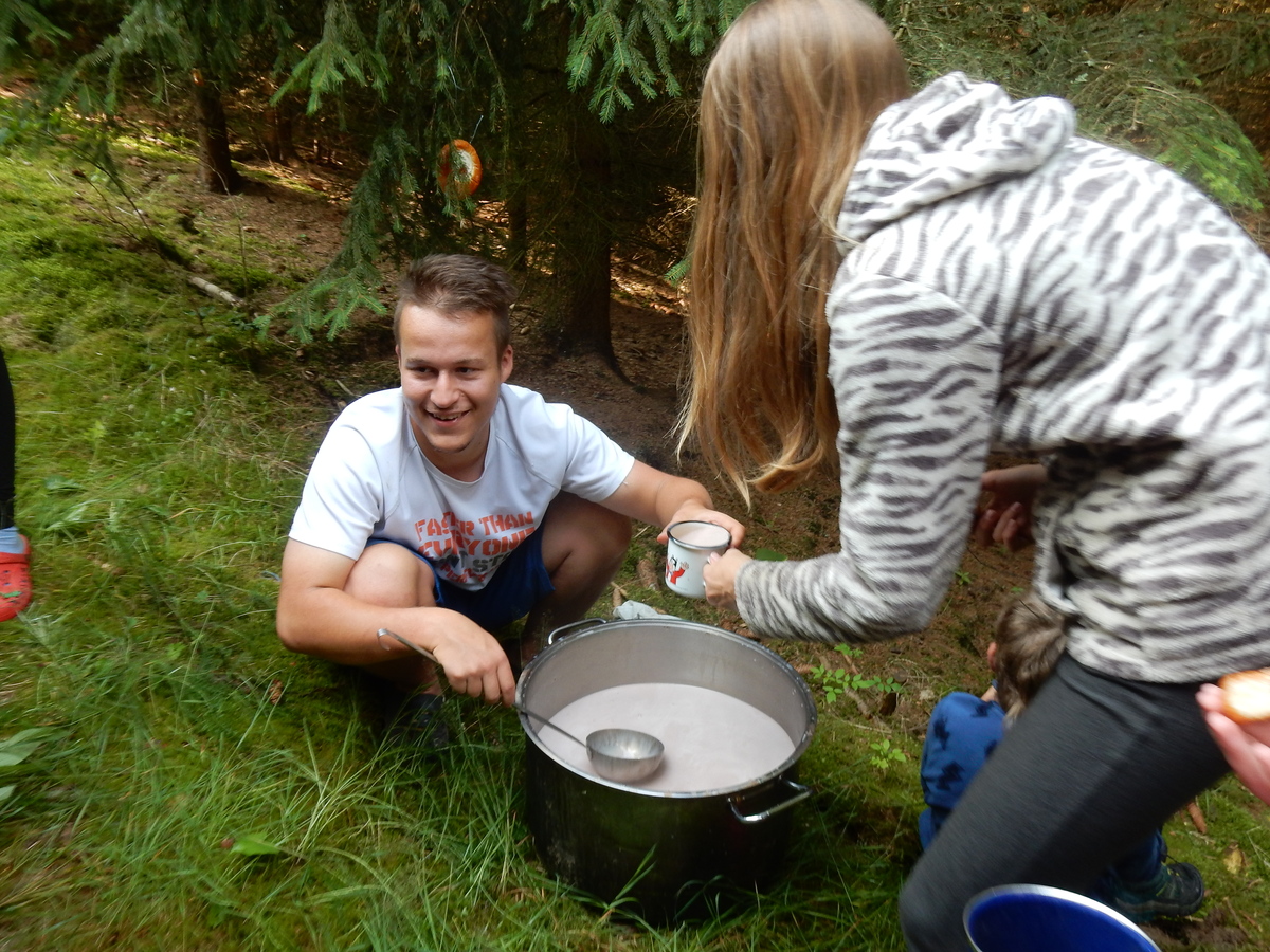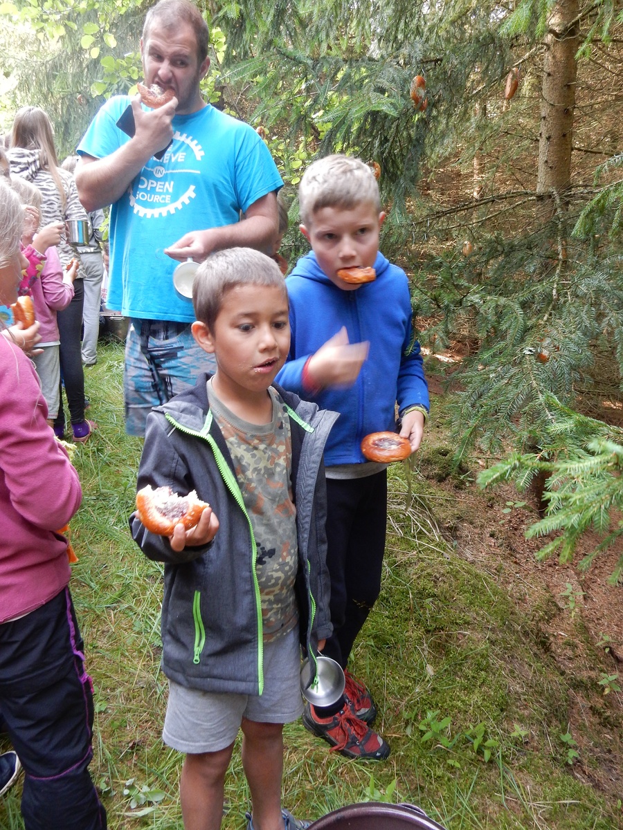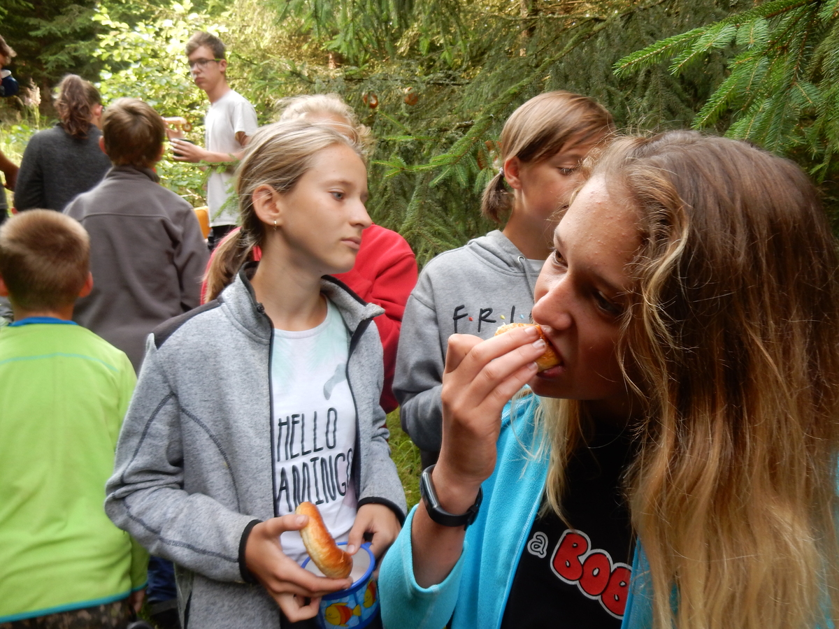 Copak nám to tu za táborem vykvetlo? No jasně, to je přece strom koláčovník! O snídani je tudíž postaráno :-). Dopoledne mají mladší družinový program, starší zahajují závěrečnou etapu celotáborovky , která potrvá i odpoledne. Mladší rozjíždějí svoji závěrečnou etapu po odpolední svačině. Před večeří už obě skupiny znají vítěze. Večerním programem pak jsou sportovní hry.