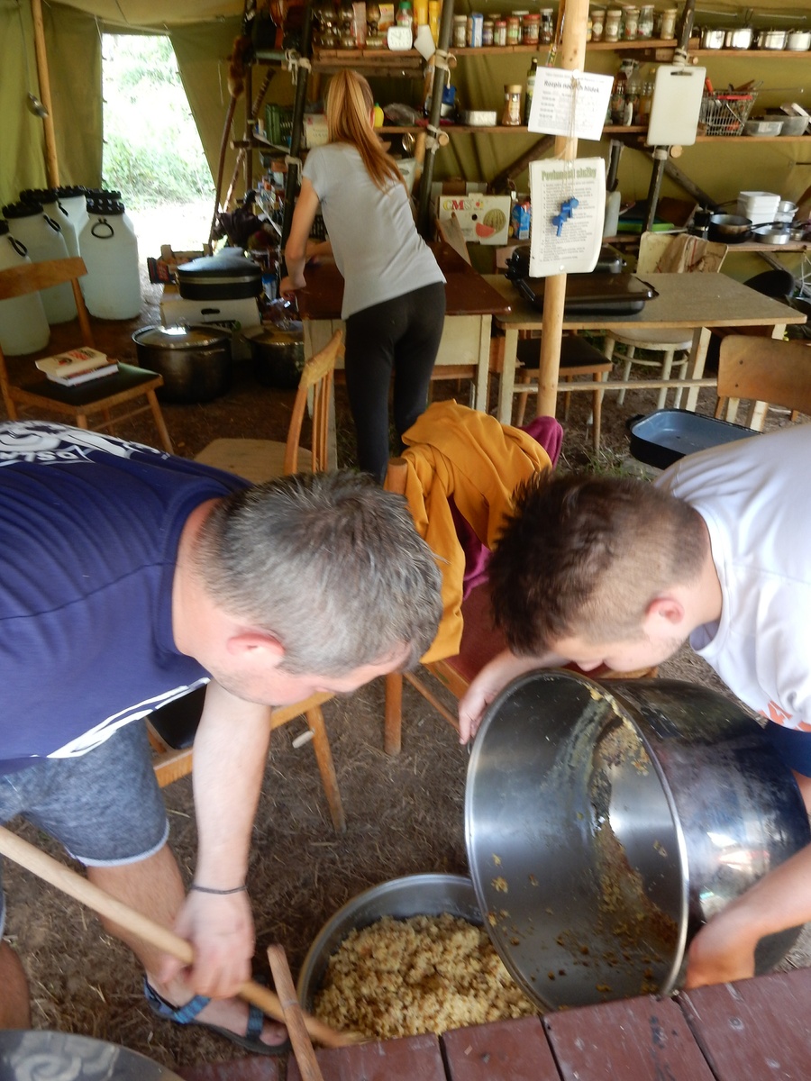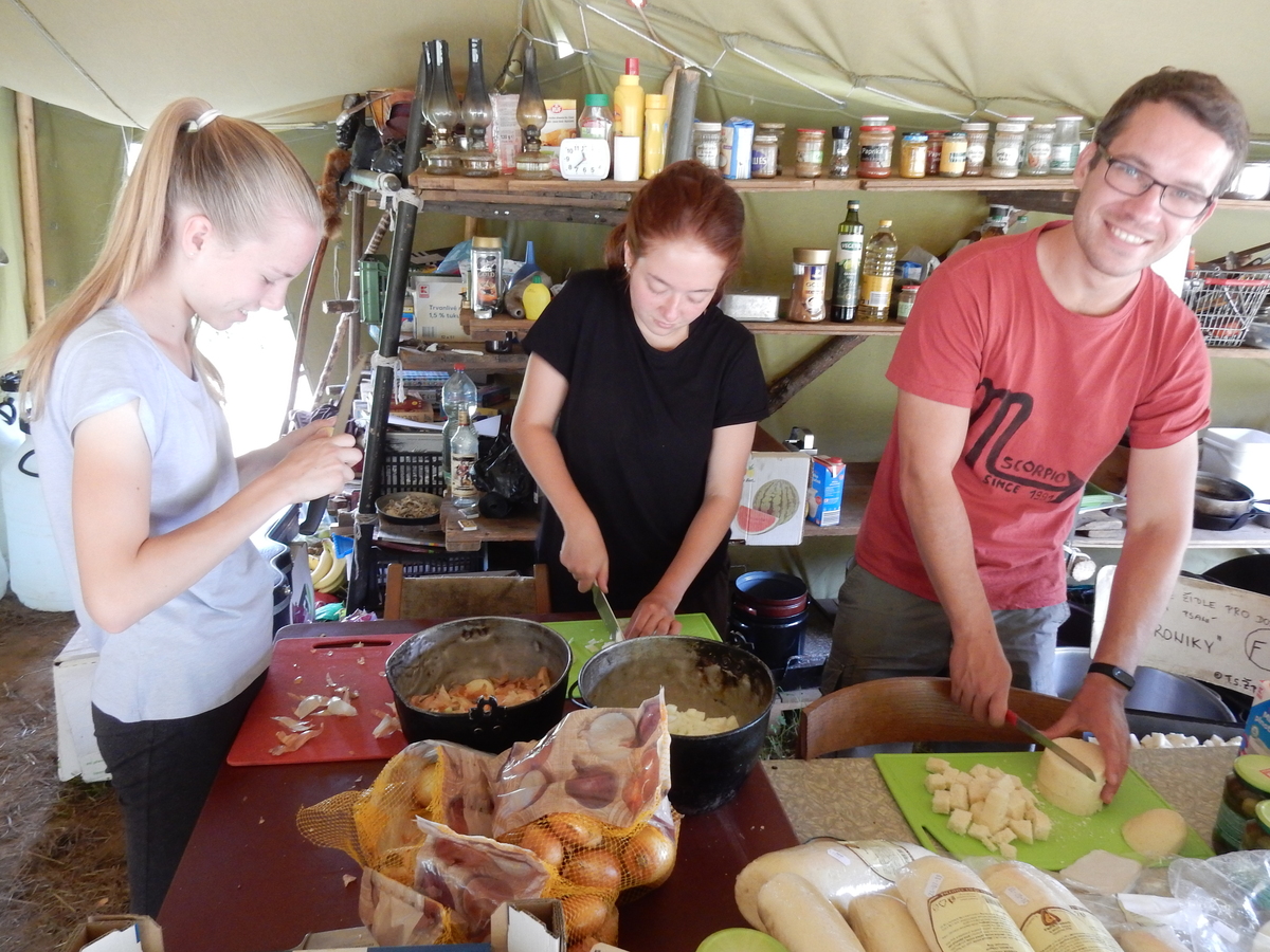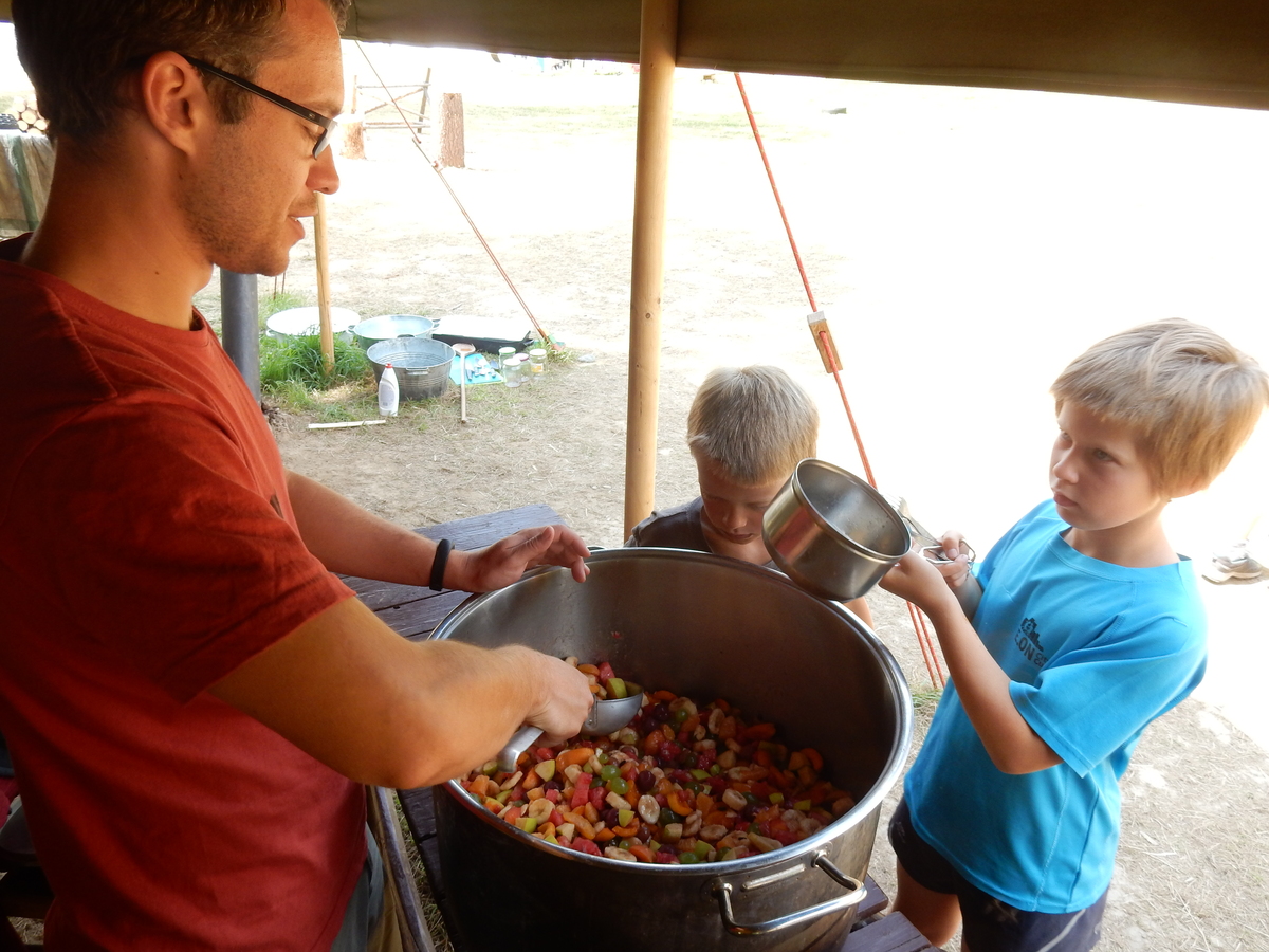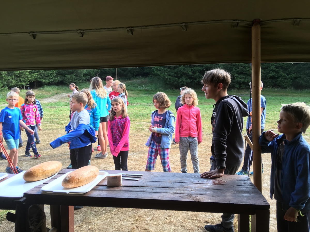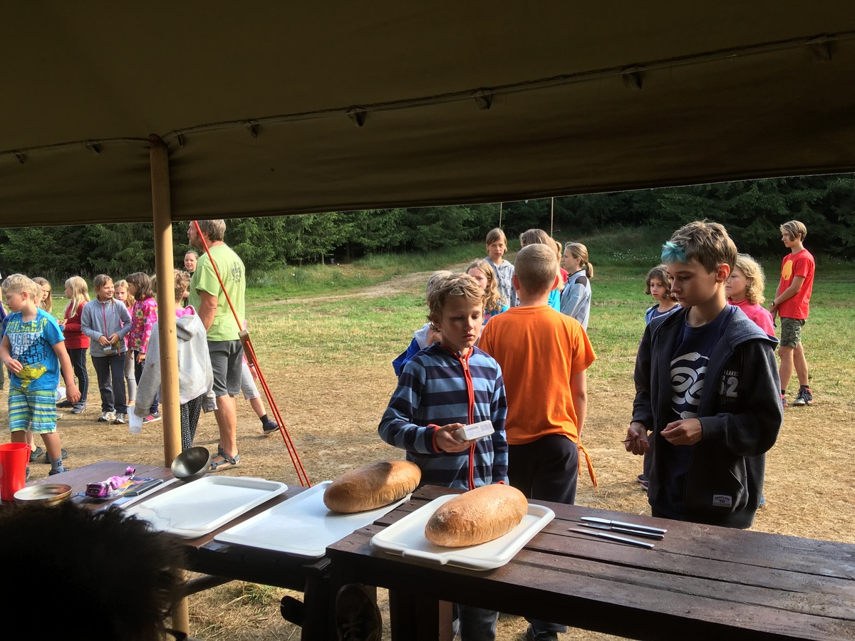 Copak nám to tu za táborem vykvetlo? No jasně, to je přece strom koláčovník! O snídani je tudíž postaráno :-). Dopoledne mají mladší družinový program, starší zahajují závěrečnou etapu celotáborovky , která potrvá i odpoledne. Mladší rozjíždějí svoji závěrečnou etapu po odpolední svačině. Před večeří už obě skupiny znají vítěze. Večerním programem pak jsou sportovní hry.