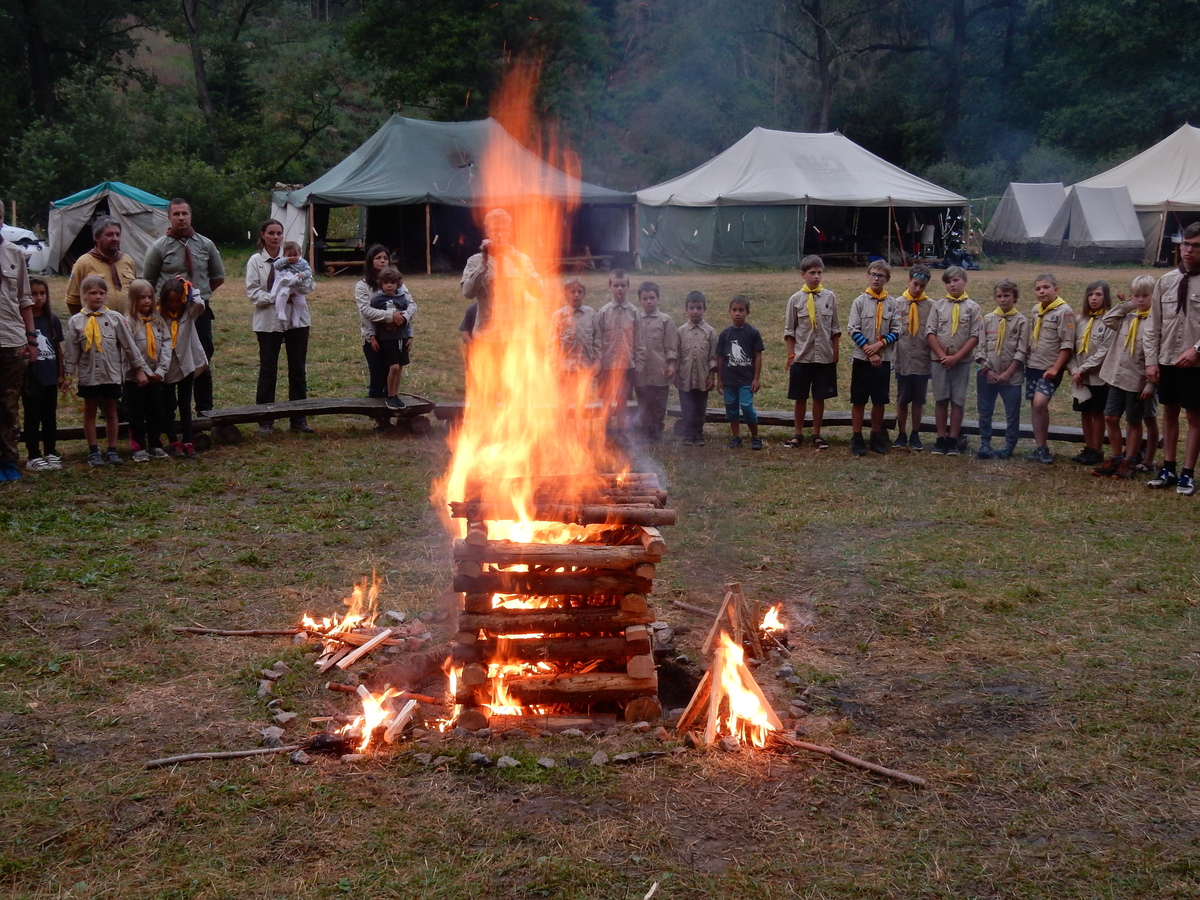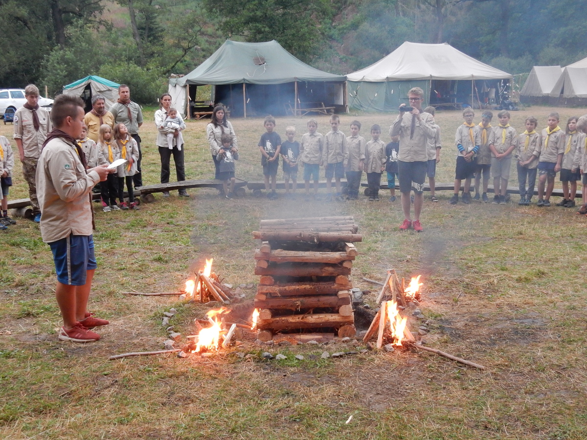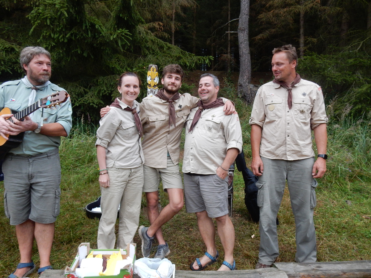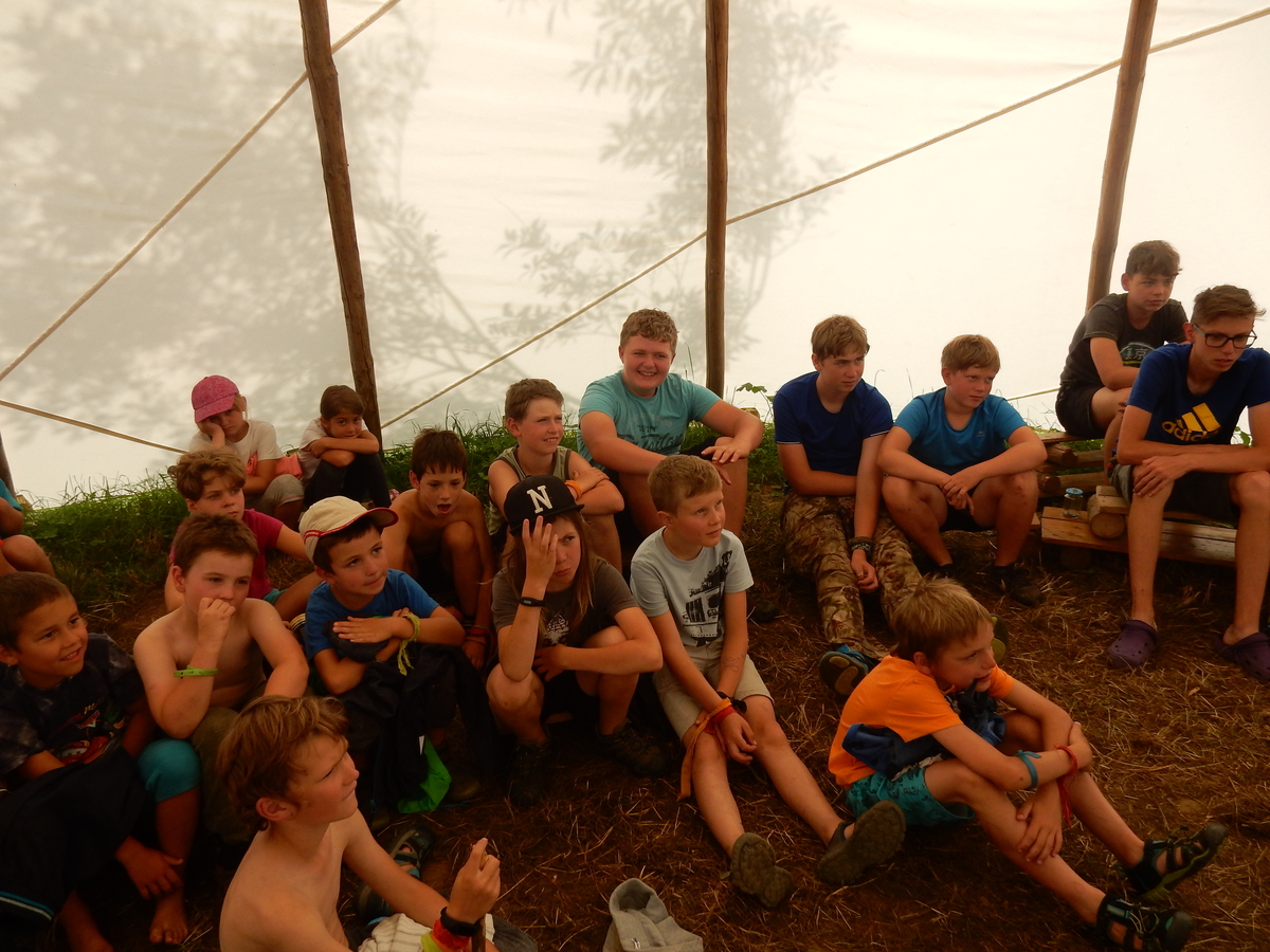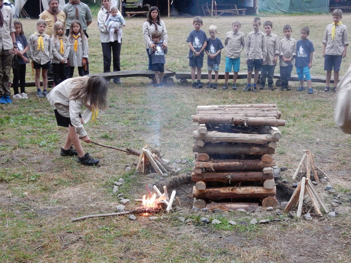 Den programem doslova nabitý. Dopoledne družinky grilují - někdo kýtu, jiný sýr, další třeba hamburgerové maso. Při tom se zpívá a pomalu se bourají týpka. V poledním klidu pak pořádá výprodejovou dražbu Žid, odpoledne se hraje Boj o totem. Při večerním nástupu svěšujeme státní vlajku a u slavnostního ohně skládá slib 12 členů oddílu. Dalších 7 zvládlo těžkou skautskou zkoušku 3 orlí pera a 4 mladší zase 3 bílé tesáky. Taky se hodnotí úklid ve stanech a dlouho do noci zpívá. Poprvé a naposledy není na táboře vyhlášena večerka :-)...