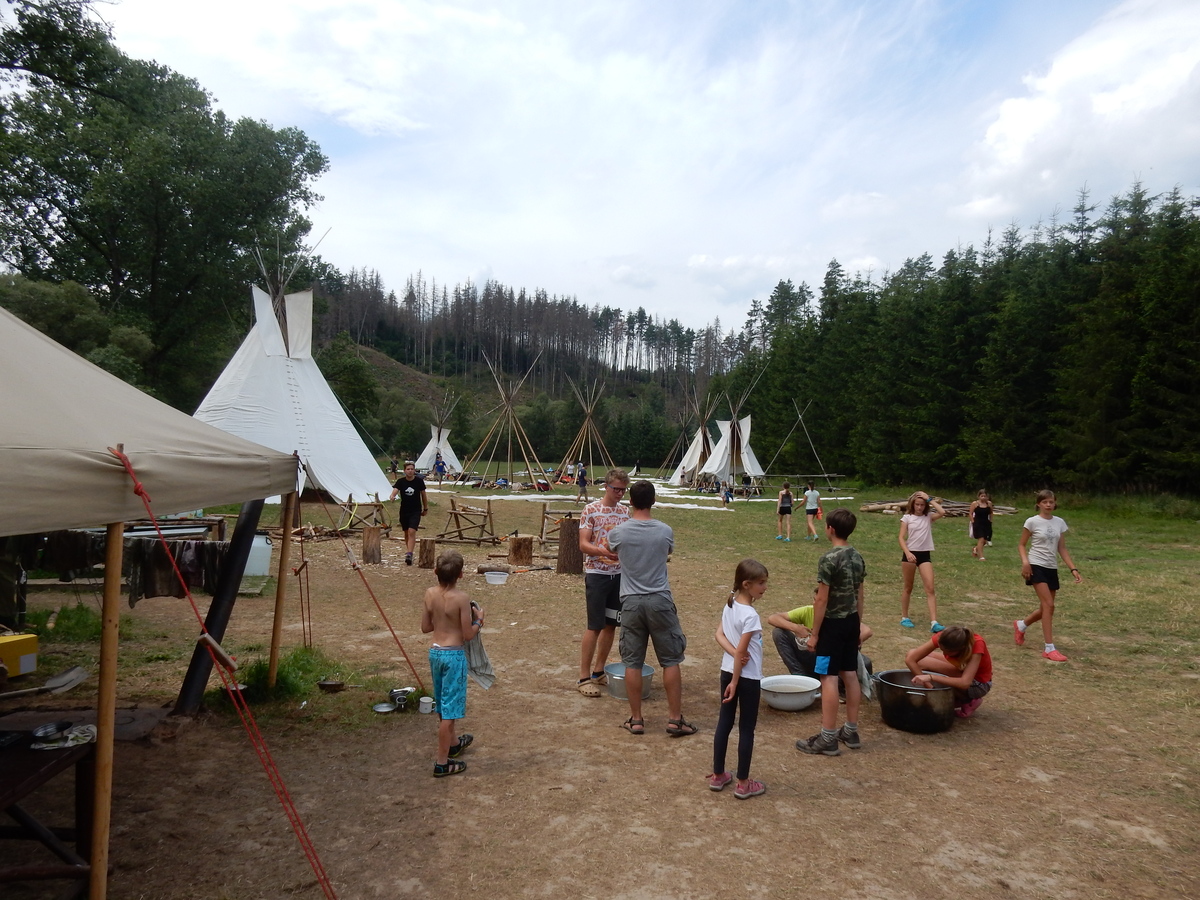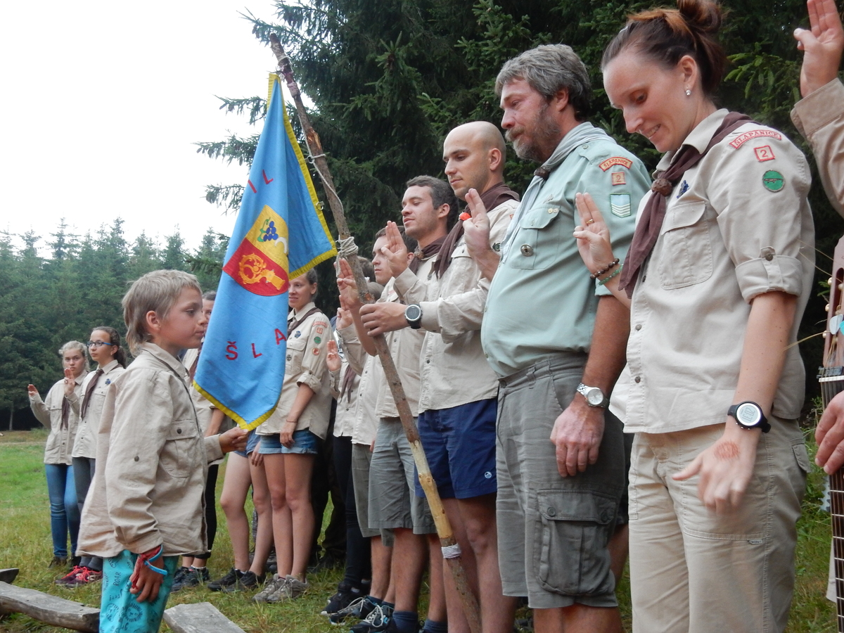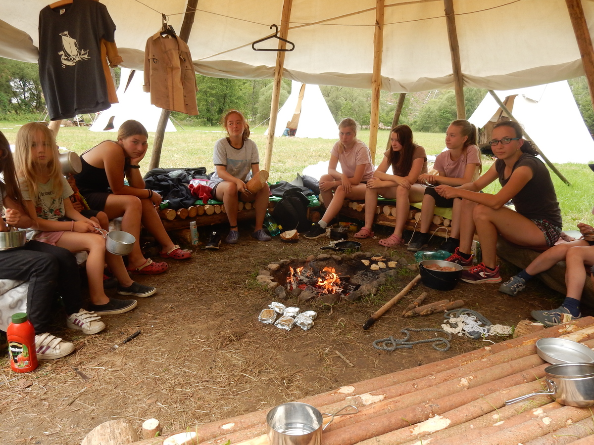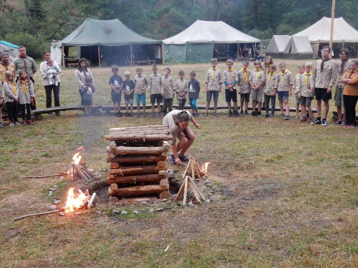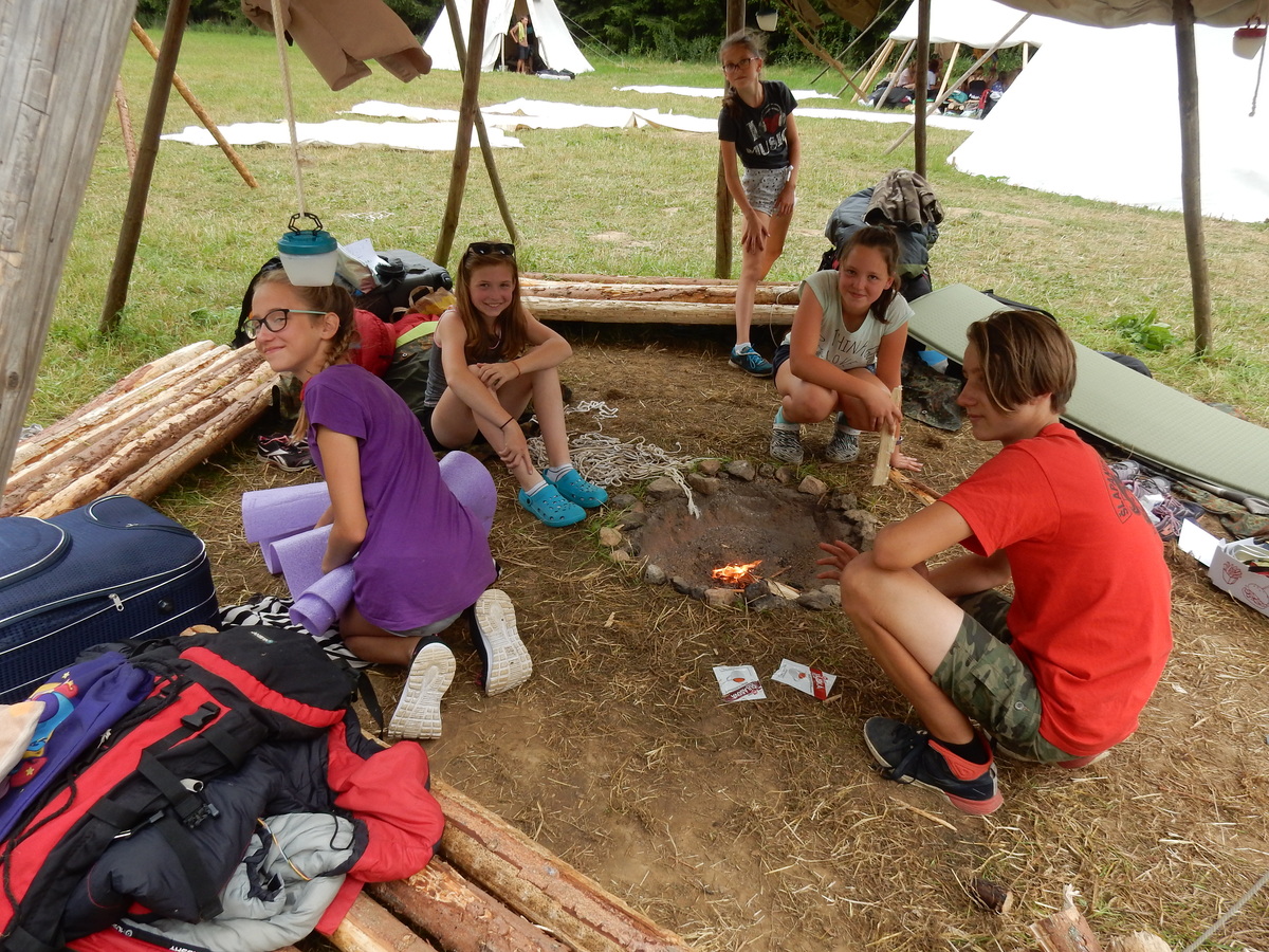 Den programem doslova nabitý. Dopoledne družinky grilují - někdo kýtu, jiný sýr, další třeba hamburgerové maso. Při tom se zpívá a pomalu se bourají týpka. V poledním klidu pak pořádá výprodejovou dražbu Žid, odpoledne se hraje Boj o totem. Při večerním nástupu svěšujeme státní vlajku a u slavnostního ohně skládá slib 12 členů oddílu. Dalších 7 zvládlo těžkou skautskou zkoušku 3 orlí pera a 4 mladší zase 3 bílé tesáky. Taky se hodnotí úklid ve stanech a dlouho do noci zpívá. Poprvé a naposledy není na táboře vyhlášena večerka :-)...