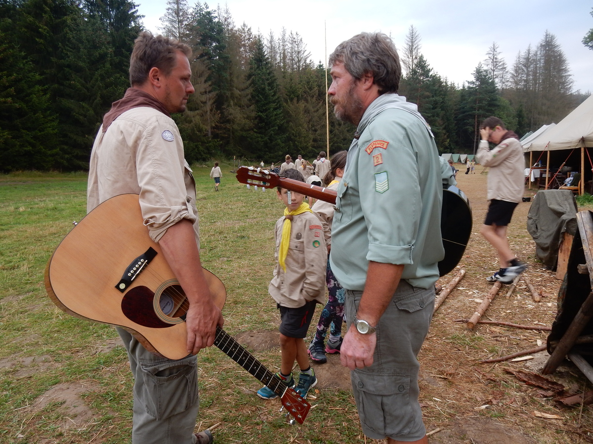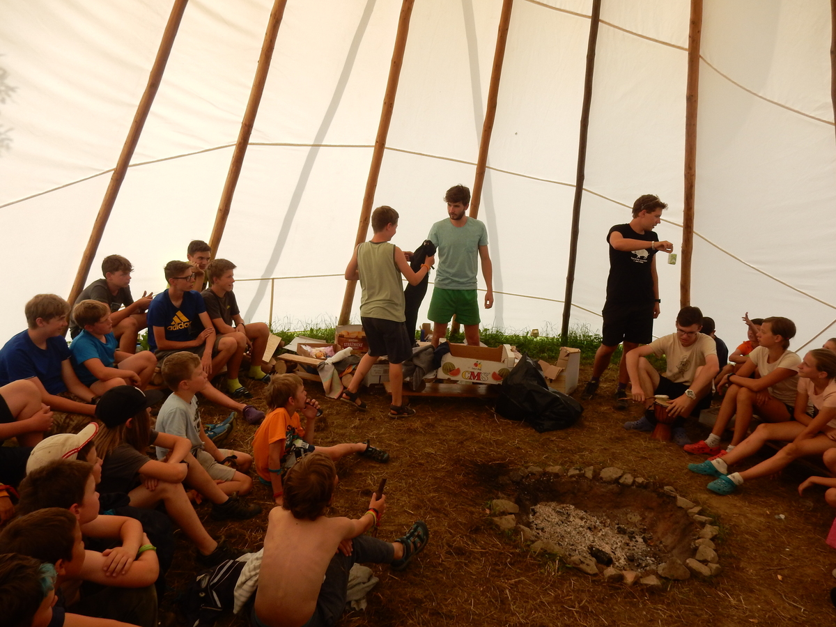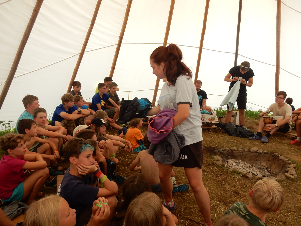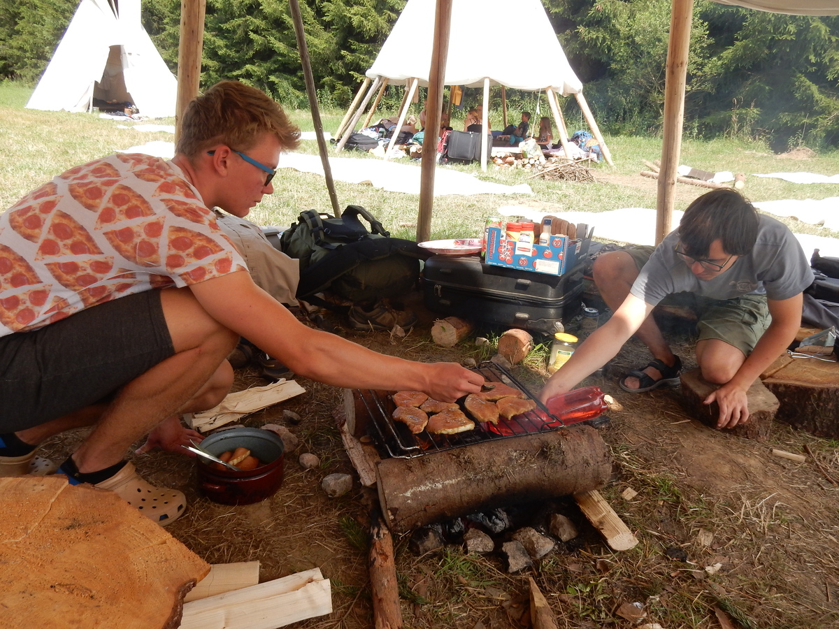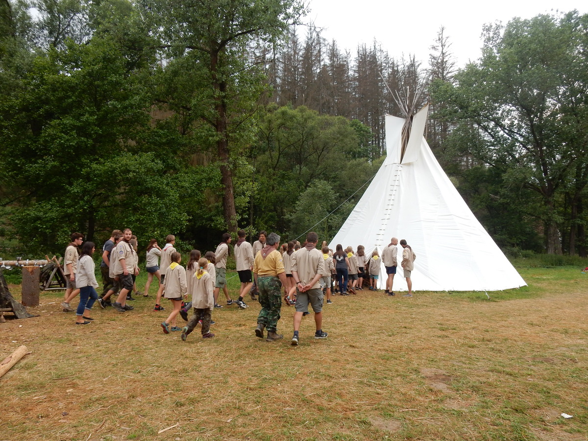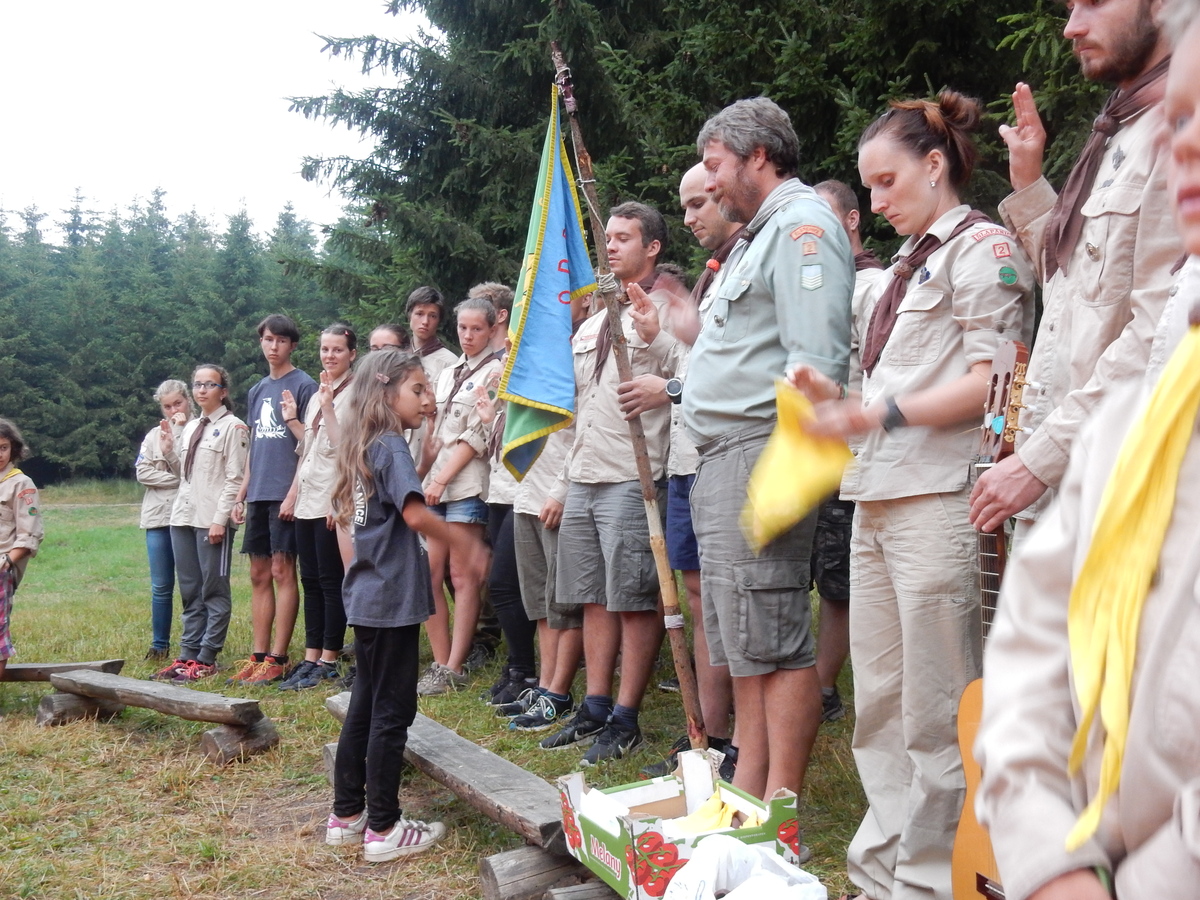 Den programem doslova nabitý. Dopoledne družinky grilují - někdo kýtu, jiný sýr, další třeba hamburgerové maso. Při tom se zpívá a pomalu se bourají týpka. V poledním klidu pak pořádá výprodejovou dražbu Žid, odpoledne se hraje Boj o totem. Při večerním nástupu svěšujeme státní vlajku a u slavnostního ohně skládá slib 12 členů oddílu. Dalších 7 zvládlo těžkou skautskou zkoušku 3 orlí pera a 4 mladší zase 3 bílé tesáky. Taky se hodnotí úklid ve stanech a dlouho do noci zpívá. Poprvé a naposledy není na táboře vyhlášena večerka :-)...