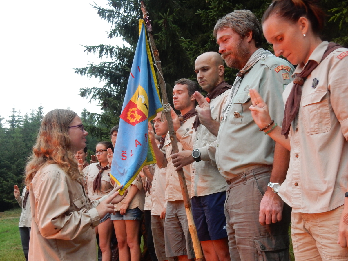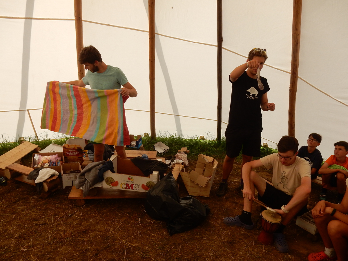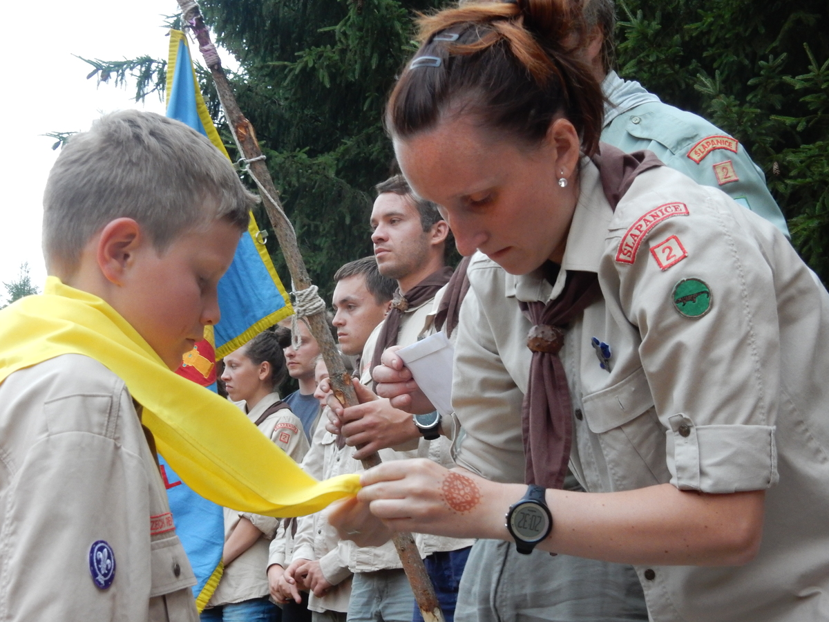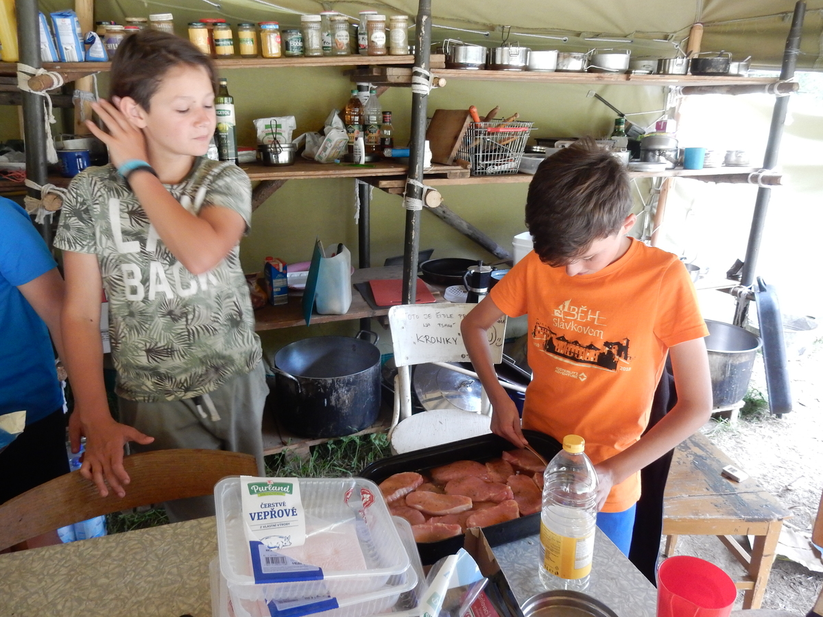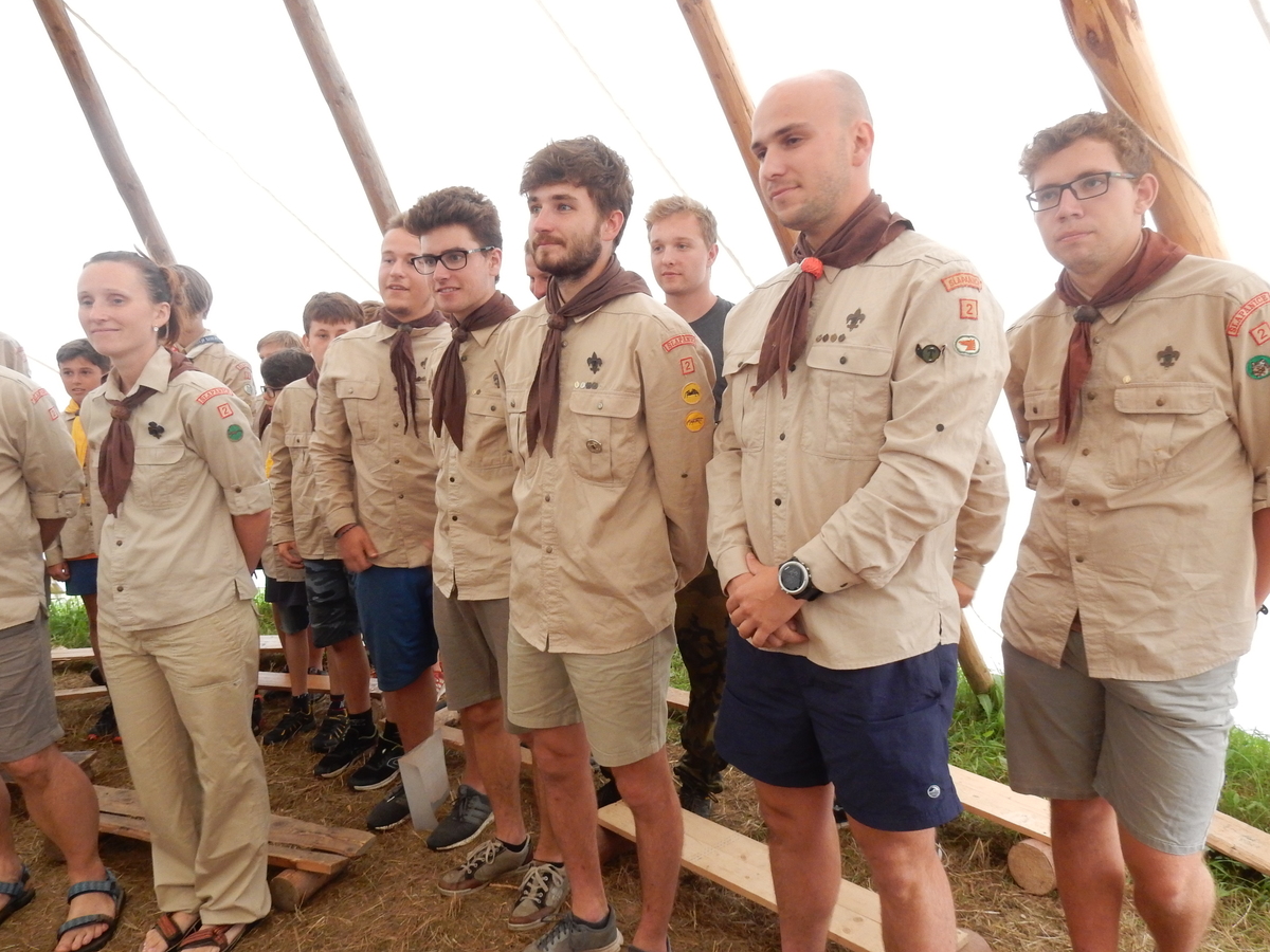 Den programem doslova nabitý. Dopoledne družinky grilují - někdo kýtu, jiný sýr, další třeba hamburgerové maso. Při tom se zpívá a pomalu se bourají týpka. V poledním klidu pak pořádá výprodejovou dražbu Žid, odpoledne se hraje Boj o totem. Při večerním nástupu svěšujeme státní vlajku a u slavnostního ohně skládá slib 12 členů oddílu. Dalších 7 zvládlo těžkou skautskou zkoušku 3 orlí pera a 4 mladší zase 3 bílé tesáky. Taky se hodnotí úklid ve stanech a dlouho do noci zpívá. Poprvé a naposledy není na táboře vyhlášena večerka :-)...