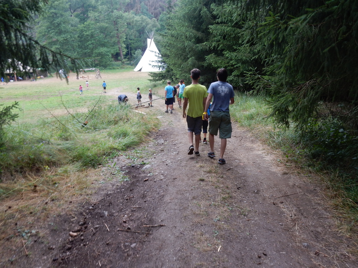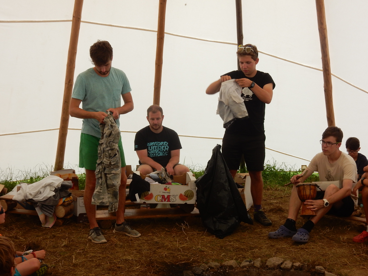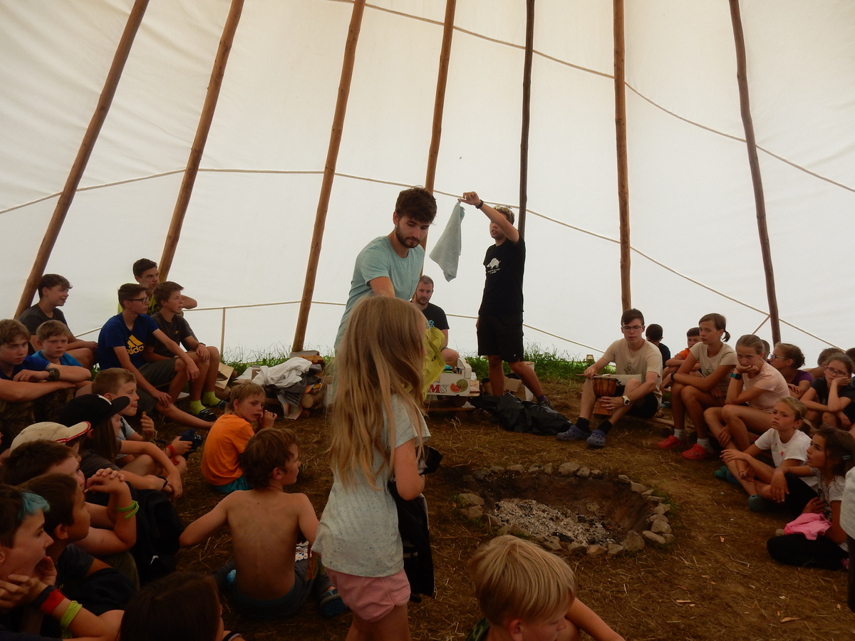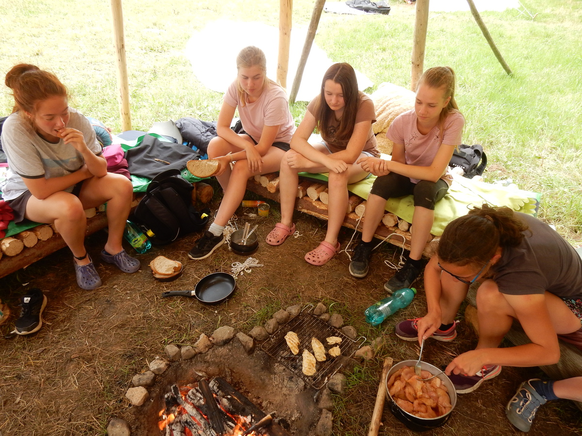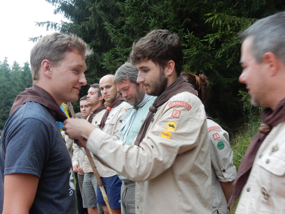 Den programem doslova nabitý. Dopoledne družinky grilují - někdo kýtu, jiný sýr, další třeba hamburgerové maso. Při tom se zpívá a pomalu se bourají týpka. V poledním klidu pak pořádá výprodejovou dražbu Žid, odpoledne se hraje Boj o totem. Při večerním nástupu svěšujeme státní vlajku a u slavnostního ohně skládá slib 12 členů oddílu. Dalších 7 zvládlo těžkou skautskou zkoušku 3 orlí pera a 4 mladší zase 3 bílé tesáky. Taky se hodnotí úklid ve stanech a dlouho do noci zpívá. Poprvé a naposledy není na táboře vyhlášena večerka :-)...