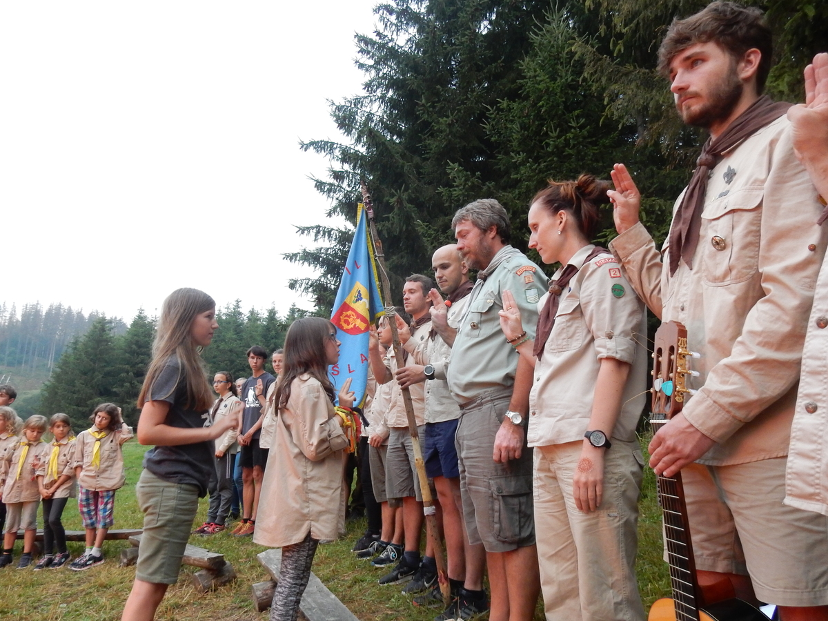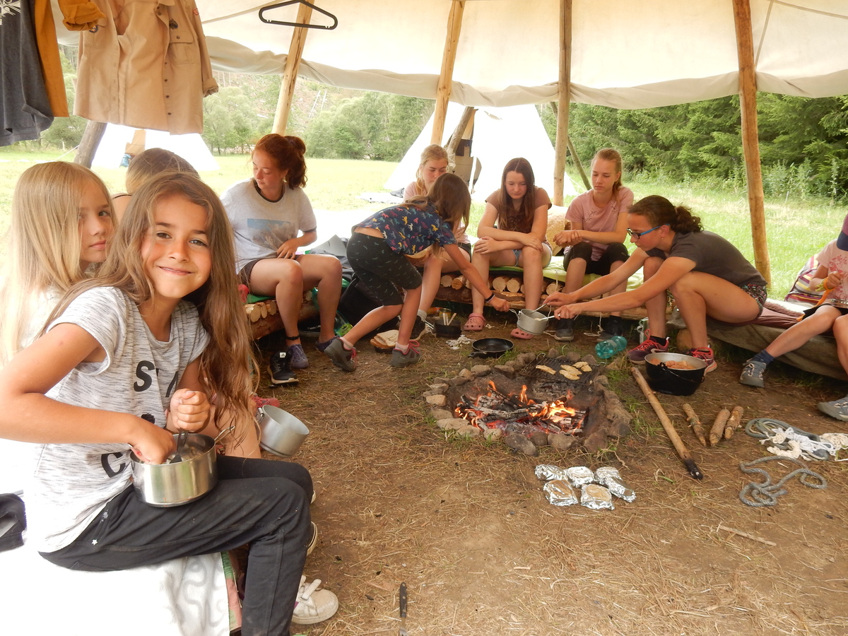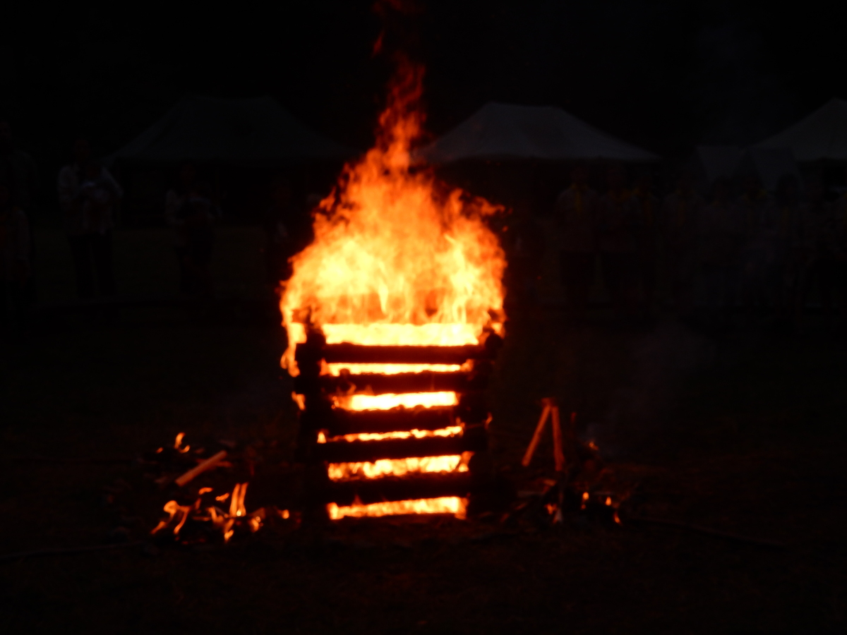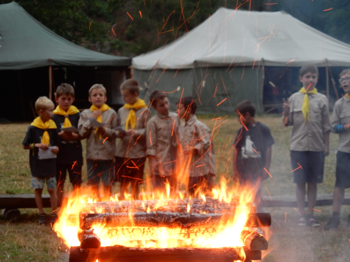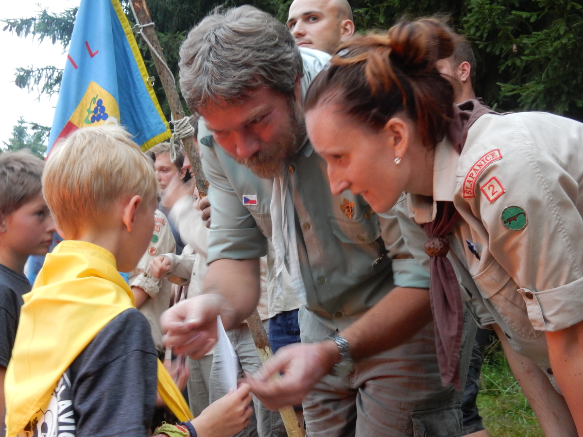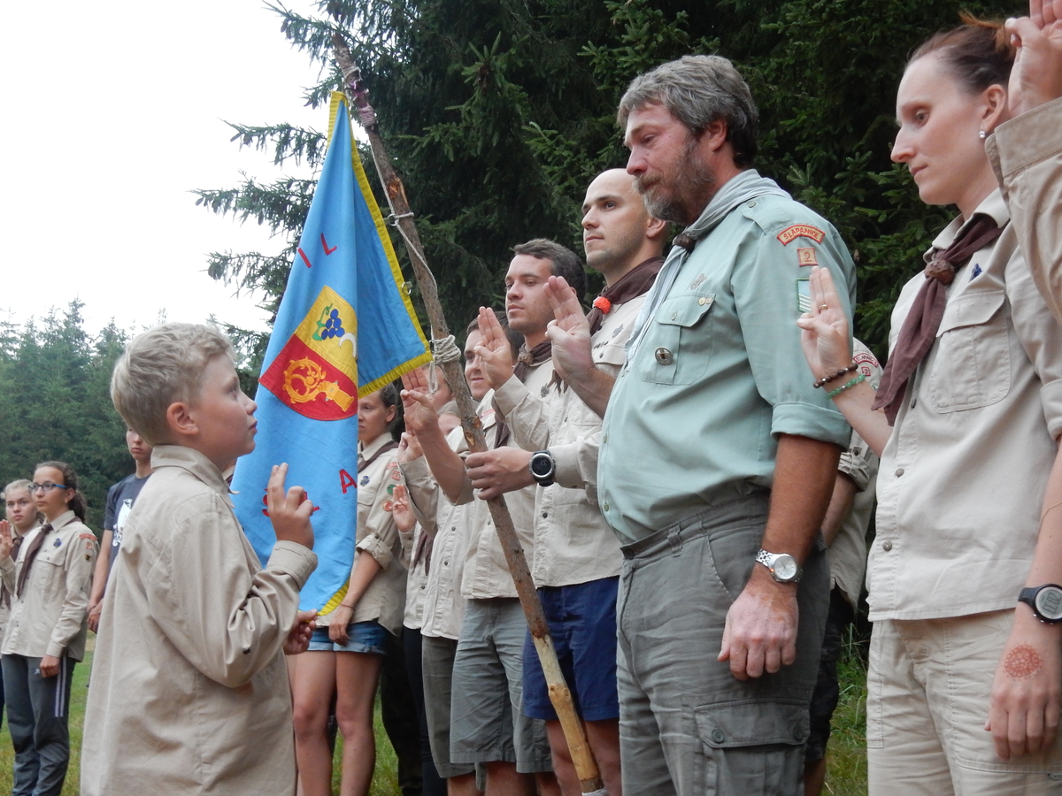 Den programem doslova nabitý. Dopoledne družinky grilují - někdo kýtu, jiný sýr, další třeba hamburgerové maso. Při tom se zpívá a pomalu se bourají týpka. V poledním klidu pak pořádá výprodejovou dražbu Žid, odpoledne se hraje Boj o totem. Při večerním nástupu svěšujeme státní vlajku a u slavnostního ohně skládá slib 12 členů oddílu. Dalších 7 zvládlo těžkou skautskou zkoušku 3 orlí pera a 4 mladší zase 3 bílé tesáky. Taky se hodnotí úklid ve stanech a dlouho do noci zpívá. Poprvé a naposledy není na táboře vyhlášena večerka :-)...