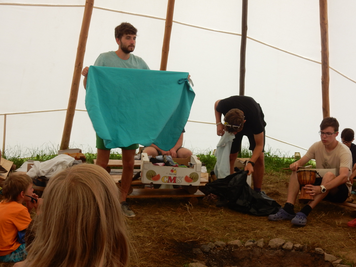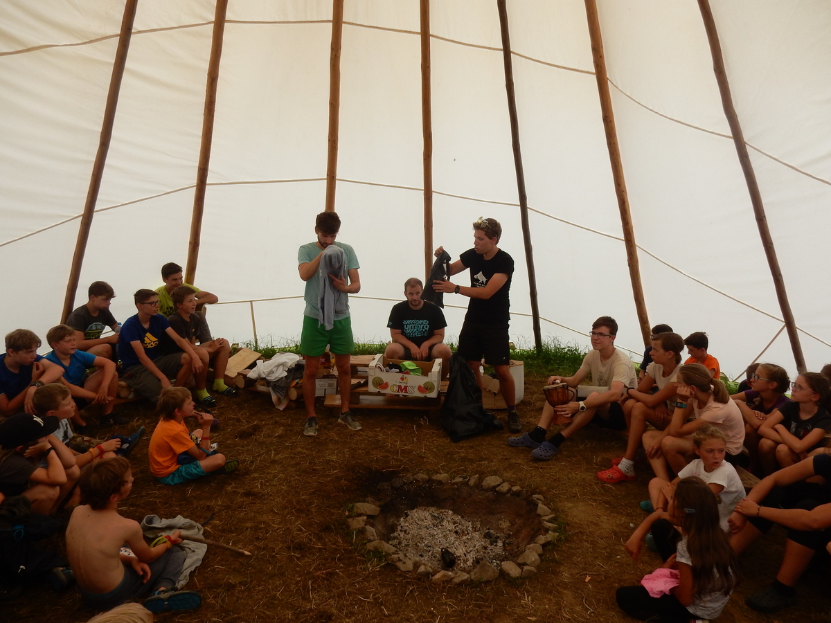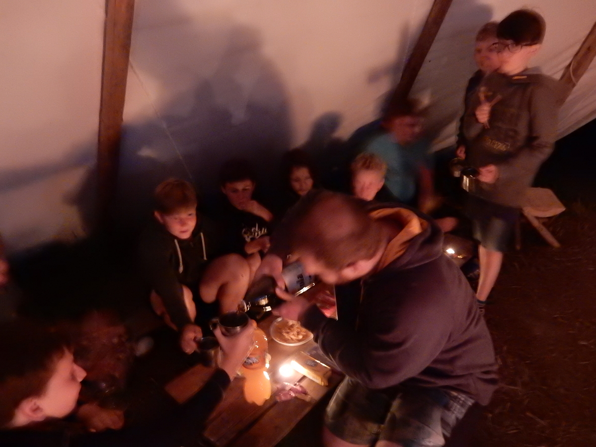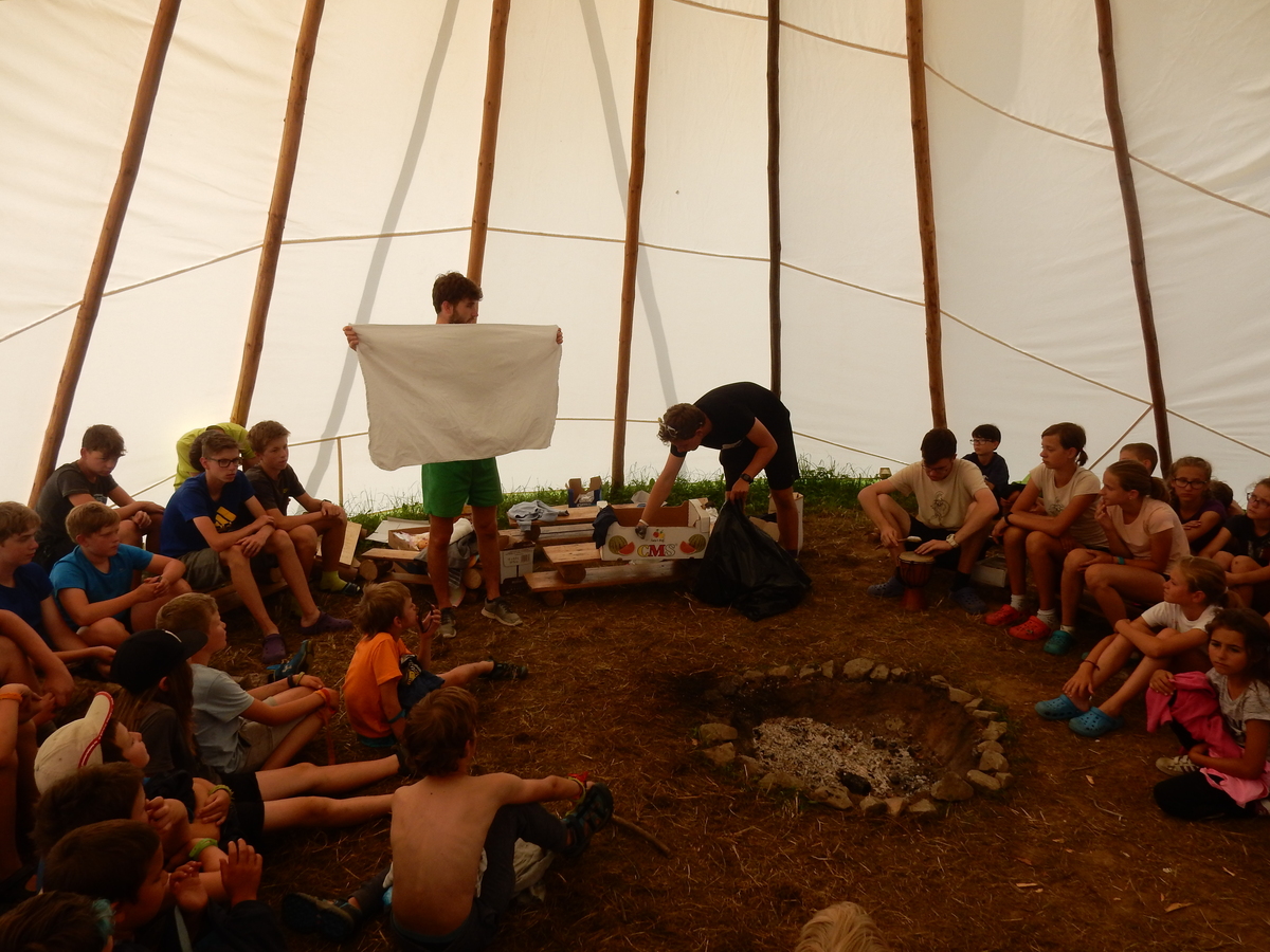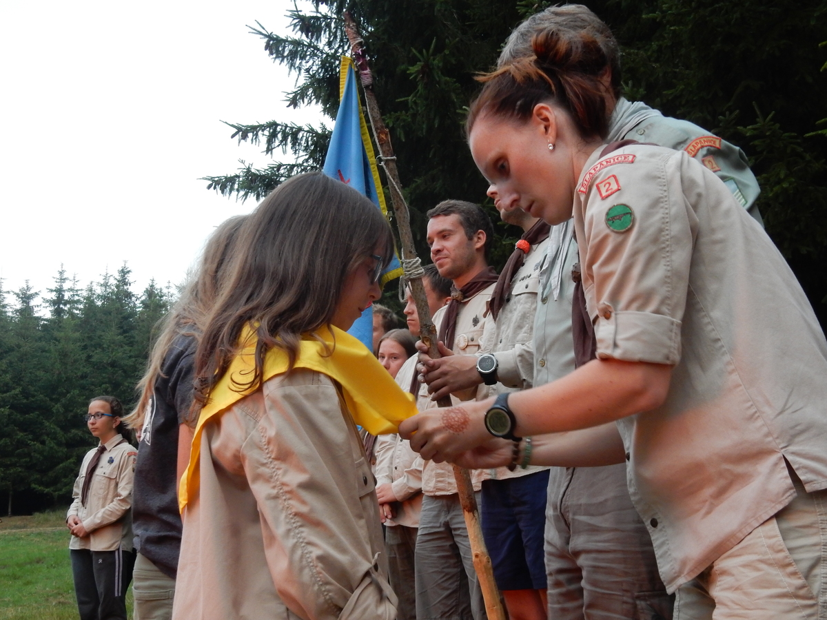 Den programem doslova nabitý. Dopoledne družinky grilují - někdo kýtu, jiný sýr, další třeba hamburgerové maso. Při tom se zpívá a pomalu se bourají týpka. V poledním klidu pak pořádá výprodejovou dražbu Žid, odpoledne se hraje Boj o totem. Při večerním nástupu svěšujeme státní vlajku a u slavnostního ohně skládá slib 12 členů oddílu. Dalších 7 zvládlo těžkou skautskou zkoušku 3 orlí pera a 4 mladší zase 3 bílé tesáky. Taky se hodnotí úklid ve stanech a dlouho do noci zpívá. Poprvé a naposledy není na táboře vyhlášena večerka :-)...