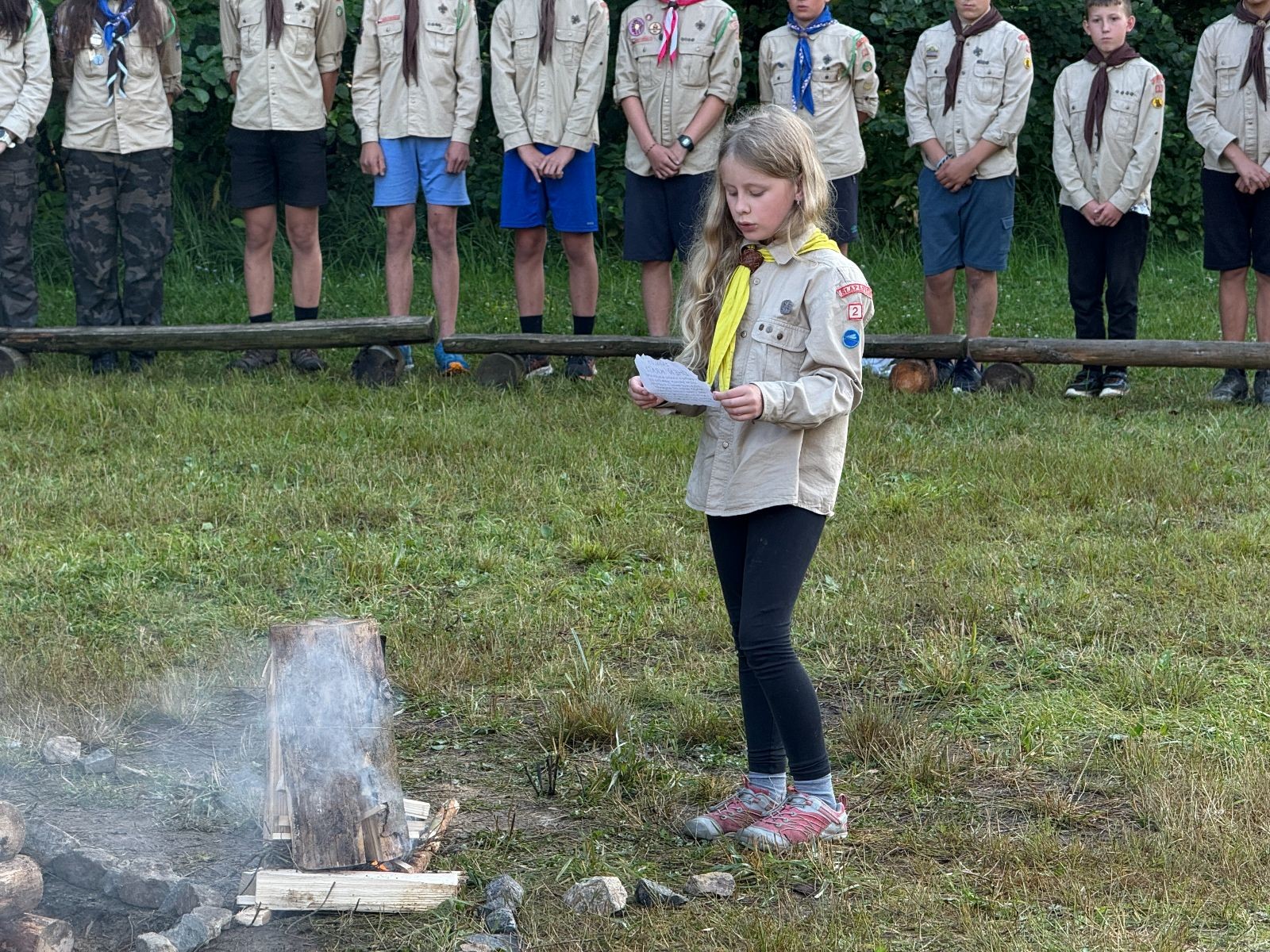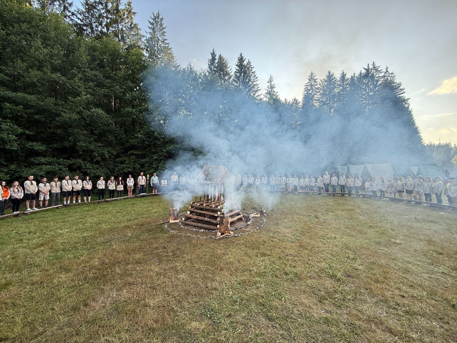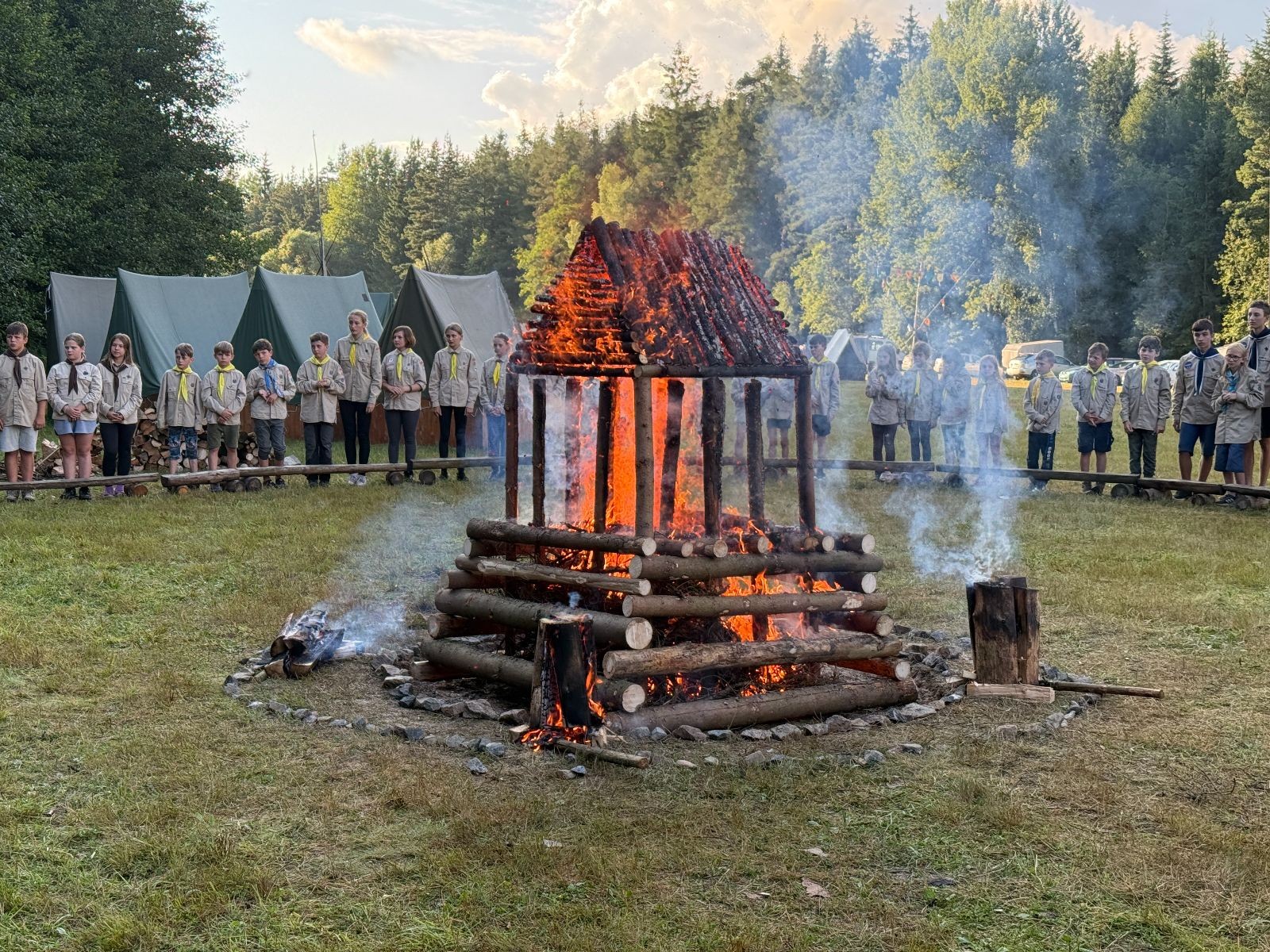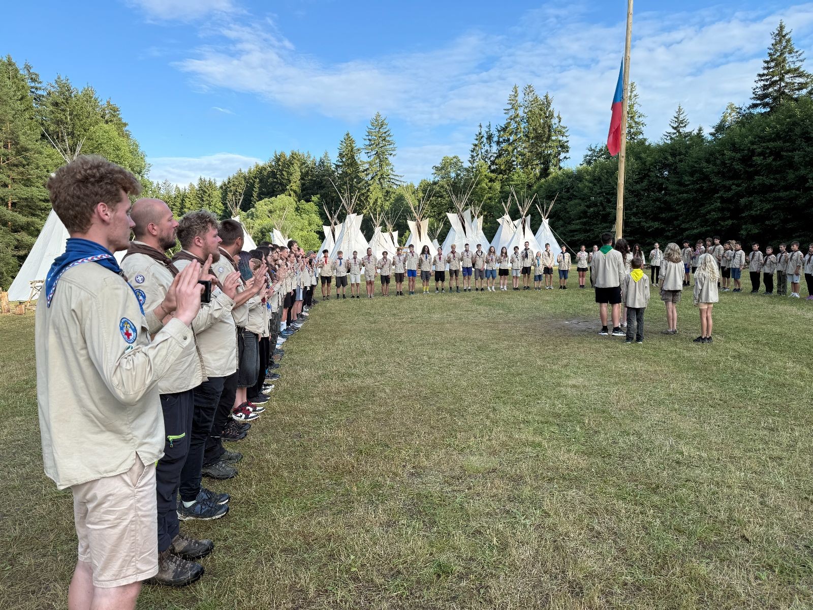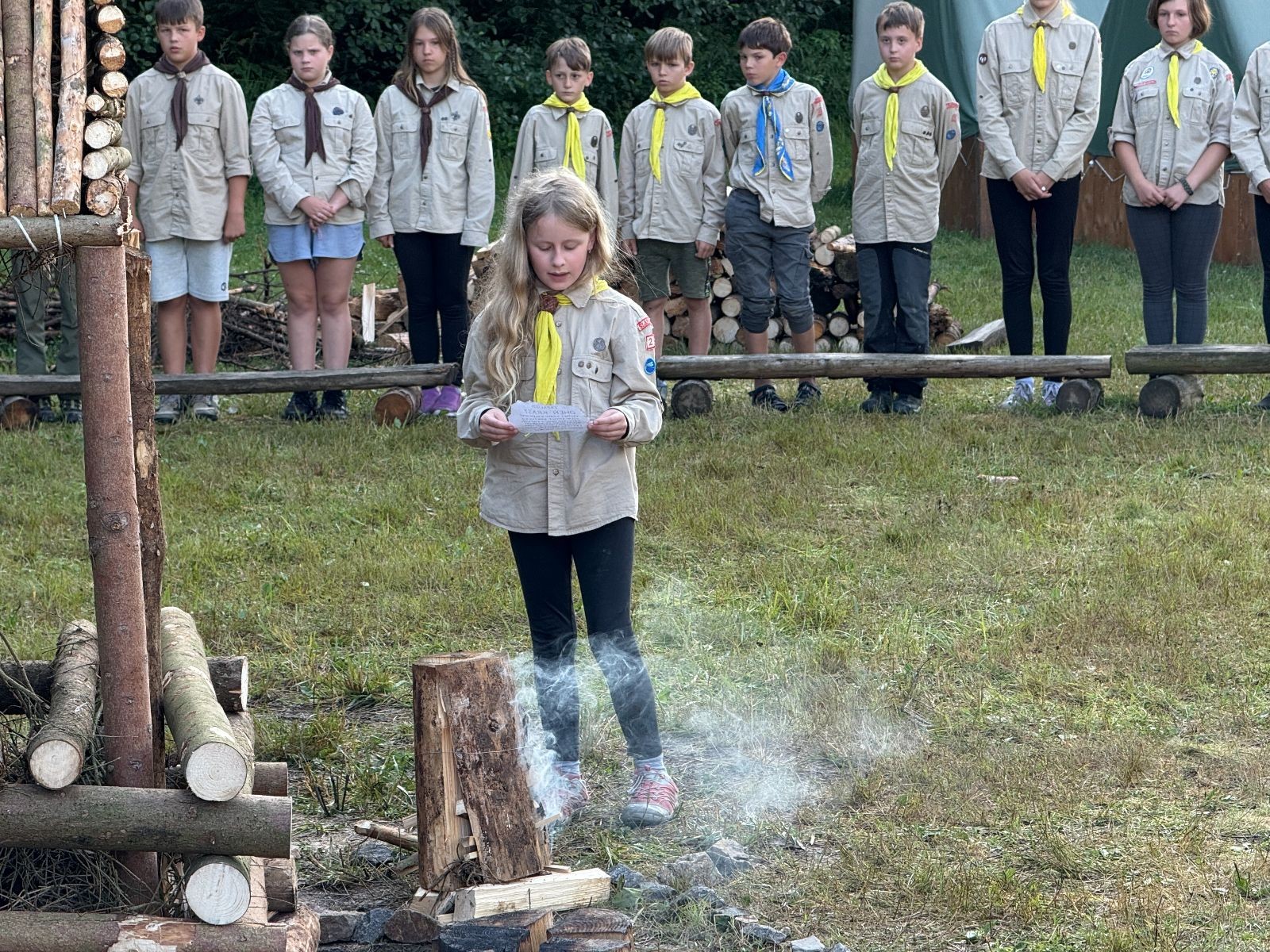 Vstáváme až v 8:30, protože celou noc leje a leje. I dopoledne leje a leje s krátkými pauzami. Naštěstí grilovat se dá i v týpí a to je hlavní náplní dnešního dopoledního programu. Taky se rozdávají poslední dopisy, Žid provádí výprodej a začínáme pomalu balit. Odpoledne sejmeme vlajku, bude poslední sněm a pak slavnostní oheň. Podle radaru od 17:00 už nemá spadnout ani kapka, tak snad to klapne… A jak řekli, tak udělali. Za zmínku stojí, že za námi na poslední táborový den a slavnostní oheň přijela spousta členů oddílu současných a bývalých. U ohně se předávaly hlavně nášivky za složené odborky, bobříky a zkoušky, a také se vyhodnocoval úklid ve stanech. Nakonec se asi do půlnoci zpívalo a u ohně byla opravdu skvělá atmosféra. Jasné nebe plné hvězd nám k tomu vytvořilo krásnou kulisu a za zmínku stojí, že tuto noc nepršelo
