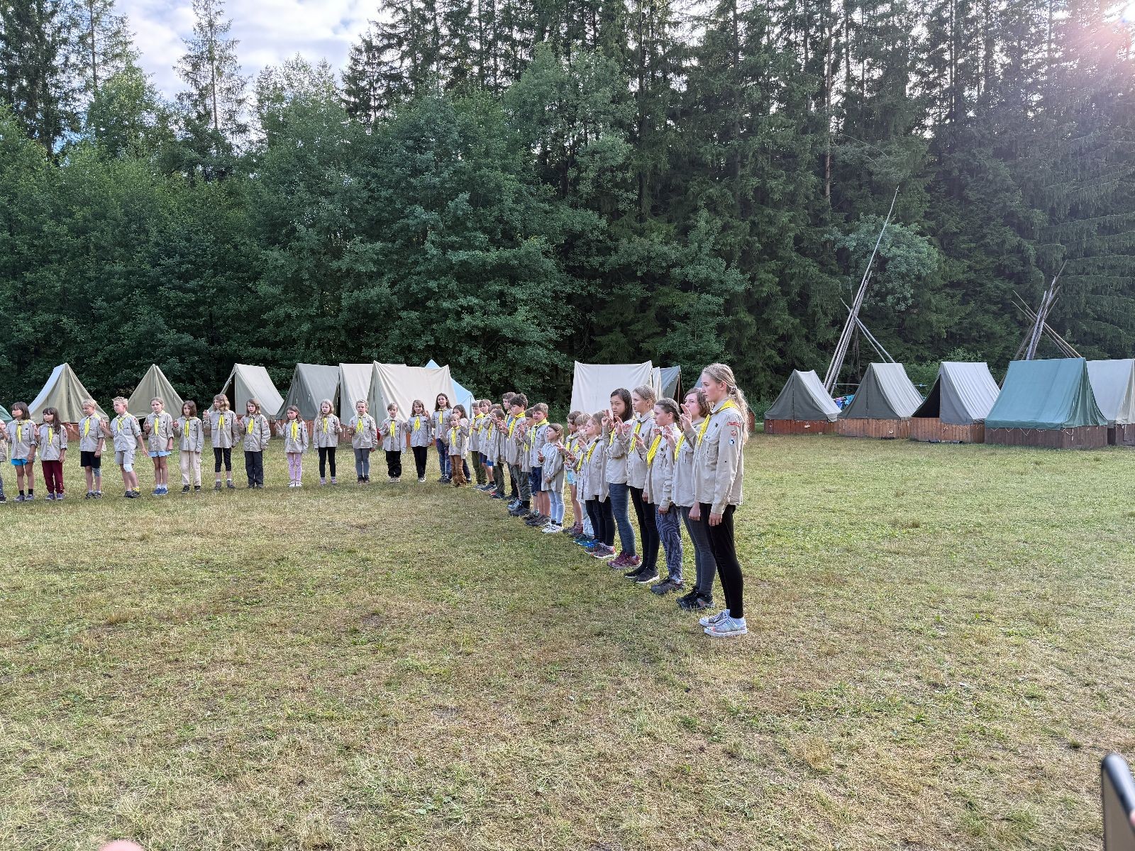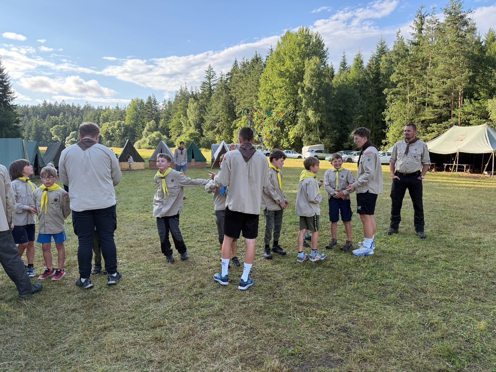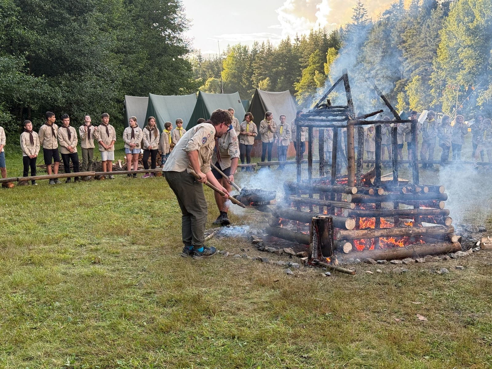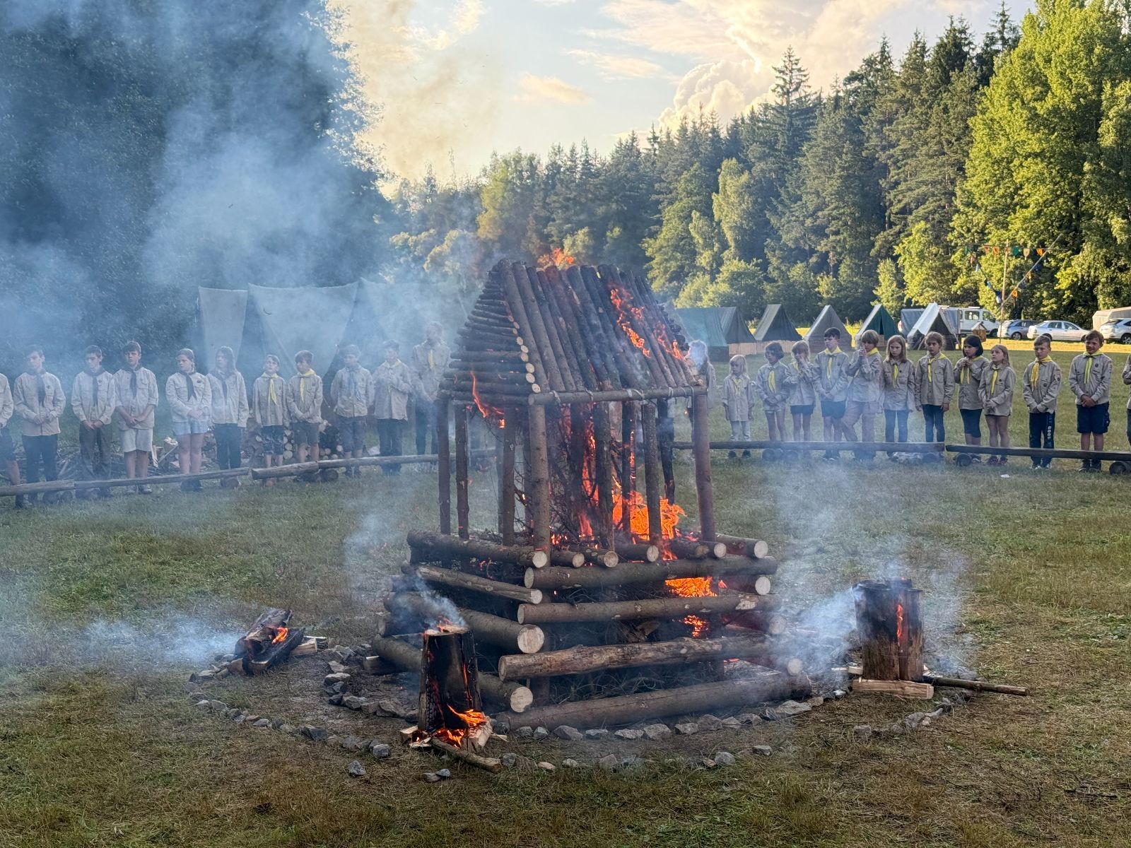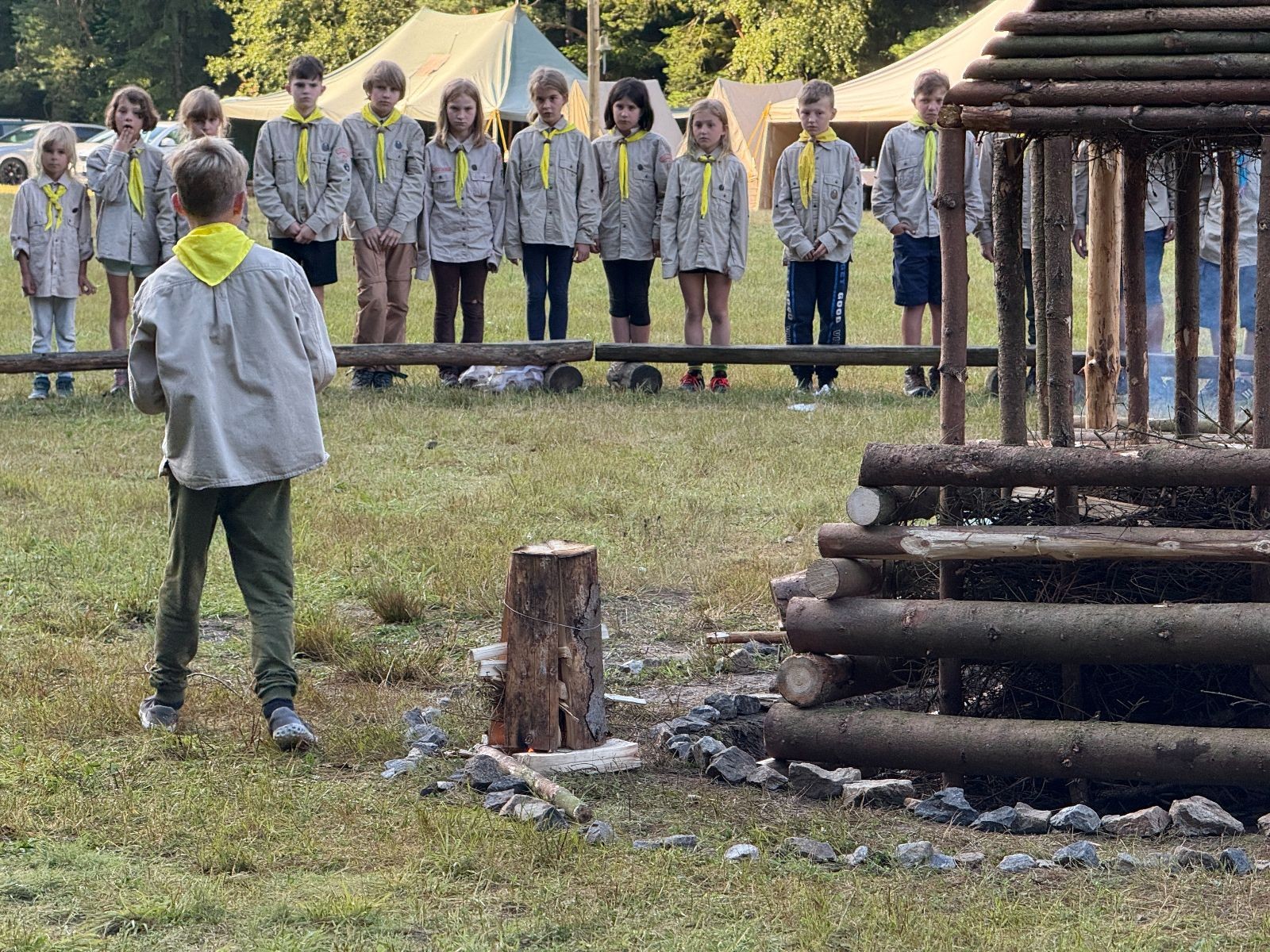 Vstáváme až v 8:30, protože celou noc leje a leje. I dopoledne leje a leje s krátkými pauzami. Naštěstí grilovat se dá i v týpí a to je hlavní náplní dnešního dopoledního programu. Taky se rozdávají poslední dopisy, Žid provádí výprodej a začínáme pomalu balit. Odpoledne sejmeme vlajku, bude poslední sněm a pak slavnostní oheň. Podle radaru od 17:00 už nemá spadnout ani kapka, tak snad to klapne… A jak řekli, tak udělali. Za zmínku stojí, že za námi na poslední táborový den a slavnostní oheň přijela spousta členů oddílu současných a bývalých. U ohně se předávaly hlavně nášivky za složené odborky, bobříky a zkoušky, a také se vyhodnocoval úklid ve stanech. Nakonec se asi do půlnoci zpívalo a u ohně byla opravdu skvělá atmosféra. Jasné nebe plné hvězd nám k tomu vytvořilo krásnou kulisu a za zmínku stojí, že tuto noc nepršelo