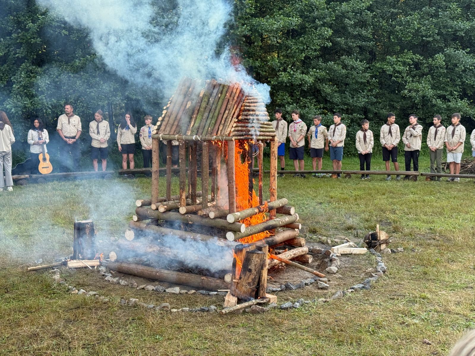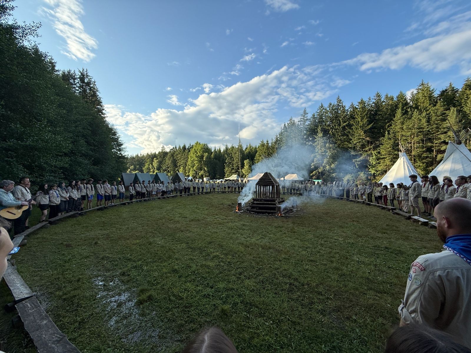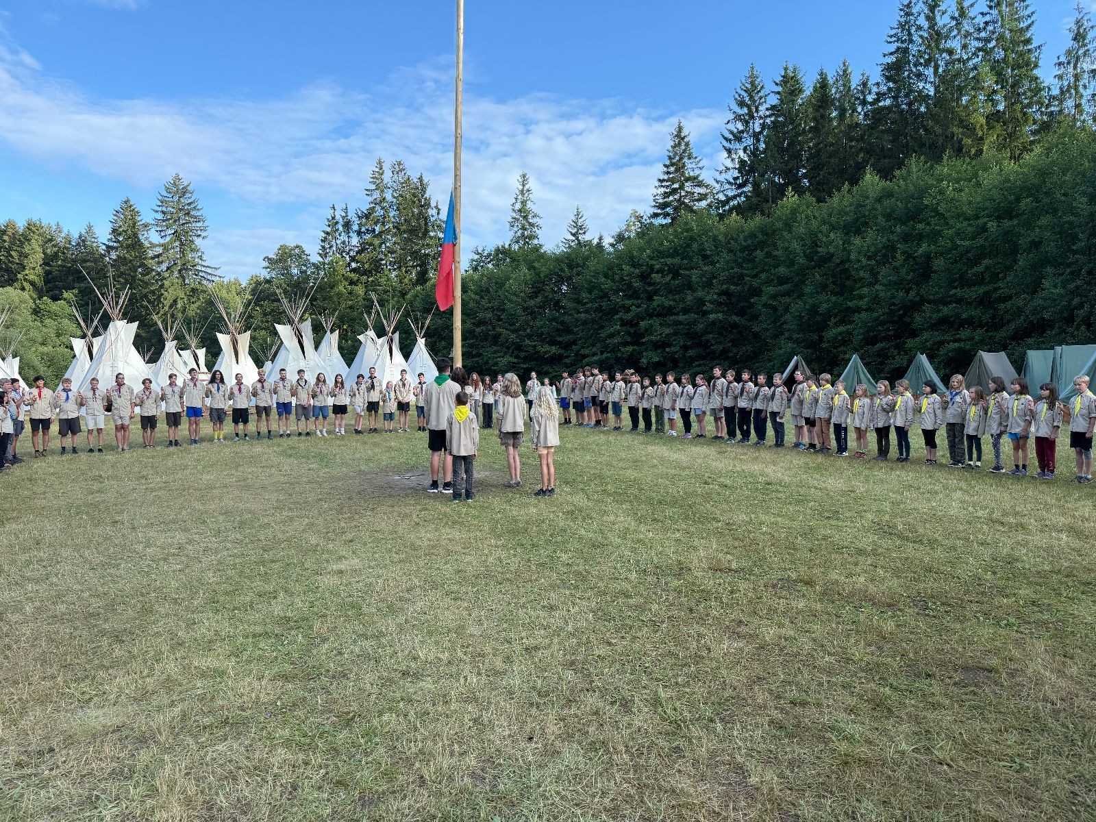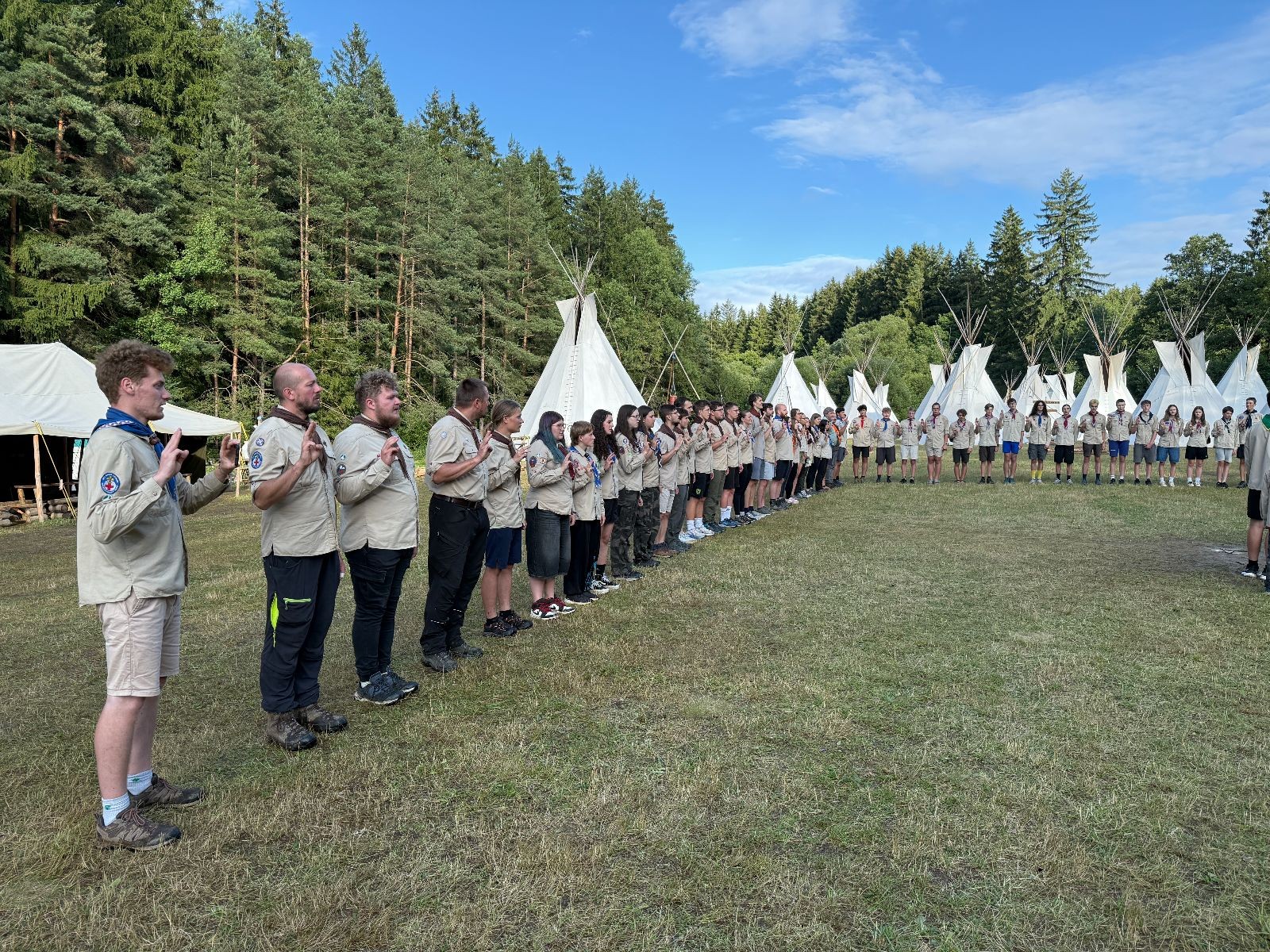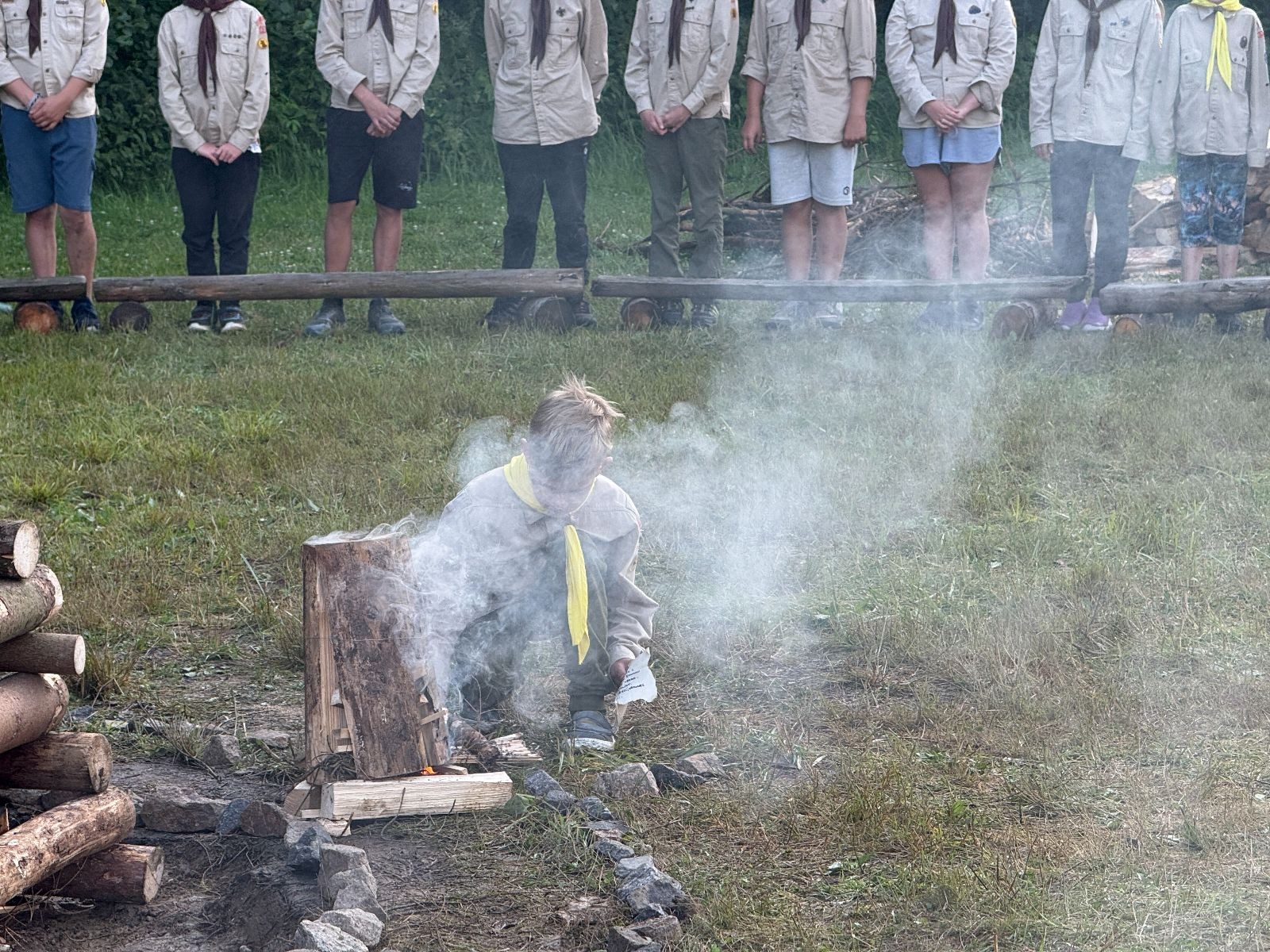 Vstáváme až v 8:30, protože celou noc leje a leje. I dopoledne leje a leje s krátkými pauzami. Naštěstí grilovat se dá i v týpí a to je hlavní náplní dnešního dopoledního programu. Taky se rozdávají poslední dopisy, Žid provádí výprodej a začínáme pomalu balit. Odpoledne sejmeme vlajku, bude poslední sněm a pak slavnostní oheň. Podle radaru od 17:00 už nemá spadnout ani kapka, tak snad to klapne… A jak řekli, tak udělali. Za zmínku stojí, že za námi na poslední táborový den a slavnostní oheň přijela spousta členů oddílu současných a bývalých. U ohně se předávaly hlavně nášivky za složené odborky, bobříky a zkoušky, a také se vyhodnocoval úklid ve stanech. Nakonec se asi do půlnoci zpívalo a u ohně byla opravdu skvělá atmosféra. Jasné nebe plné hvězd nám k tomu vytvořilo krásnou kulisu a za zmínku stojí, že tuto noc nepršelo