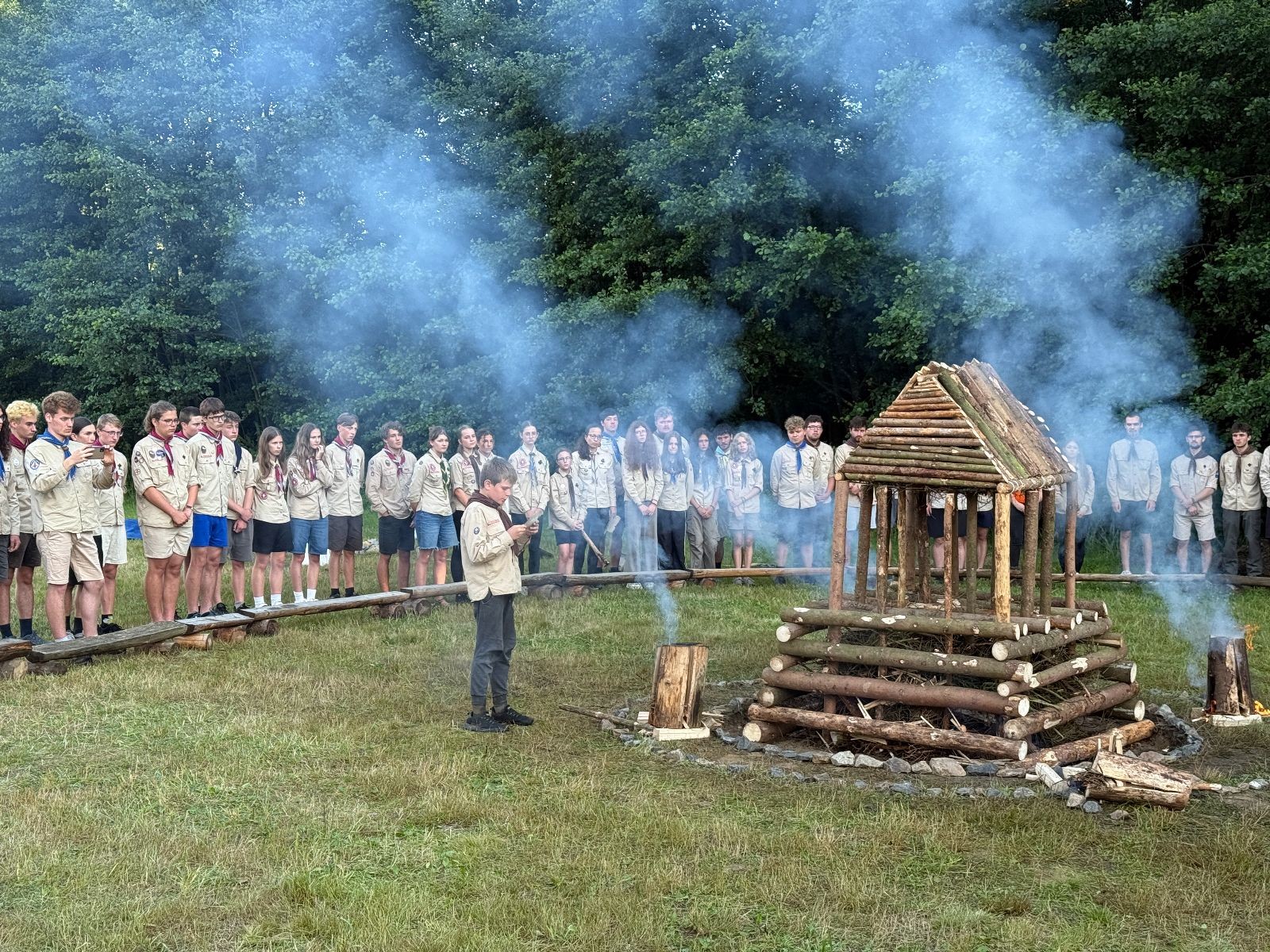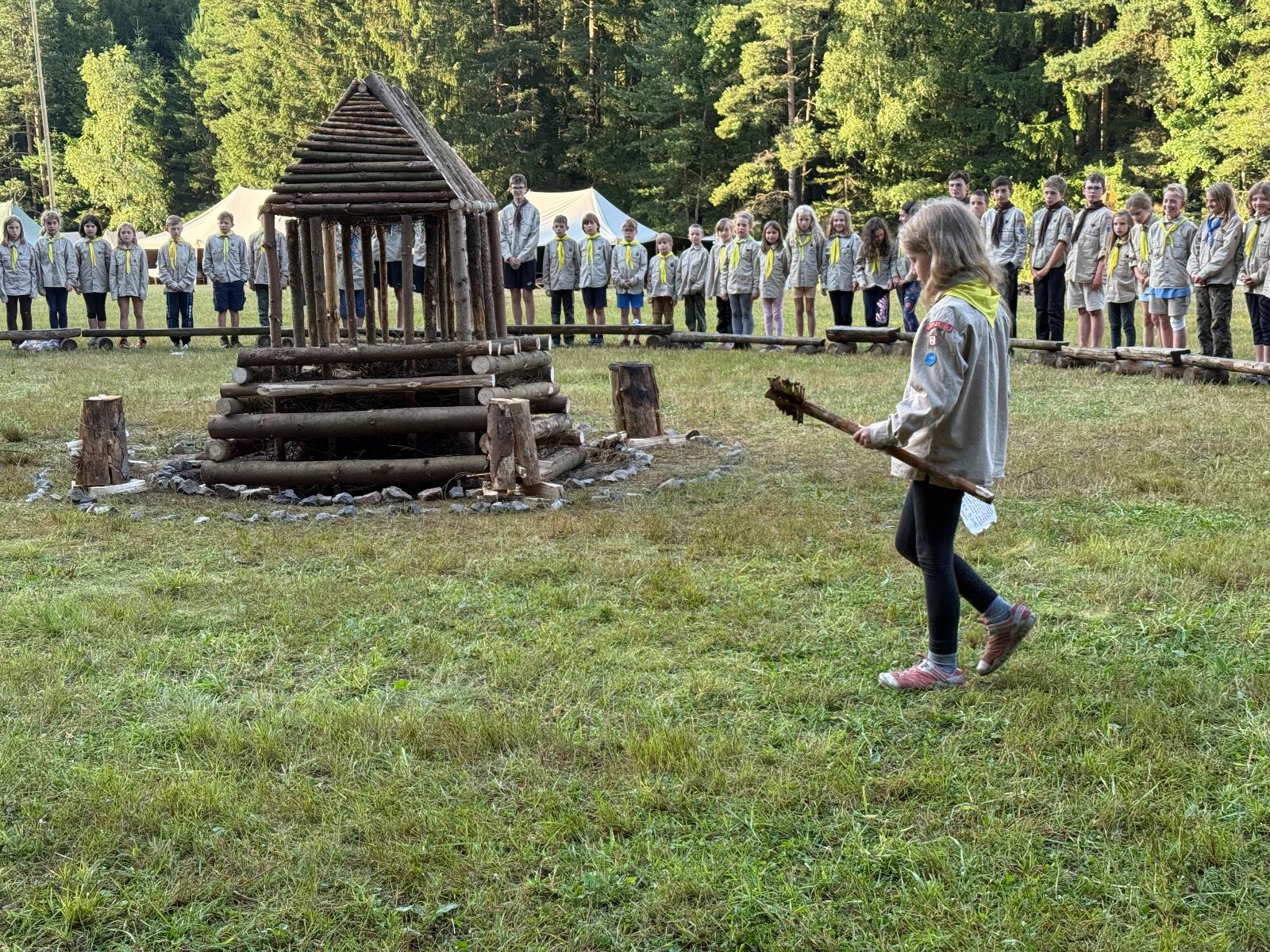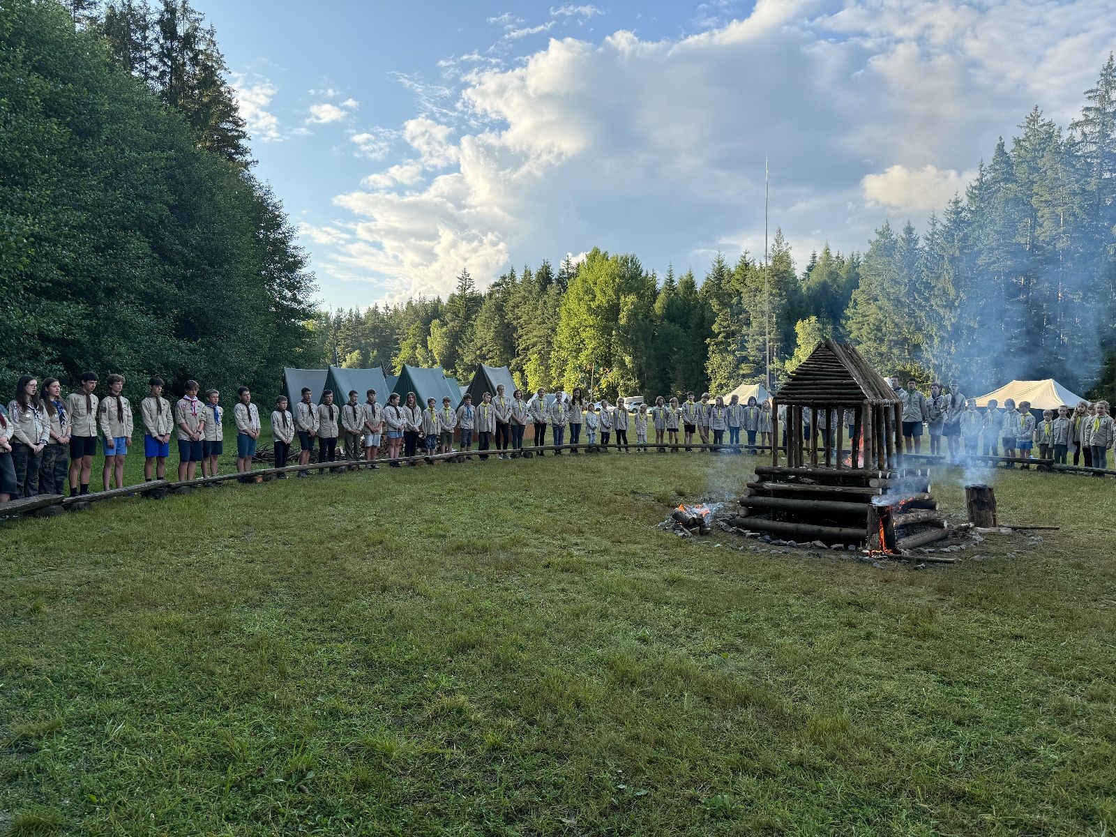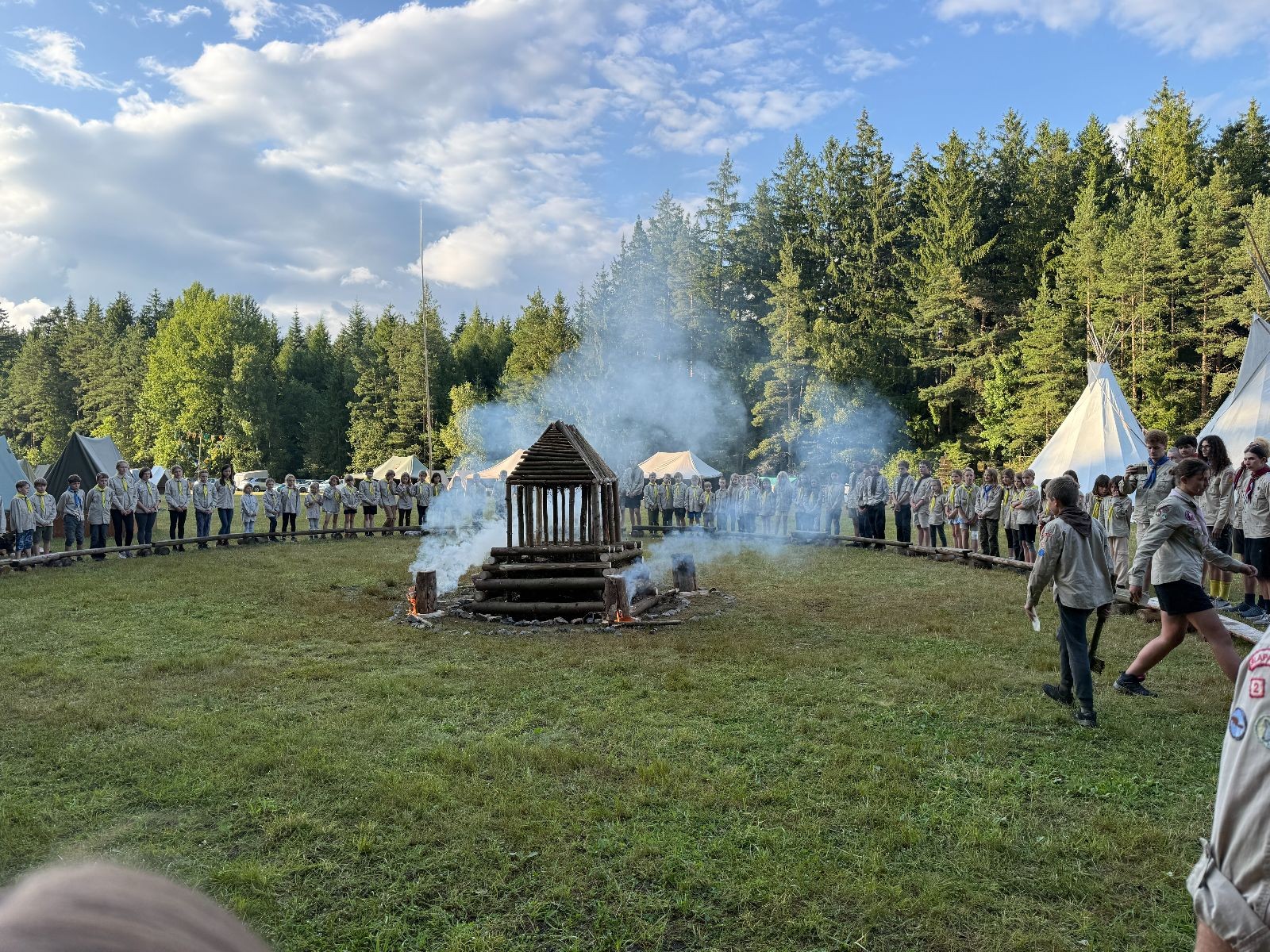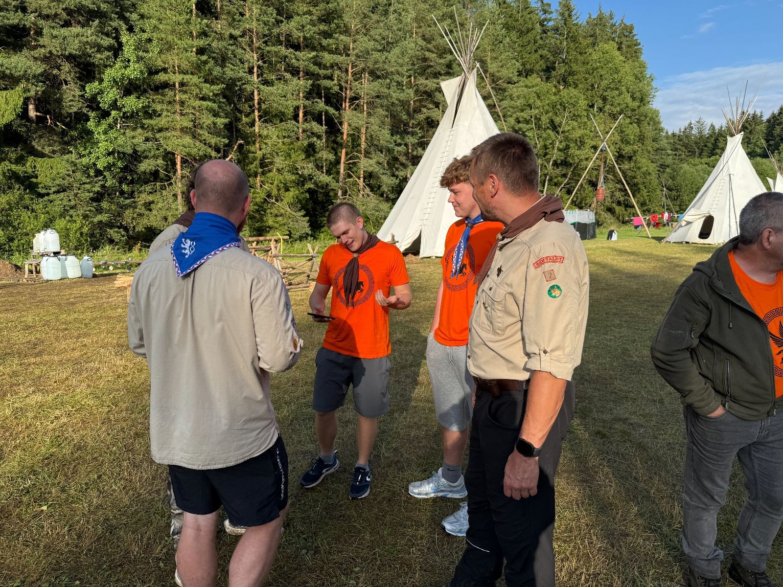 Vstáváme až v 8:30, protože celou noc leje a leje. I dopoledne leje a leje s krátkými pauzami. Naštěstí grilovat se dá i v týpí a to je hlavní náplní dnešního dopoledního programu. Taky se rozdávají poslední dopisy, Žid provádí výprodej a začínáme pomalu balit. Odpoledne sejmeme vlajku, bude poslední sněm a pak slavnostní oheň. Podle radaru od 17:00 už nemá spadnout ani kapka, tak snad to klapne… A jak řekli, tak udělali. Za zmínku stojí, že za námi na poslední táborový den a slavnostní oheň přijela spousta členů oddílu současných a bývalých. U ohně se předávaly hlavně nášivky za složené odborky, bobříky a zkoušky, a také se vyhodnocoval úklid ve stanech. Nakonec se asi do půlnoci zpívalo a u ohně byla opravdu skvělá atmosféra. Jasné nebe plné hvězd nám k tomu vytvořilo krásnou kulisu a za zmínku stojí, že tuto noc nepršelo