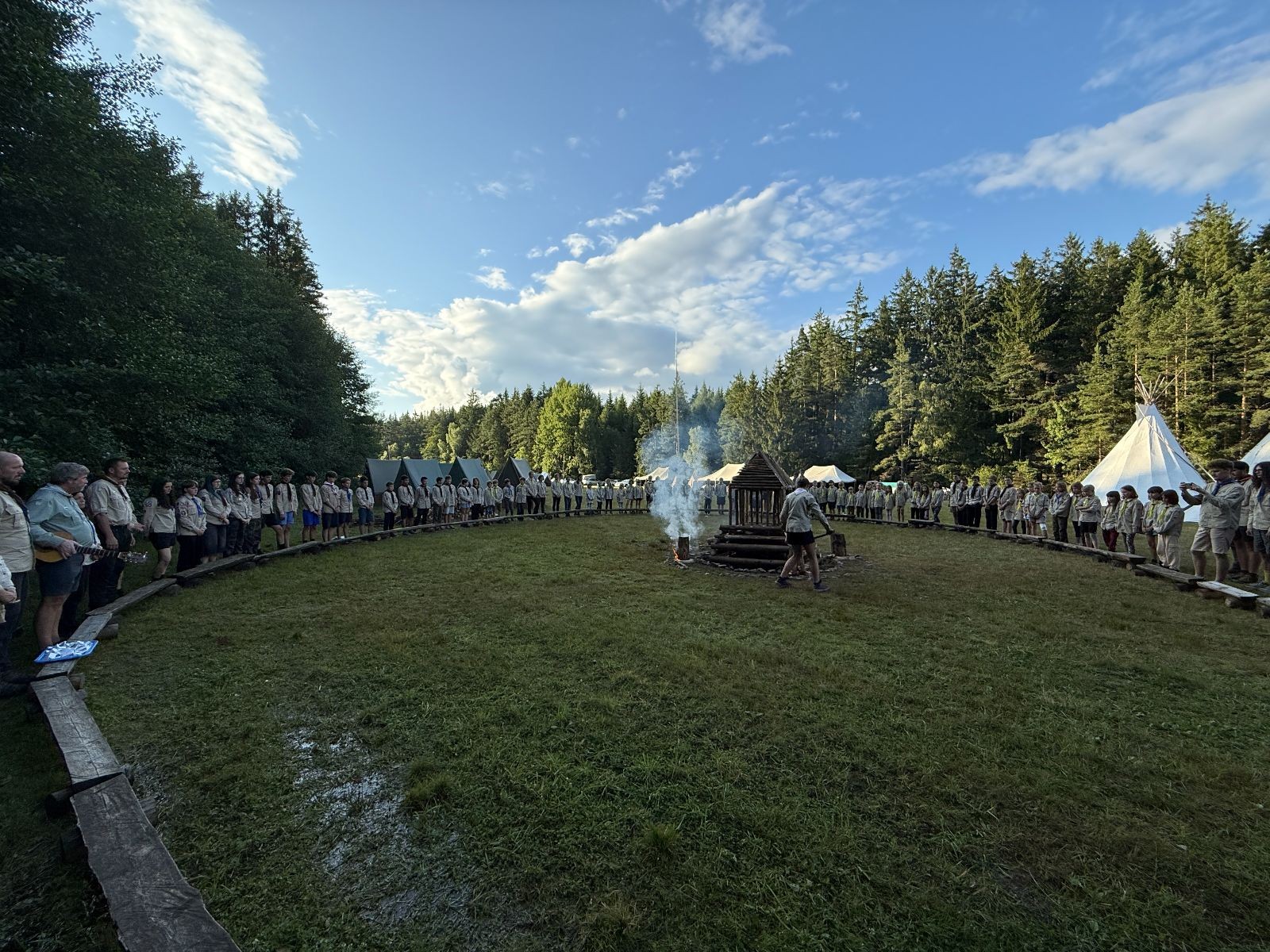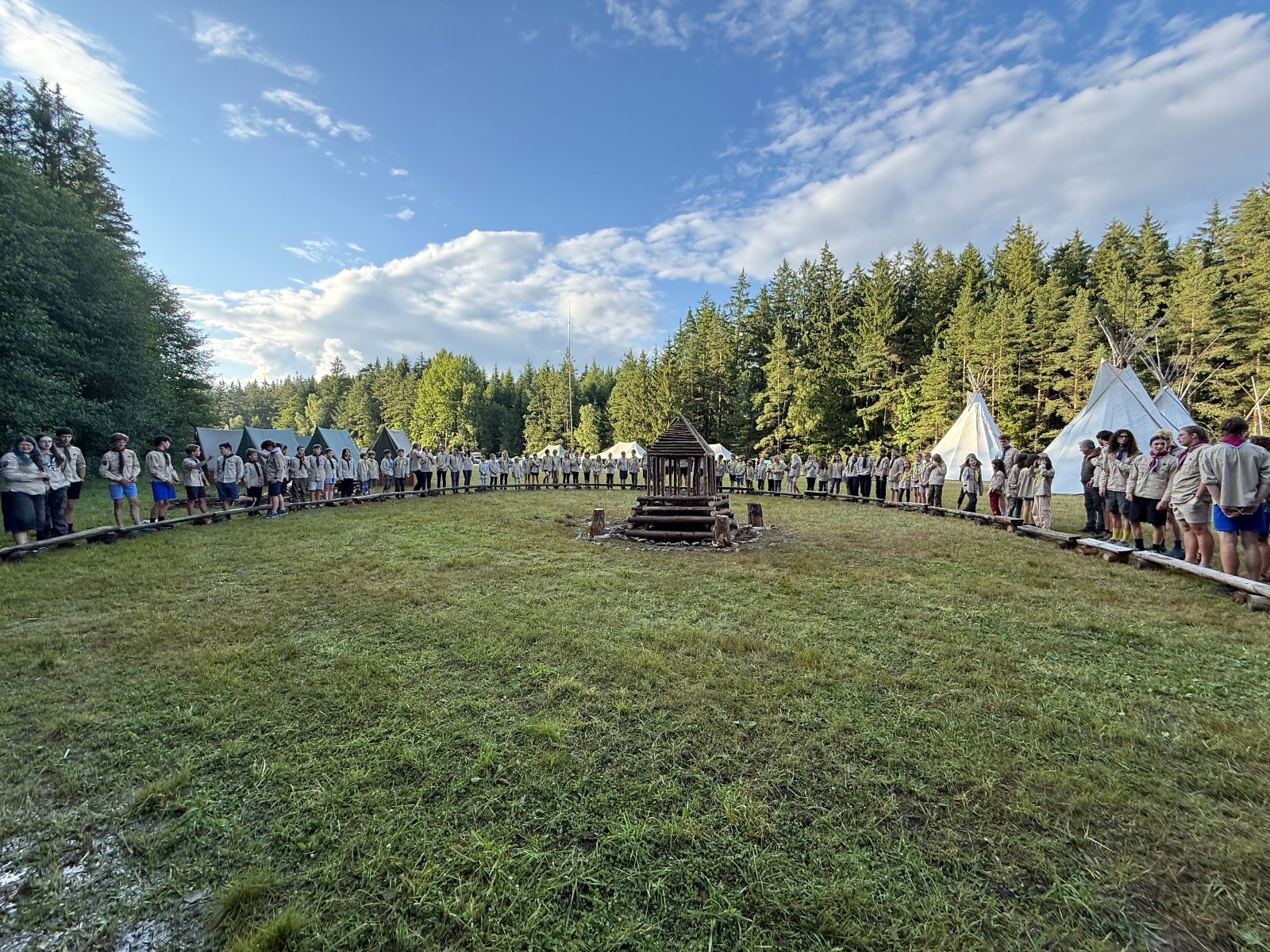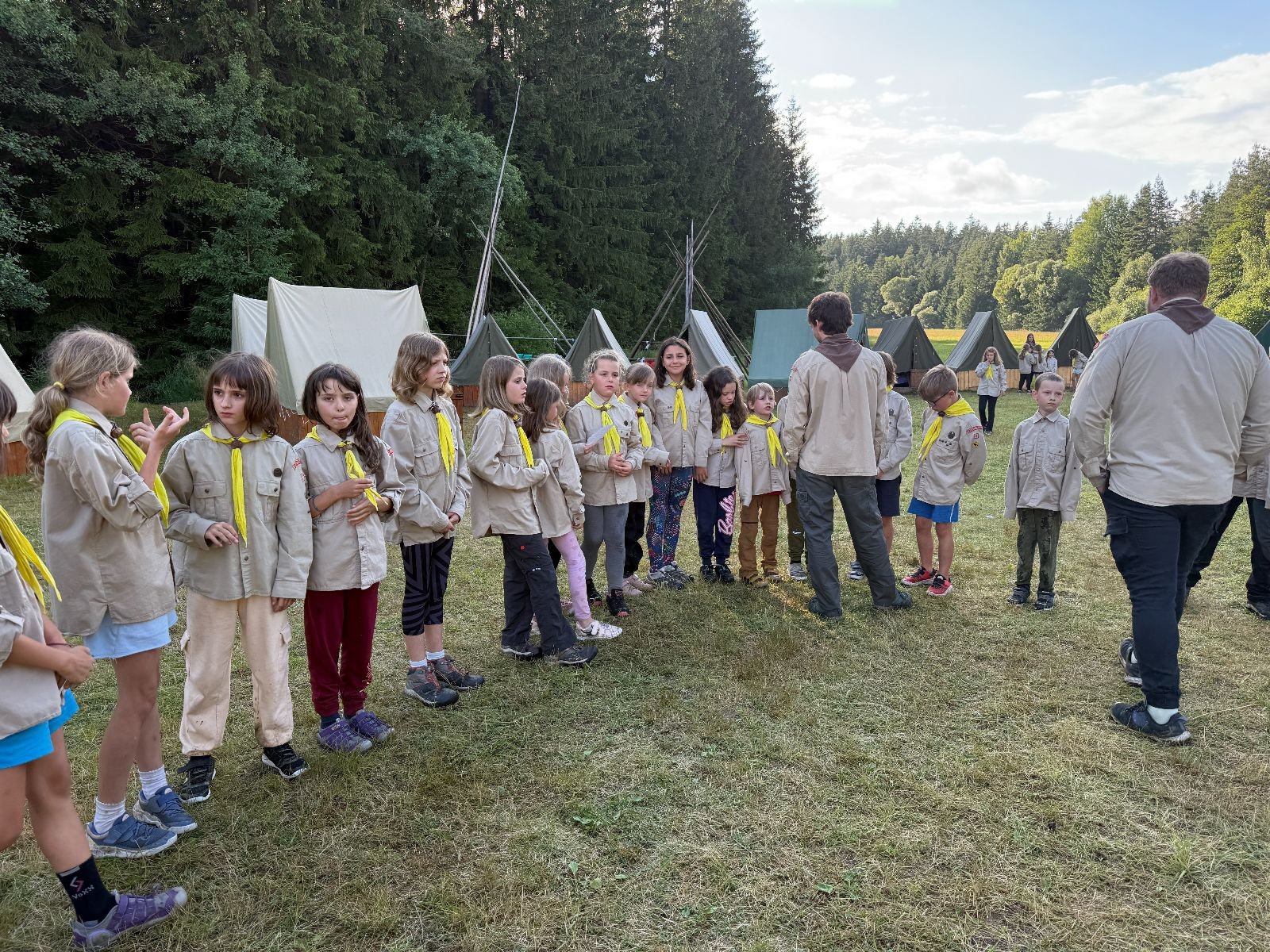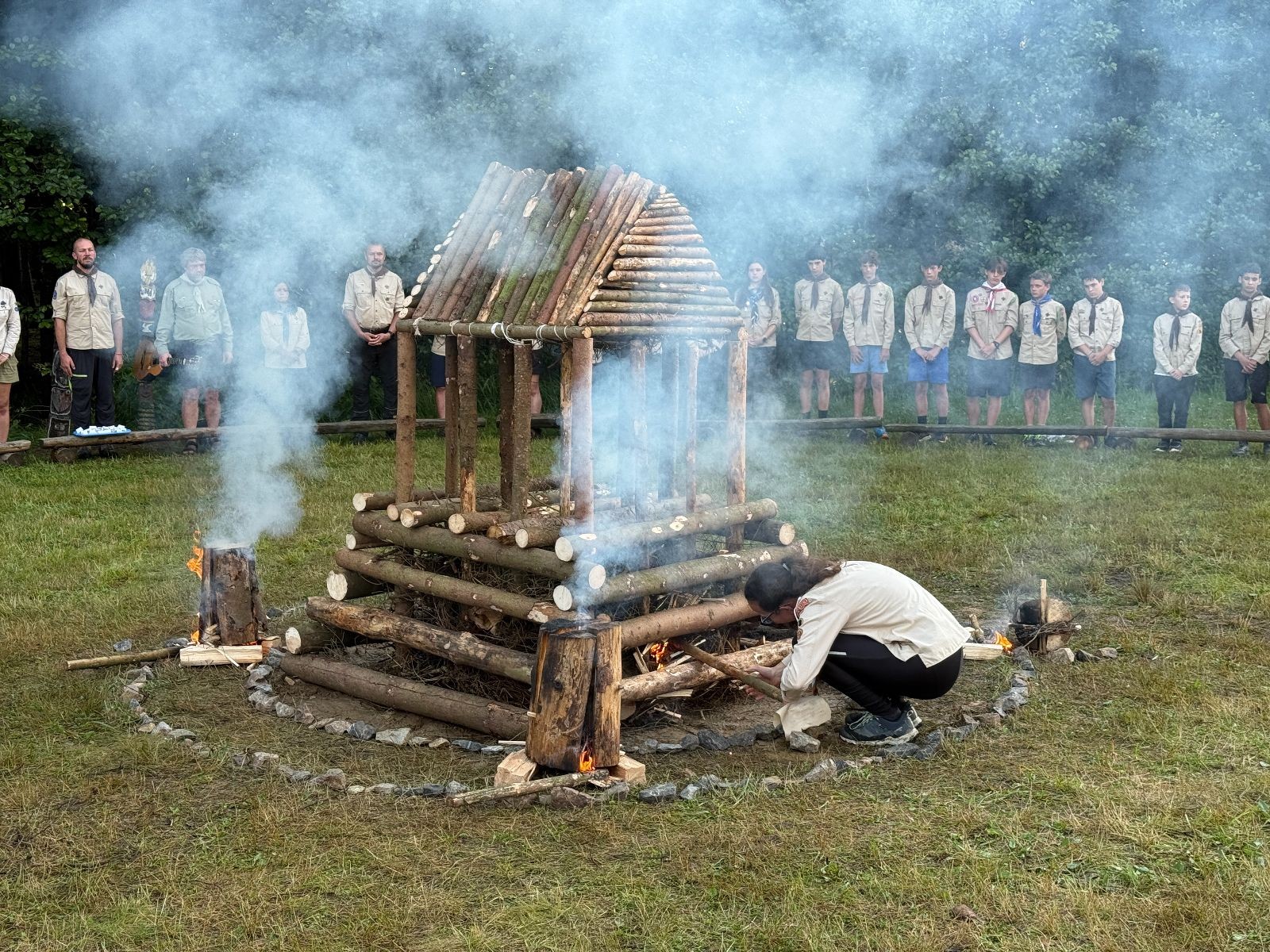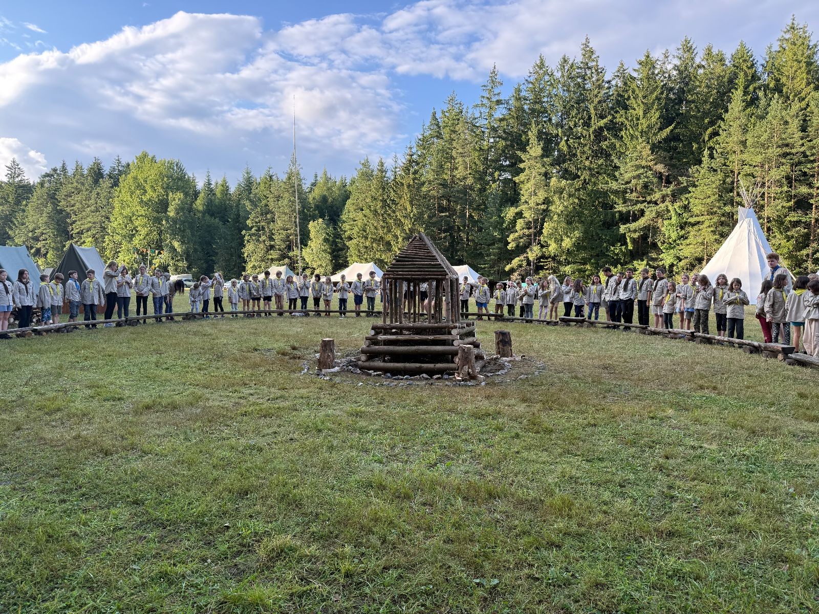 Vstáváme až v 8:30, protože celou noc leje a leje. I dopoledne leje a leje s krátkými pauzami. Naštěstí grilovat se dá i v týpí a to je hlavní náplní dnešního dopoledního programu. Taky se rozdávají poslední dopisy, Žid provádí výprodej a začínáme pomalu balit. Odpoledne sejmeme vlajku, bude poslední sněm a pak slavnostní oheň. Podle radaru od 17:00 už nemá spadnout ani kapka, tak snad to klapne… A jak řekli, tak udělali. Za zmínku stojí, že za námi na poslední táborový den a slavnostní oheň přijela spousta členů oddílu současných a bývalých. U ohně se předávaly hlavně nášivky za složené odborky, bobříky a zkoušky, a také se vyhodnocoval úklid ve stanech. Nakonec se asi do půlnoci zpívalo a u ohně byla opravdu skvělá atmosféra. Jasné nebe plné hvězd nám k tomu vytvořilo krásnou kulisu a za zmínku stojí, že tuto noc nepršelo
