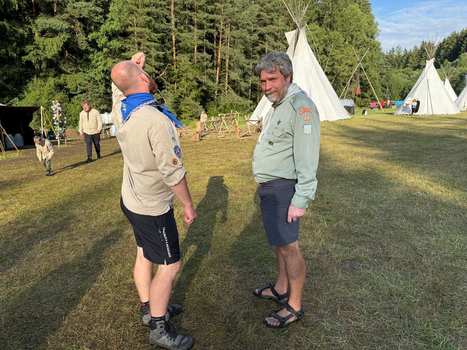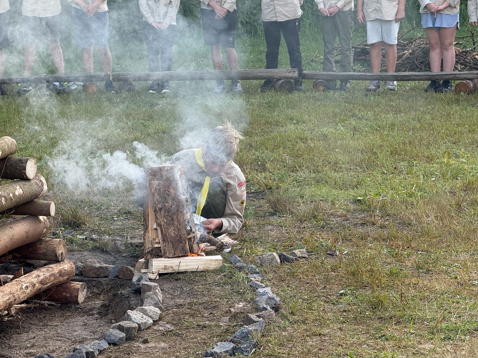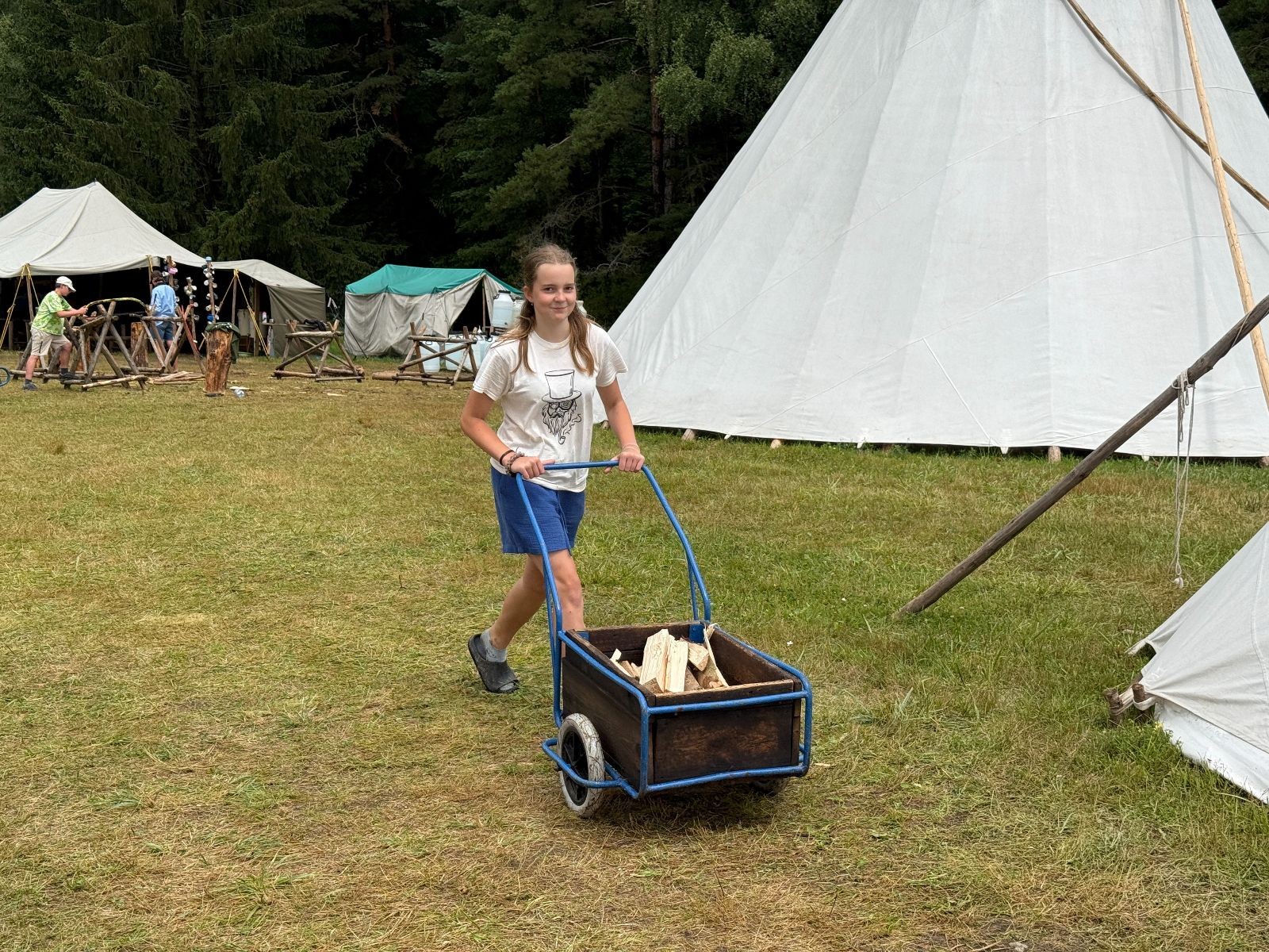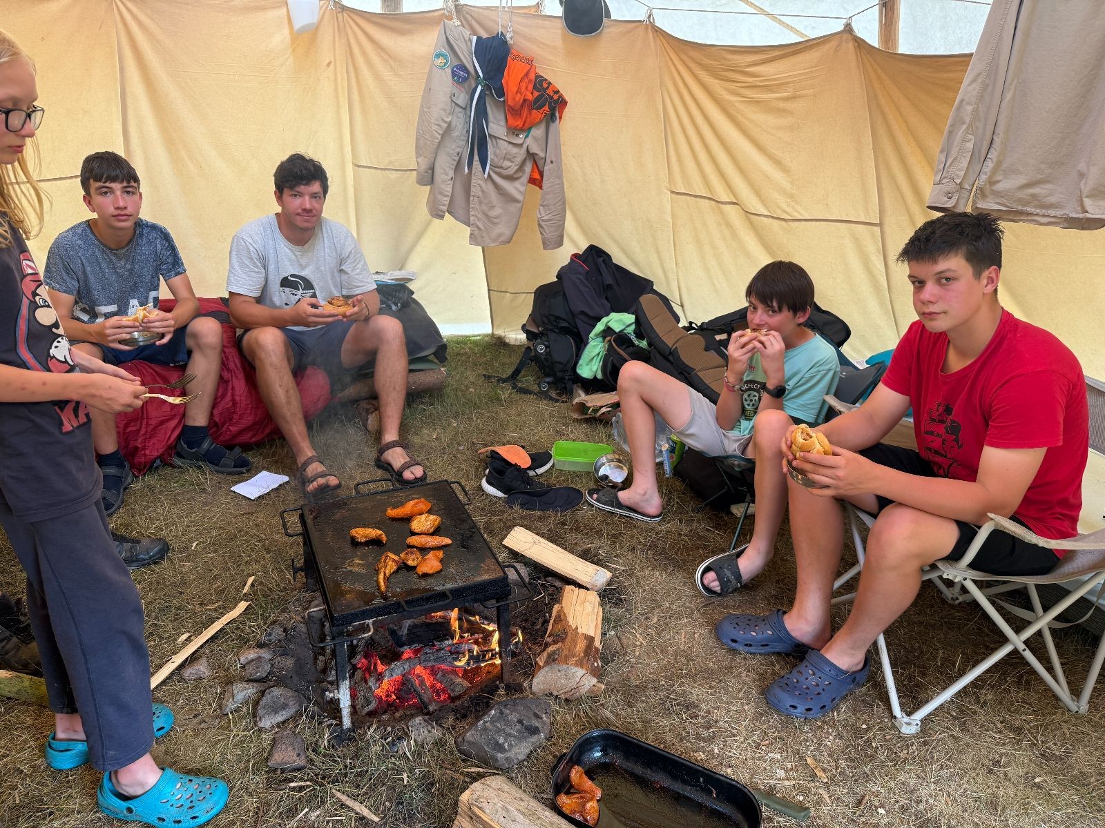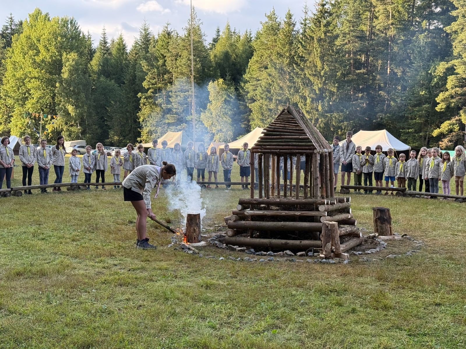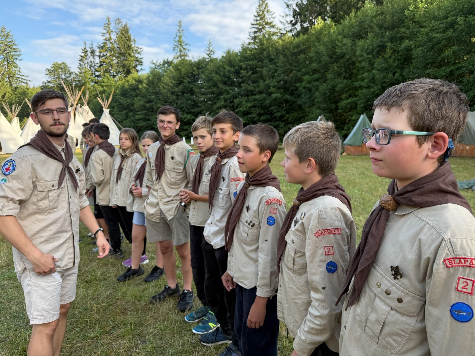 Vstáváme až v 8:30, protože celou noc leje a leje. I dopoledne leje a leje s krátkými pauzami. Naštěstí grilovat se dá i v týpí a to je hlavní náplní dnešního dopoledního programu. Taky se rozdávají poslední dopisy, Žid provádí výprodej a začínáme pomalu balit. Odpoledne sejmeme vlajku, bude poslední sněm a pak slavnostní oheň. Podle radaru od 17:00 už nemá spadnout ani kapka, tak snad to klapne… A jak řekli, tak udělali. Za zmínku stojí, že za námi na poslední táborový den a slavnostní oheň přijela spousta členů oddílu současných a bývalých. U ohně se předávaly hlavně nášivky za složené odborky, bobříky a zkoušky, a také se vyhodnocoval úklid ve stanech. Nakonec se asi do půlnoci zpívalo a u ohně byla opravdu skvělá atmosféra. Jasné nebe plné hvězd nám k tomu vytvořilo krásnou kulisu a za zmínku stojí, že tuto noc nepršelo