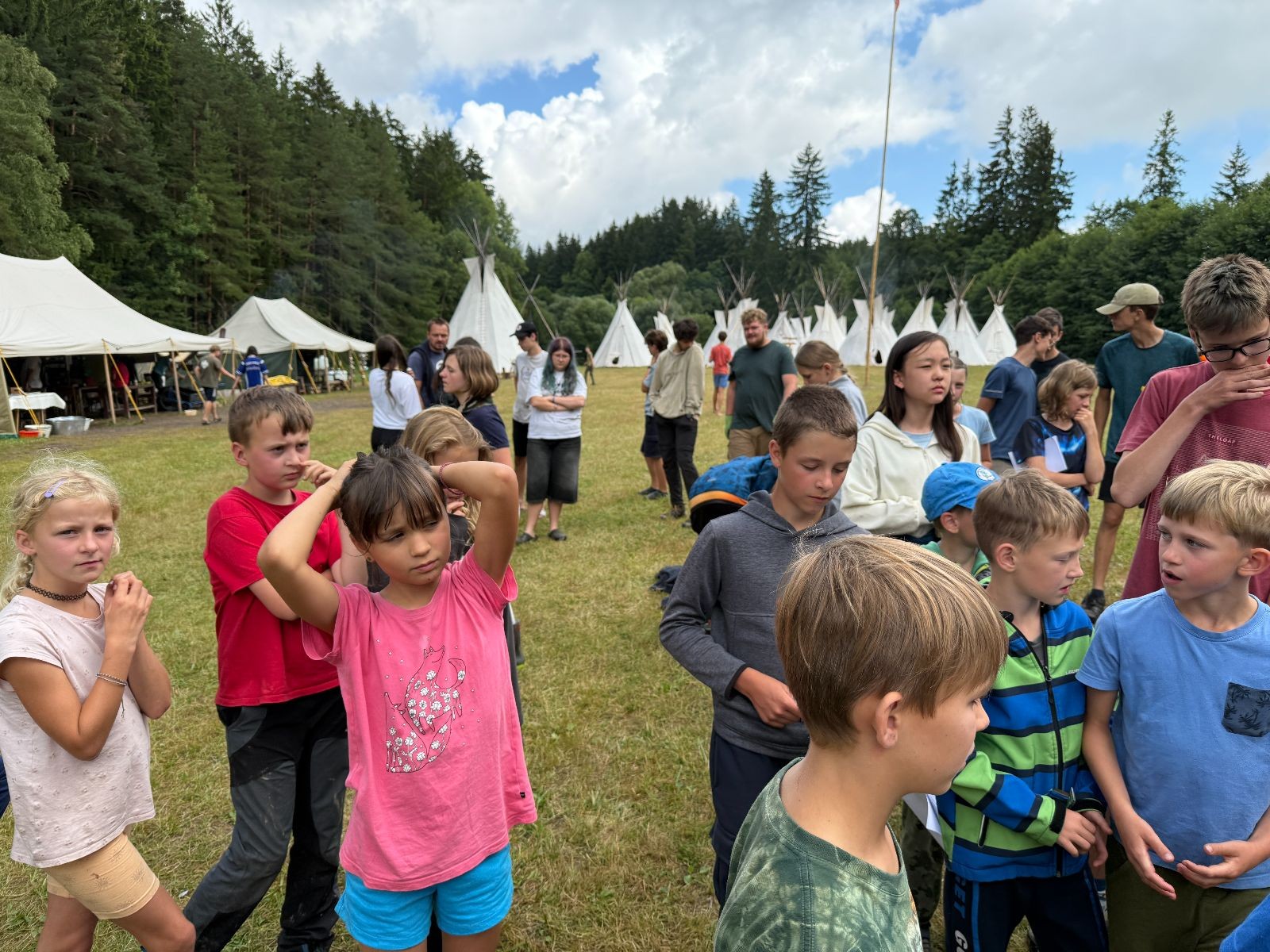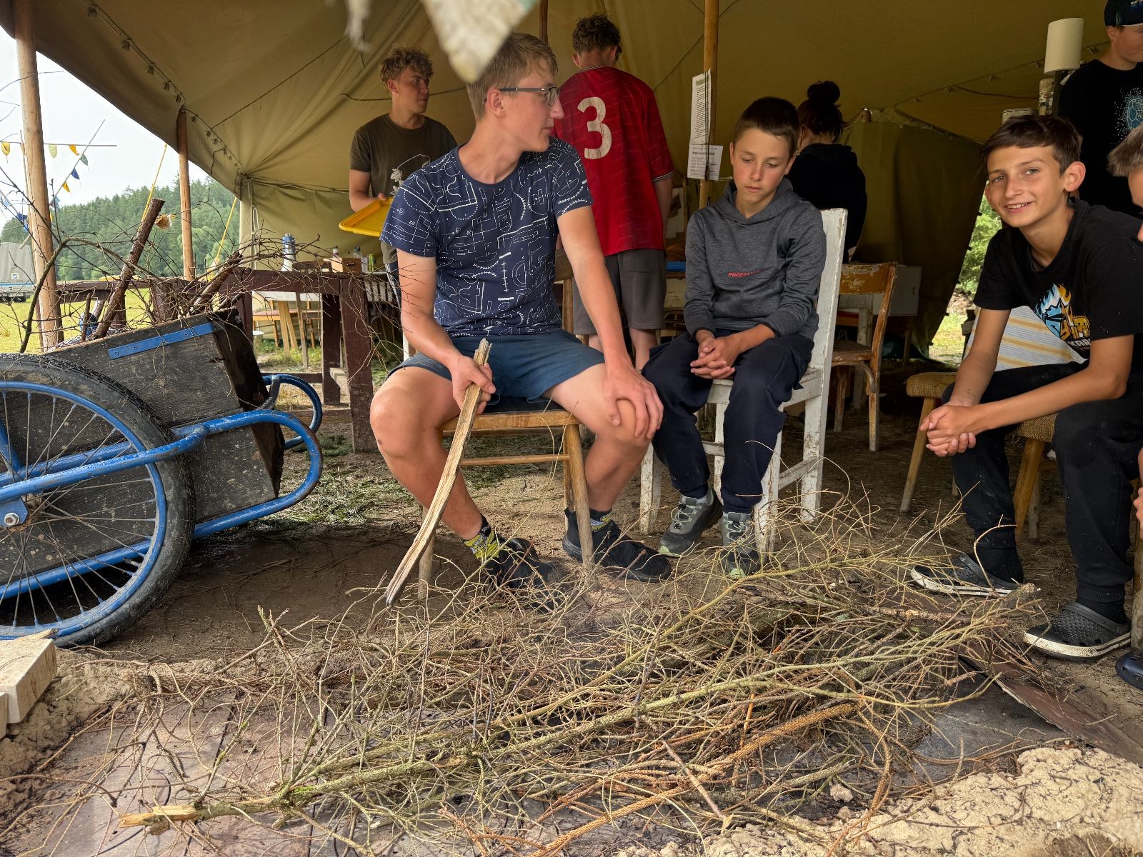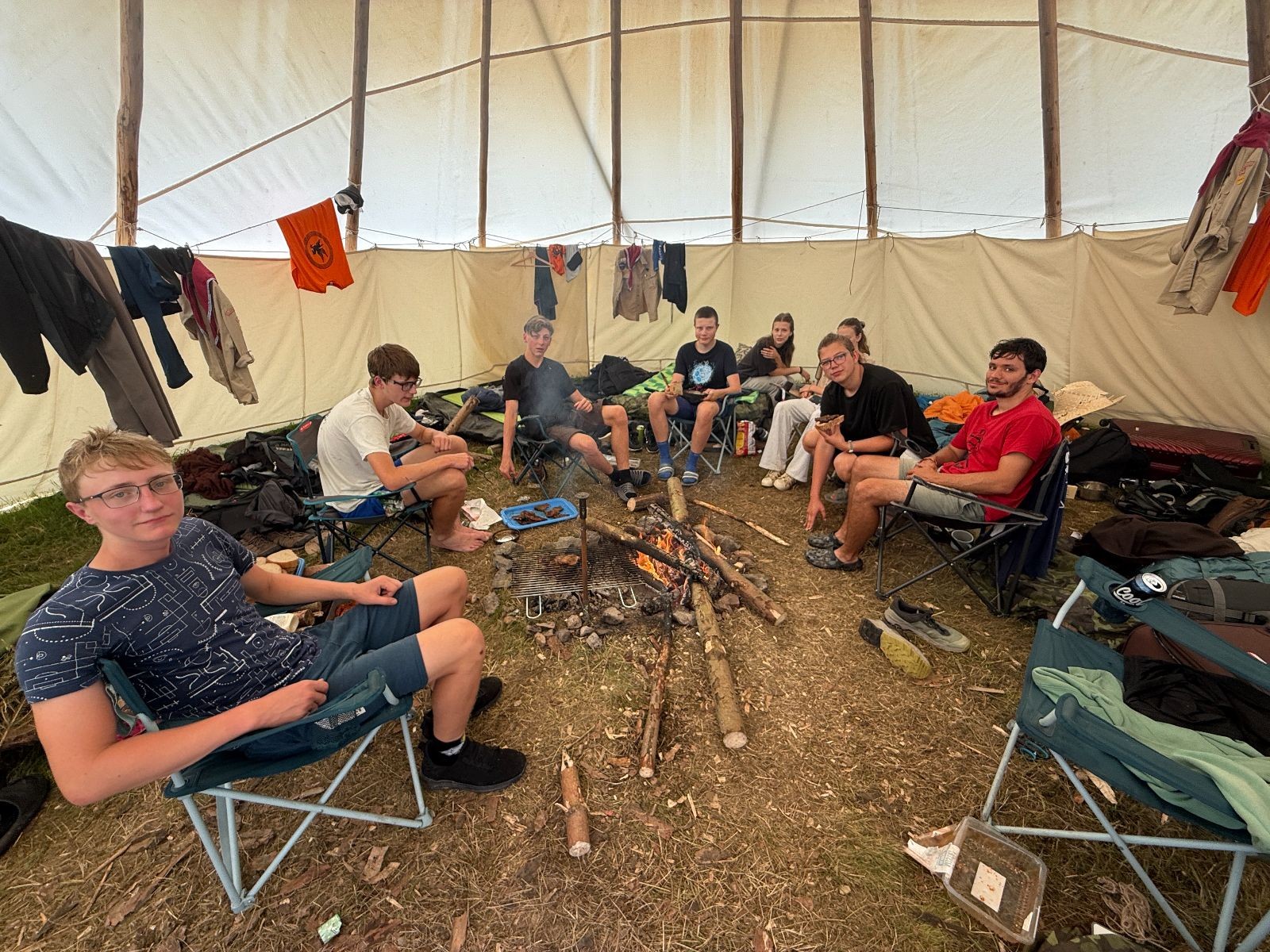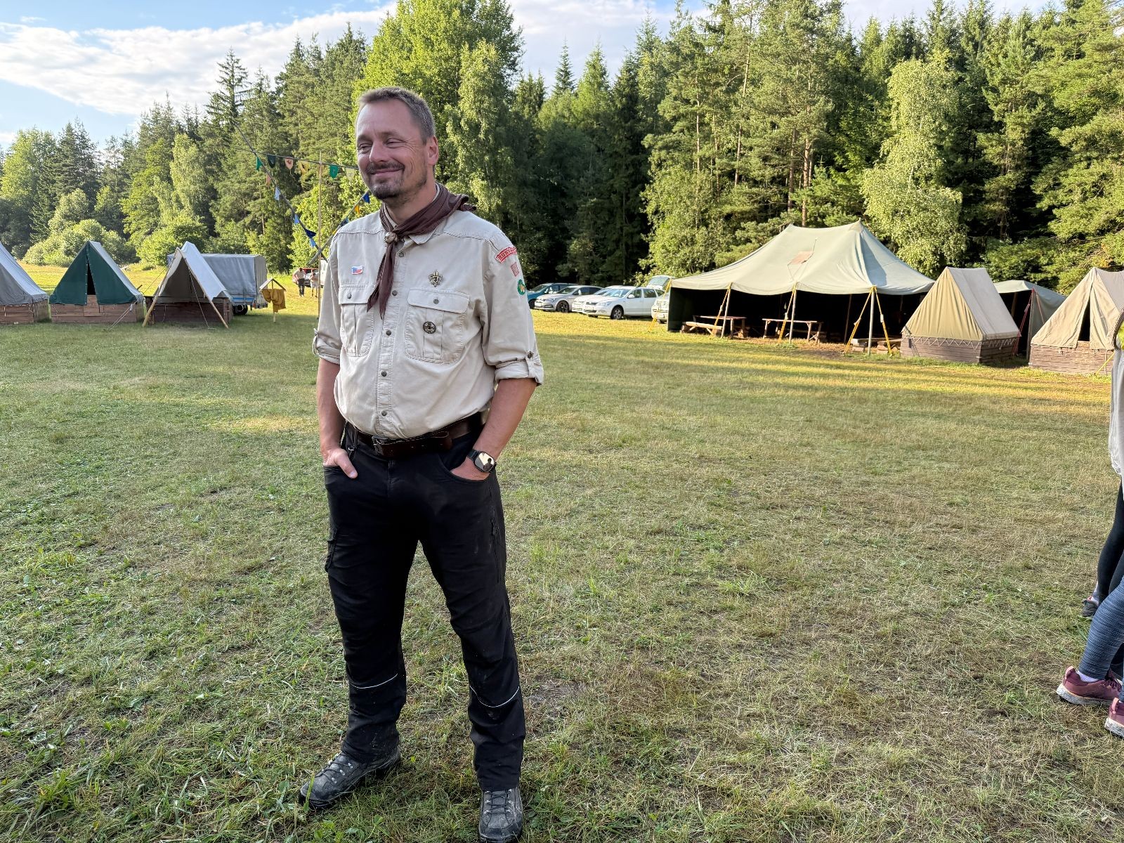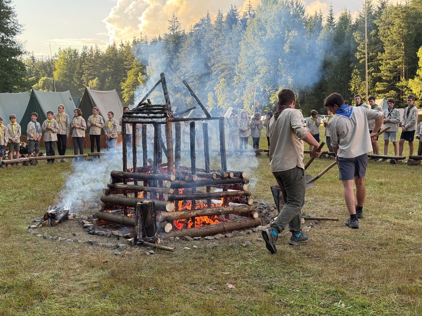 Vstáváme až v 8:30, protože celou noc leje a leje. I dopoledne leje a leje s krátkými pauzami. Naštěstí grilovat se dá i v týpí a to je hlavní náplní dnešního dopoledního programu. Taky se rozdávají poslední dopisy, Žid provádí výprodej a začínáme pomalu balit. Odpoledne sejmeme vlajku, bude poslední sněm a pak slavnostní oheň. Podle radaru od 17:00 už nemá spadnout ani kapka, tak snad to klapne… A jak řekli, tak udělali. Za zmínku stojí, že za námi na poslední táborový den a slavnostní oheň přijela spousta členů oddílu současných a bývalých. U ohně se předávaly hlavně nášivky za složené odborky, bobříky a zkoušky, a také se vyhodnocoval úklid ve stanech. Nakonec se asi do půlnoci zpívalo a u ohně byla opravdu skvělá atmosféra. Jasné nebe plné hvězd nám k tomu vytvořilo krásnou kulisu a za zmínku stojí, že tuto noc nepršelo