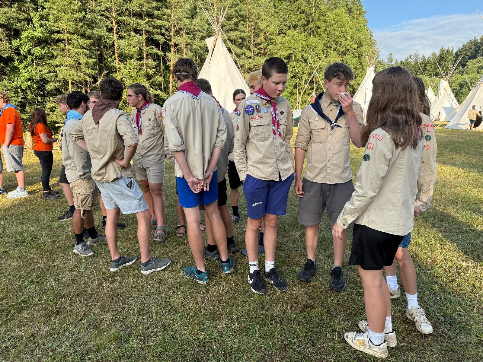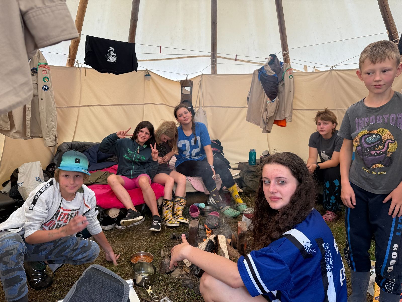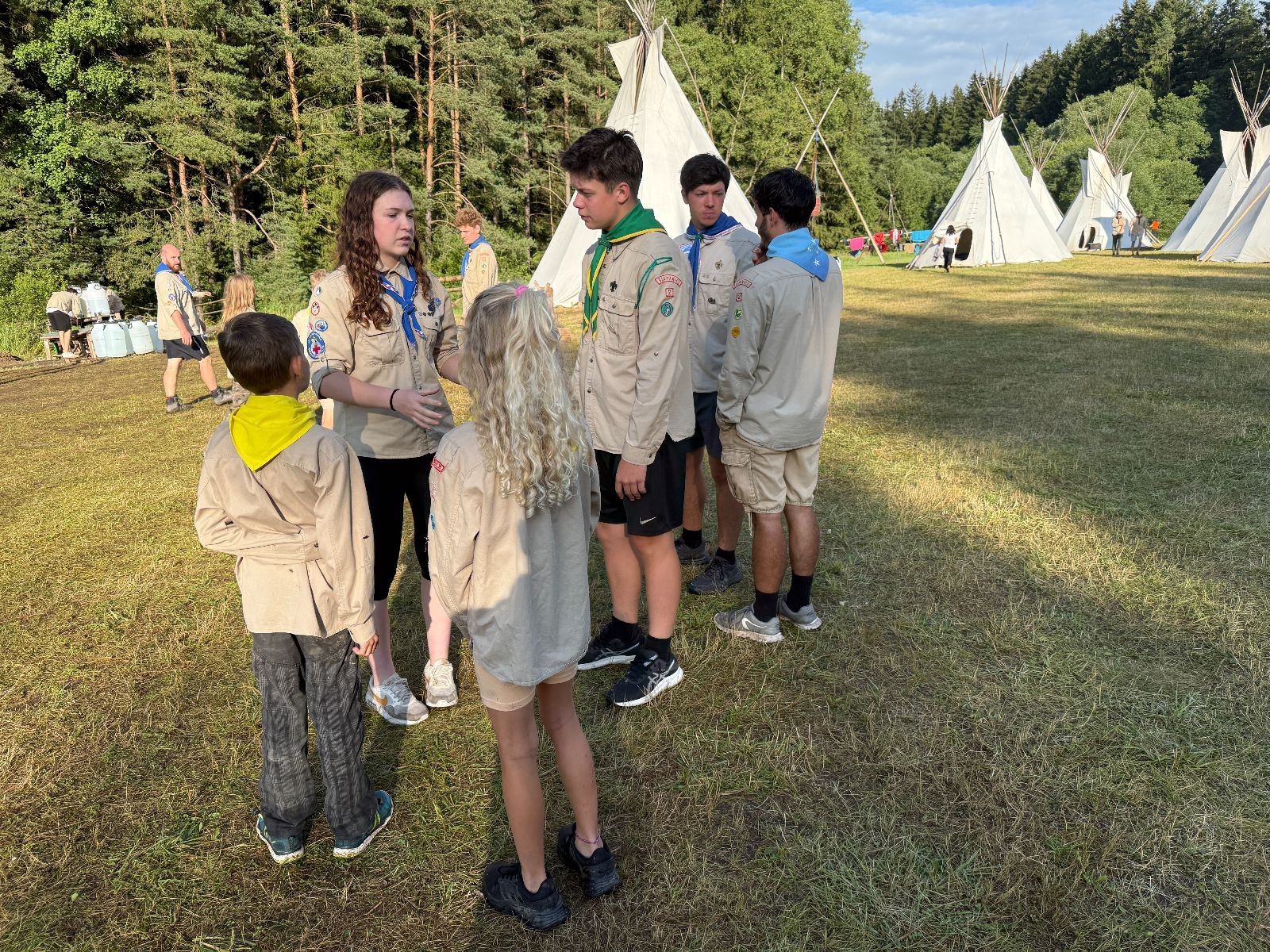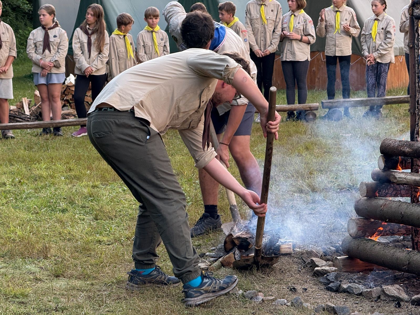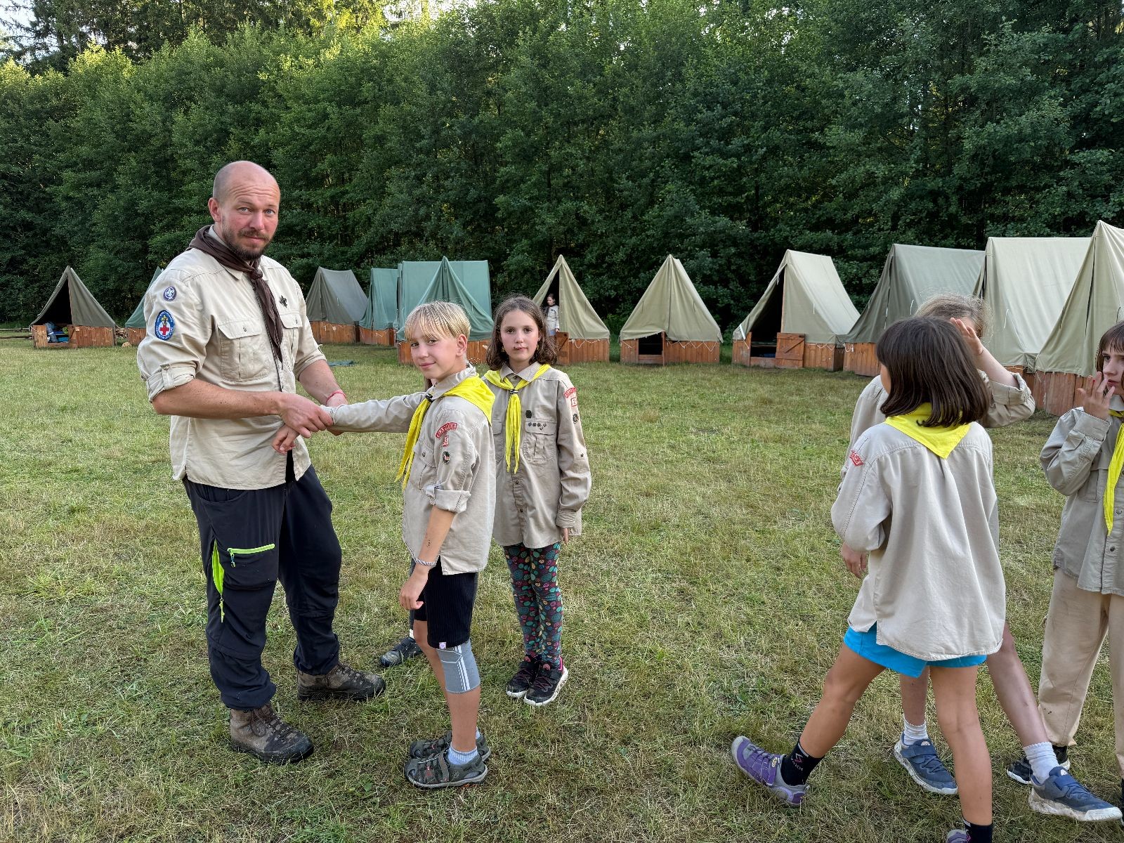 Vstáváme až v 8:30, protože celou noc leje a leje. I dopoledne leje a leje s krátkými pauzami. Naštěstí grilovat se dá i v týpí a to je hlavní náplní dnešního dopoledního programu. Taky se rozdávají poslední dopisy, Žid provádí výprodej a začínáme pomalu balit. Odpoledne sejmeme vlajku, bude poslední sněm a pak slavnostní oheň. Podle radaru od 17:00 už nemá spadnout ani kapka, tak snad to klapne… A jak řekli, tak udělali. Za zmínku stojí, že za námi na poslední táborový den a slavnostní oheň přijela spousta členů oddílu současných a bývalých. U ohně se předávaly hlavně nášivky za složené odborky, bobříky a zkoušky, a také se vyhodnocoval úklid ve stanech. Nakonec se asi do půlnoci zpívalo a u ohně byla opravdu skvělá atmosféra. Jasné nebe plné hvězd nám k tomu vytvořilo krásnou kulisu a za zmínku stojí, že tuto noc nepršelo