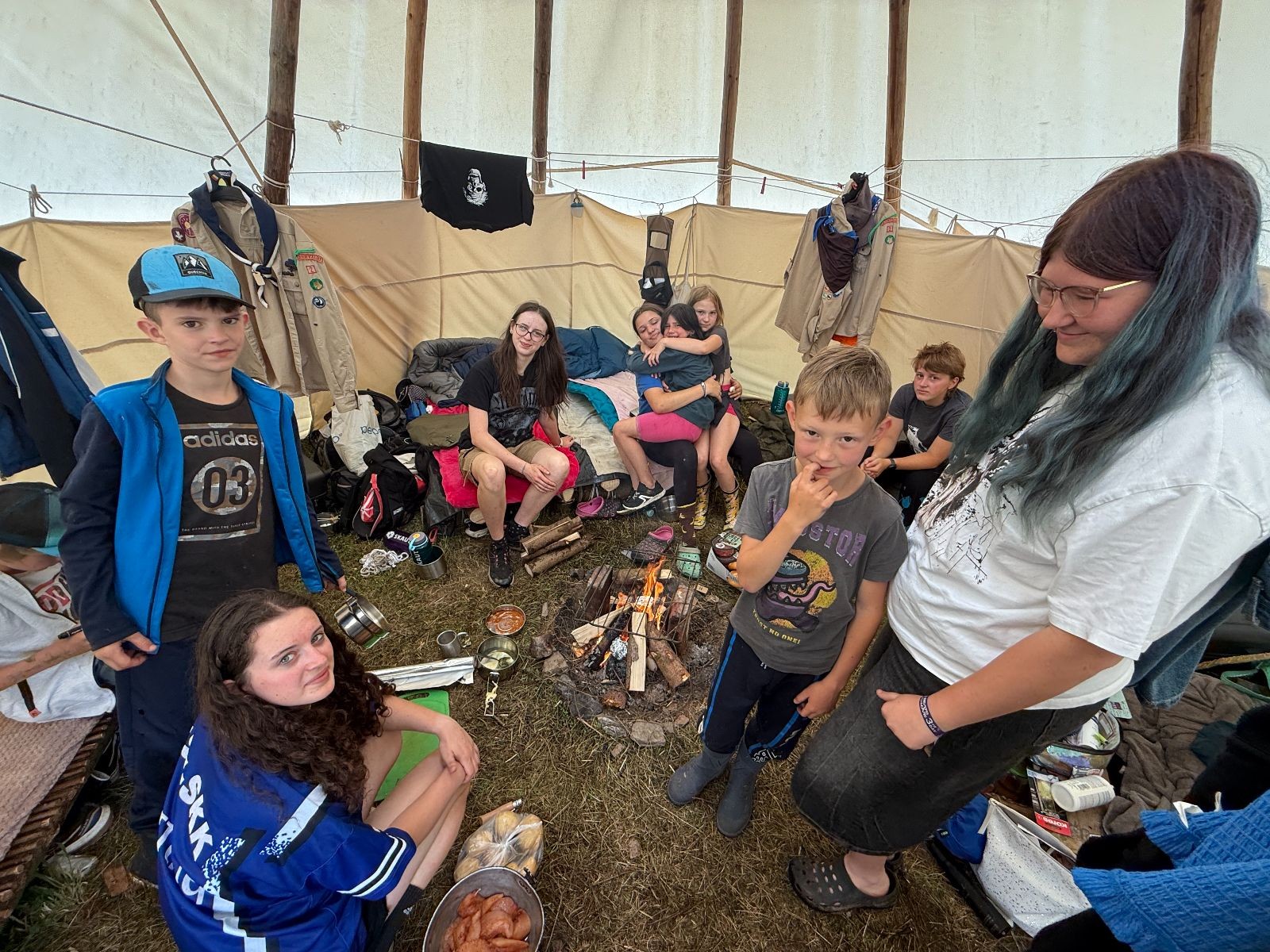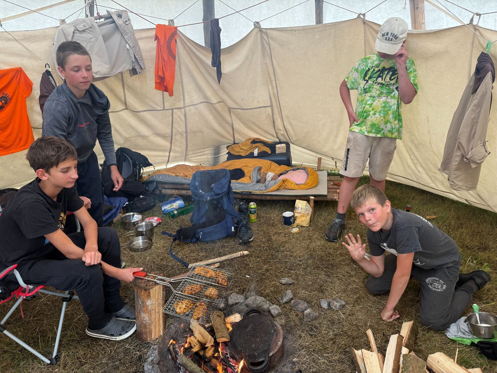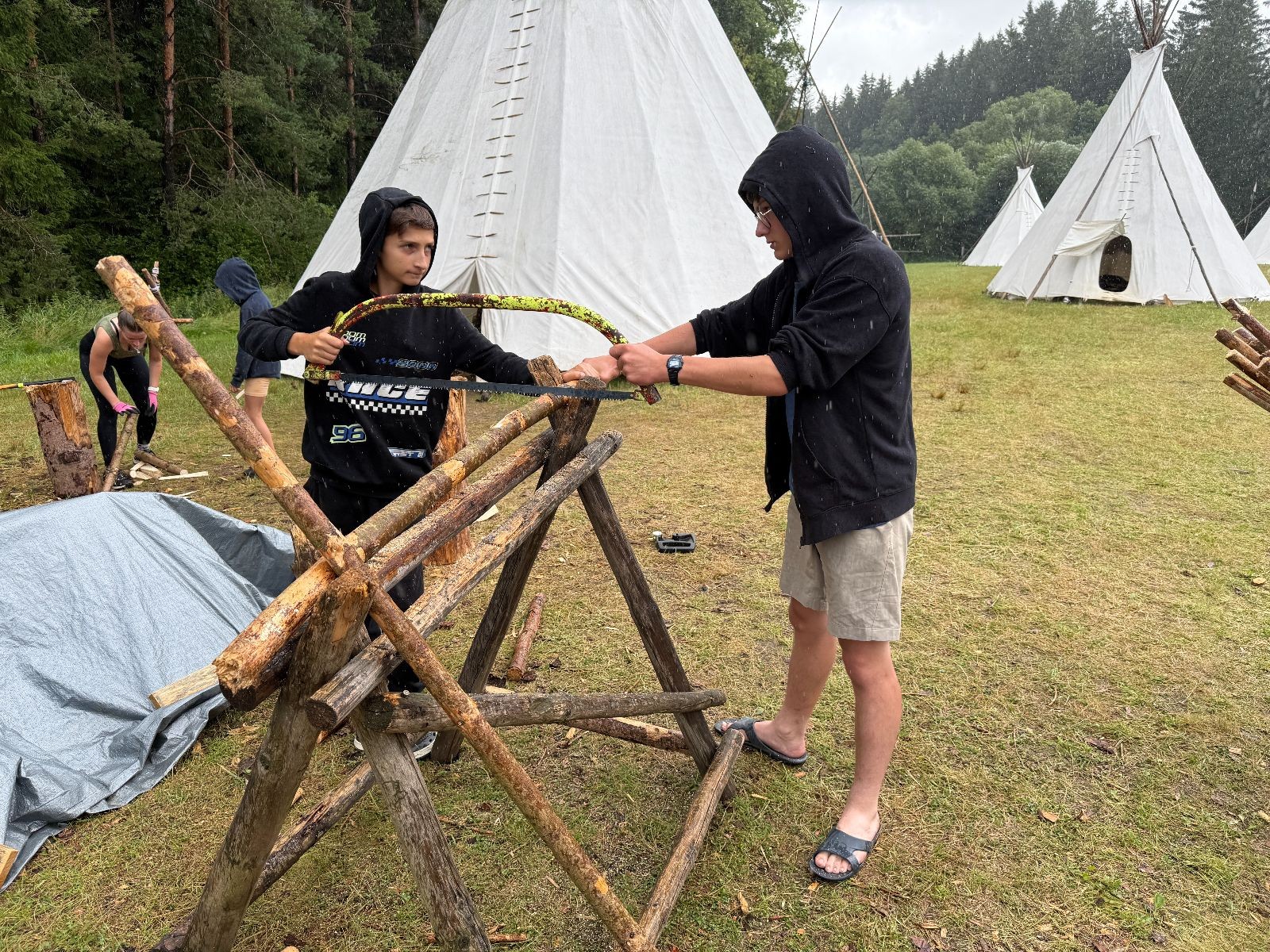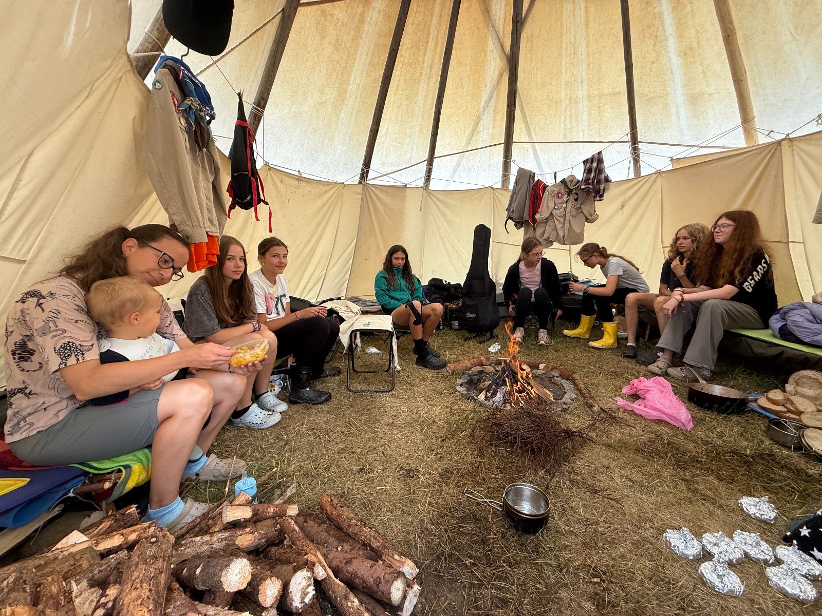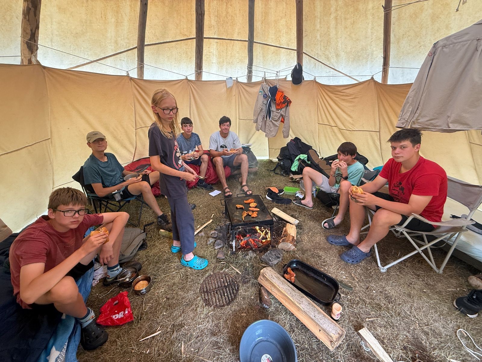 Vstáváme až v 8:30, protože celou noc leje a leje. I dopoledne leje a leje s krátkými pauzami. Naštěstí grilovat se dá i v týpí a to je hlavní náplní dnešního dopoledního programu. Taky se rozdávají poslední dopisy, Žid provádí výprodej a začínáme pomalu balit. Odpoledne sejmeme vlajku, bude poslední sněm a pak slavnostní oheň. Podle radaru od 17:00 už nemá spadnout ani kapka, tak snad to klapne… A jak řekli, tak udělali. Za zmínku stojí, že za námi na poslední táborový den a slavnostní oheň přijela spousta členů oddílu současných a bývalých. U ohně se předávaly hlavně nášivky za složené odborky, bobříky a zkoušky, a také se vyhodnocoval úklid ve stanech. Nakonec se asi do půlnoci zpívalo a u ohně byla opravdu skvělá atmosféra. Jasné nebe plné hvězd nám k tomu vytvořilo krásnou kulisu a za zmínku stojí, že tuto noc nepršelo
