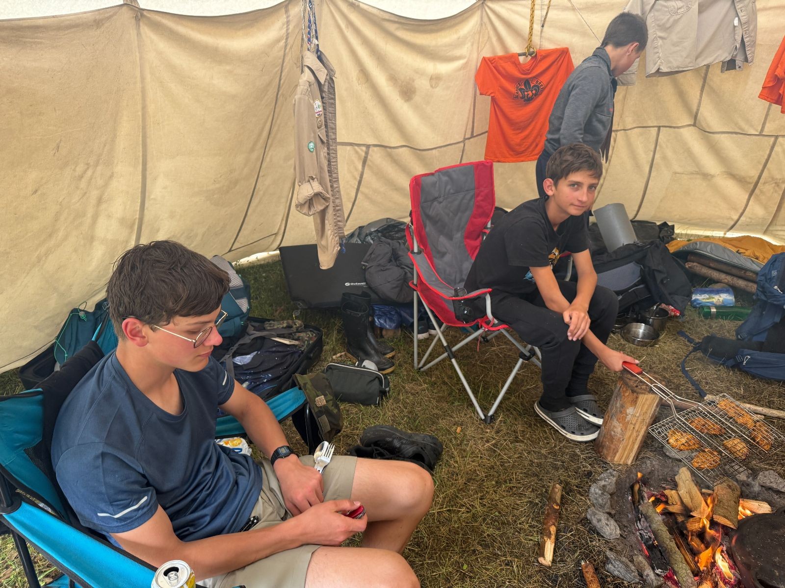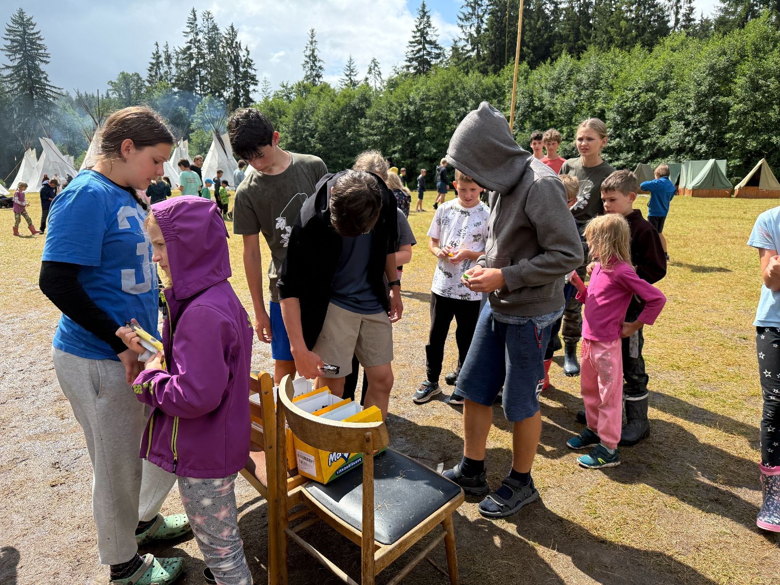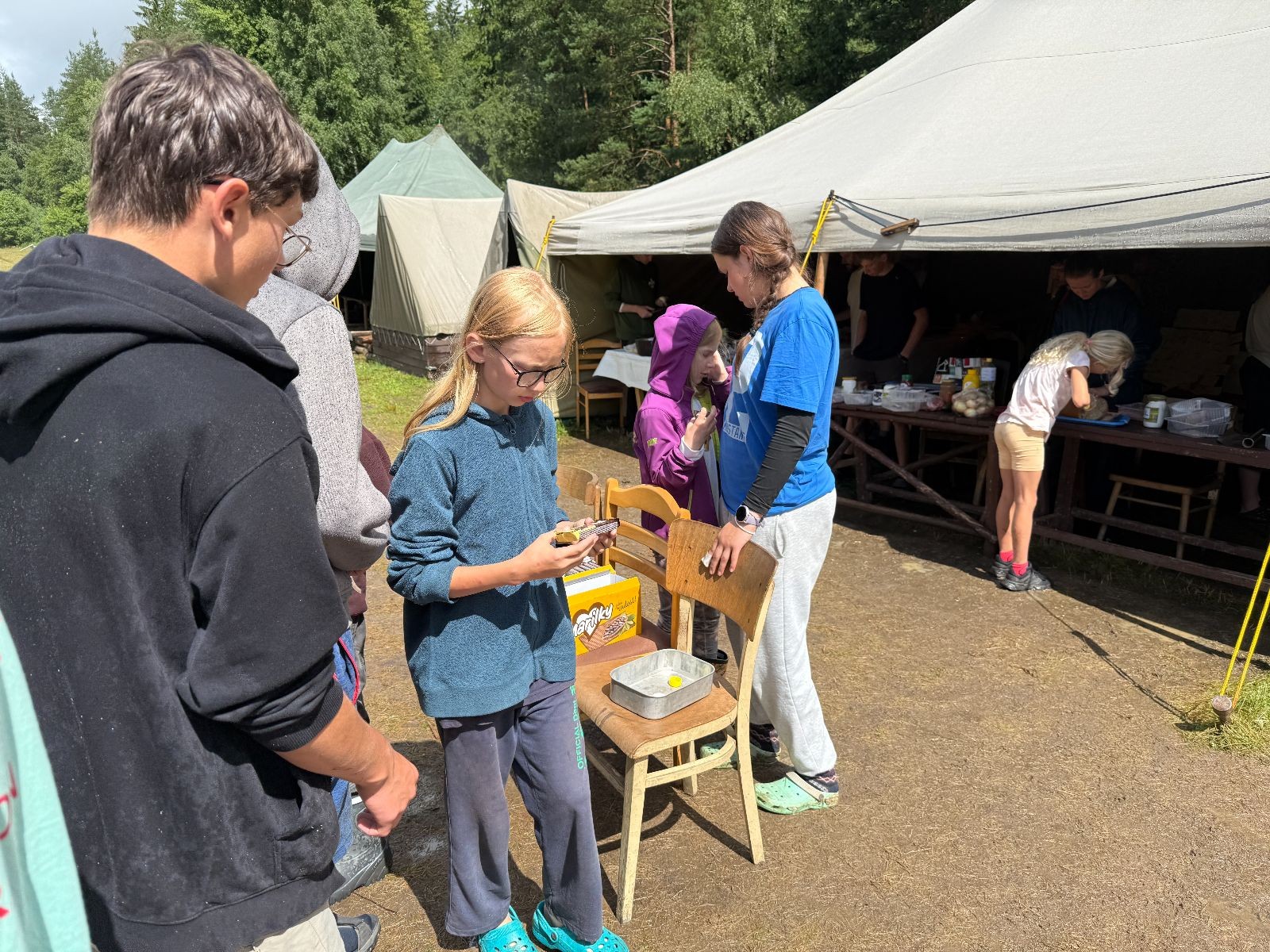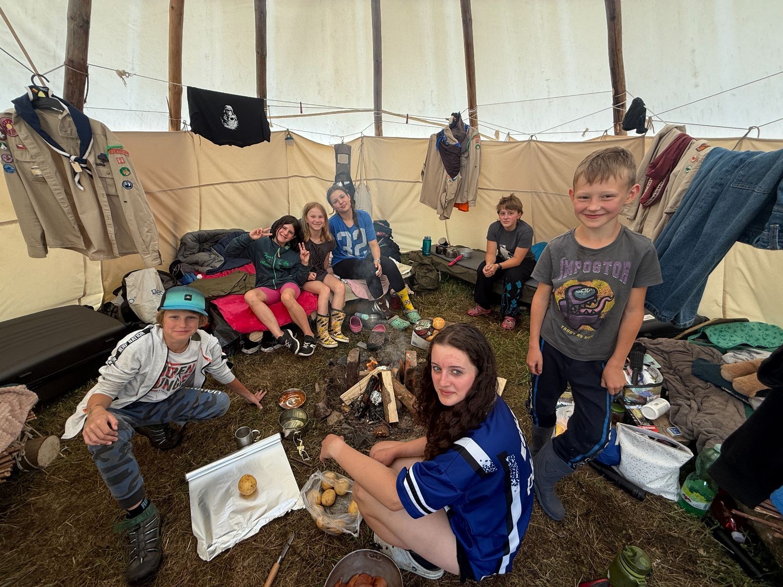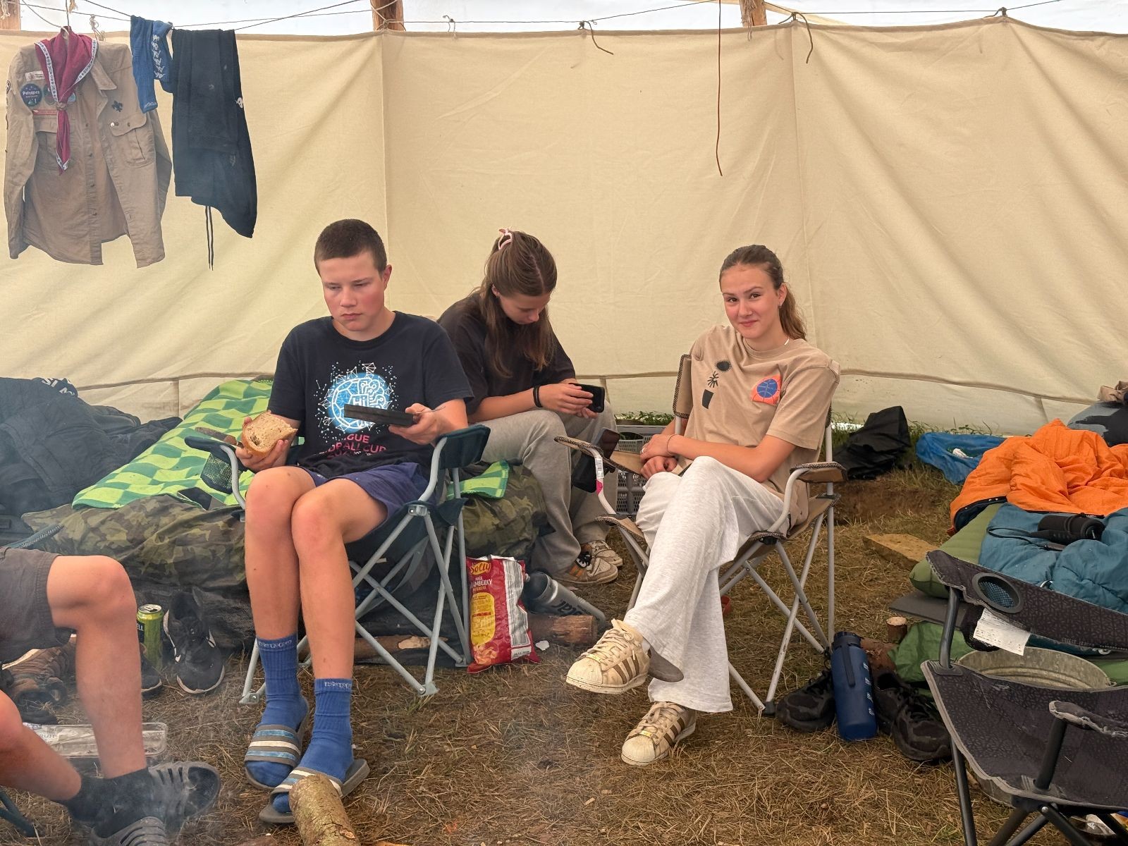Vstáváme až v 8:30, protože celou noc leje a leje. I dopoledne leje a leje s krátkými pauzami. Naštěstí grilovat se dá i v týpí a to je hlavní náplní dnešního dopoledního programu. Taky se rozdávají poslední dopisy, Žid provádí výprodej a začínáme pomalu balit. Odpoledne sejmeme vlajku, bude poslední sněm a pak slavnostní oheň. Podle radaru od 17:00 už nemá spadnout ani kapka, tak snad to klapne… A jak řekli, tak udělali. Za zmínku stojí, že za námi na poslední táborový den a slavnostní oheň přijela spousta členů oddílu současných a bývalých. U ohně se předávaly hlavně nášivky za složené odborky, bobříky a zkoušky, a také se vyhodnocoval úklid ve stanech. Nakonec se asi do půlnoci zpívalo a u ohně byla opravdu skvělá atmosféra. Jasné nebe plné hvězd nám k tomu vytvořilo krásnou kulisu a za zmínku stojí, že tuto noc nepršelo