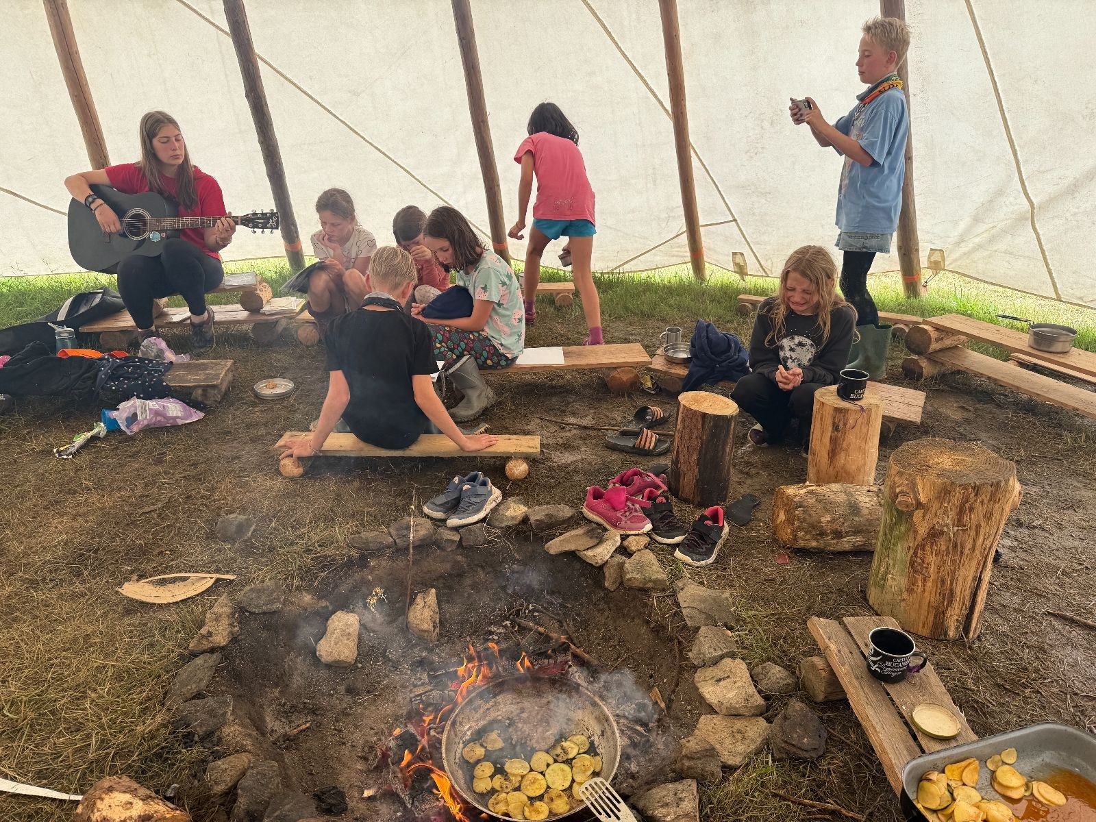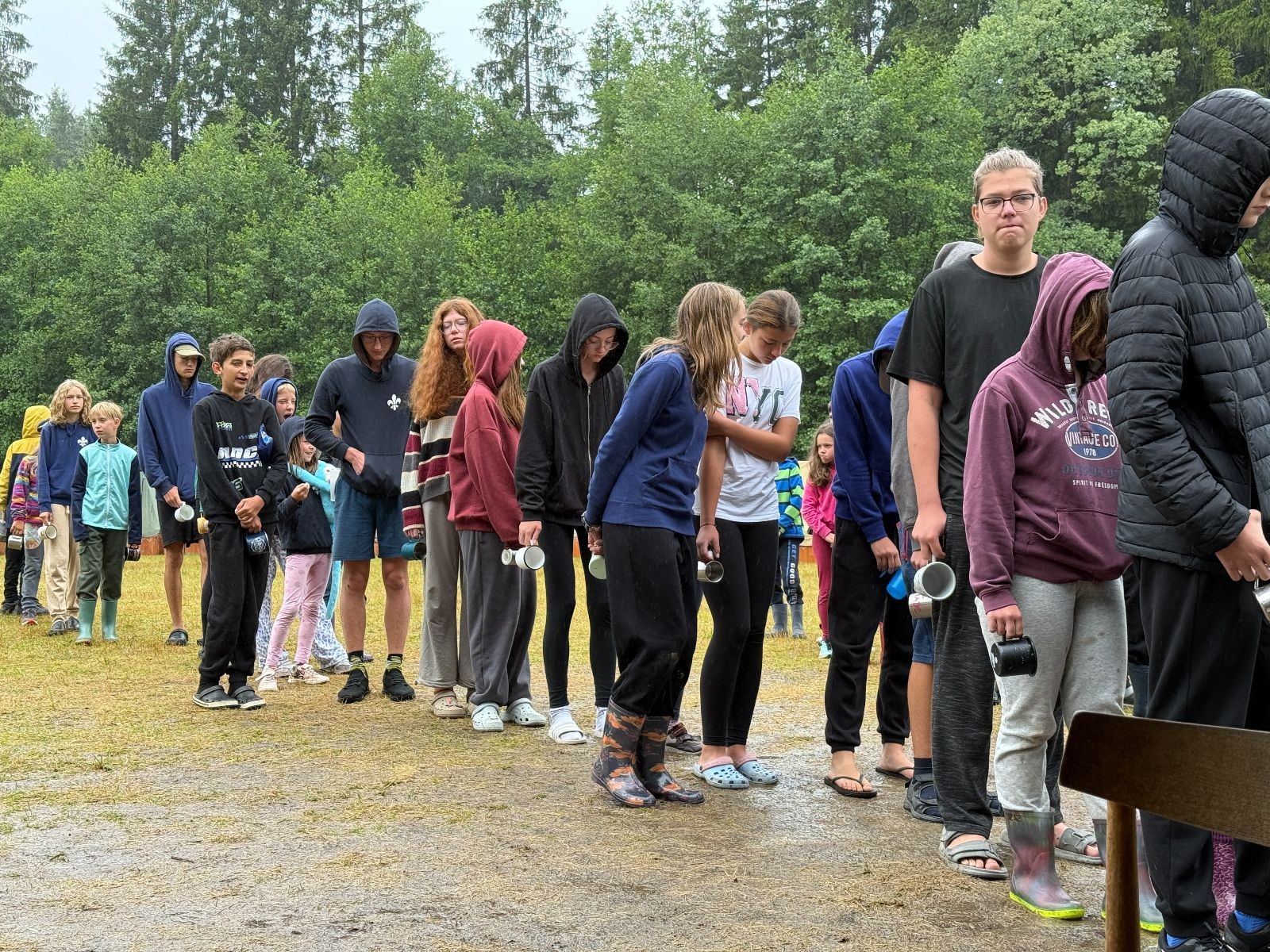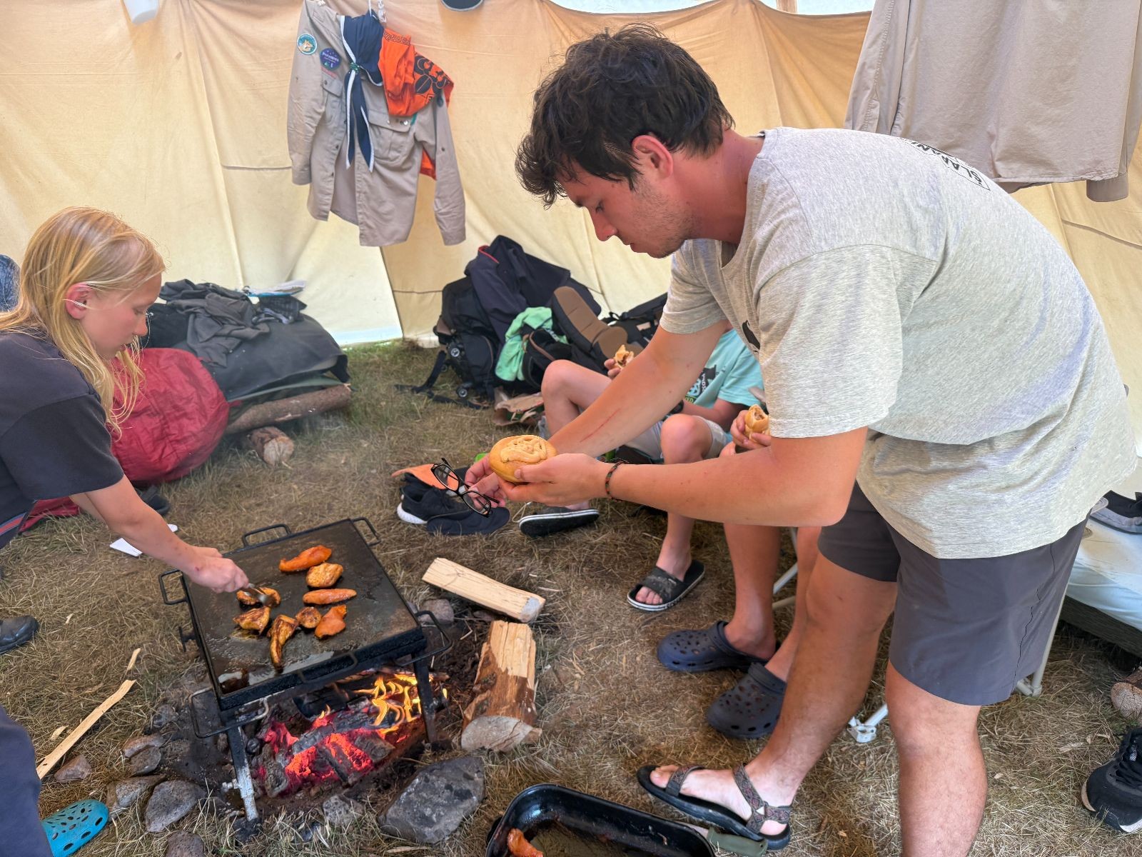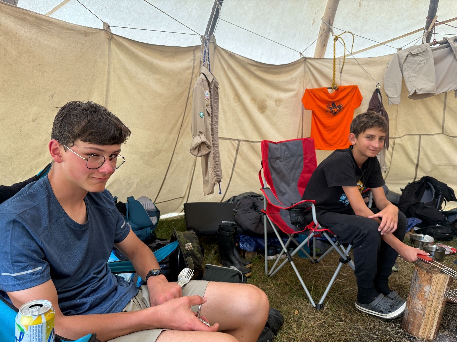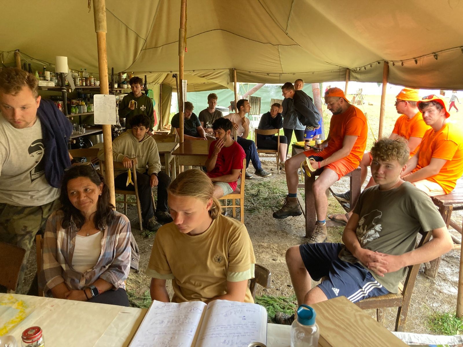 Vstáváme až v 8:30, protože celou noc leje a leje. I dopoledne leje a leje s krátkými pauzami. Naštěstí grilovat se dá i v týpí a to je hlavní náplní dnešního dopoledního programu. Taky se rozdávají poslední dopisy, Žid provádí výprodej a začínáme pomalu balit. Odpoledne sejmeme vlajku, bude poslední sněm a pak slavnostní oheň. Podle radaru od 17:00 už nemá spadnout ani kapka, tak snad to klapne… A jak řekli, tak udělali. Za zmínku stojí, že za námi na poslední táborový den a slavnostní oheň přijela spousta členů oddílu současných a bývalých. U ohně se předávaly hlavně nášivky za složené odborky, bobříky a zkoušky, a také se vyhodnocoval úklid ve stanech. Nakonec se asi do půlnoci zpívalo a u ohně byla opravdu skvělá atmosféra. Jasné nebe plné hvězd nám k tomu vytvořilo krásnou kulisu a za zmínku stojí, že tuto noc nepršelo
