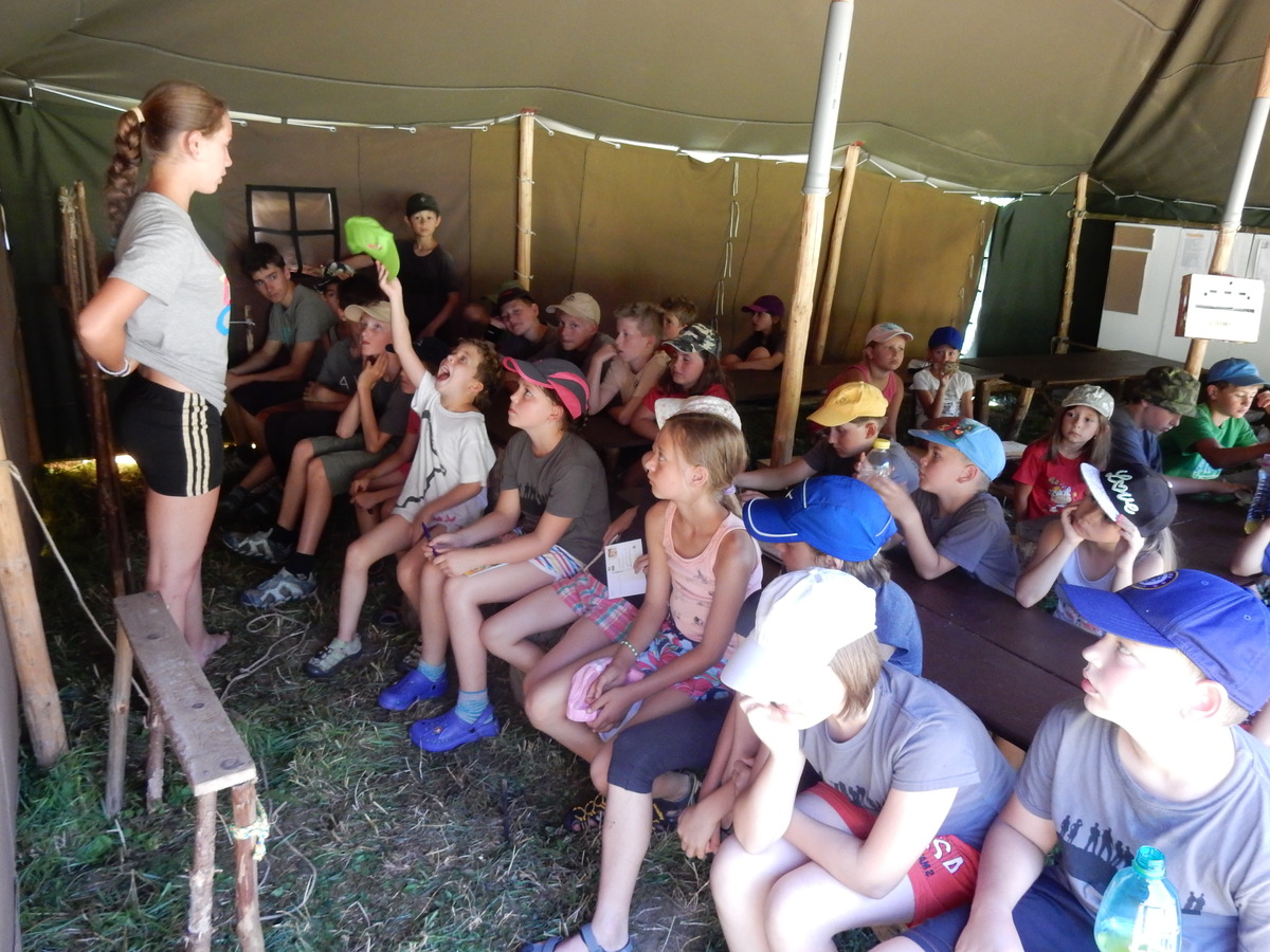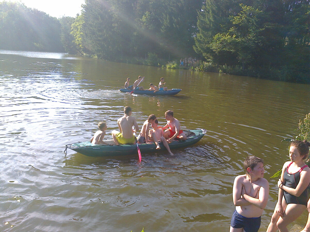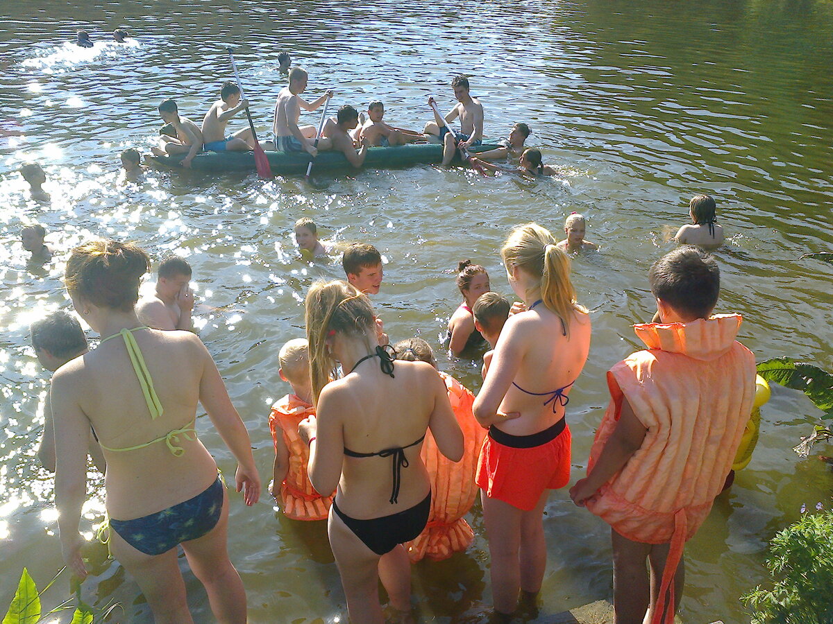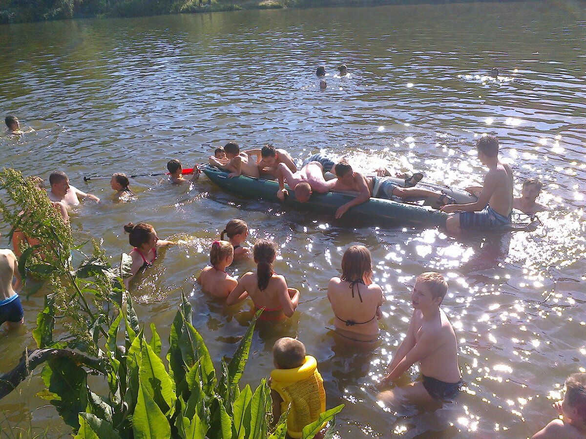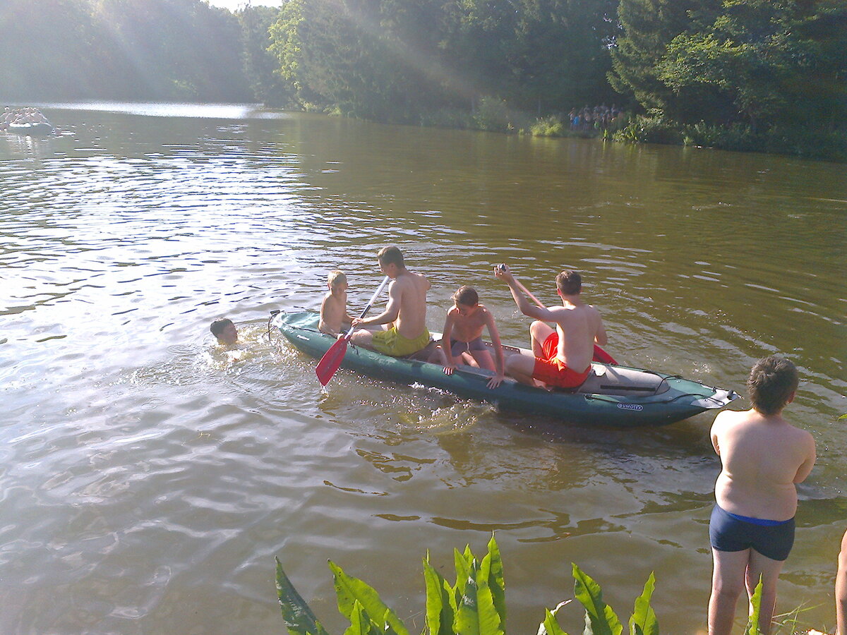 Druhý táborový den se rozjela celotáborová hra. Dopoledne mladší batikovali tógy, zatímco starší zakládali Síně předků a vábili vodní melodií Lernenskou hydru (ty flašky od piva, co jsou na fotkách jsme si půjčili v Kauflandu :-)). Odpoledne pak i straší i mladší razili k rybníku na Americe, kde byla etapa ve znamení boje s hydrou. Ochlazení ve vodě přišlo všem vhod, bylo opravdu teplo. Po večeři a sněmu probíhaly sportovní hry v táboře. Zítra nové fotky nečekejte, neb razíme na puťák a tam to s internetem bude všelijaký. Snad pozítří... Jura