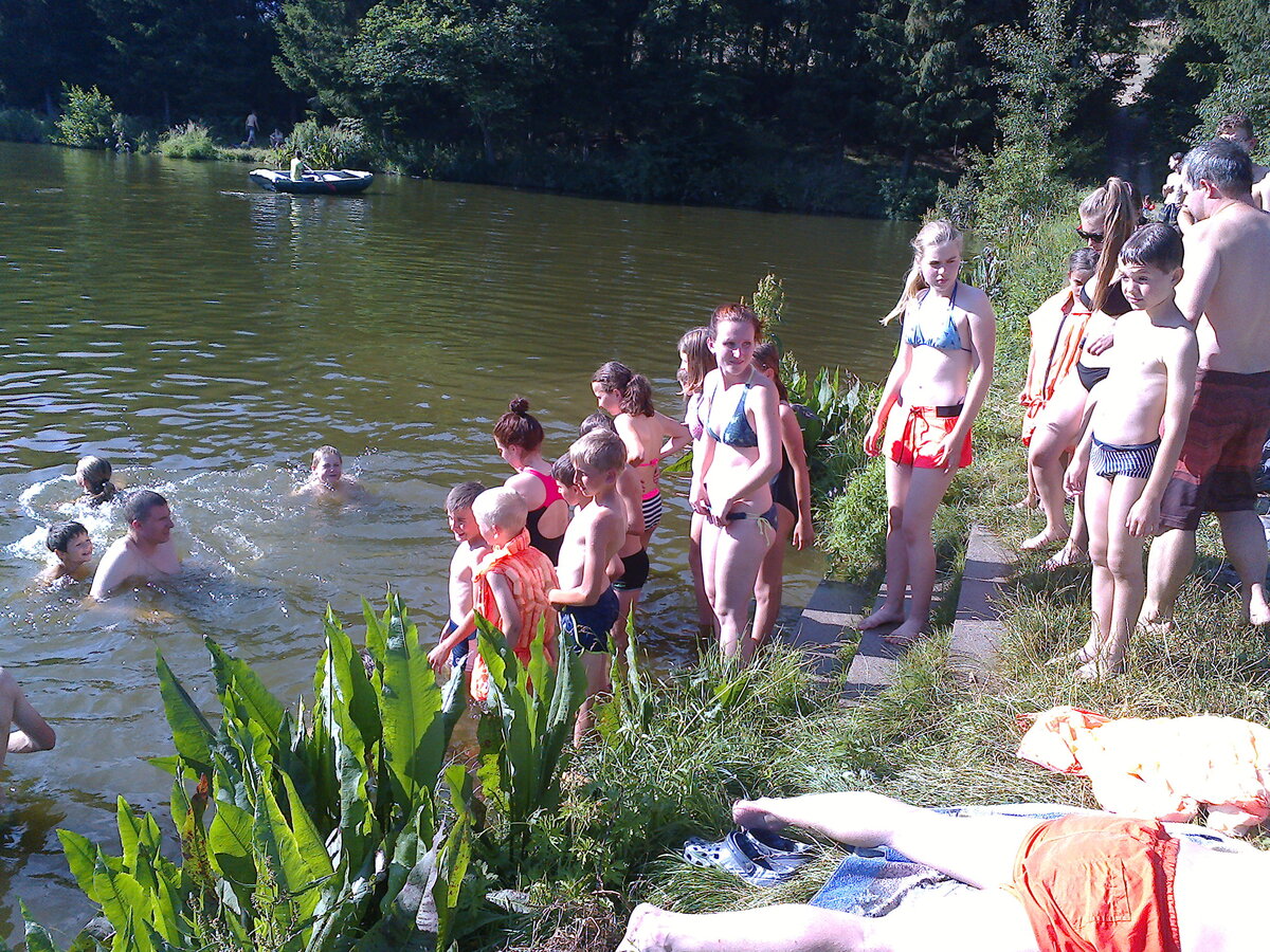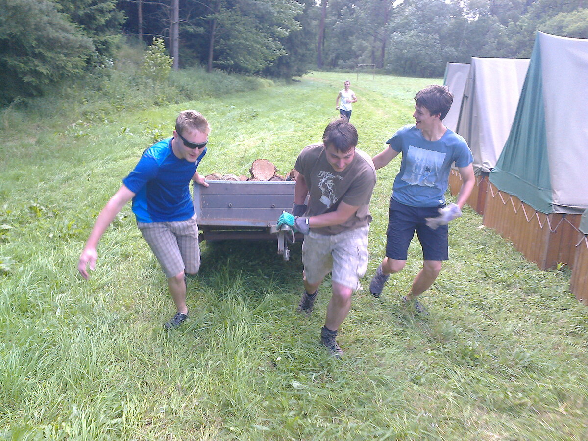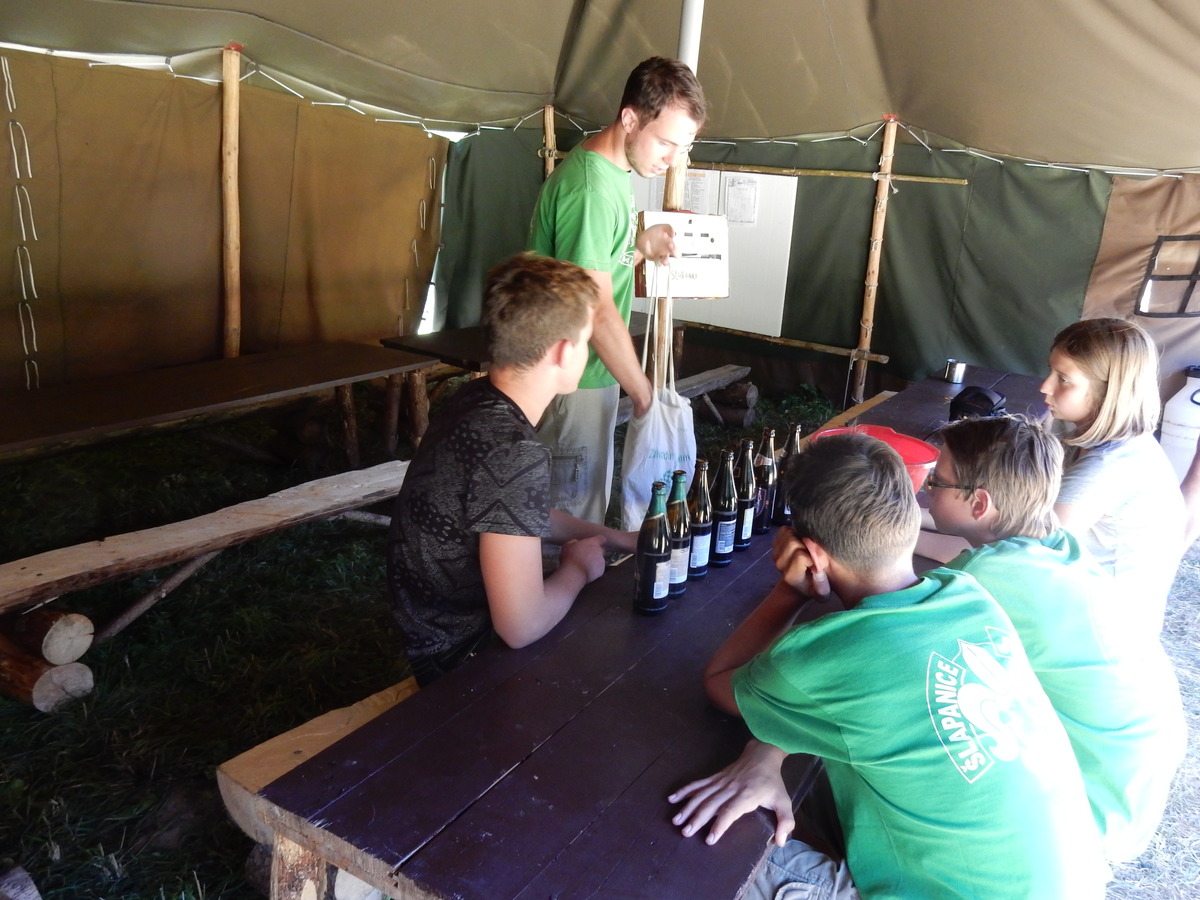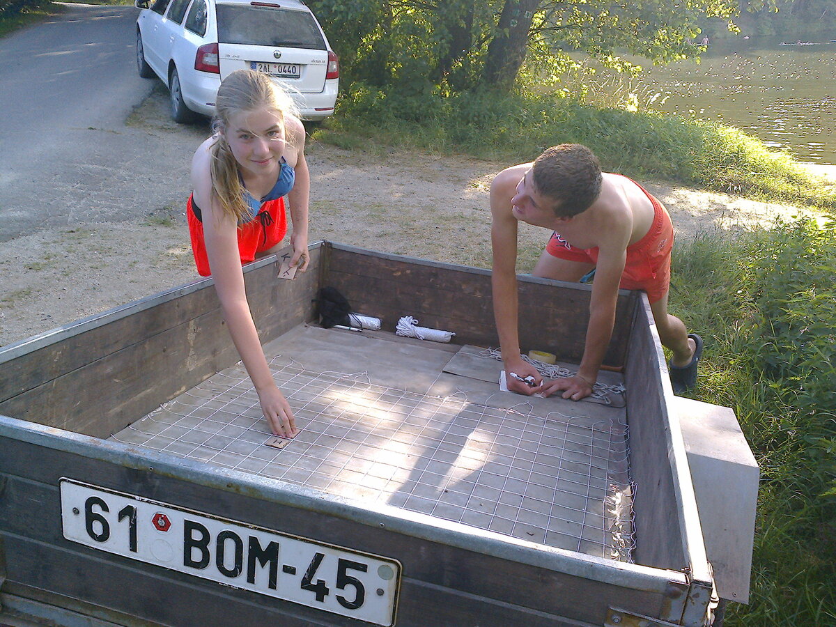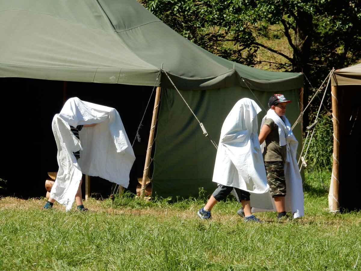 Druhý táborový den se rozjela celotáborová hra. Dopoledne mladší batikovali tógy, zatímco starší zakládali Síně předků a vábili vodní melodií Lernenskou hydru (ty flašky od piva, co jsou na fotkách jsme si půjčili v Kauflandu :-)). Odpoledne pak i straší i mladší razili k rybníku na Americe, kde byla etapa ve znamení boje s hydrou. Ochlazení ve vodě přišlo všem vhod, bylo opravdu teplo. Po večeři a sněmu probíhaly sportovní hry v táboře. Zítra nové fotky nečekejte, neb razíme na puťák a tam to s internetem bude všelijaký. Snad pozítří... Jura