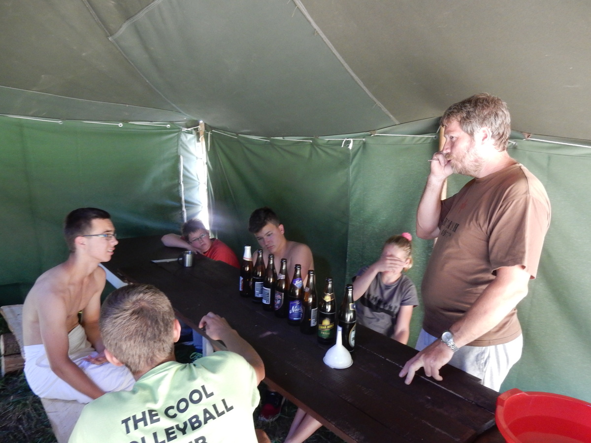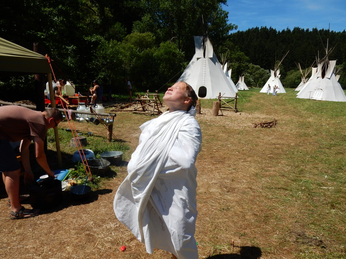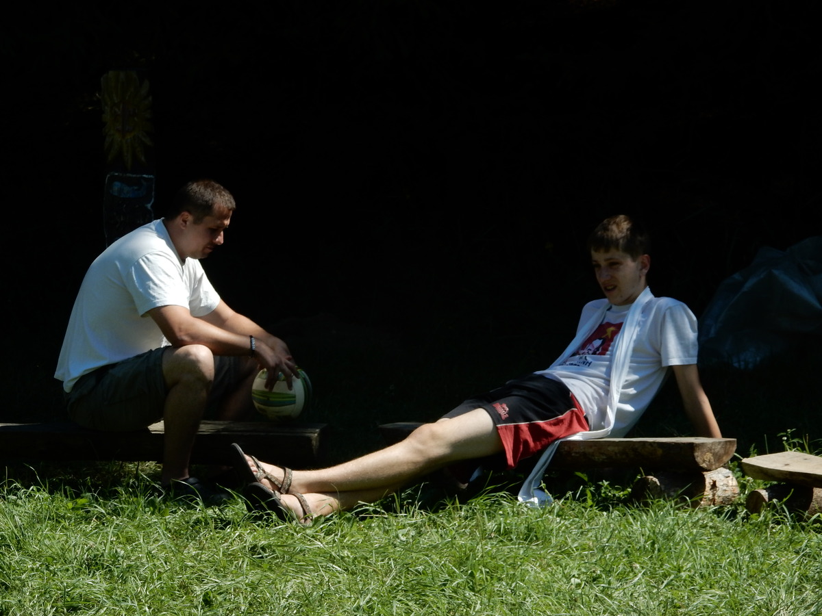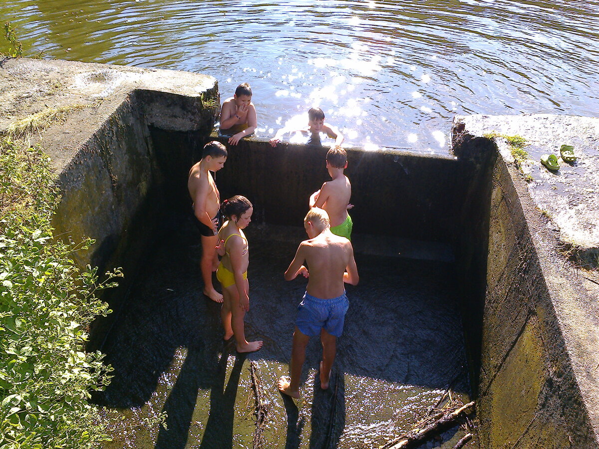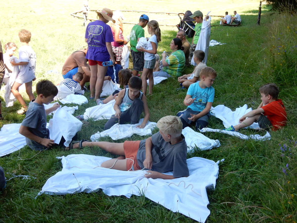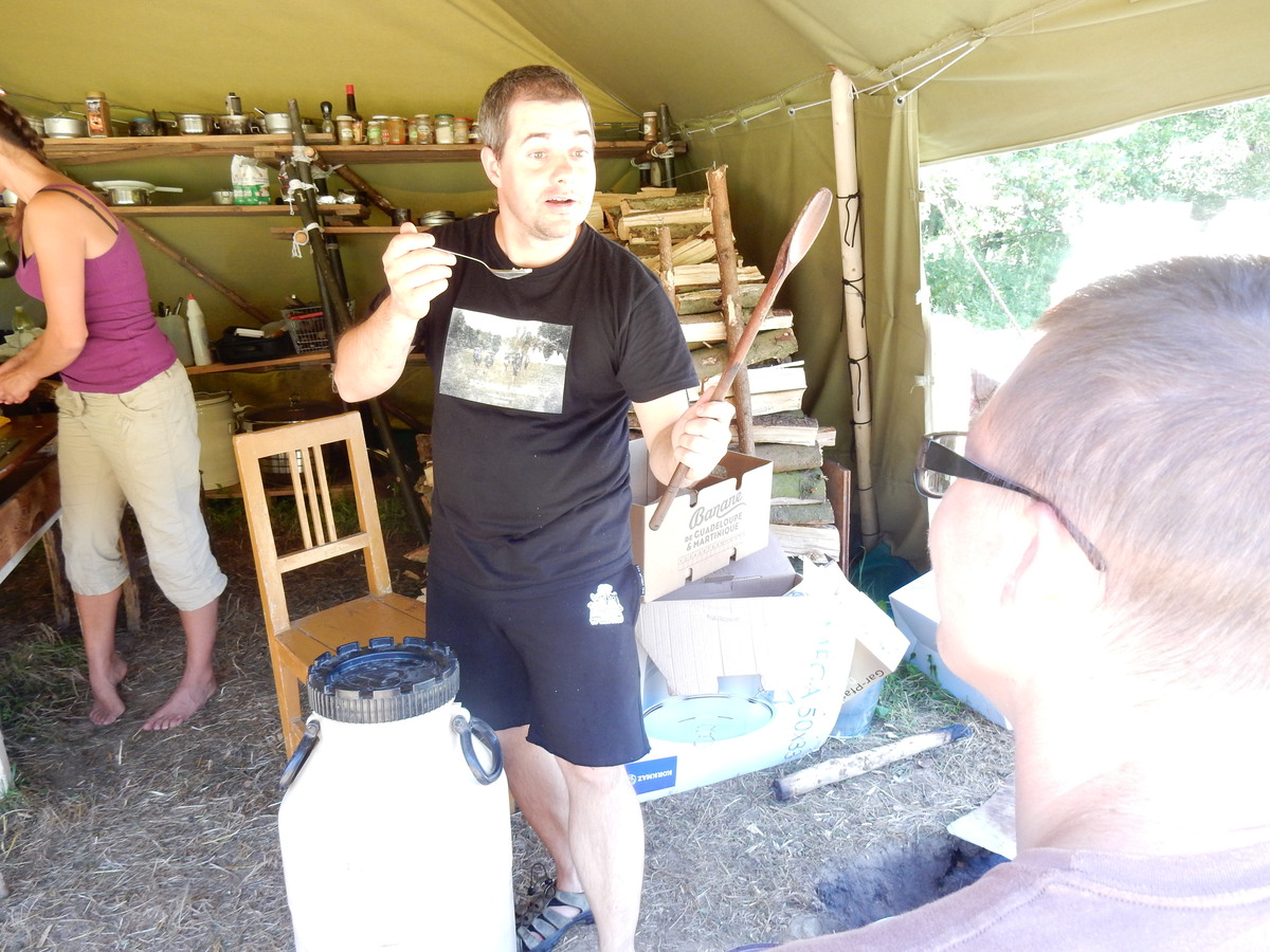 Druhý táborový den se rozjela celotáborová hra. Dopoledne mladší batikovali tógy, zatímco starší zakládali Síně předků a vábili vodní melodií Lernenskou hydru (ty flašky od piva, co jsou na fotkách jsme si půjčili v Kauflandu :-)). Odpoledne pak i straší i mladší razili k rybníku na Americe, kde byla etapa ve znamení boje s hydrou. Ochlazení ve vodě přišlo všem vhod, bylo opravdu teplo. Po večeři a sněmu probíhaly sportovní hry v táboře. Zítra nové fotky nečekejte, neb razíme na puťák a tam to s internetem bude všelijaký. Snad pozítří... Jura