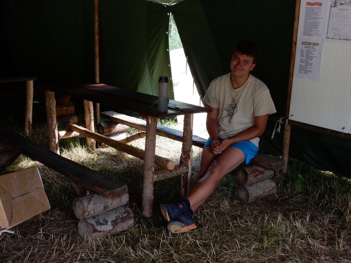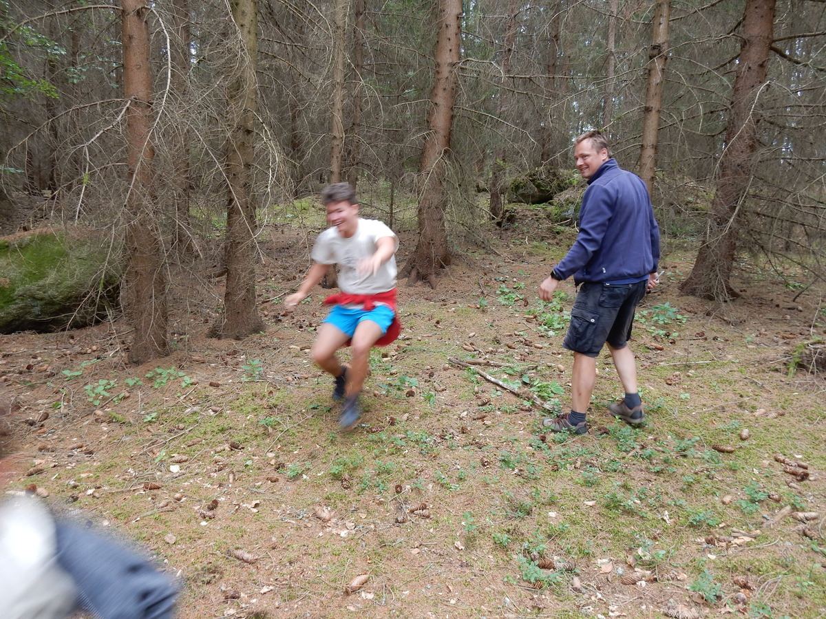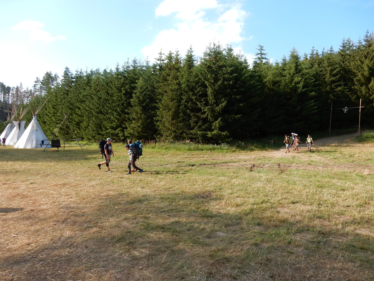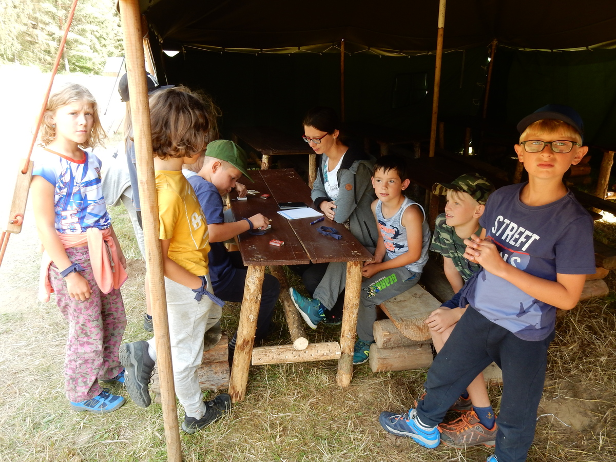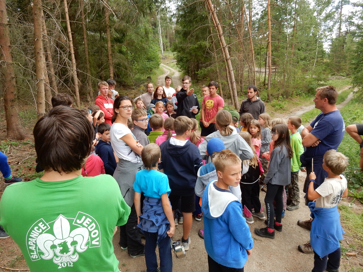 Třetí táborový den započal rozcvičkou, což některé mamánkovatější táborníky trošku překvapilo. Zvládli ji ale všichni. Dopoledne se konala velká bojovka v lese, pašeráci se snažili pronést územím obrů co nejvíce věcí. Odpoledne pak probíhalo ve znamení družinového programu a večer se zpívalo u ohně. Jo - a taky se vrátili z puťáků skautky a skauti, všichni živí a zdraví.