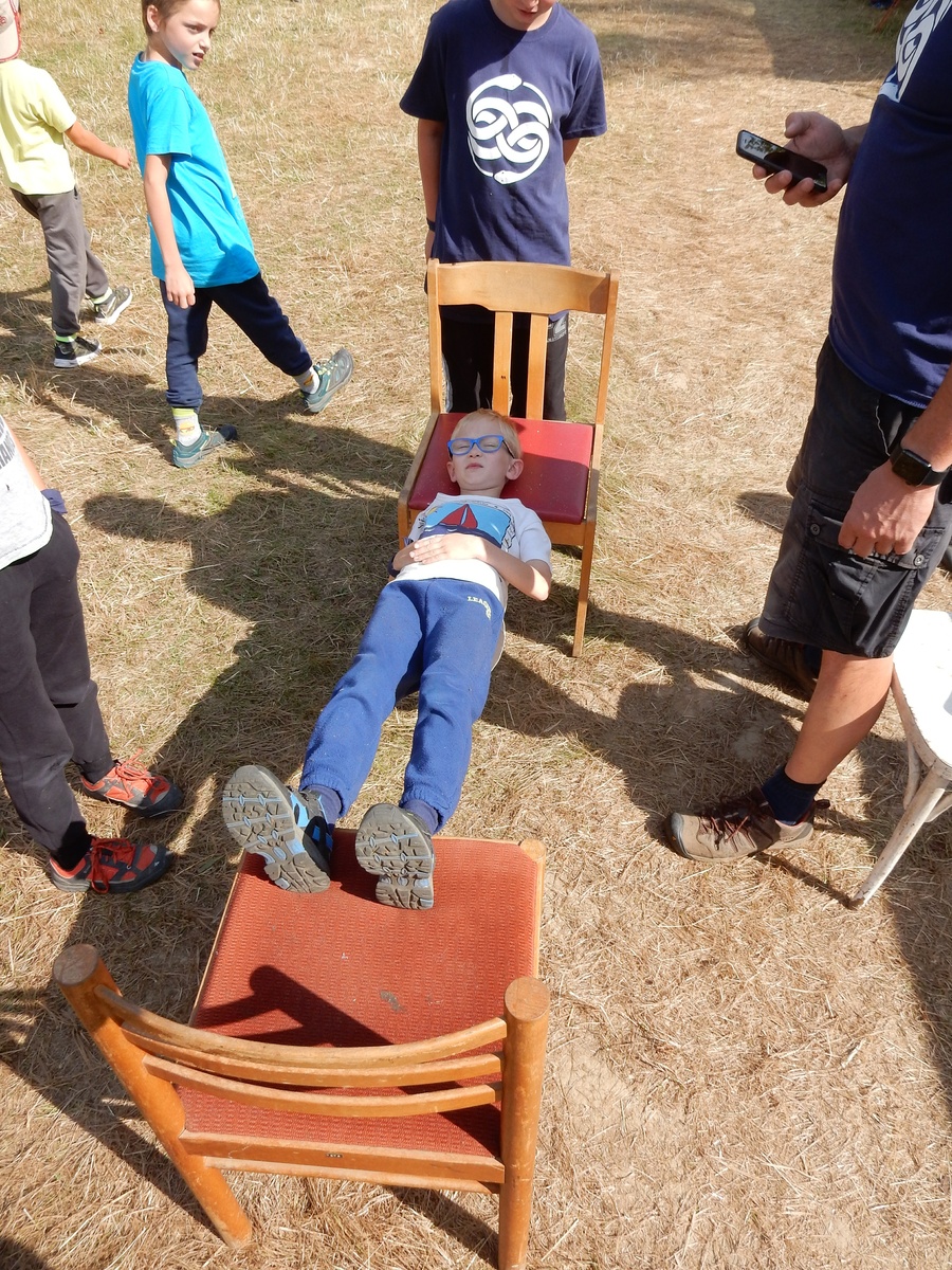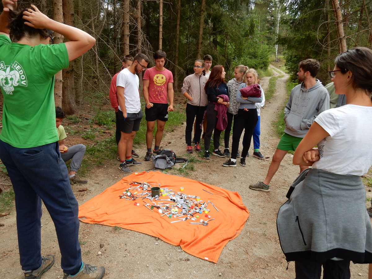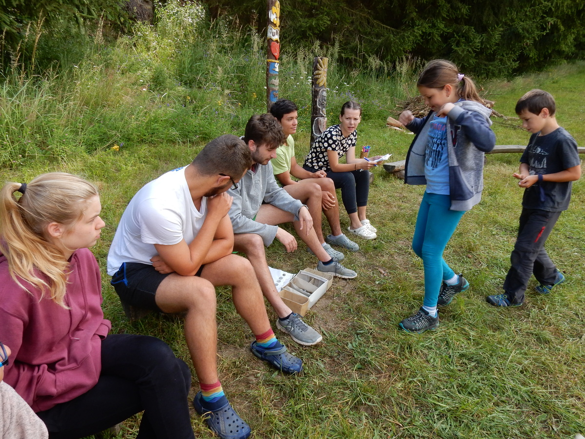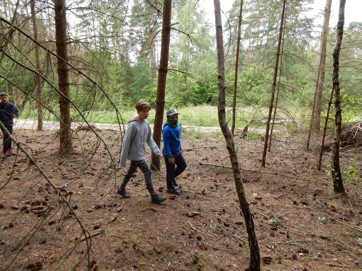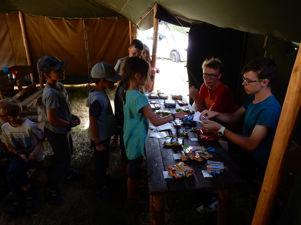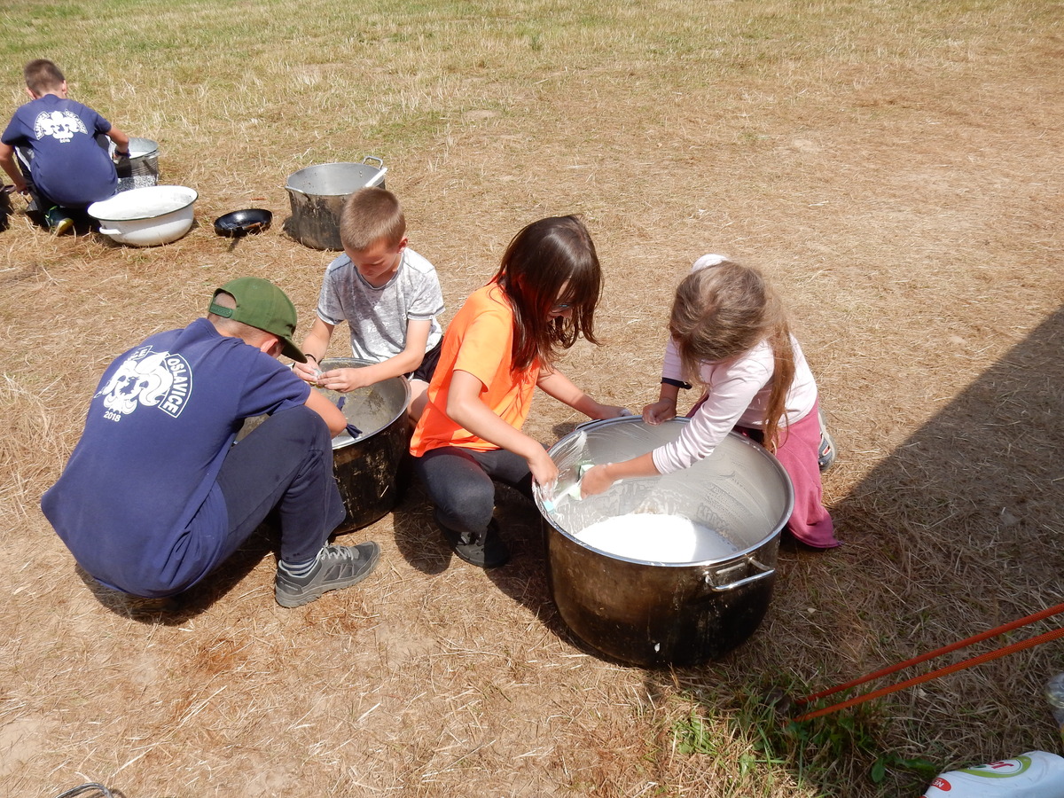 Třetí táborový den započal rozcvičkou, což některé mamánkovatější táborníky trošku překvapilo. Zvládli ji ale všichni. Dopoledne se konala velká bojovka v lese, pašeráci se snažili pronést územím obrů co nejvíce věcí. Odpoledne pak probíhalo ve znamení družinového programu a večer se zpívalo u ohně. Jo - a taky se vrátili z puťáků skautky a skauti, všichni živí a zdraví.