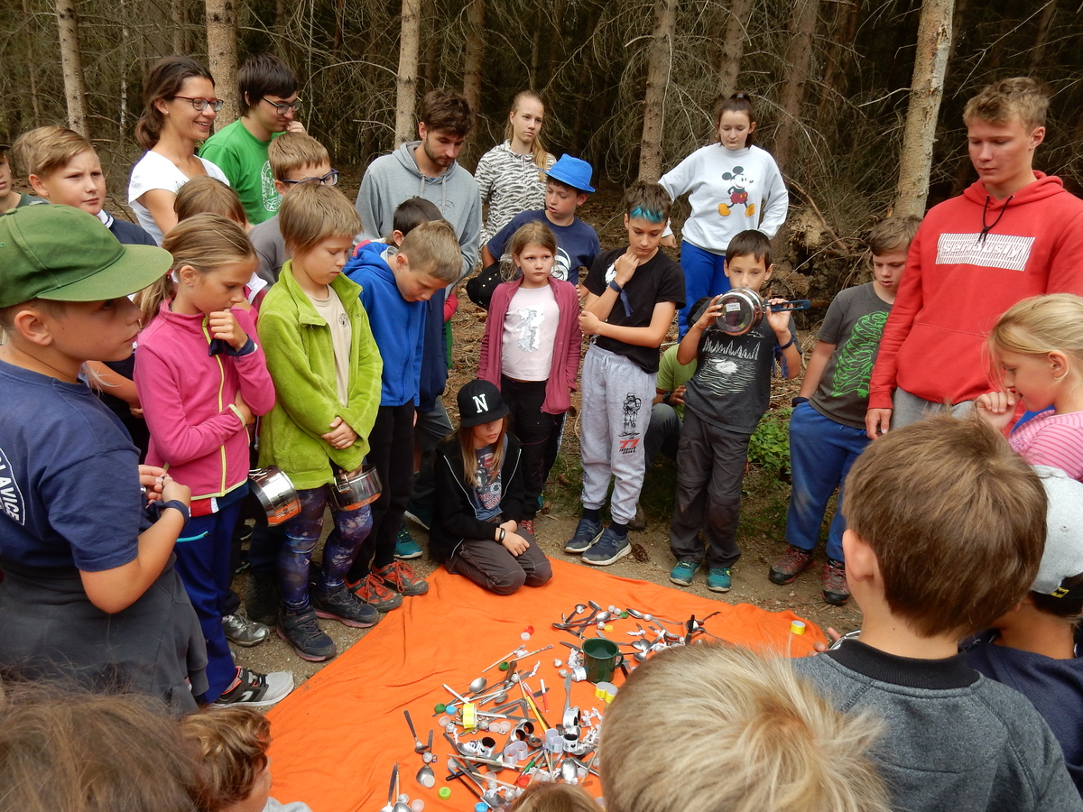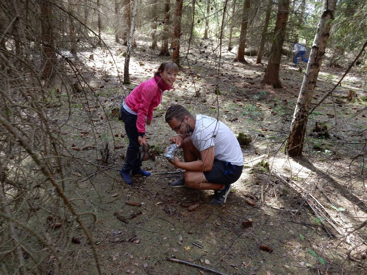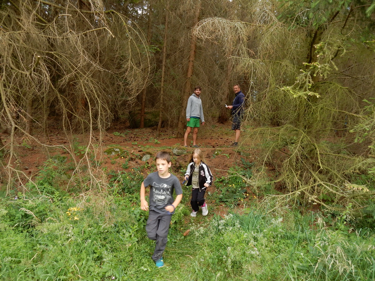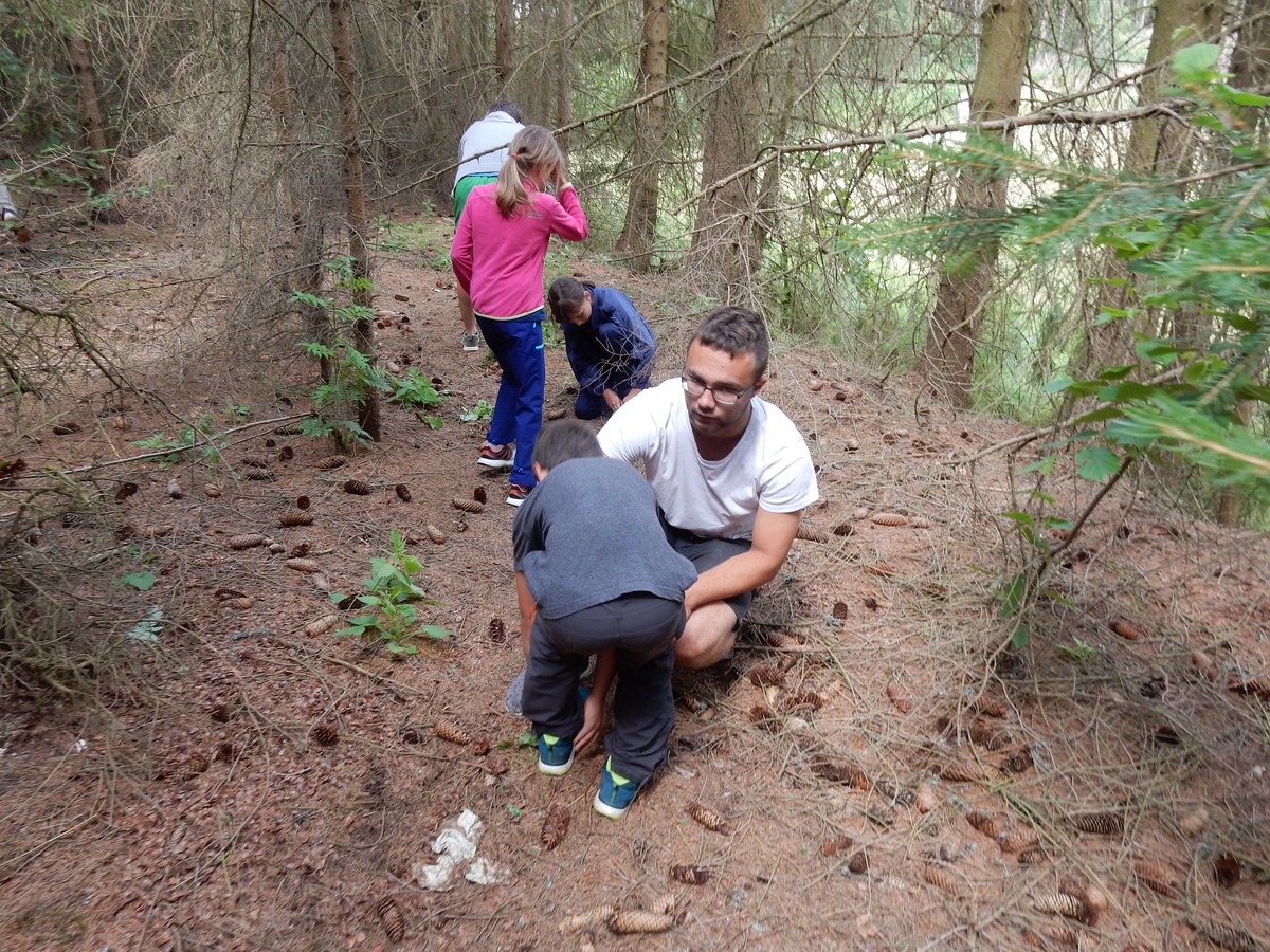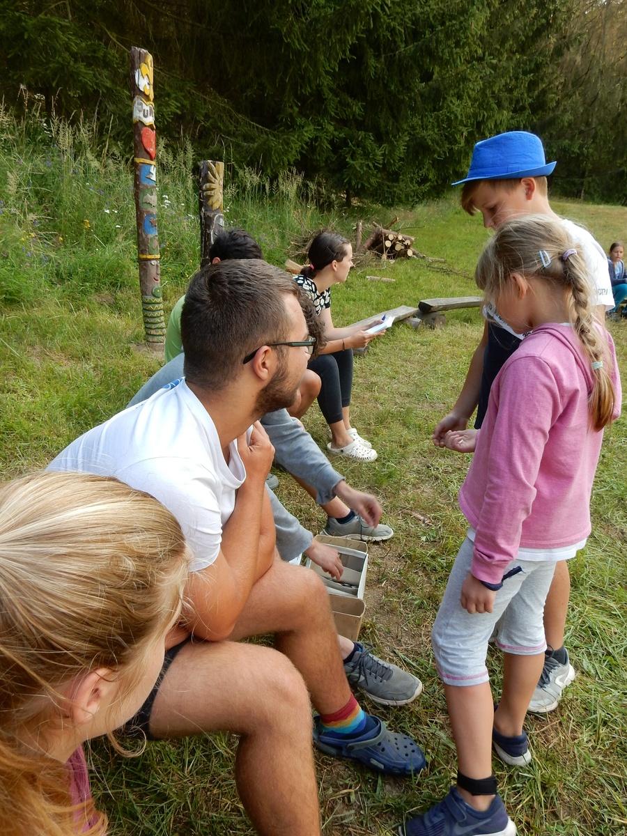 Třetí táborový den započal rozcvičkou, což některé mamánkovatější táborníky trošku překvapilo. Zvládli ji ale všichni. Dopoledne se konala velká bojovka v lese, pašeráci se snažili pronést územím obrů co nejvíce věcí. Odpoledne pak probíhalo ve znamení družinového programu a večer se zpívalo u ohně. Jo - a taky se vrátili z puťáků skautky a skauti, všichni živí a zdraví.