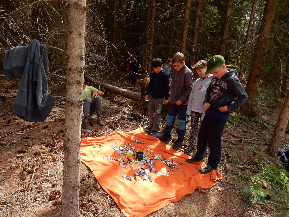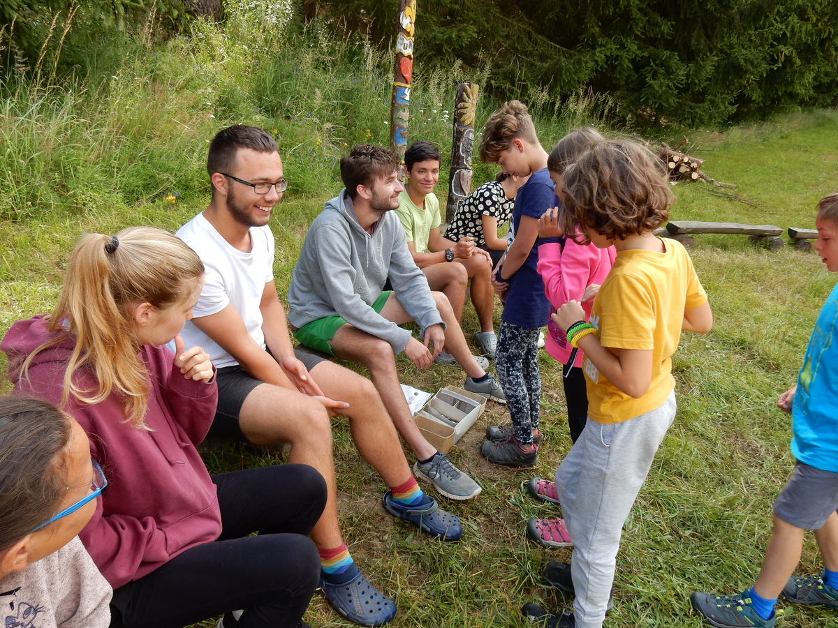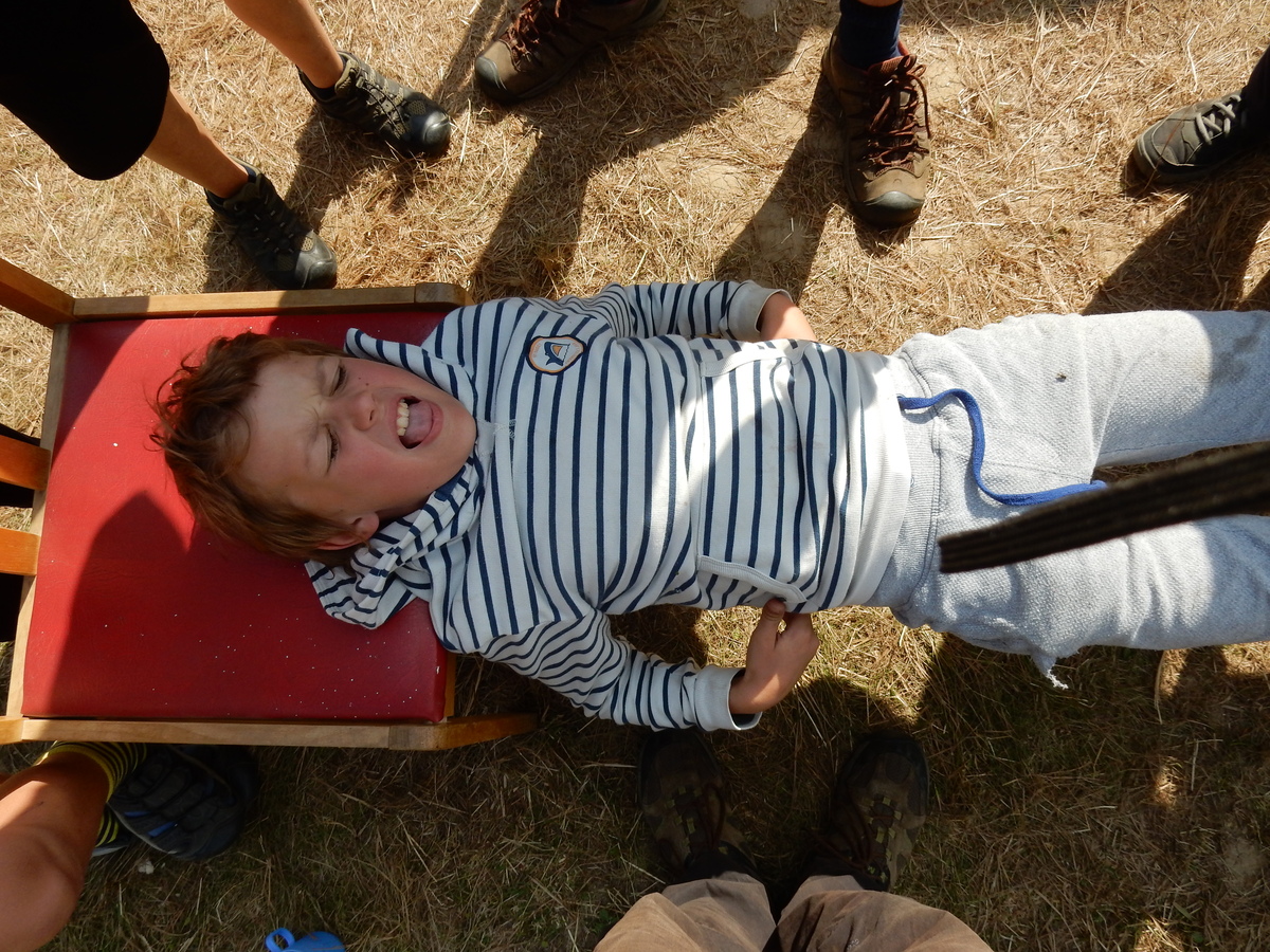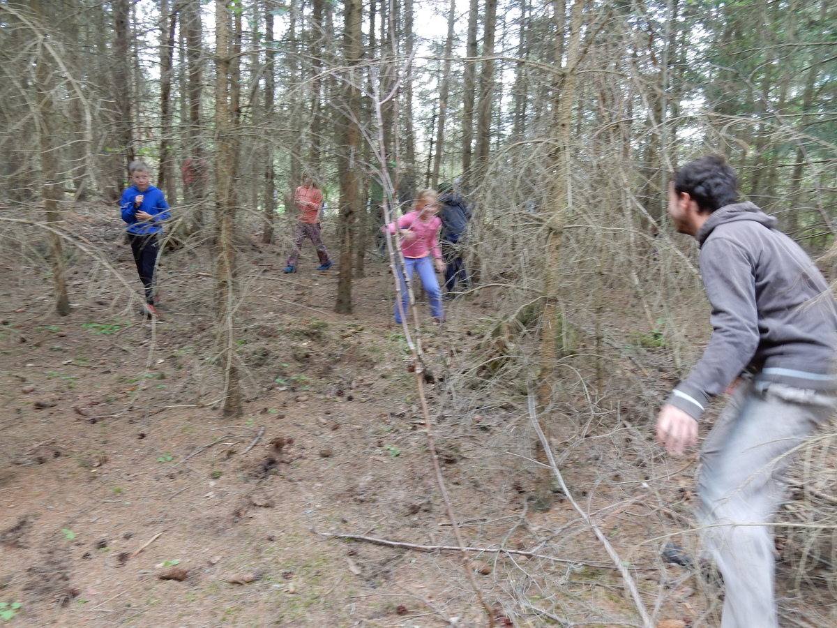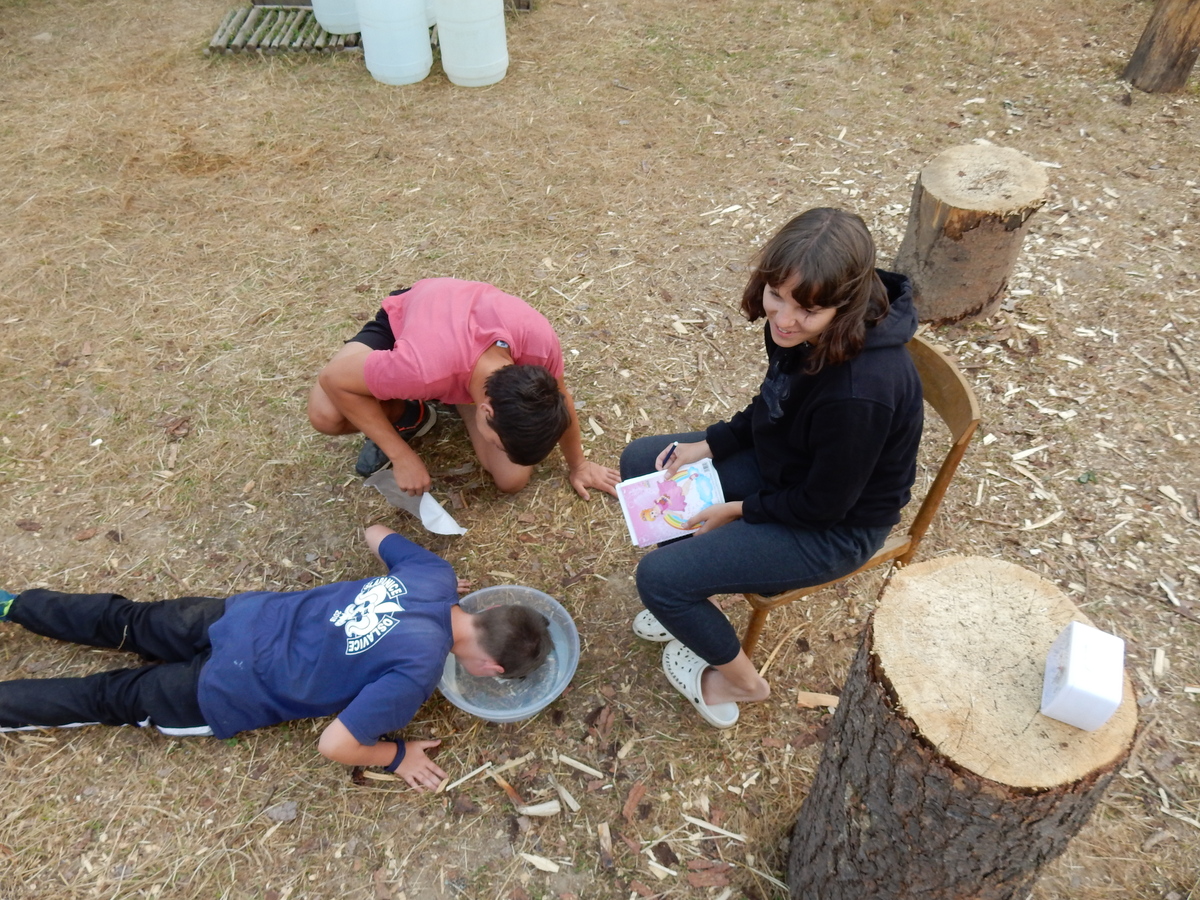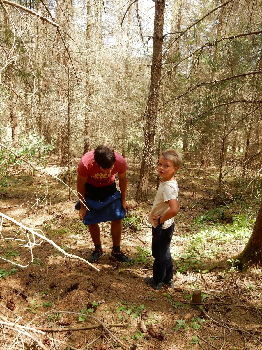 Třetí táborový den započal rozcvičkou, což některé mamánkovatější táborníky trošku překvapilo. Zvládli ji ale všichni. Dopoledne se konala velká bojovka v lese, pašeráci se snažili pronést územím obrů co nejvíce věcí. Odpoledne pak probíhalo ve znamení družinového programu a večer se zpívalo u ohně. Jo - a taky se vrátili z puťáků skautky a skauti, všichni živí a zdraví.