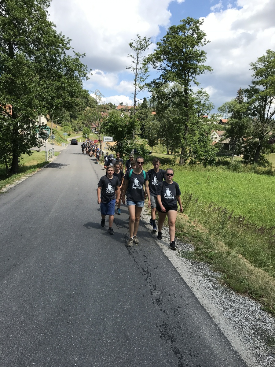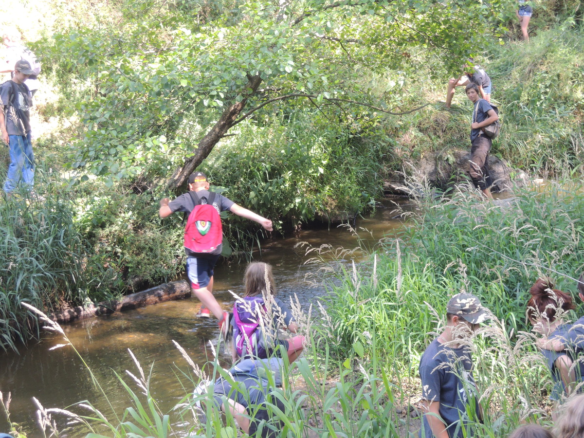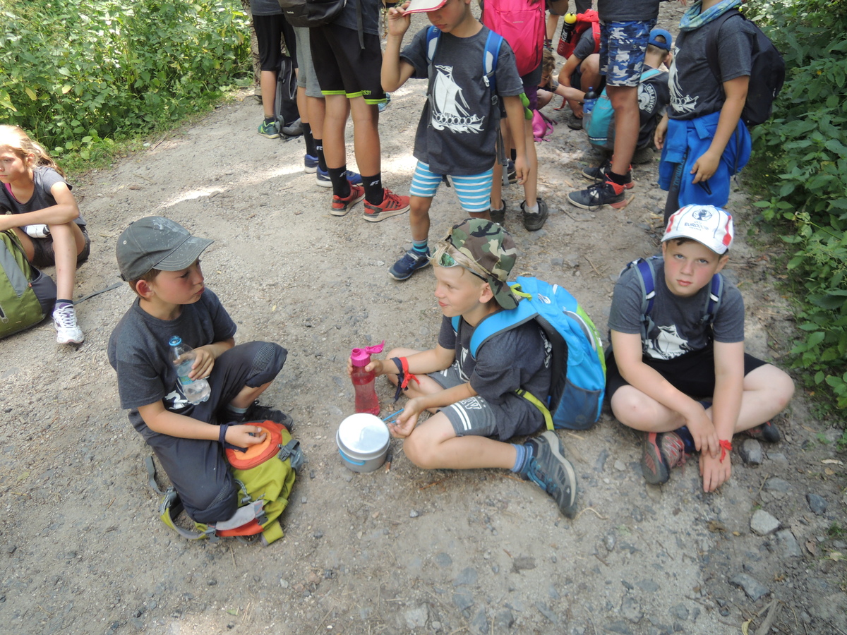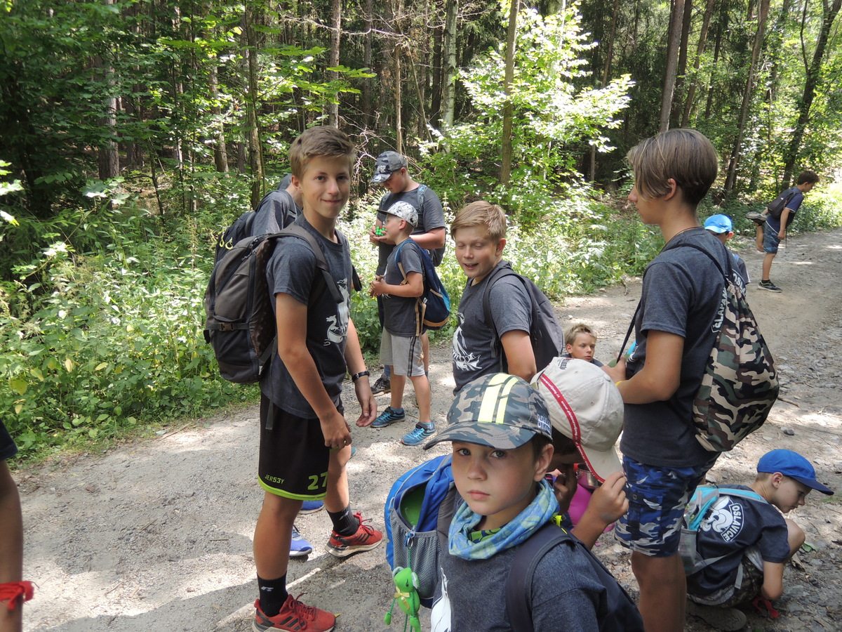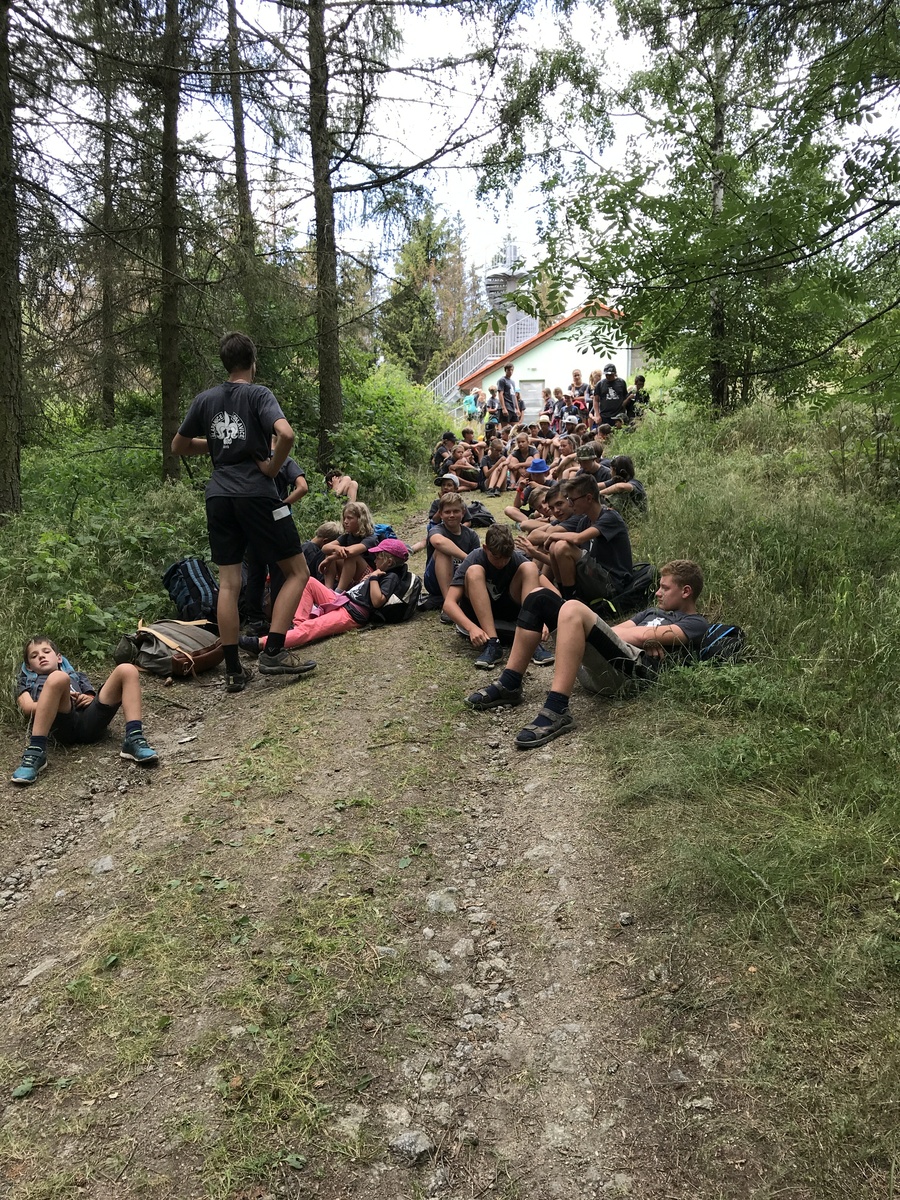 Čtvrtek byl věnován celodenní výpravě na rozhlednu Rubačka. Velmi příjemná procházka, svítilo sluníčko ale žádné vedro. Zpáteční cestu nám zpříjemnilo neplánované brodění přes Balinku a v táboře nás čekaly buchty od maminek. Večer se pak z dvojdenní akce vrátily nejstarší družiny-Pumy a Draci a taky se sportovalo. No a v noci bdělá hlídka odchytila jednoho zoufalého přepadače :-).