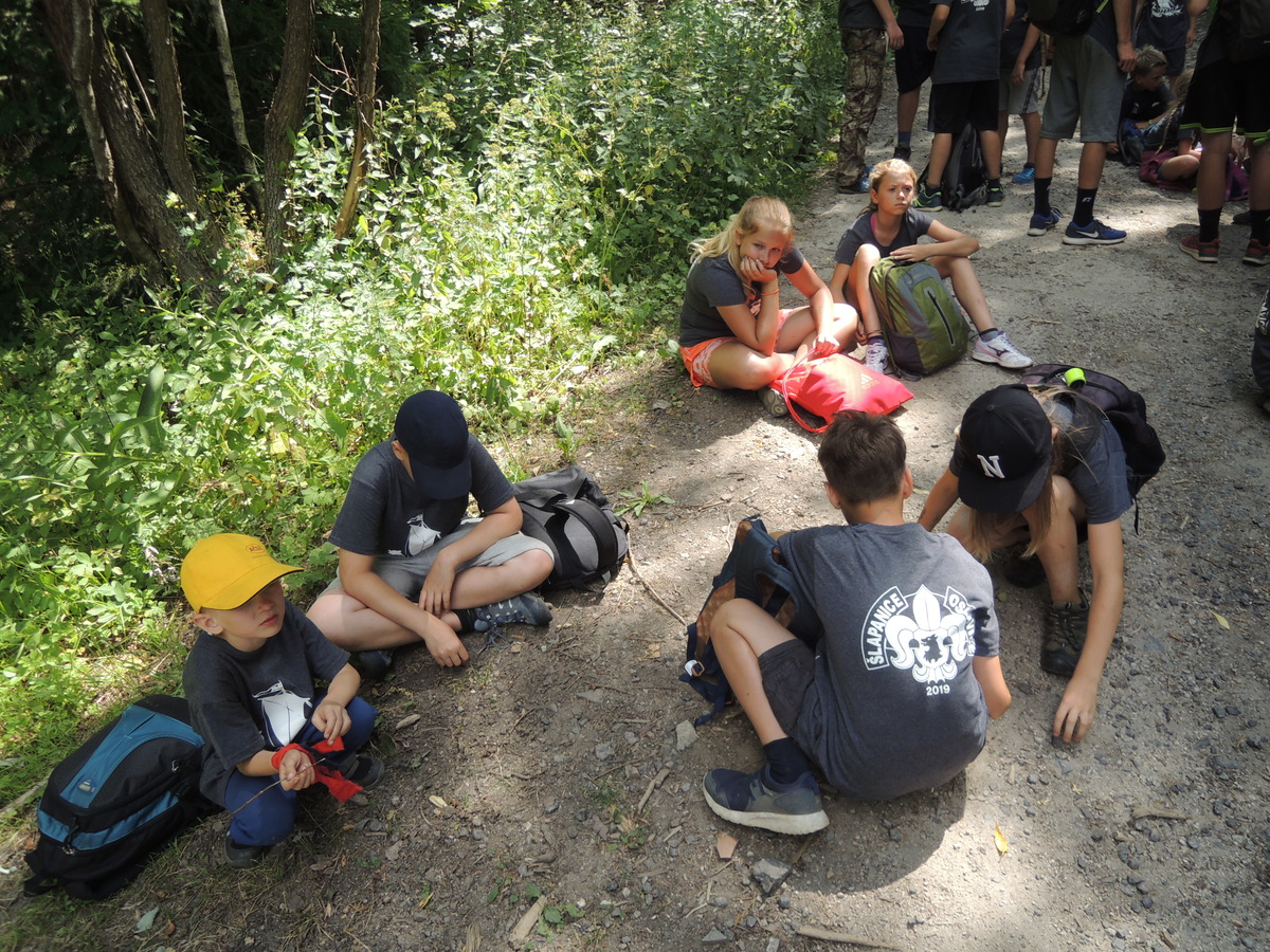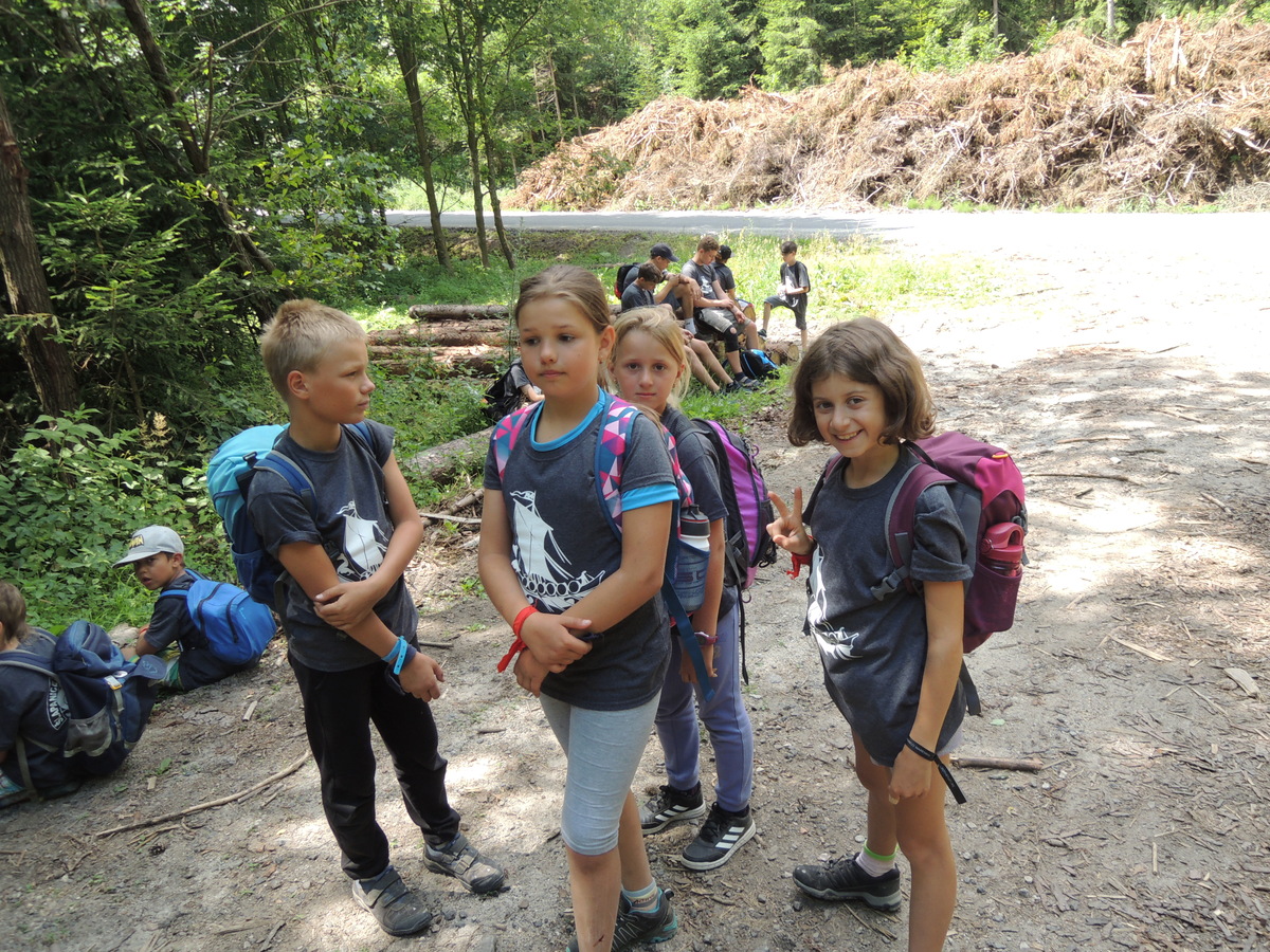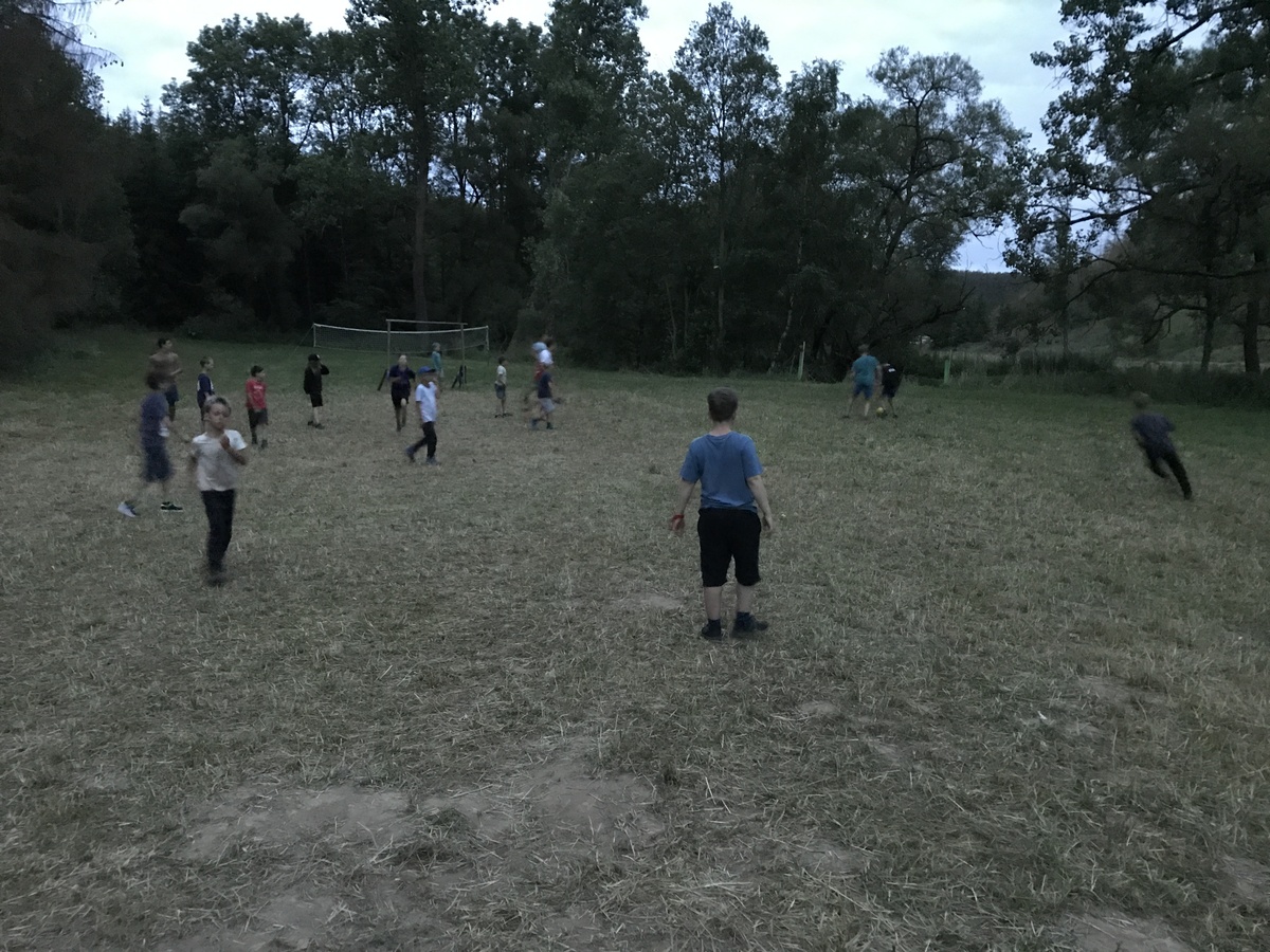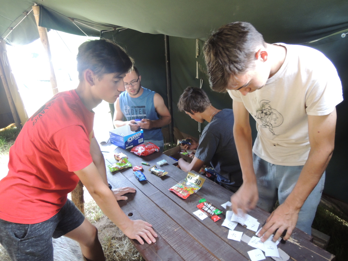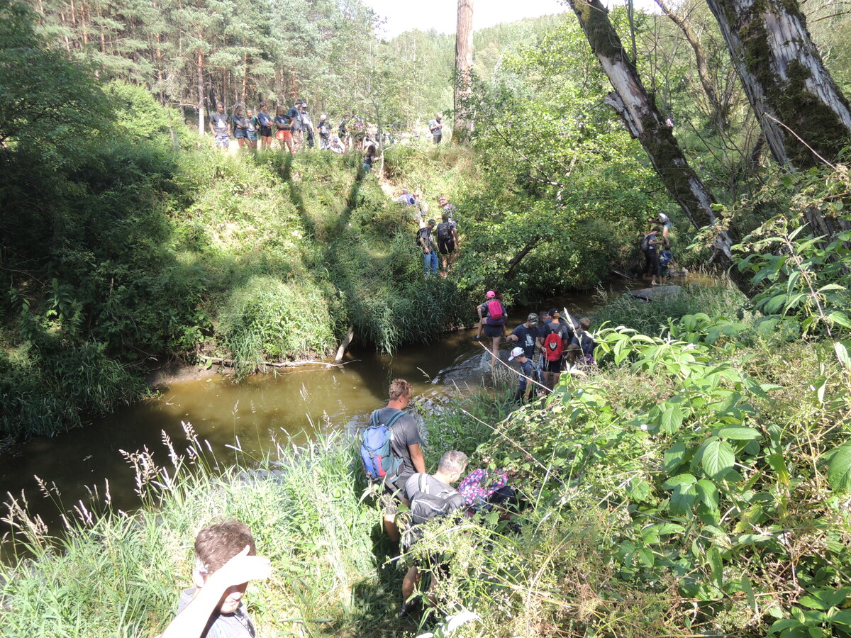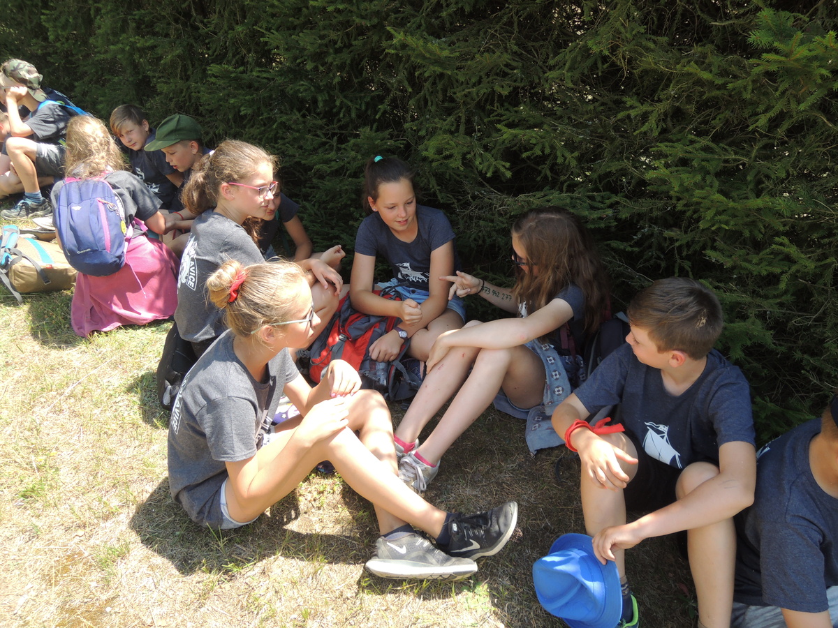 Čtvrtek byl věnován celodenní výpravě na rozhlednu Rubačka. Velmi příjemná procházka, svítilo sluníčko ale žádné vedro. Zpáteční cestu nám zpříjemnilo neplánované brodění přes Balinku a v táboře nás čekaly buchty od maminek. Večer se pak z dvojdenní akce vrátily nejstarší družiny-Pumy a Draci a taky se sportovalo. No a v noci bdělá hlídka odchytila jednoho zoufalého přepadače :-).
