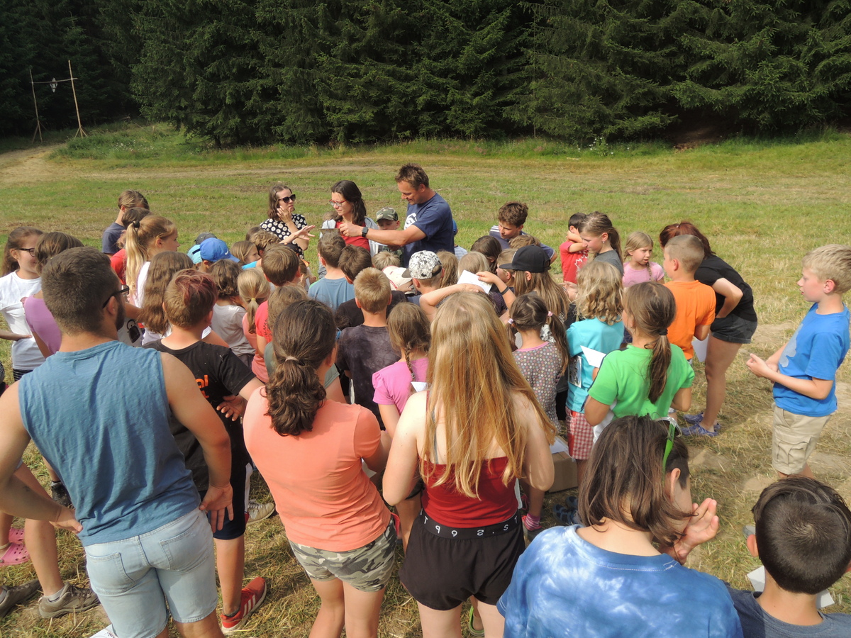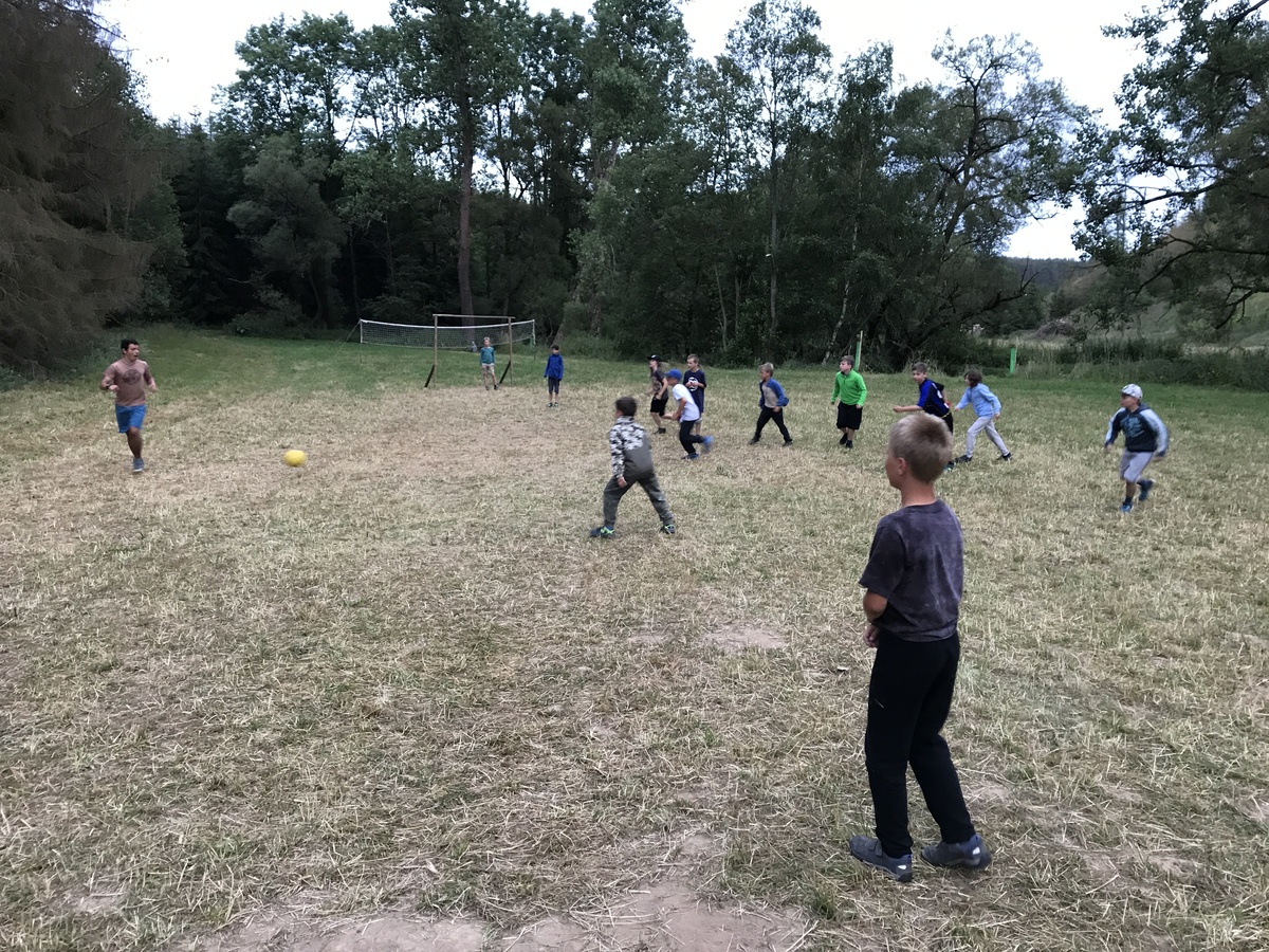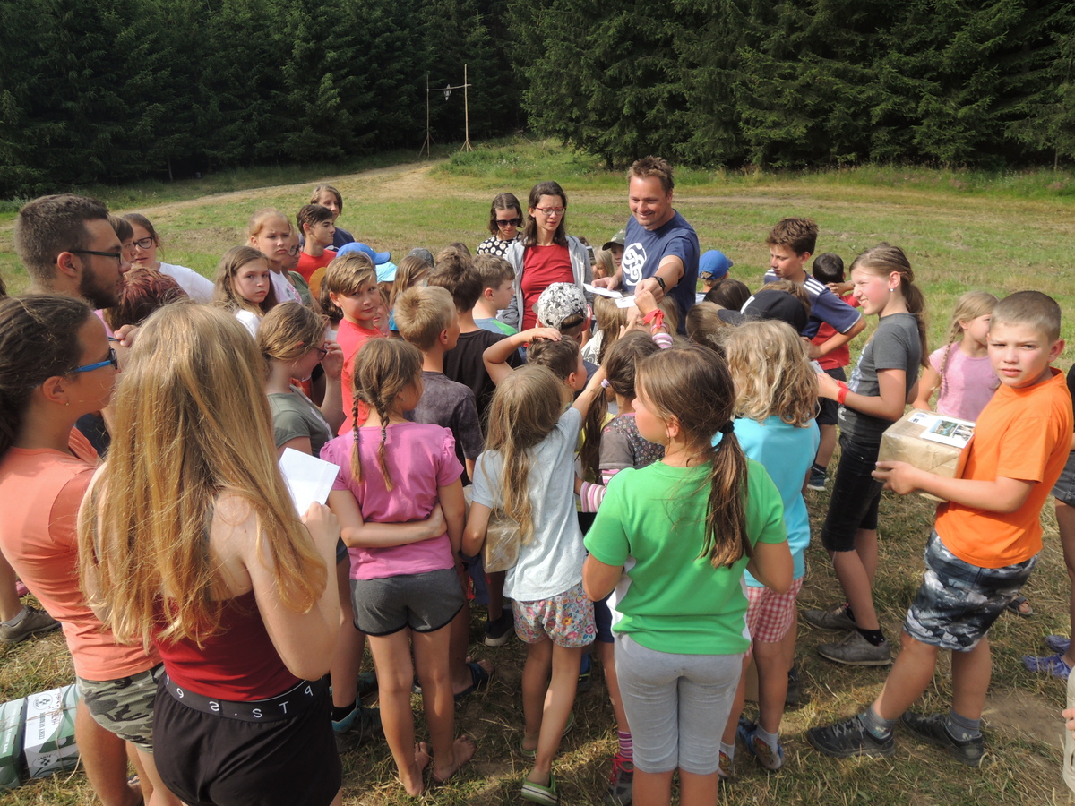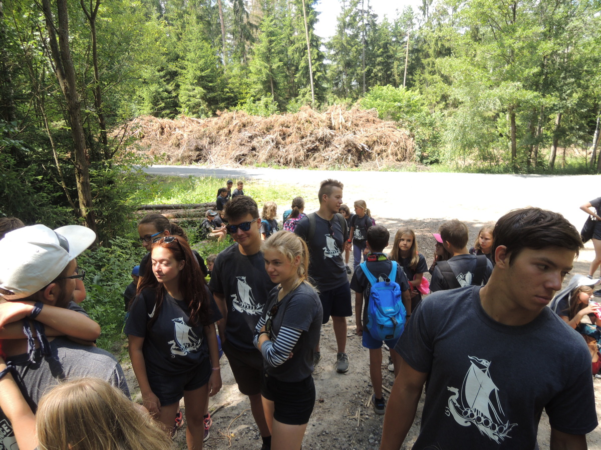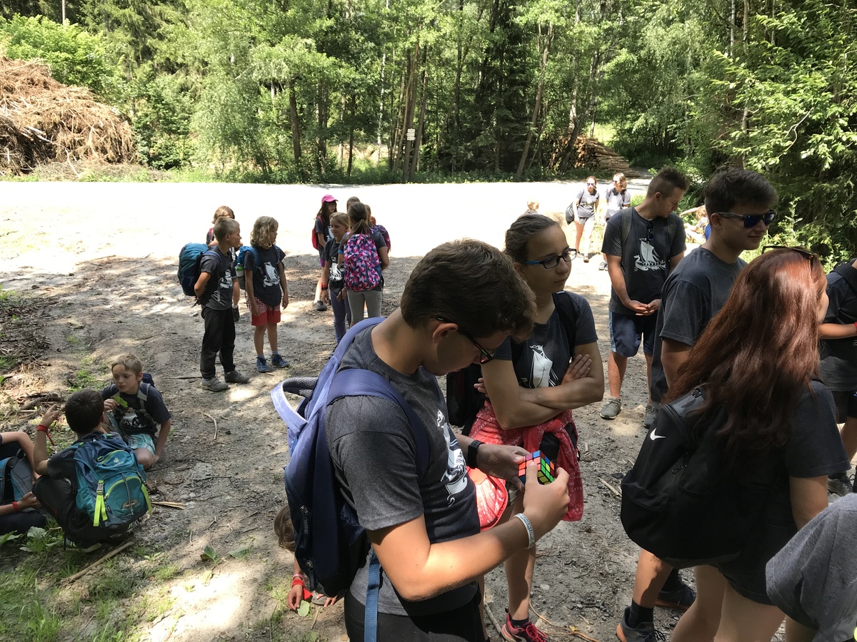 Čtvrtek byl věnován celodenní výpravě na rozhlednu Rubačka. Velmi příjemná procházka, svítilo sluníčko ale žádné vedro. Zpáteční cestu nám zpříjemnilo neplánované brodění přes Balinku a v táboře nás čekaly buchty od maminek. Večer se pak z dvojdenní akce vrátily nejstarší družiny-Pumy a Draci a taky se sportovalo. No a v noci bdělá hlídka odchytila jednoho zoufalého přepadače :-).