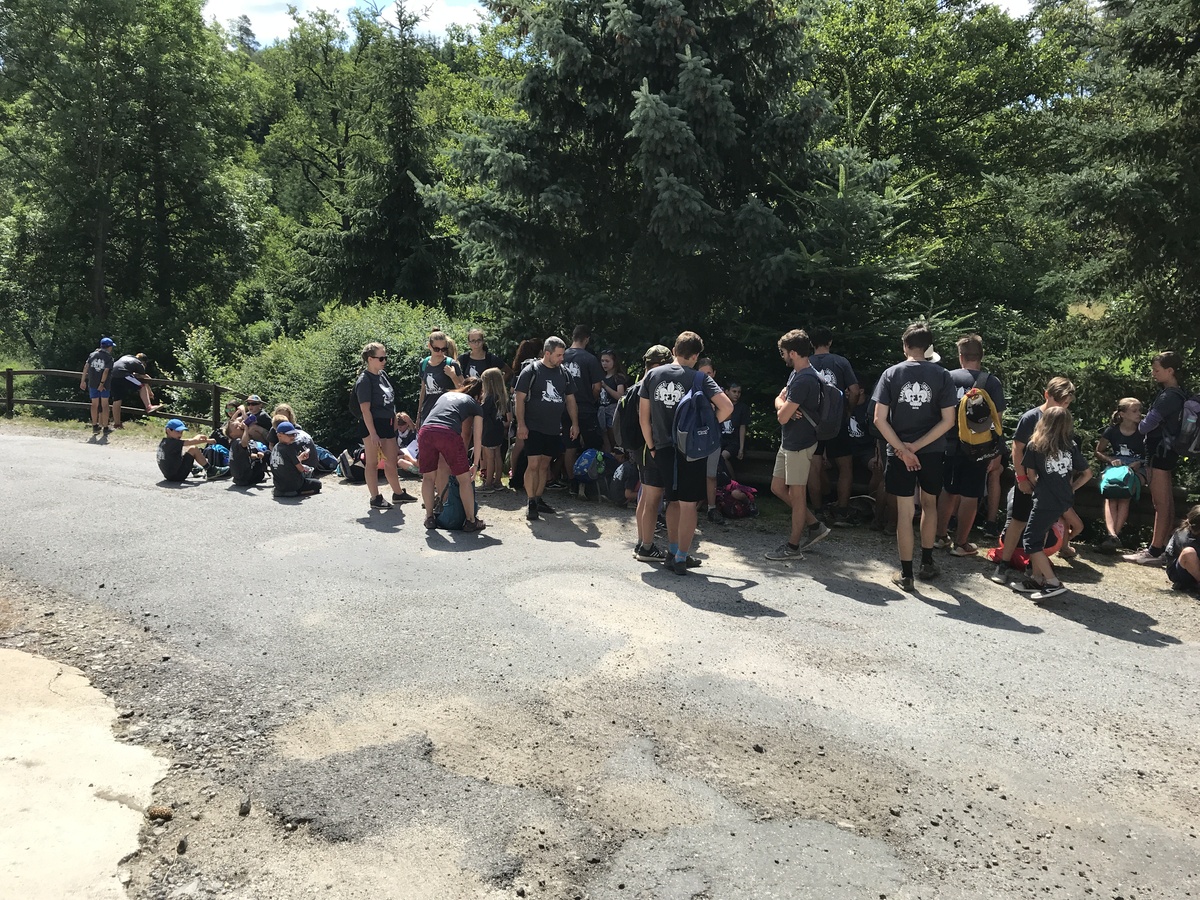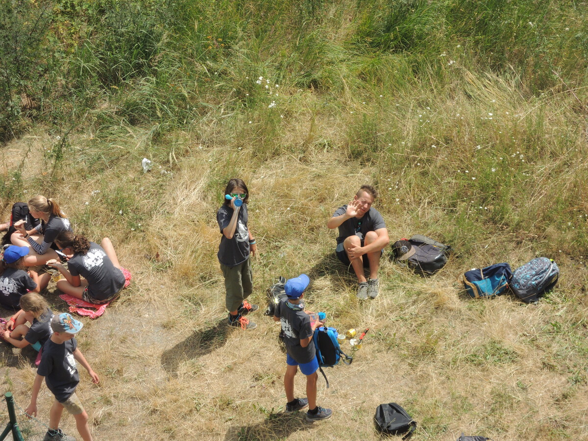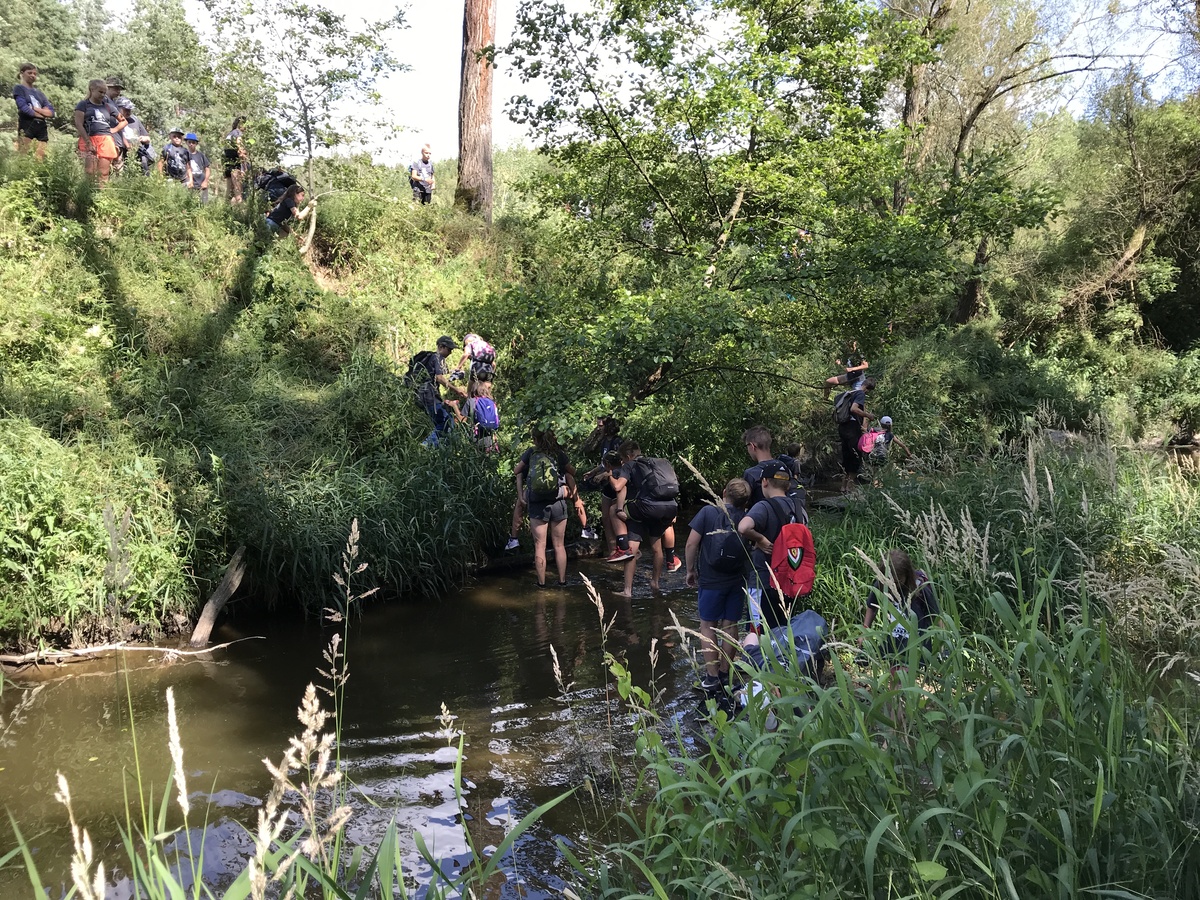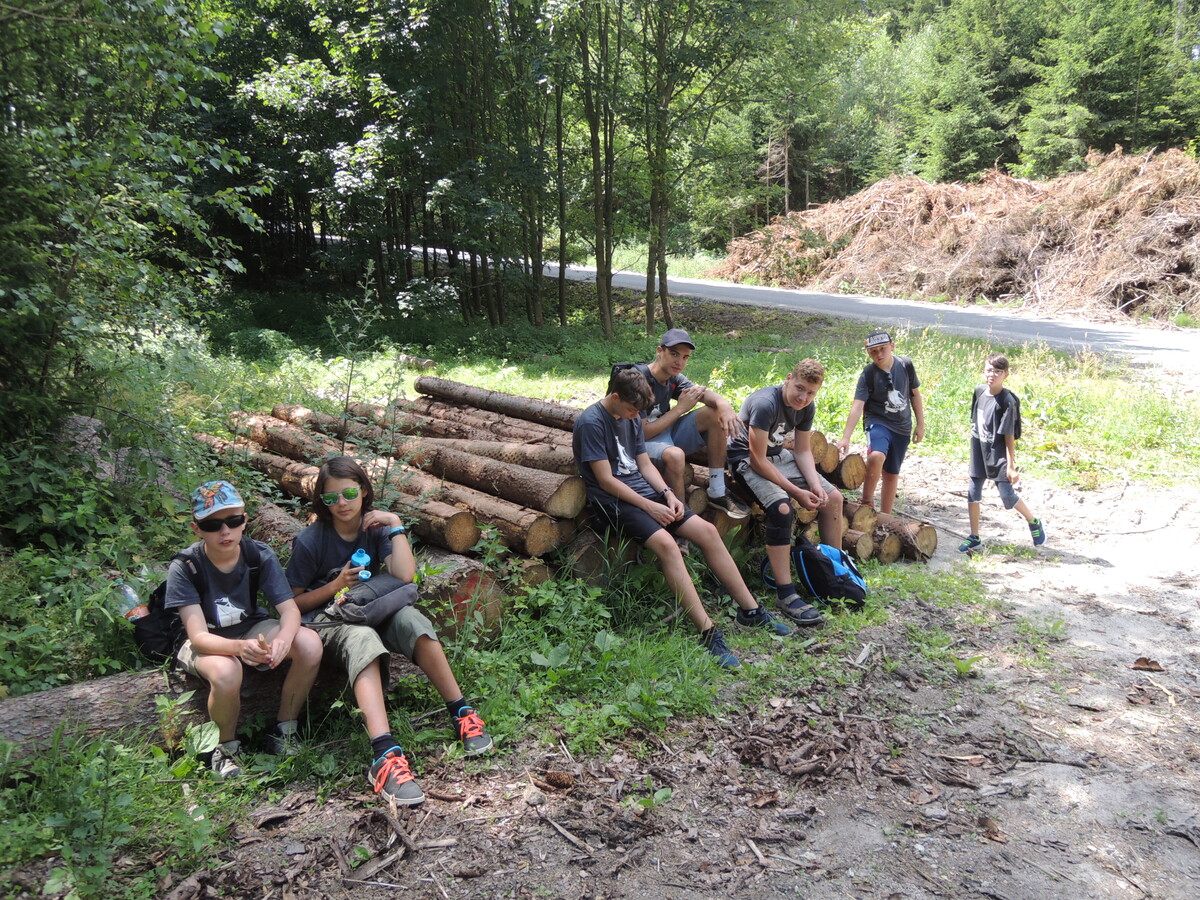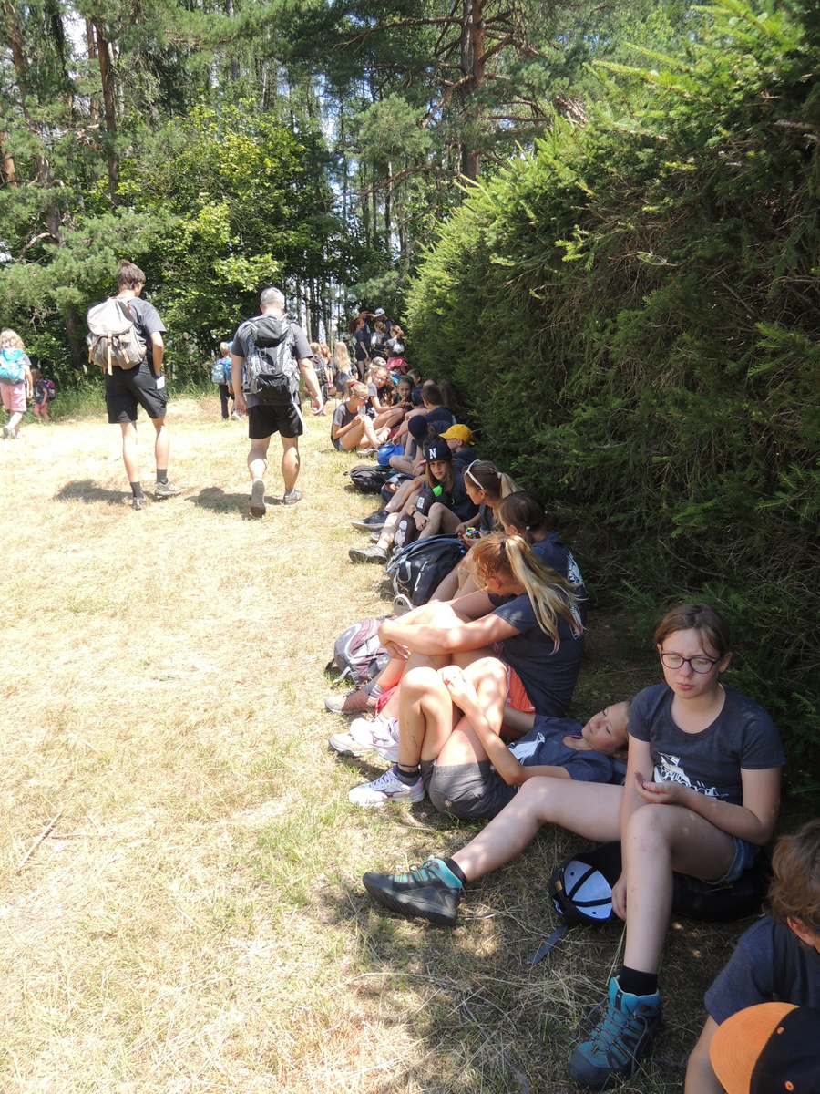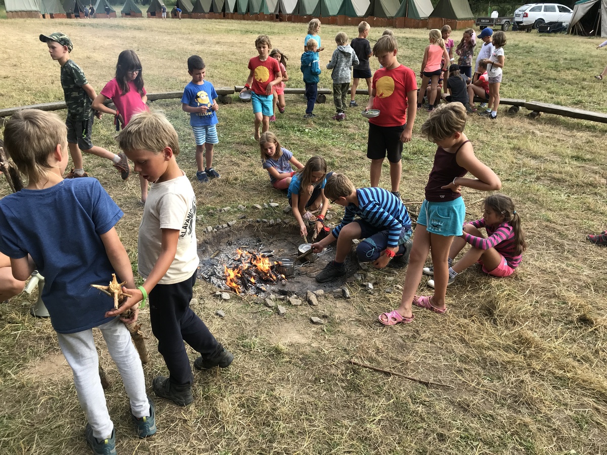 Čtvrtek byl věnován celodenní výpravě na rozhlednu Rubačka. Velmi příjemná procházka, svítilo sluníčko ale žádné vedro. Zpáteční cestu nám zpříjemnilo neplánované brodění přes Balinku a v táboře nás čekaly buchty od maminek. Večer se pak z dvojdenní akce vrátily nejstarší družiny-Pumy a Draci a taky se sportovalo. No a v noci bdělá hlídka odchytila jednoho zoufalého přepadače :-).