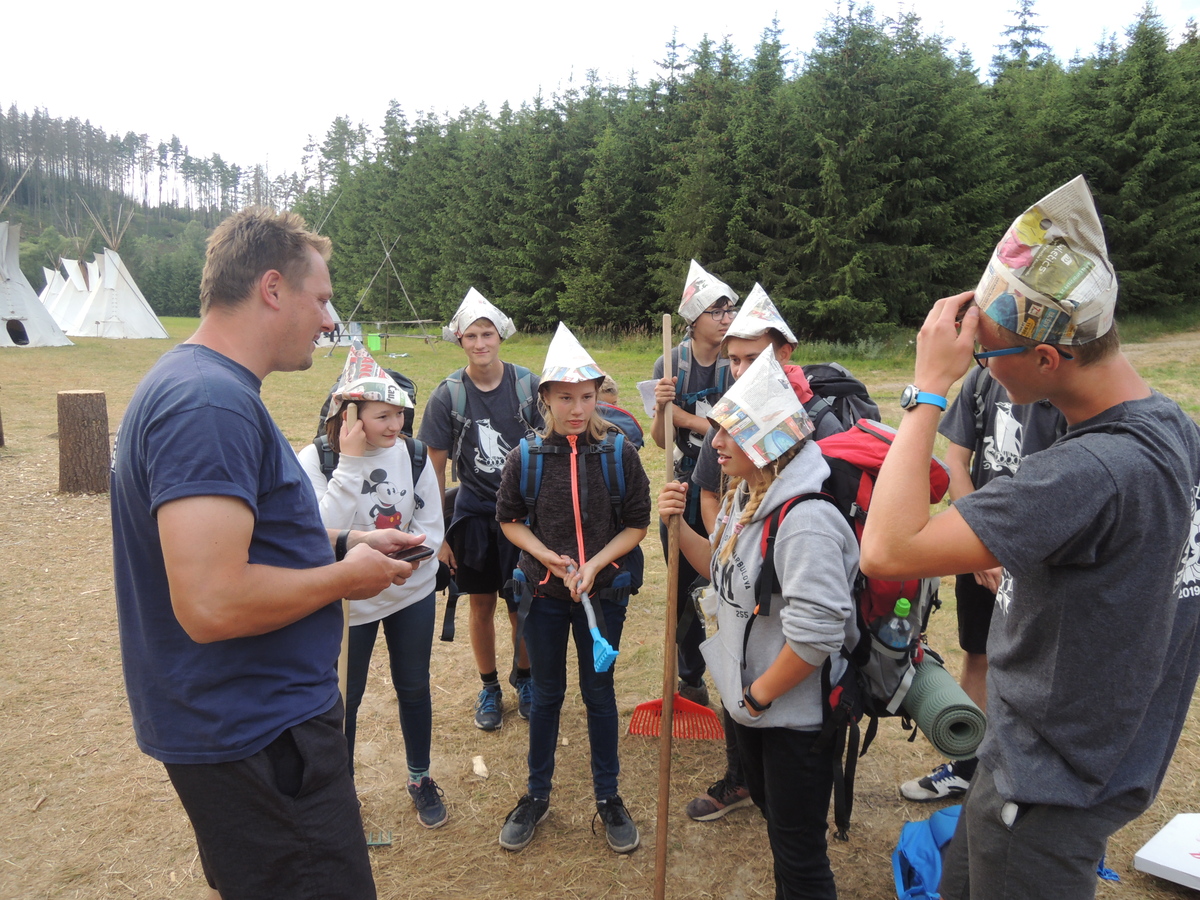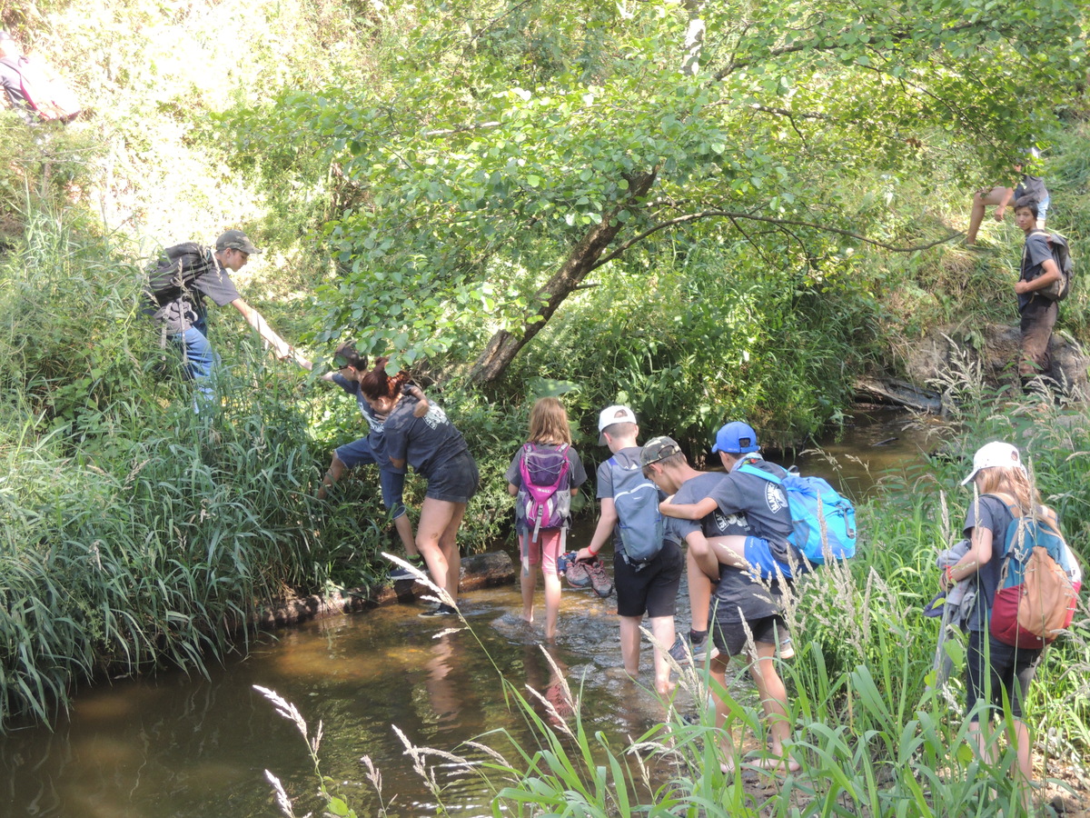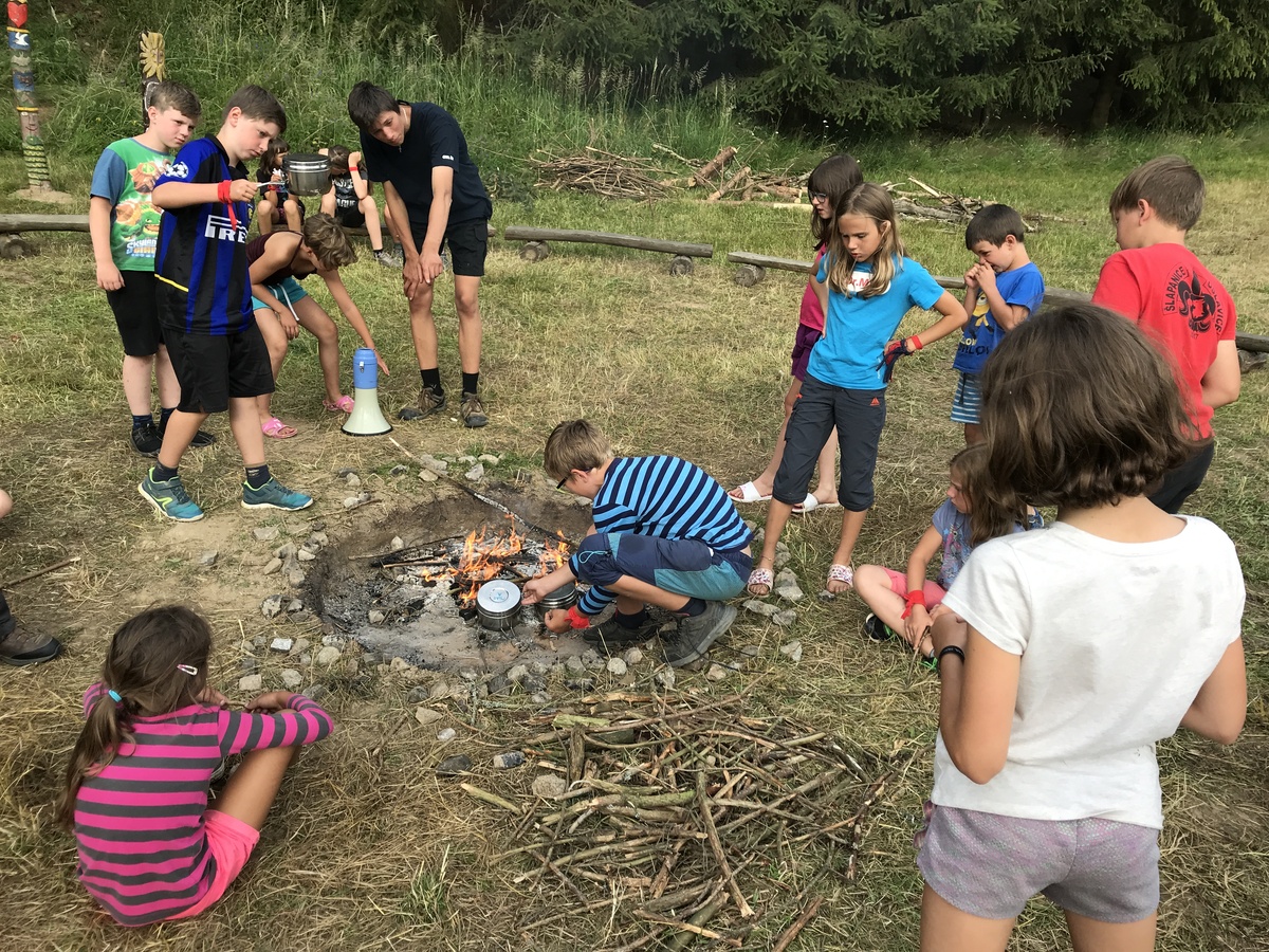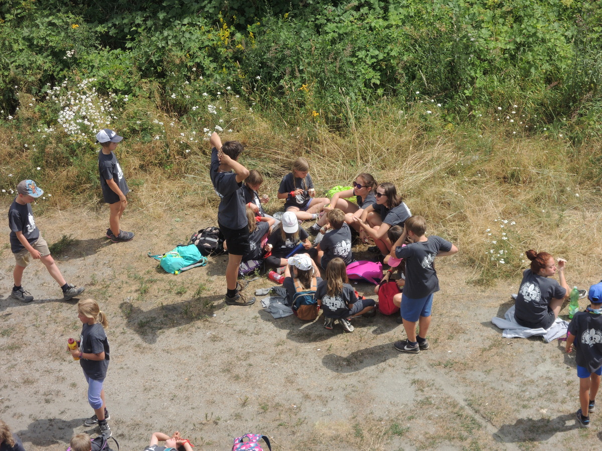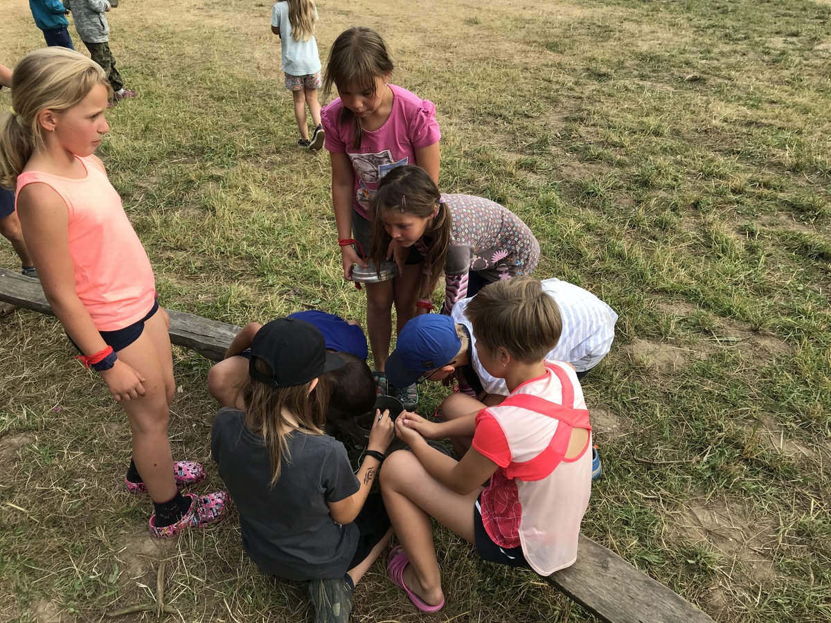 Čtvrtek byl věnován celodenní výpravě na rozhlednu Rubačka. Velmi příjemná procházka, svítilo sluníčko ale žádné vedro. Zpáteční cestu nám zpříjemnilo neplánované brodění přes Balinku a v táboře nás čekaly buchty od maminek. Večer se pak z dvojdenní akce vrátily nejstarší družiny-Pumy a Draci a taky se sportovalo. No a v noci bdělá hlídka odchytila jednoho zoufalého přepadače :-).