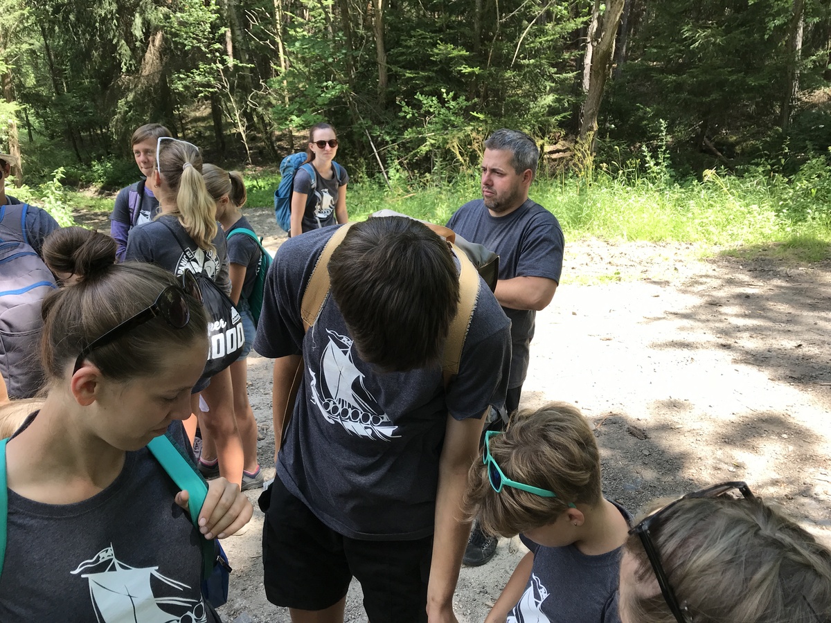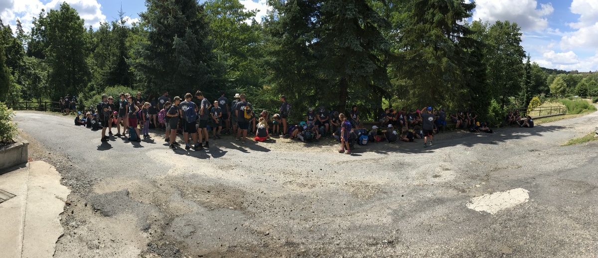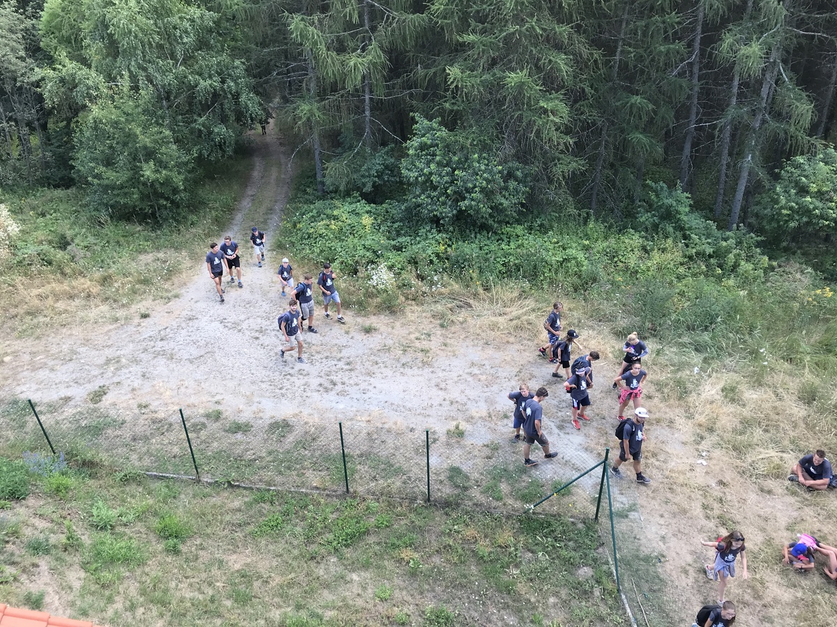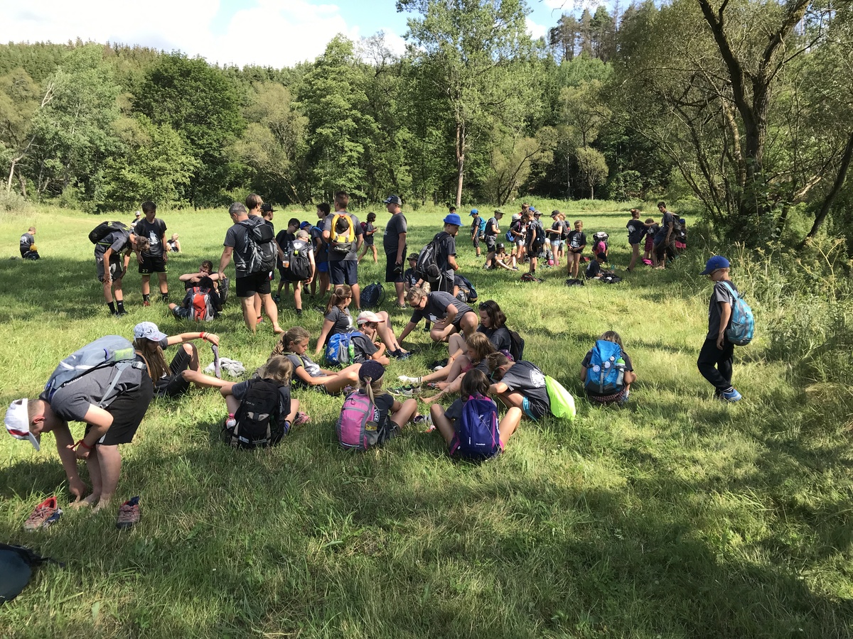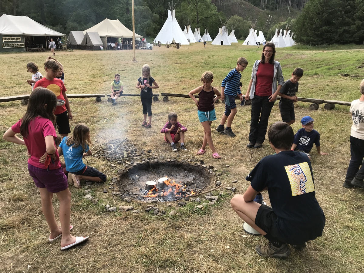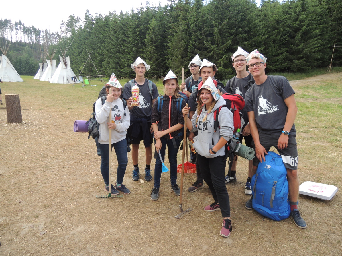 Čtvrtek byl věnován celodenní výpravě na rozhlednu Rubačka. Velmi příjemná procházka, svítilo sluníčko ale žádné vedro. Zpáteční cestu nám zpříjemnilo neplánované brodění přes Balinku a v táboře nás čekaly buchty od maminek. Večer se pak z dvojdenní akce vrátily nejstarší družiny-Pumy a Draci a taky se sportovalo. No a v noci bdělá hlídka odchytila jednoho zoufalého přepadače :-).