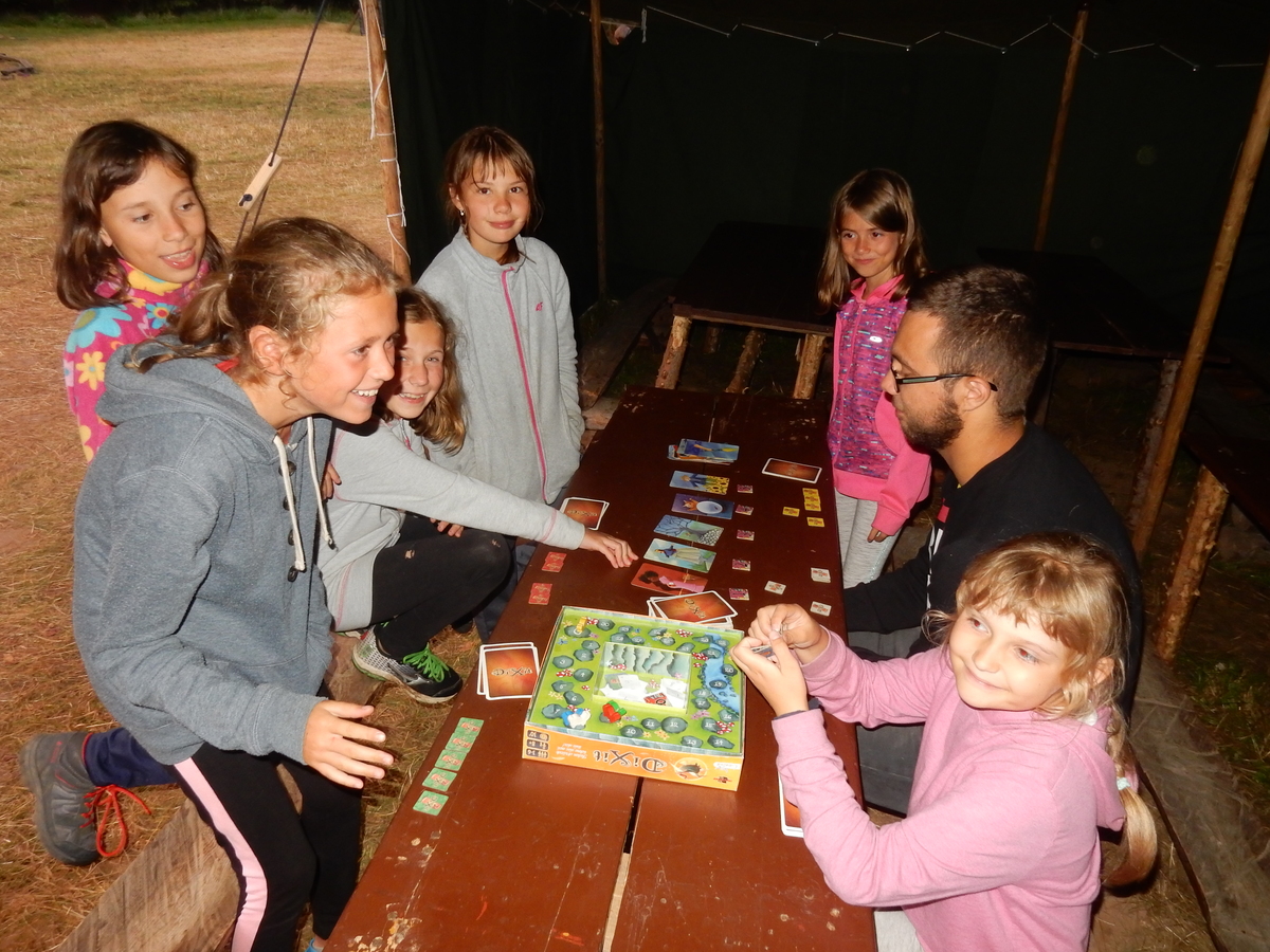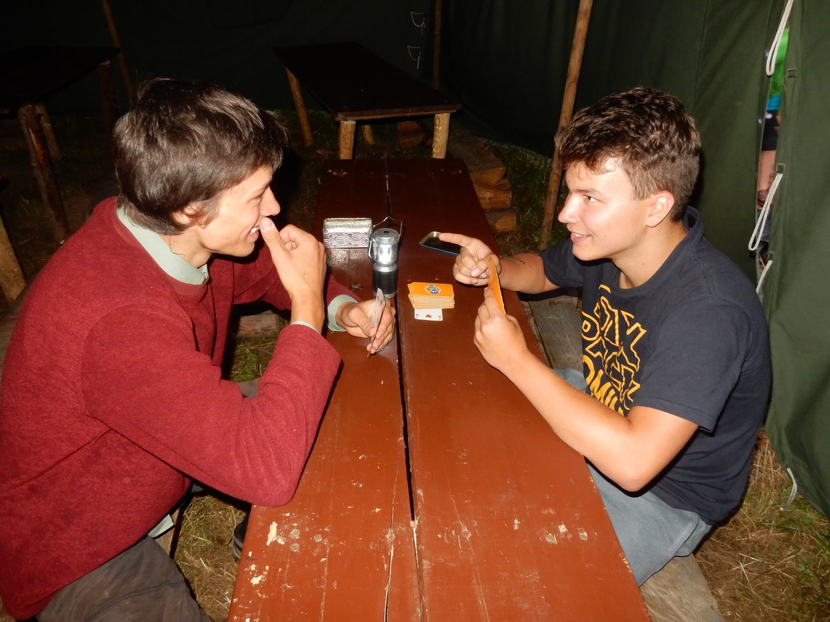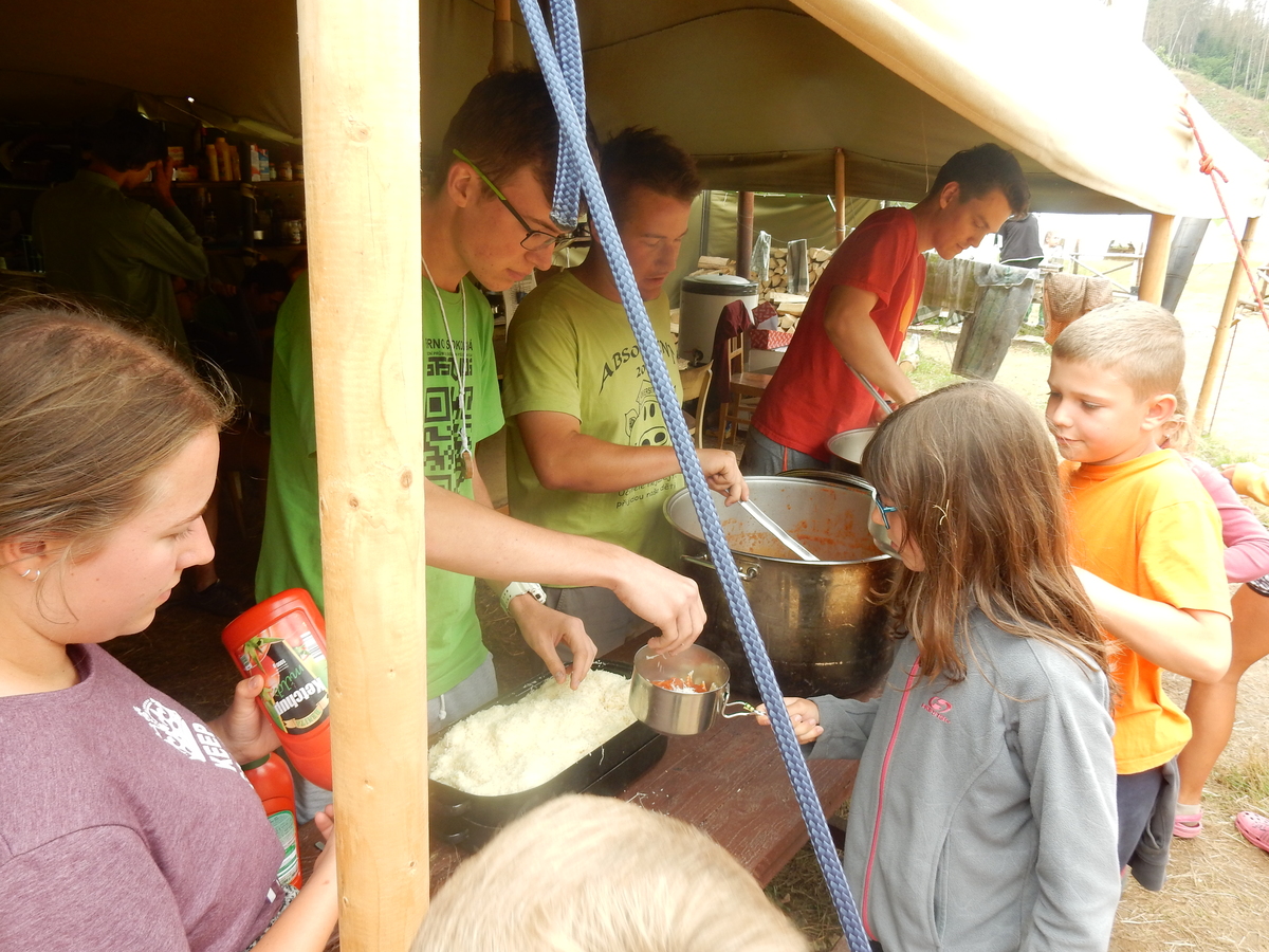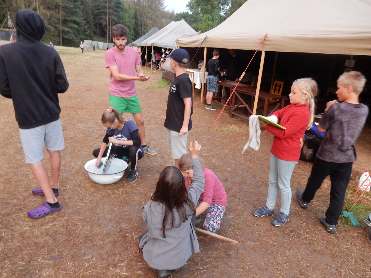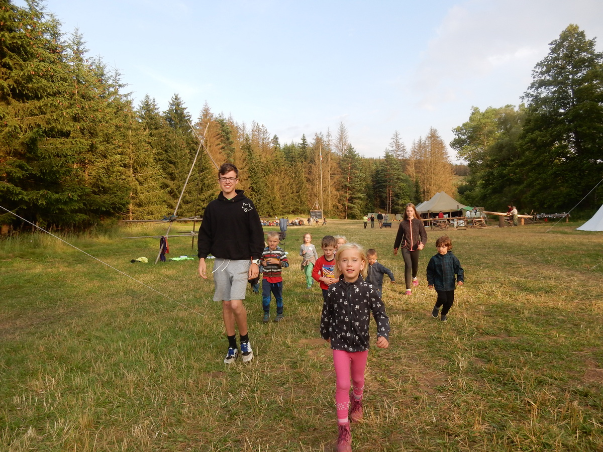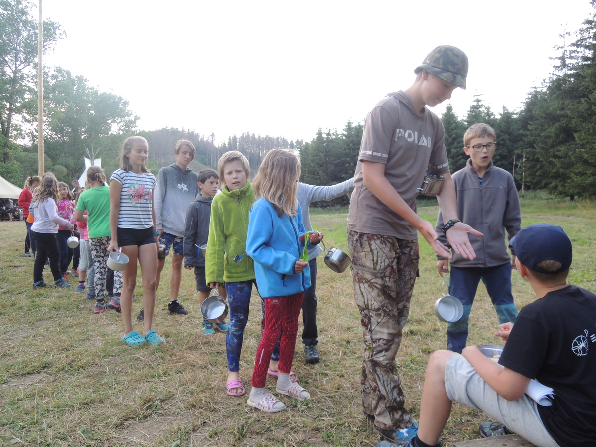 Dnešním dnem se tábor přehoupnul do své druhé poloviny. Dopoledne měli starší, mladší i nejmladší etapy, odpoledne už to skoro vypadalo na bojovku (chvíli vykouklo i sluníčko), nakonec ale zase zvítězil déšť. Přijelo několik návštěv. Večerním program byl po družinkách, většina táborníků se věnovala stolním hrám. Zítra je neděle a opustí nás Svištíci.