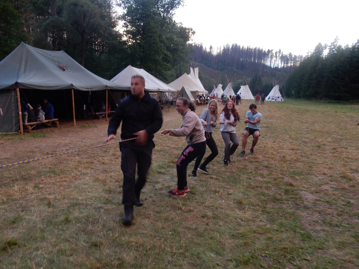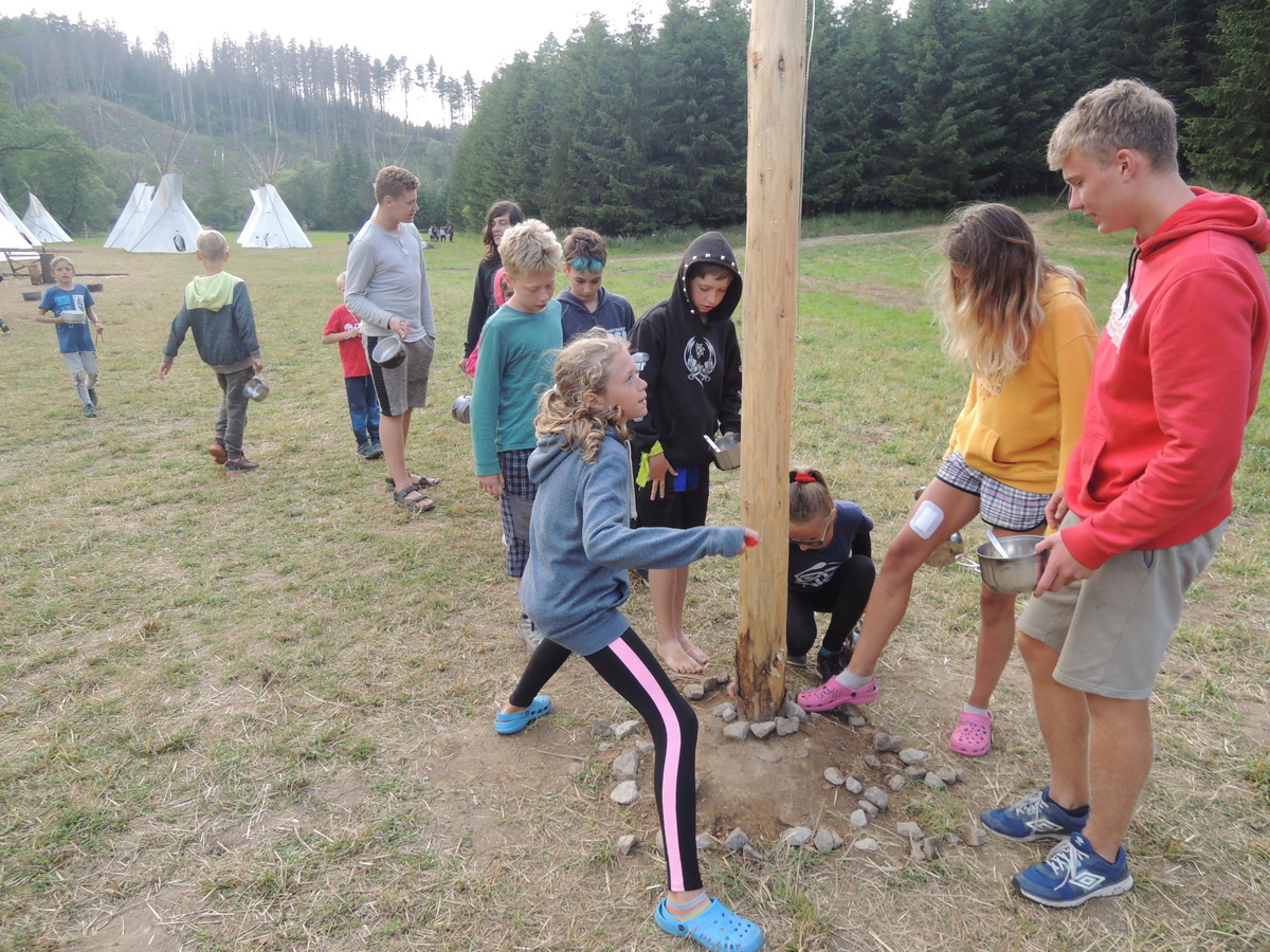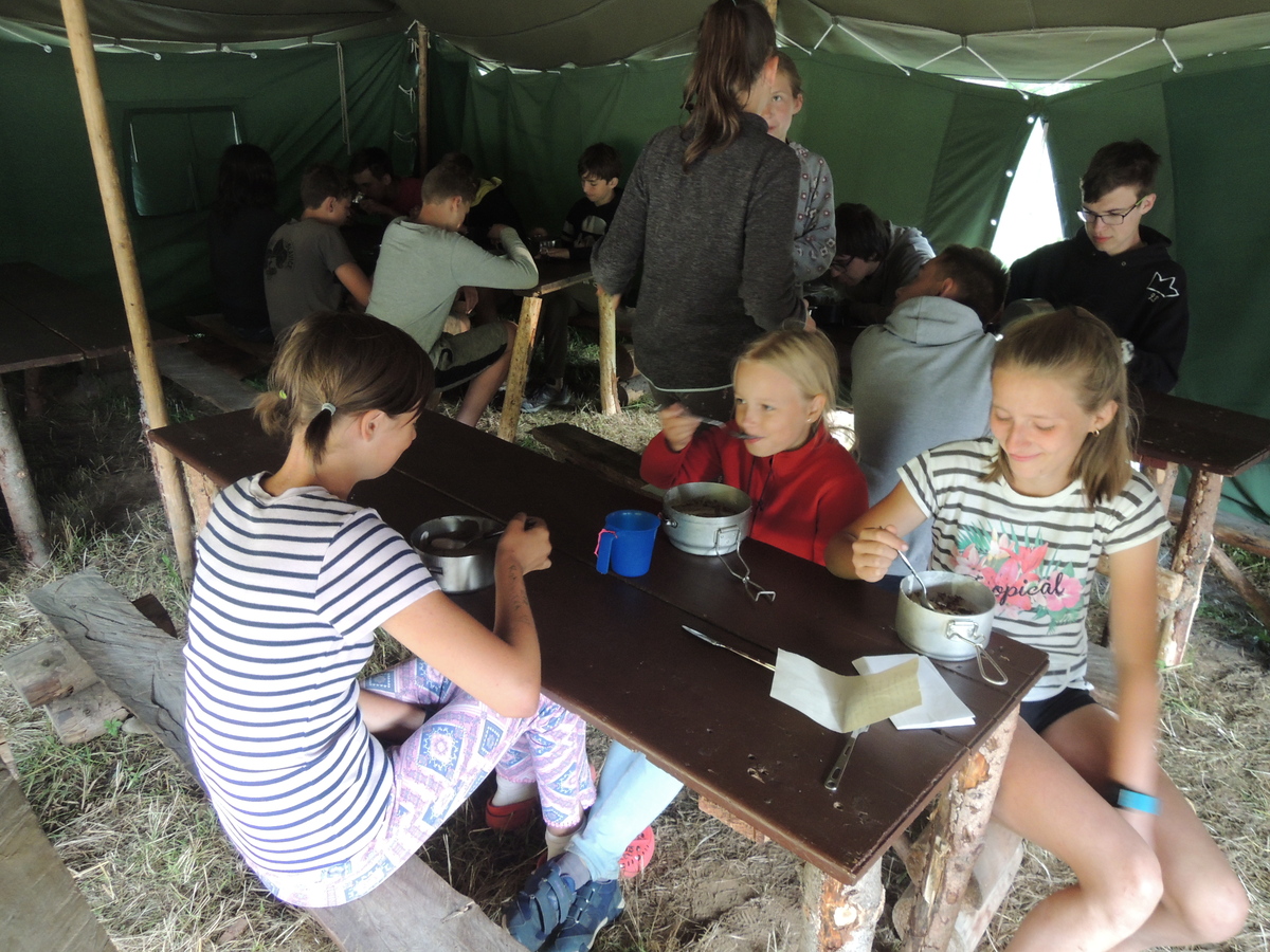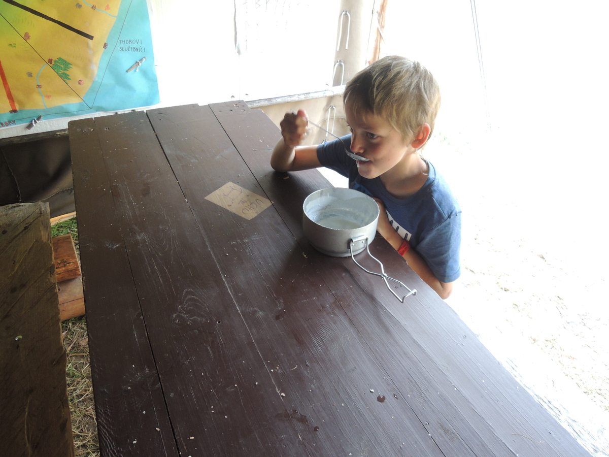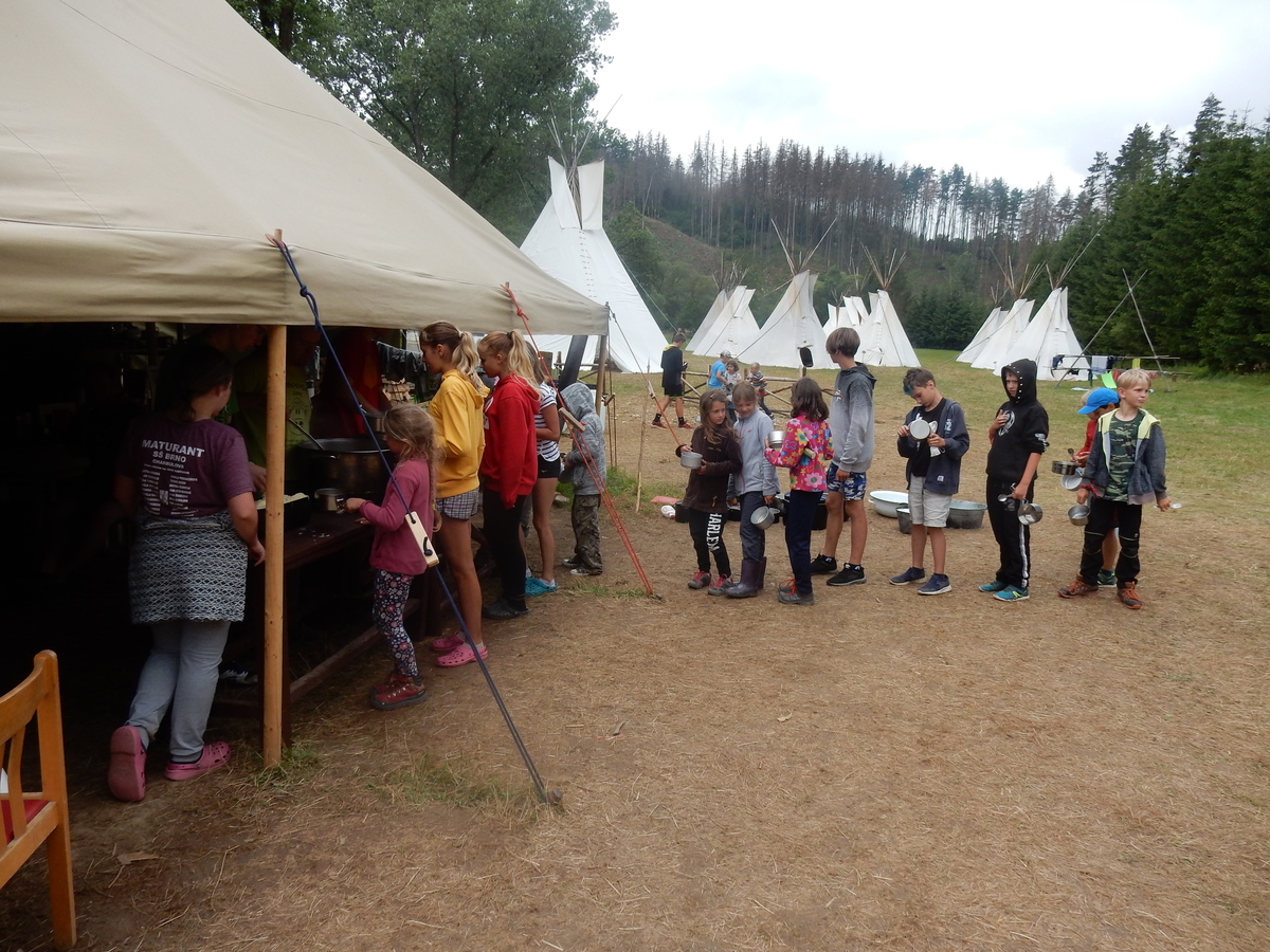 Dnešním dnem se tábor přehoupnul do své druhé poloviny. Dopoledne měli starší, mladší i nejmladší etapy, odpoledne už to skoro vypadalo na bojovku (chvíli vykouklo i sluníčko), nakonec ale zase zvítězil déšť. Přijelo několik návštěv. Večerním program byl po družinkách, většina táborníků se věnovala stolním hrám. Zítra je neděle a opustí nás Svištíci.