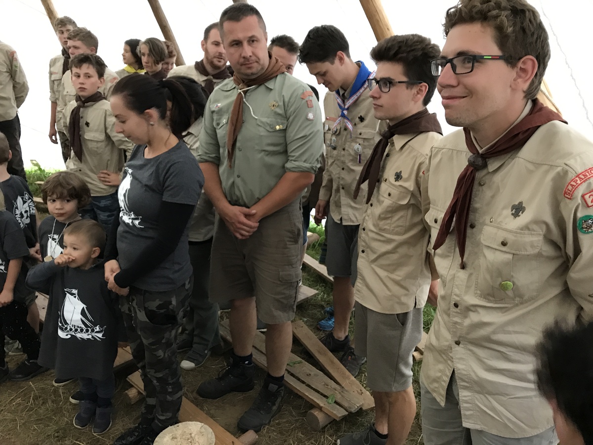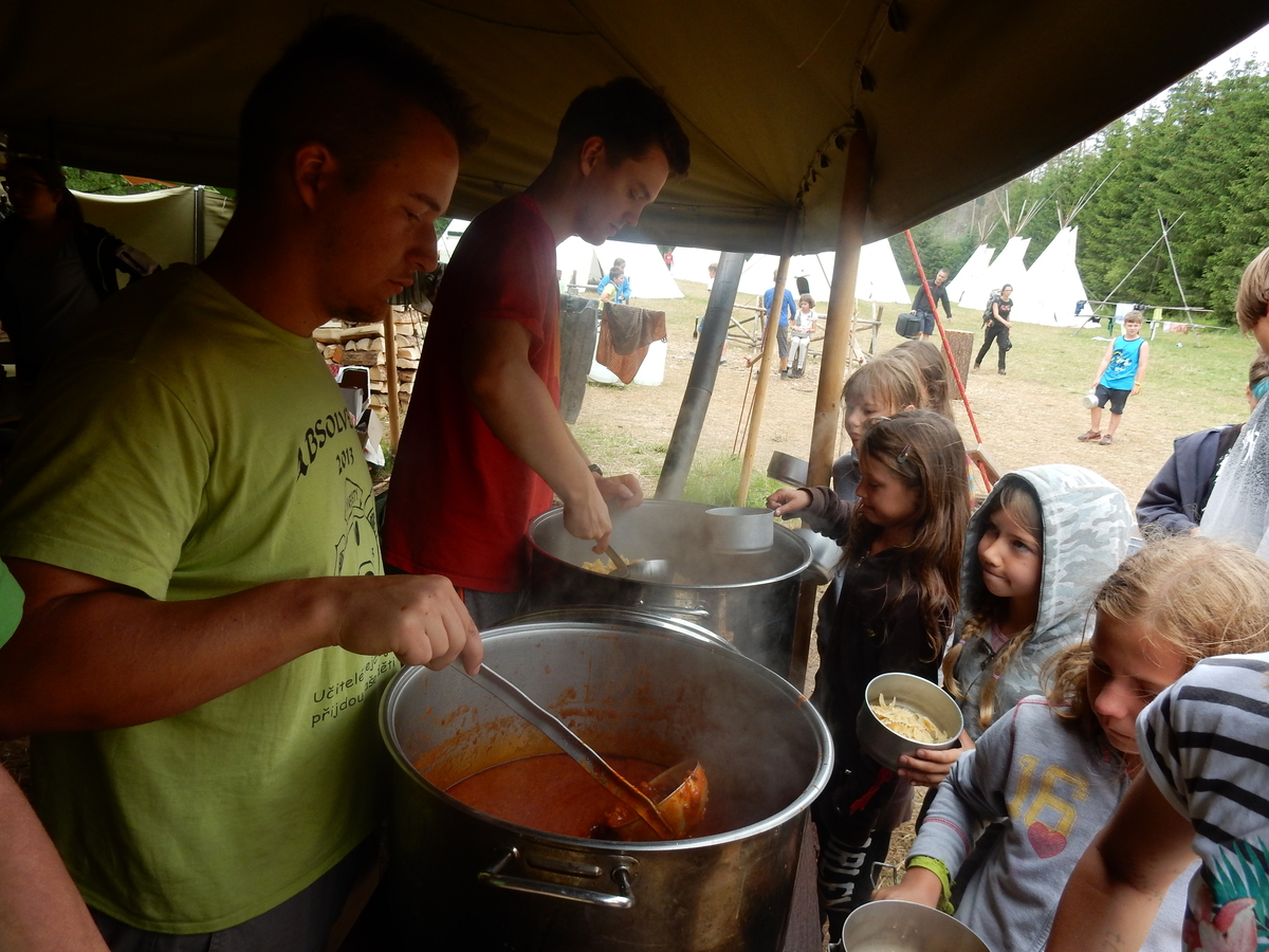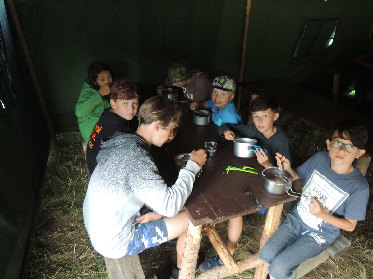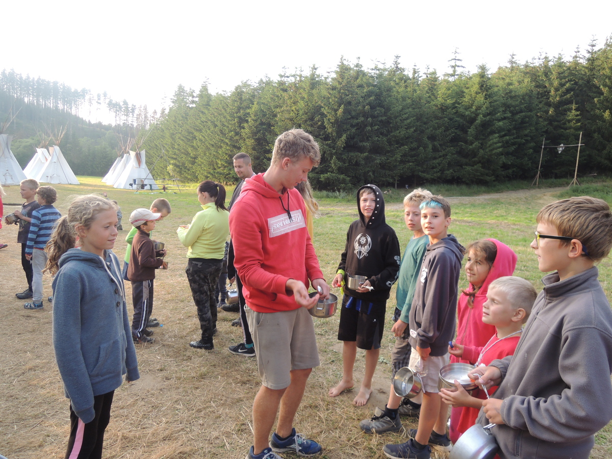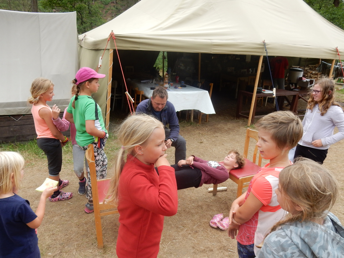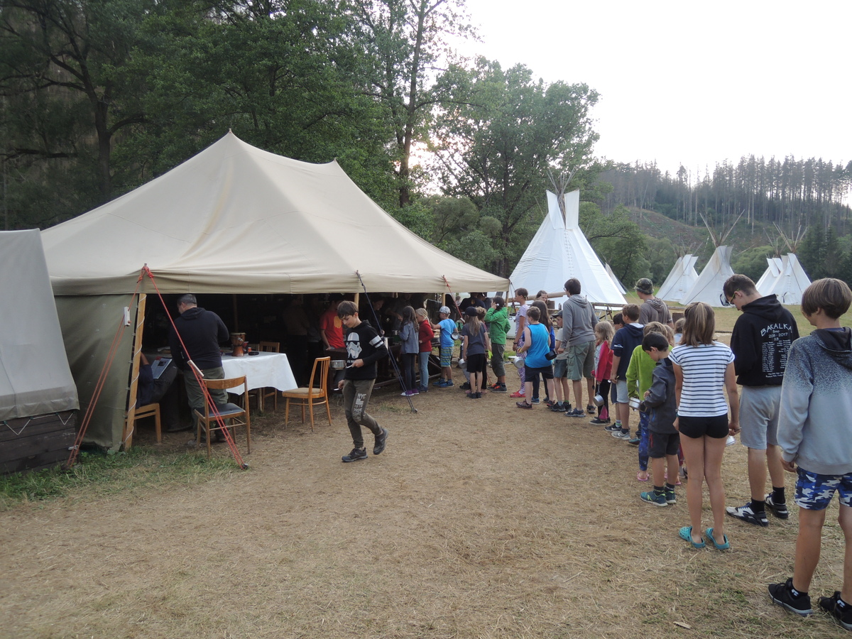 Dnešním dnem se tábor přehoupnul do své druhé poloviny. Dopoledne měli starší, mladší i nejmladší etapy, odpoledne už to skoro vypadalo na bojovku (chvíli vykouklo i sluníčko), nakonec ale zase zvítězil déšť. Přijelo několik návštěv. Večerním program byl po družinkách, většina táborníků se věnovala stolním hrám. Zítra je neděle a opustí nás Svištíci.