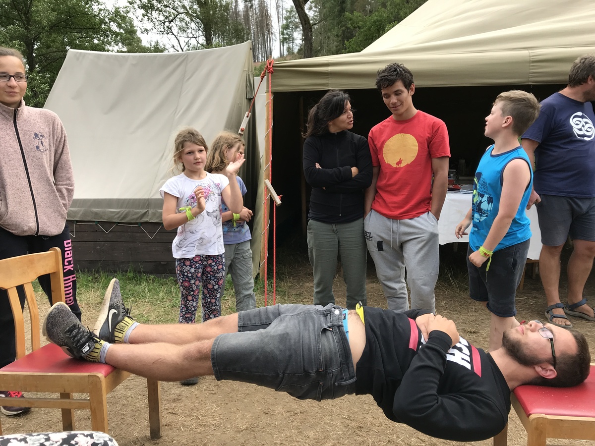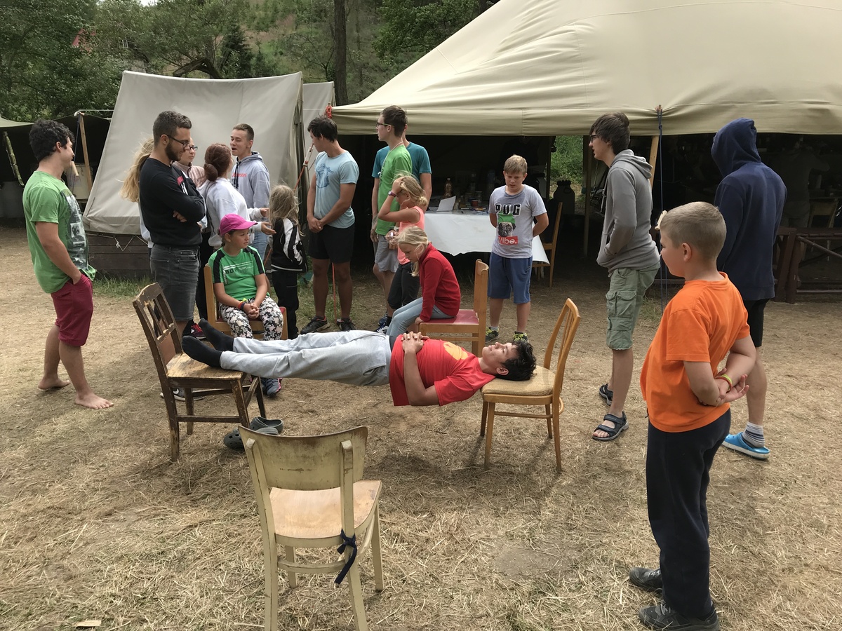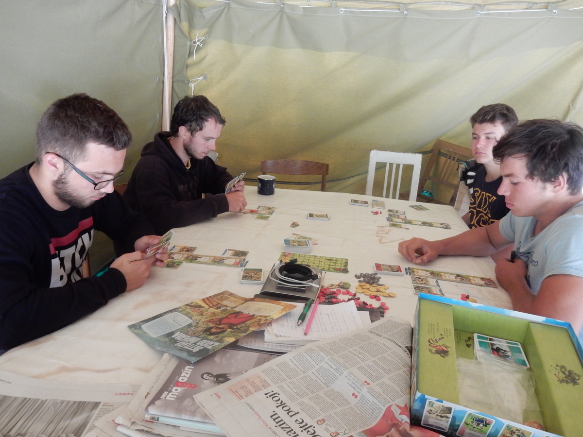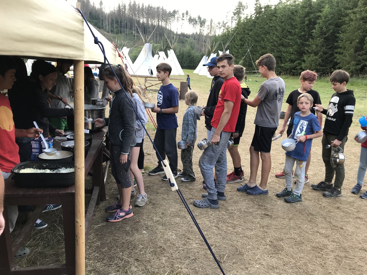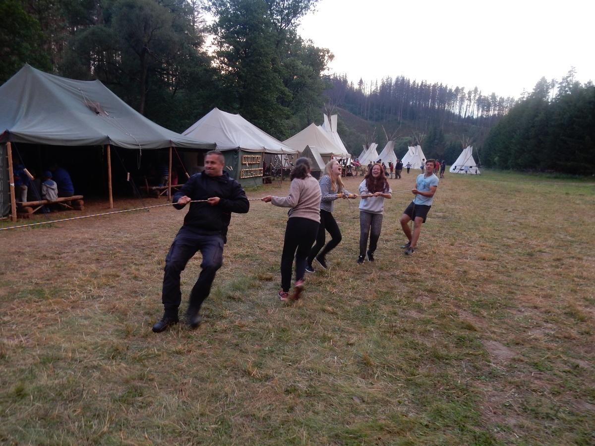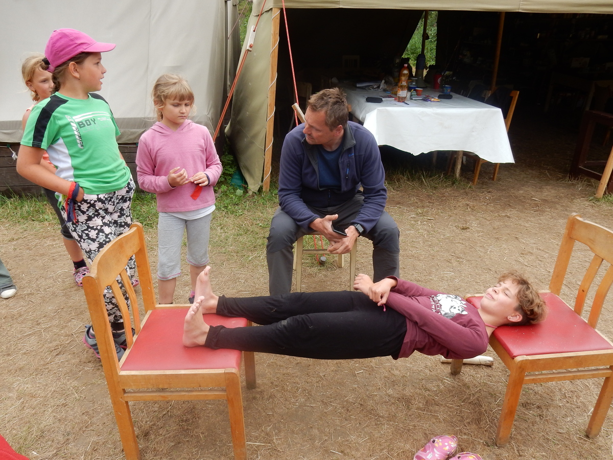 Dnešním dnem se tábor přehoupnul do své druhé poloviny. Dopoledne měli starší, mladší i nejmladší etapy, odpoledne už to skoro vypadalo na bojovku (chvíli vykouklo i sluníčko), nakonec ale zase zvítězil déšť. Přijelo několik návštěv. Večerním program byl po družinkách, většina táborníků se věnovala stolním hrám. Zítra je neděle a opustí nás Svištíci.