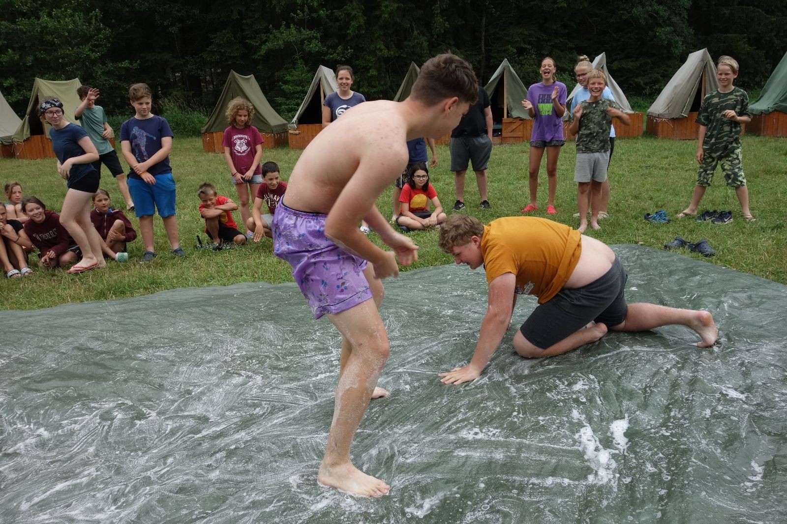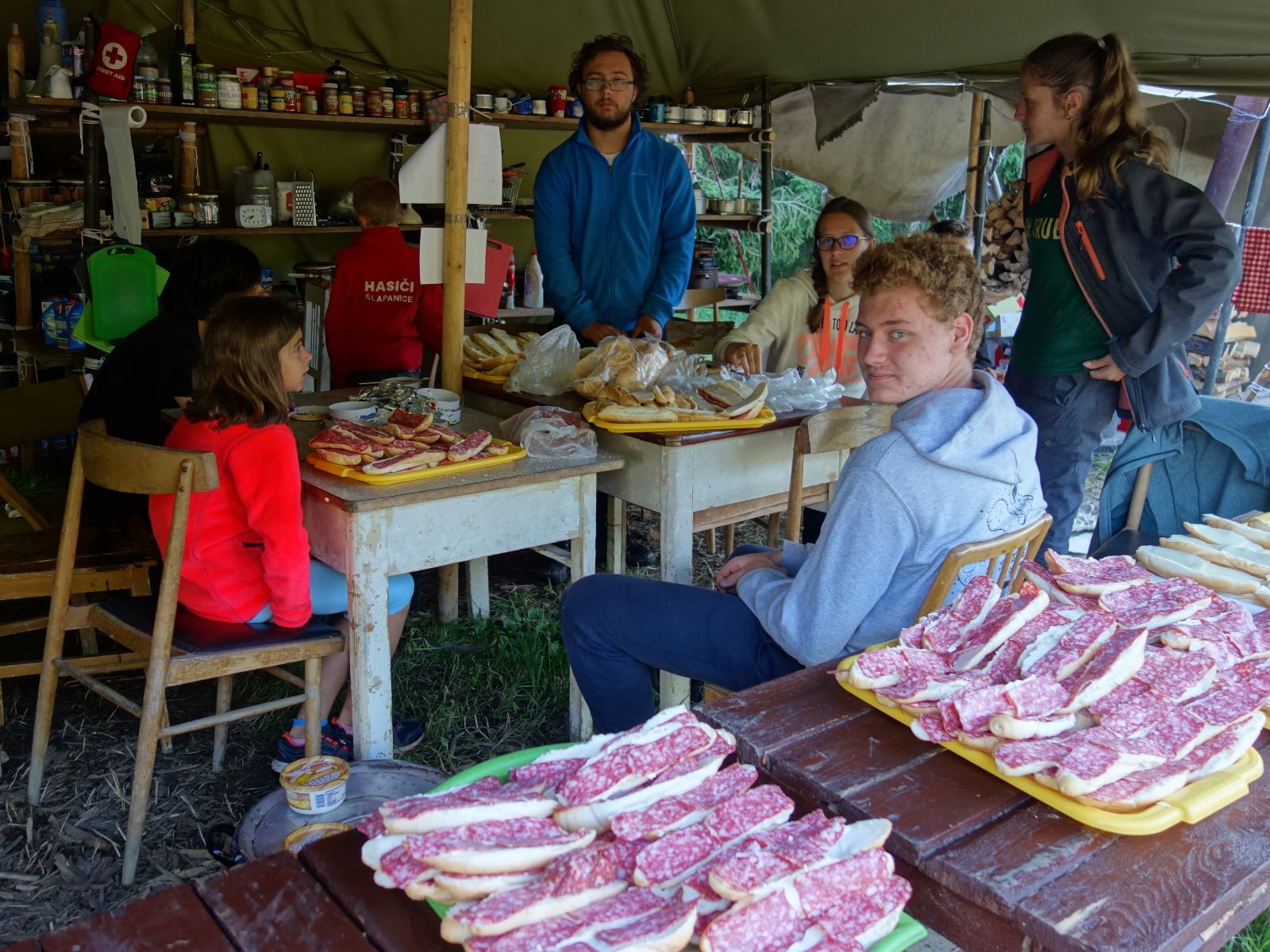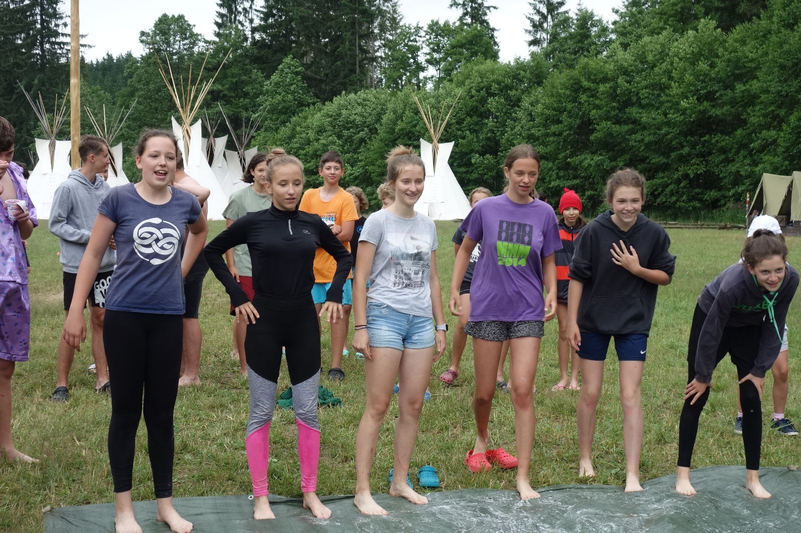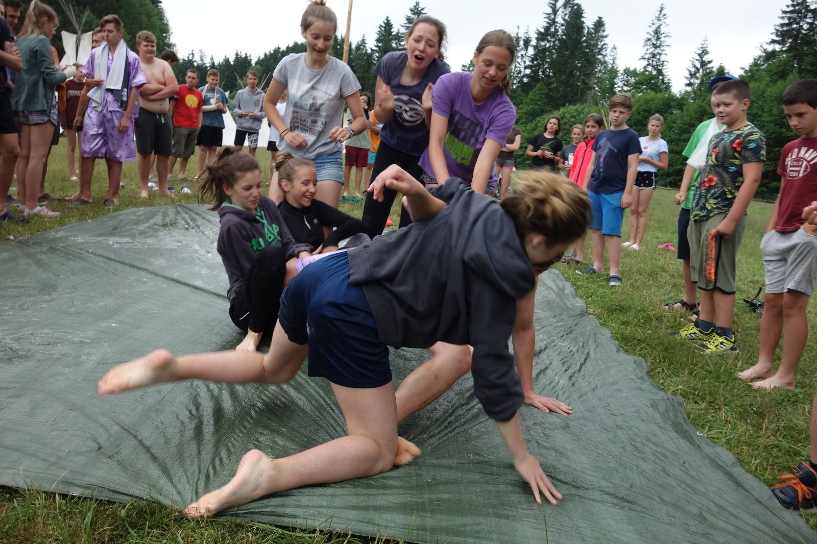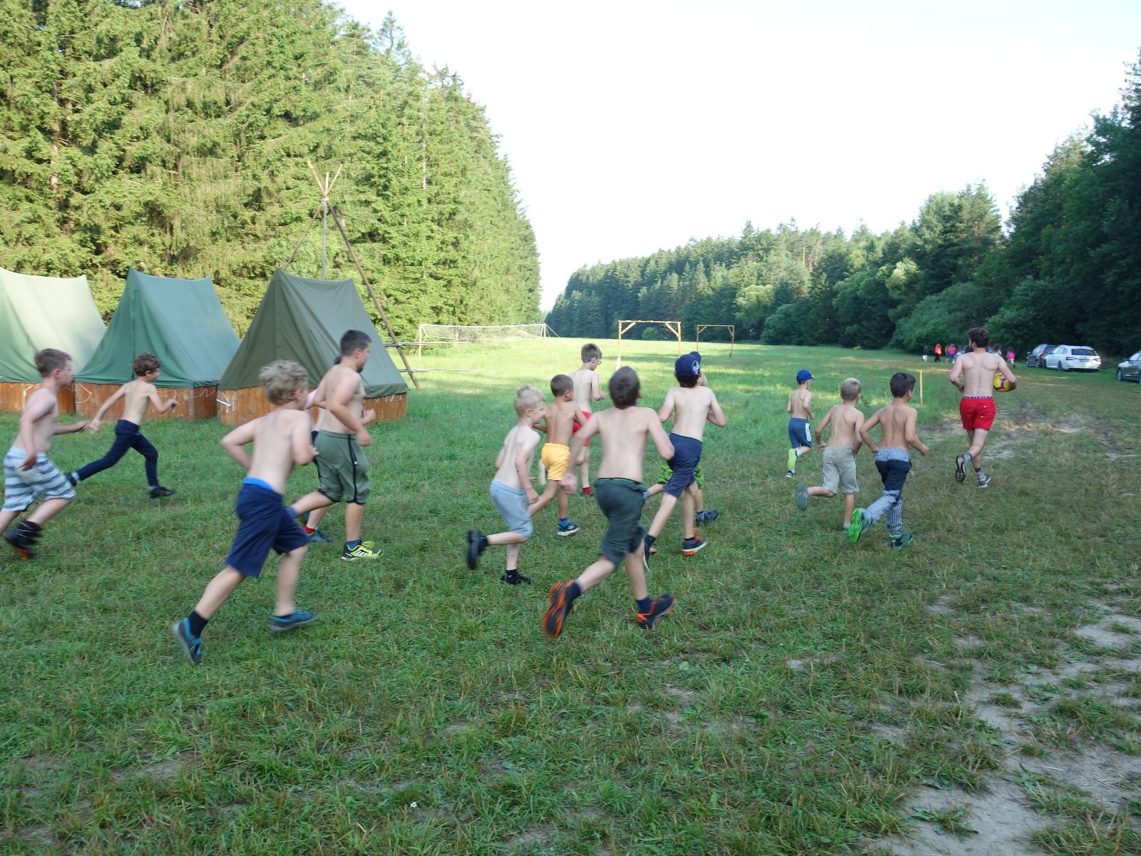 Noční přepad nám opět trošku zvětšil táborový spánkový deficit, ale co, zážitek to byl. Den se rozjíždí piánko – budíček, rozcvička, snídaně, bodování úklidu… A pak: souboje na mýdlové ploše. To je kultovní oddílová soutěž, kterou si obzvláště starší neskutečně užívají. Mladší mezi tím hrají hru v lese. Na oběd máme těstoviny s kečupem a sýrem, po poledním klidu následuje družinový program. Kulinářské zážitky, cesty do okolí tábora, koupání v přehradě, plavba na loďkách na rybníku…co družinka to dobrý nápad. Večer po sněmu zkoušíme novinku – stolní hry. Každý vedoucí má nějakou hru na starost a zájemci si můžou přijít zahrát. Vypadá to, že novinka se osvědčila.