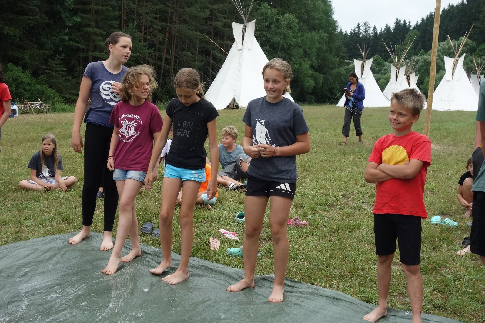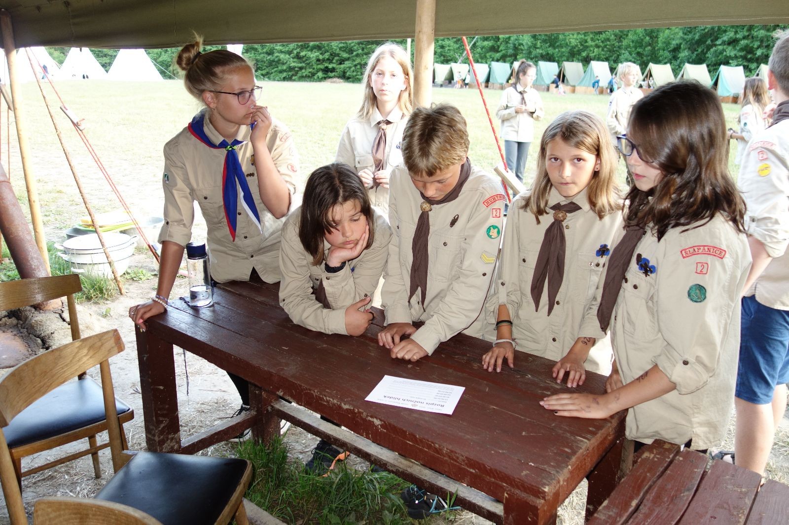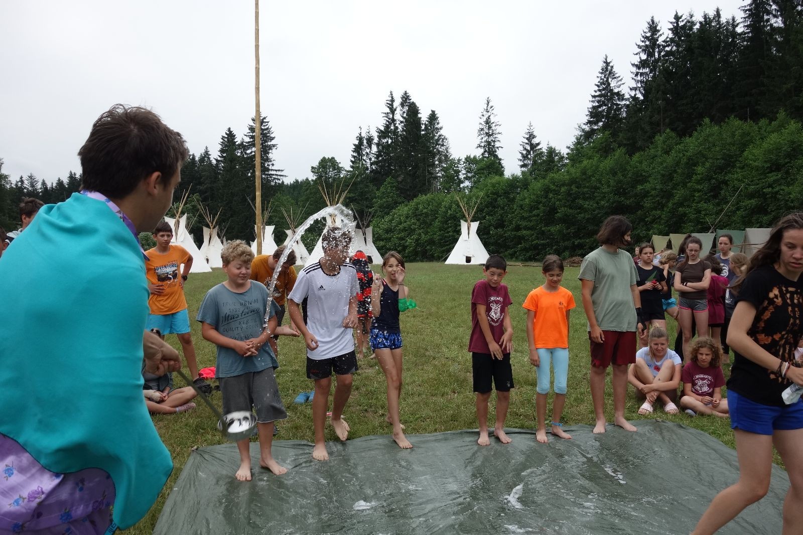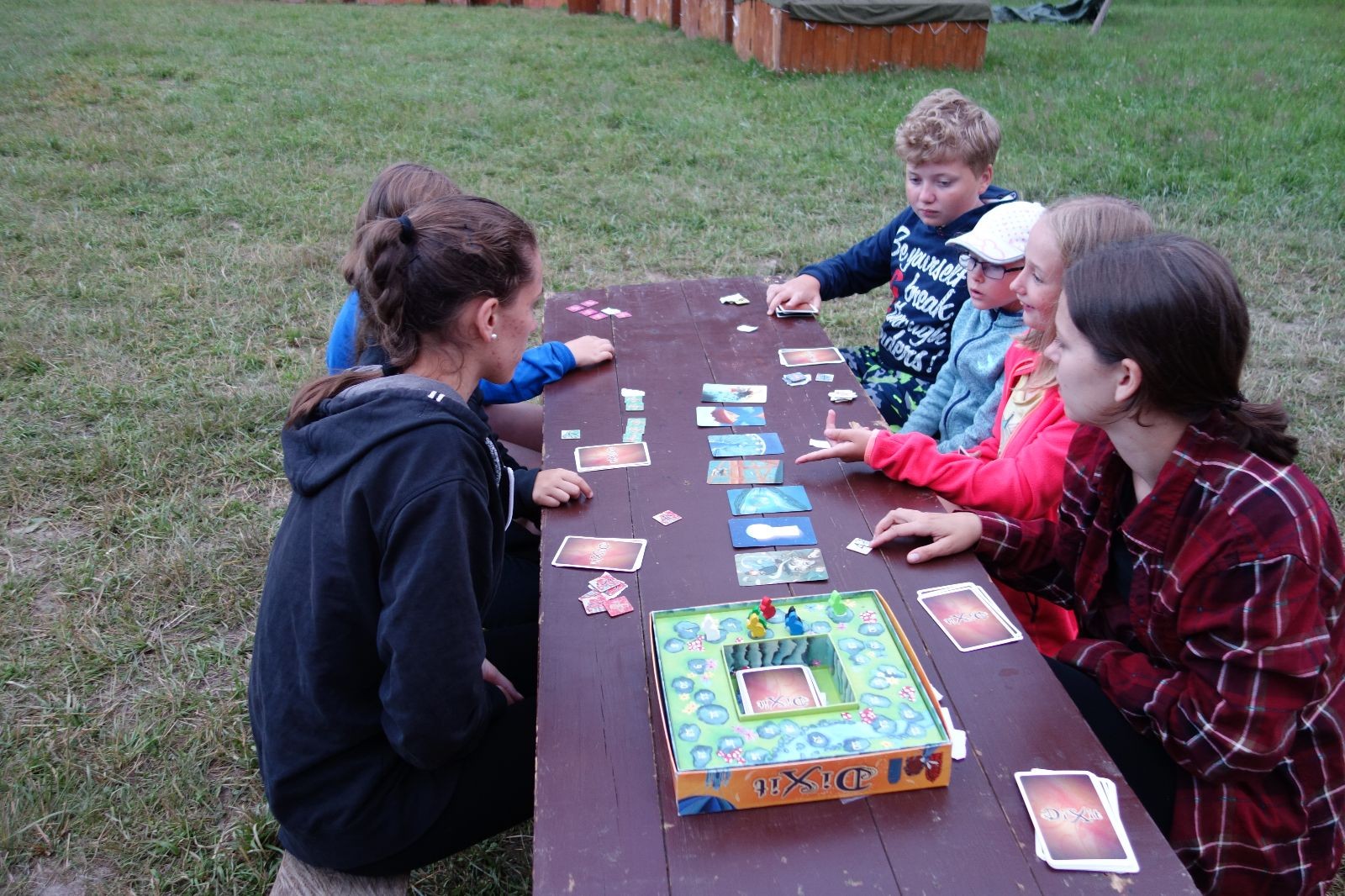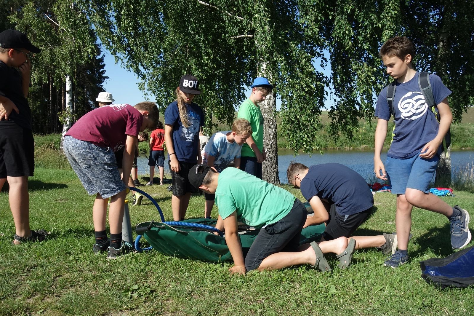 Noční přepad nám opět trošku zvětšil táborový spánkový deficit, ale co, zážitek to byl. Den se rozjíždí piánko – budíček, rozcvička, snídaně, bodování úklidu… A pak: souboje na mýdlové ploše. To je kultovní oddílová soutěž, kterou si obzvláště starší neskutečně užívají. Mladší mezi tím hrají hru v lese. Na oběd máme těstoviny s kečupem a sýrem, po poledním klidu následuje družinový program. Kulinářské zážitky, cesty do okolí tábora, koupání v přehradě, plavba na loďkách na rybníku…co družinka to dobrý nápad. Večer po sněmu zkoušíme novinku – stolní hry. Každý vedoucí má nějakou hru na starost a zájemci si můžou přijít zahrát. Vypadá to, že novinka se osvědčila.