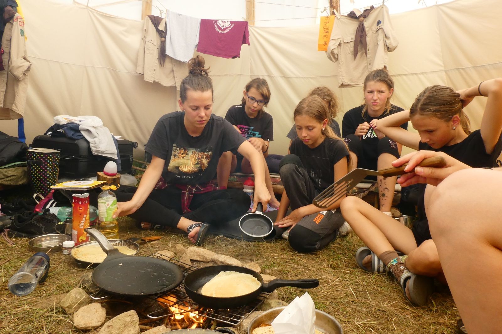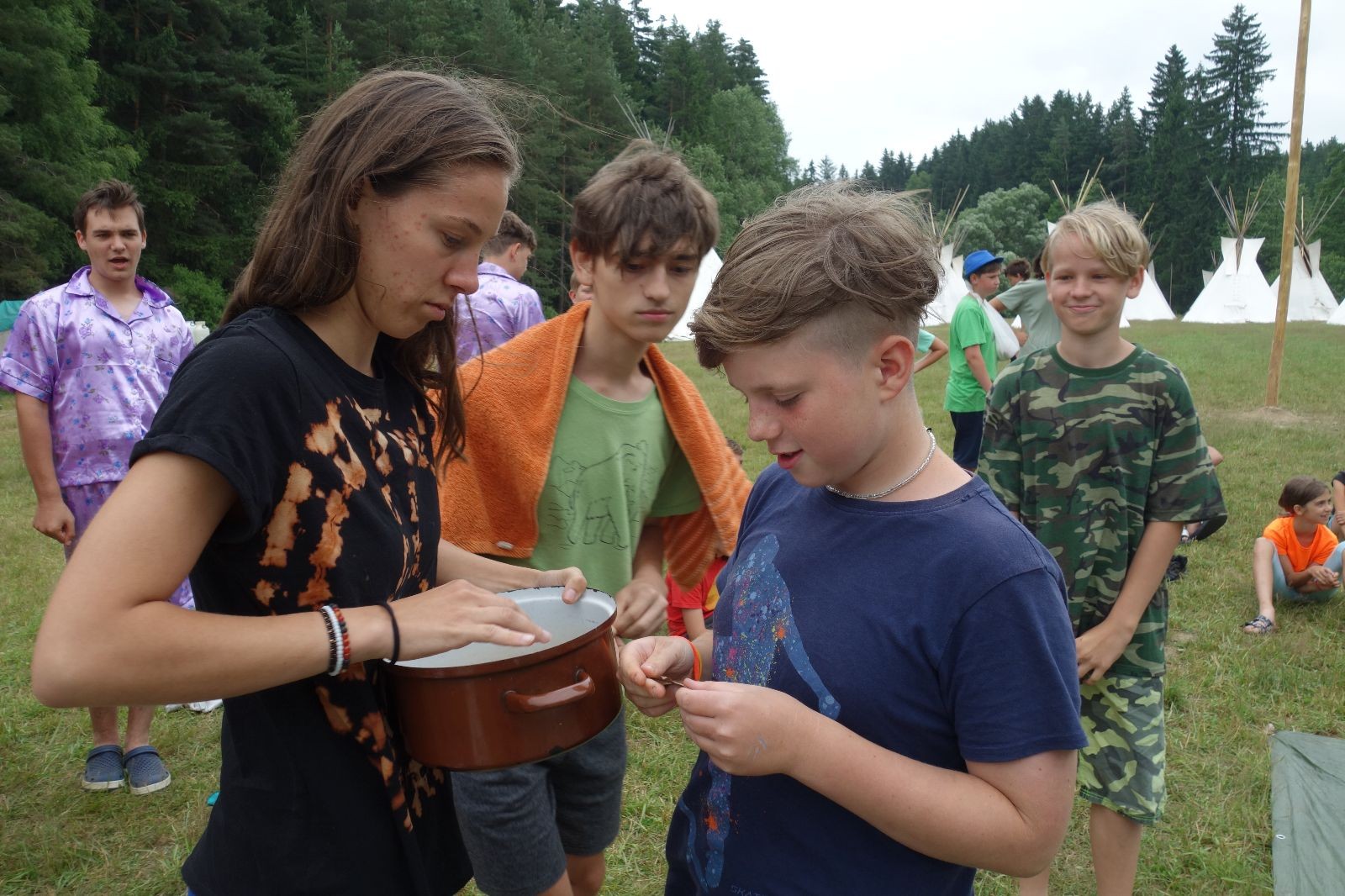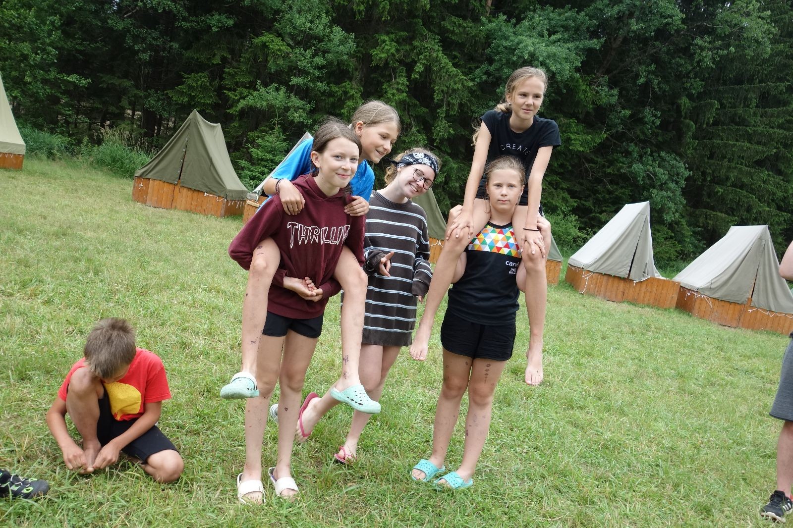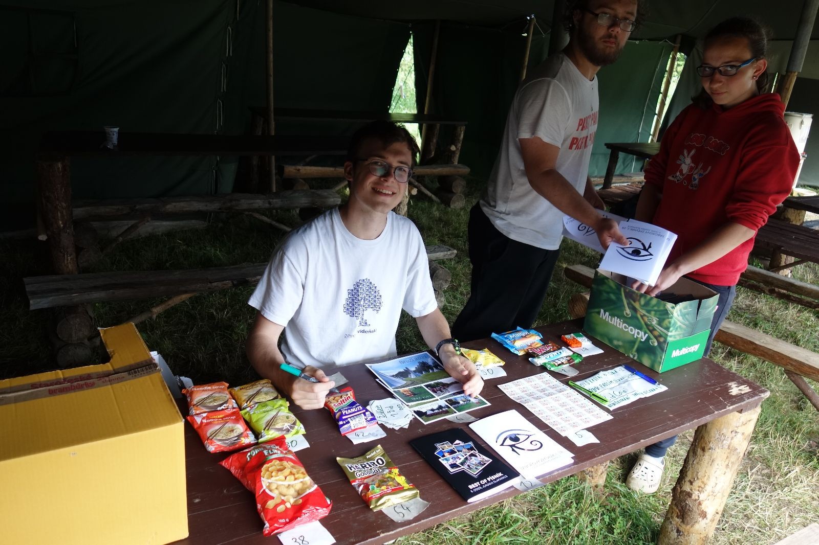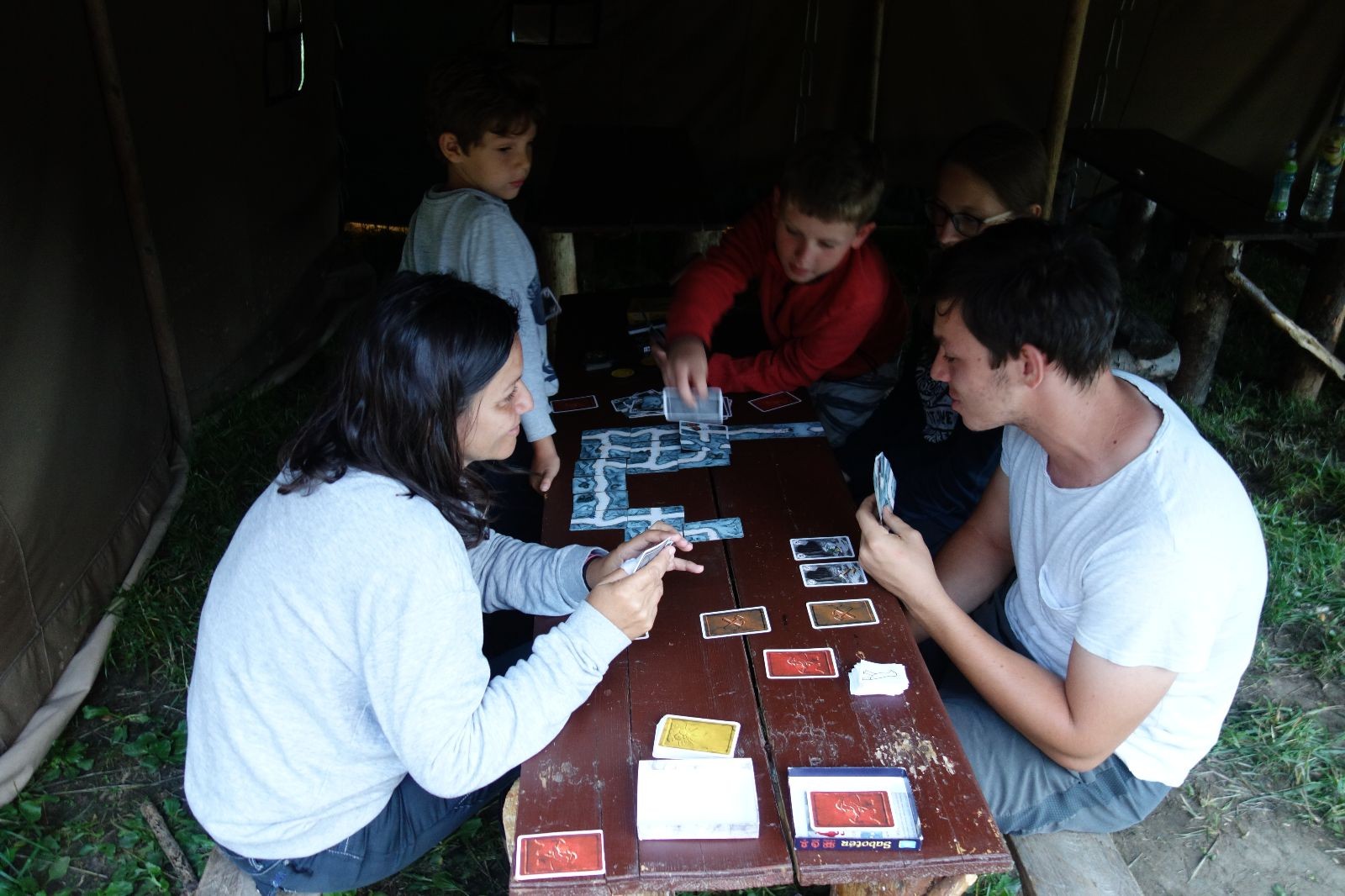 Noční přepad nám opět trošku zvětšil táborový spánkový deficit, ale co, zážitek to byl. Den se rozjíždí piánko – budíček, rozcvička, snídaně, bodování úklidu… A pak: souboje na mýdlové ploše. To je kultovní oddílová soutěž, kterou si obzvláště starší neskutečně užívají. Mladší mezi tím hrají hru v lese. Na oběd máme těstoviny s kečupem a sýrem, po poledním klidu následuje družinový program. Kulinářské zážitky, cesty do okolí tábora, koupání v přehradě, plavba na loďkách na rybníku…co družinka to dobrý nápad. Večer po sněmu zkoušíme novinku – stolní hry. Každý vedoucí má nějakou hru na starost a zájemci si můžou přijít zahrát. Vypadá to, že novinka se osvědčila.