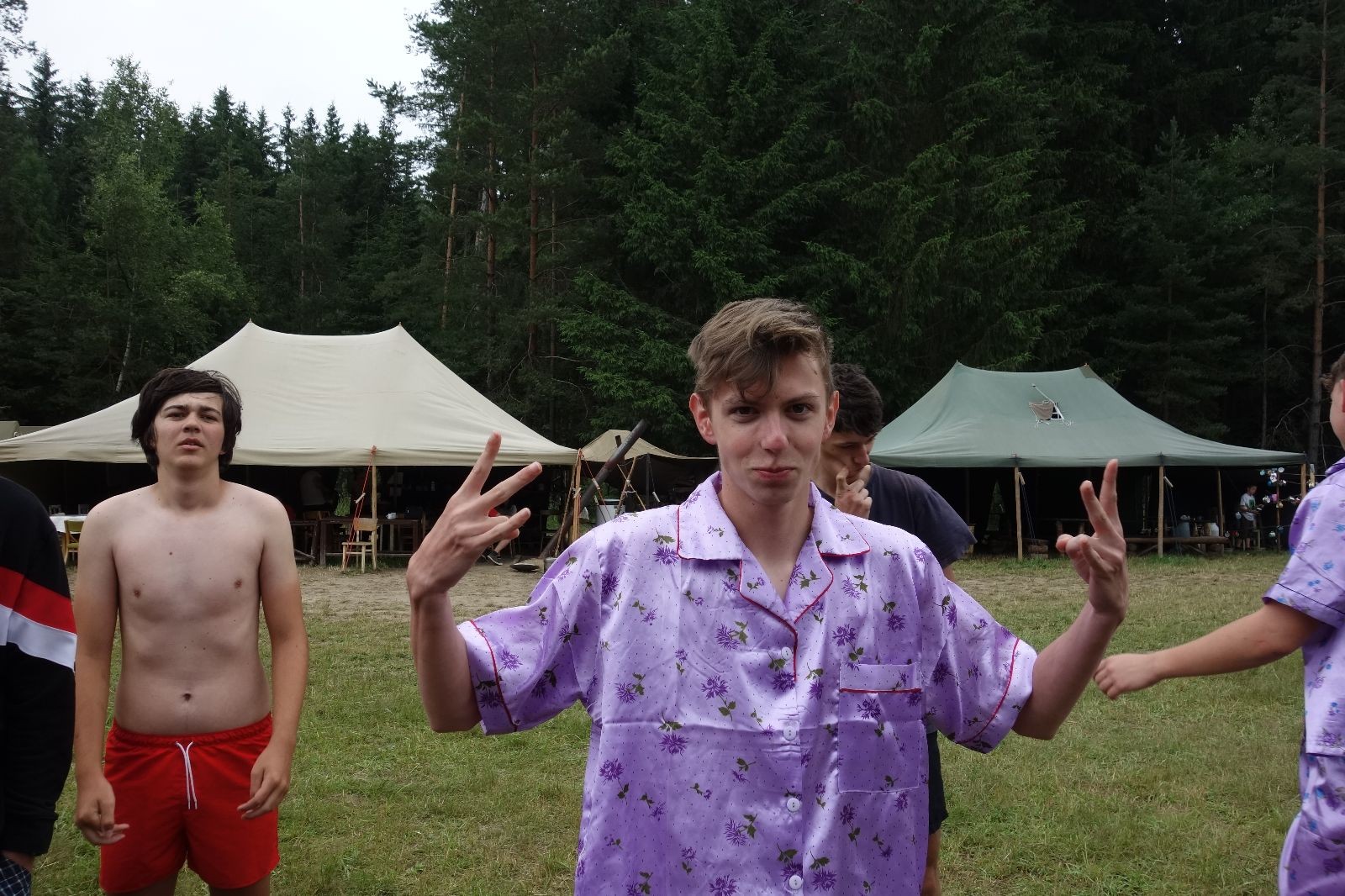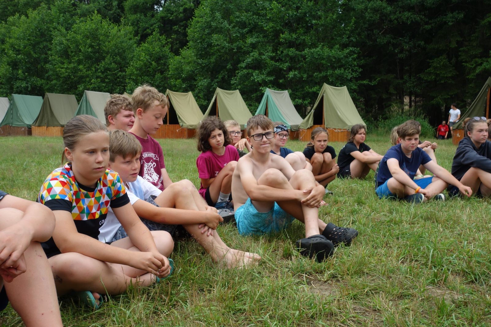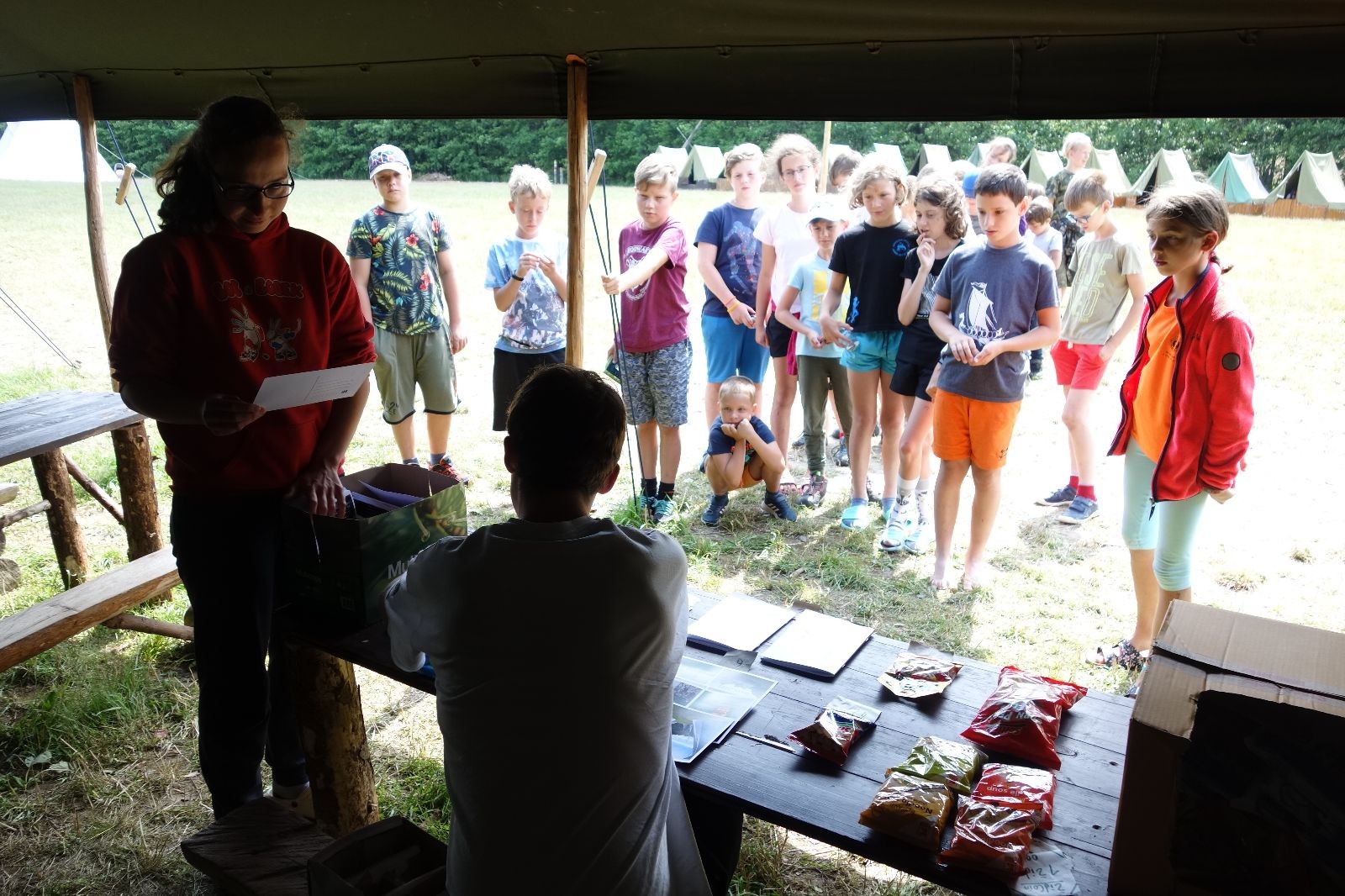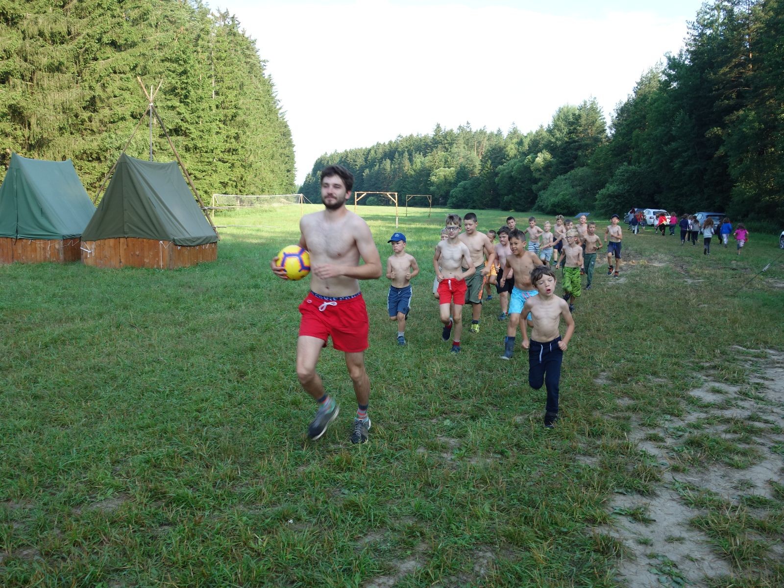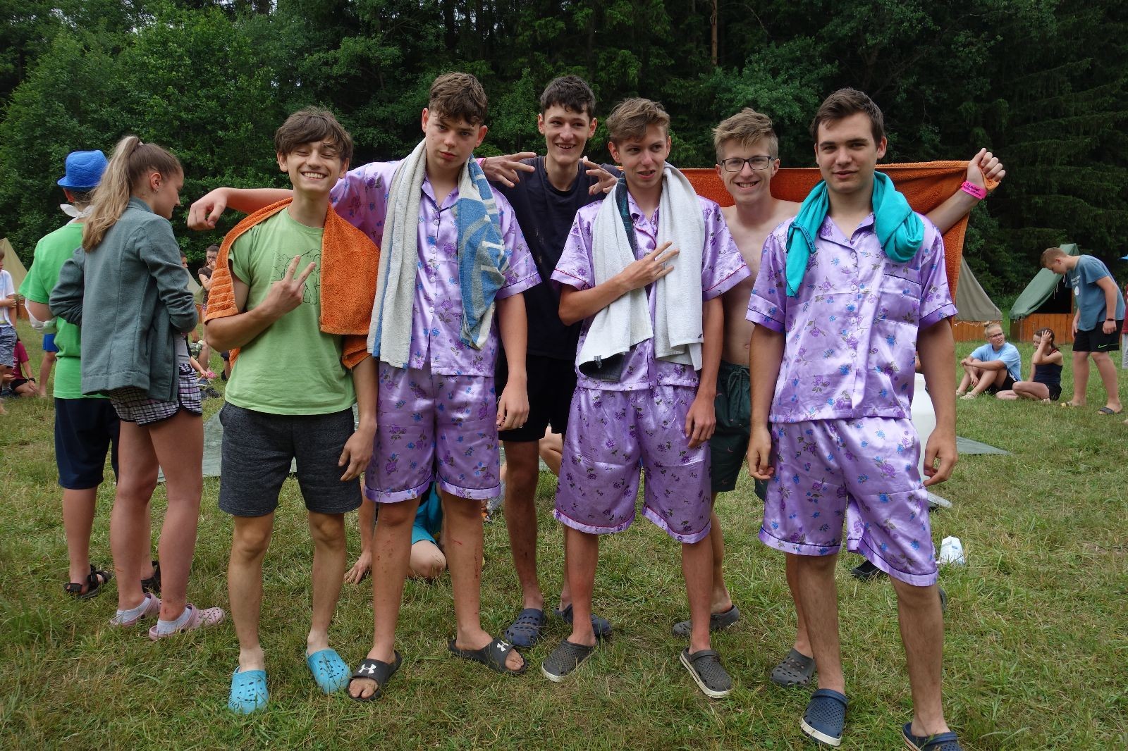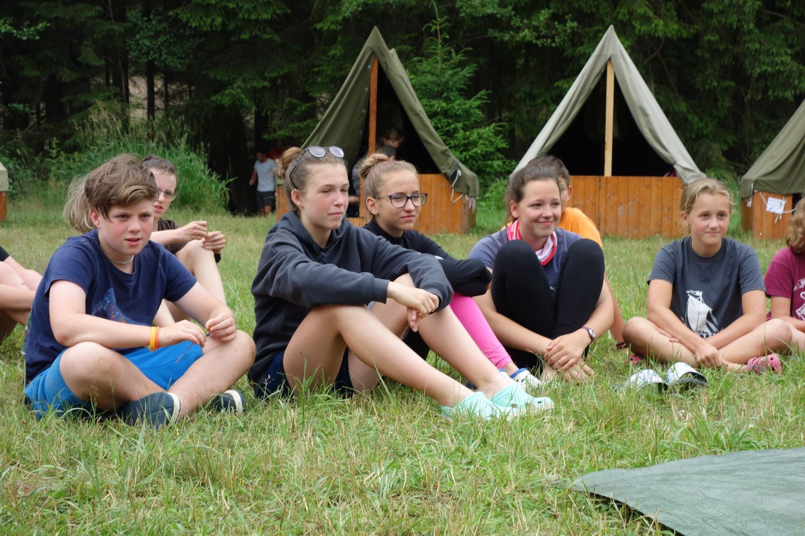 Noční přepad nám opět trošku zvětšil táborový spánkový deficit, ale co, zážitek to byl. Den se rozjíždí piánko – budíček, rozcvička, snídaně, bodování úklidu… A pak: souboje na mýdlové ploše. To je kultovní oddílová soutěž, kterou si obzvláště starší neskutečně užívají. Mladší mezi tím hrají hru v lese. Na oběd máme těstoviny s kečupem a sýrem, po poledním klidu následuje družinový program. Kulinářské zážitky, cesty do okolí tábora, koupání v přehradě, plavba na loďkách na rybníku…co družinka to dobrý nápad. Večer po sněmu zkoušíme novinku – stolní hry. Každý vedoucí má nějakou hru na starost a zájemci si můžou přijít zahrát. Vypadá to, že novinka se osvědčila.