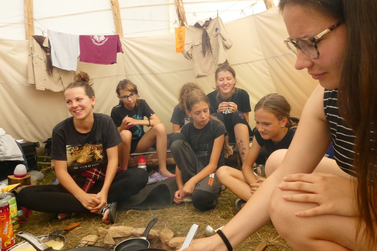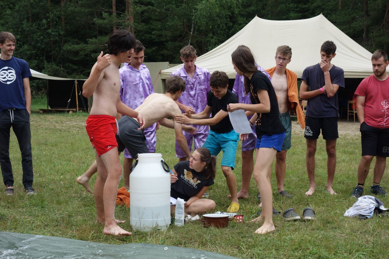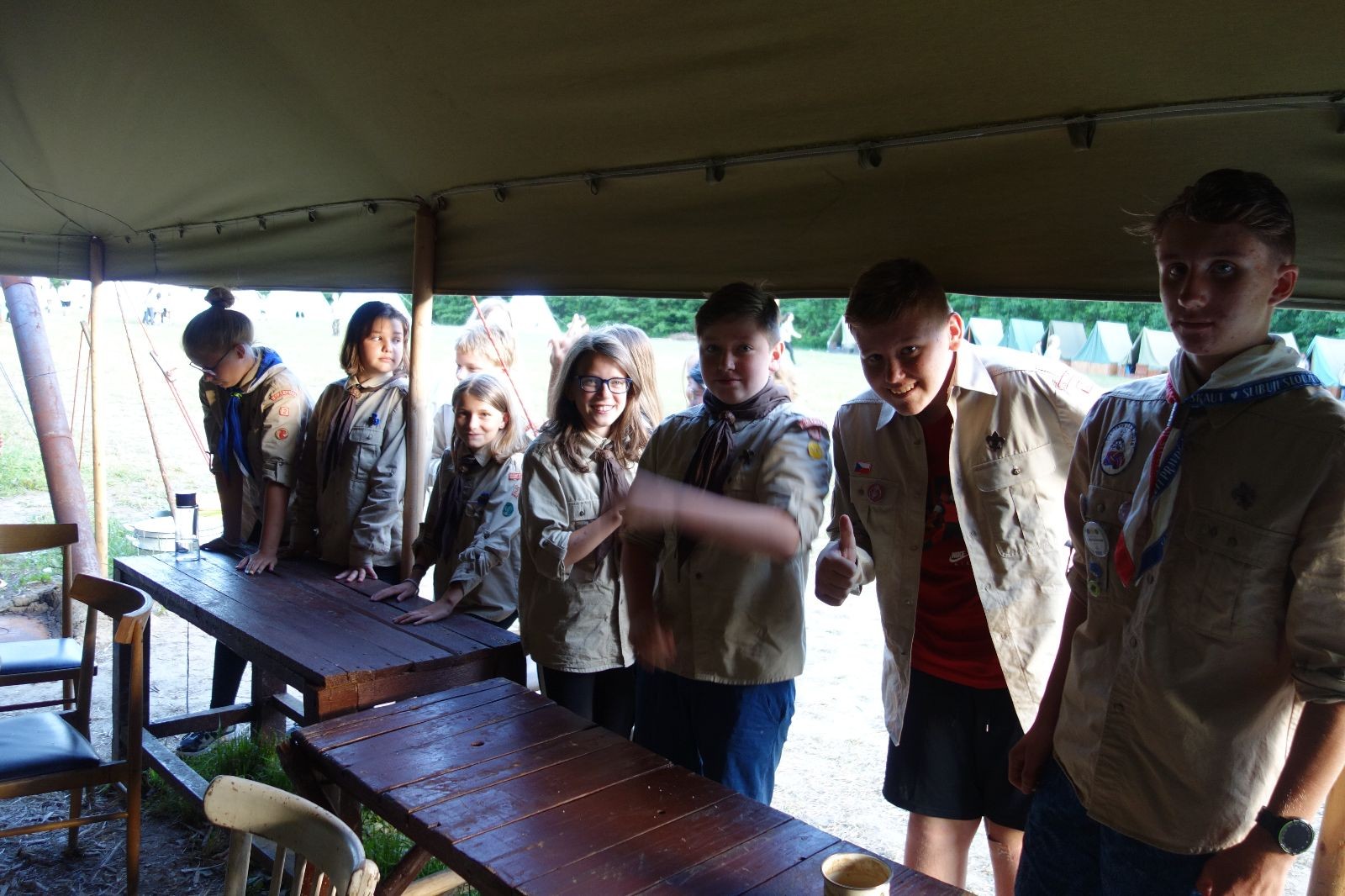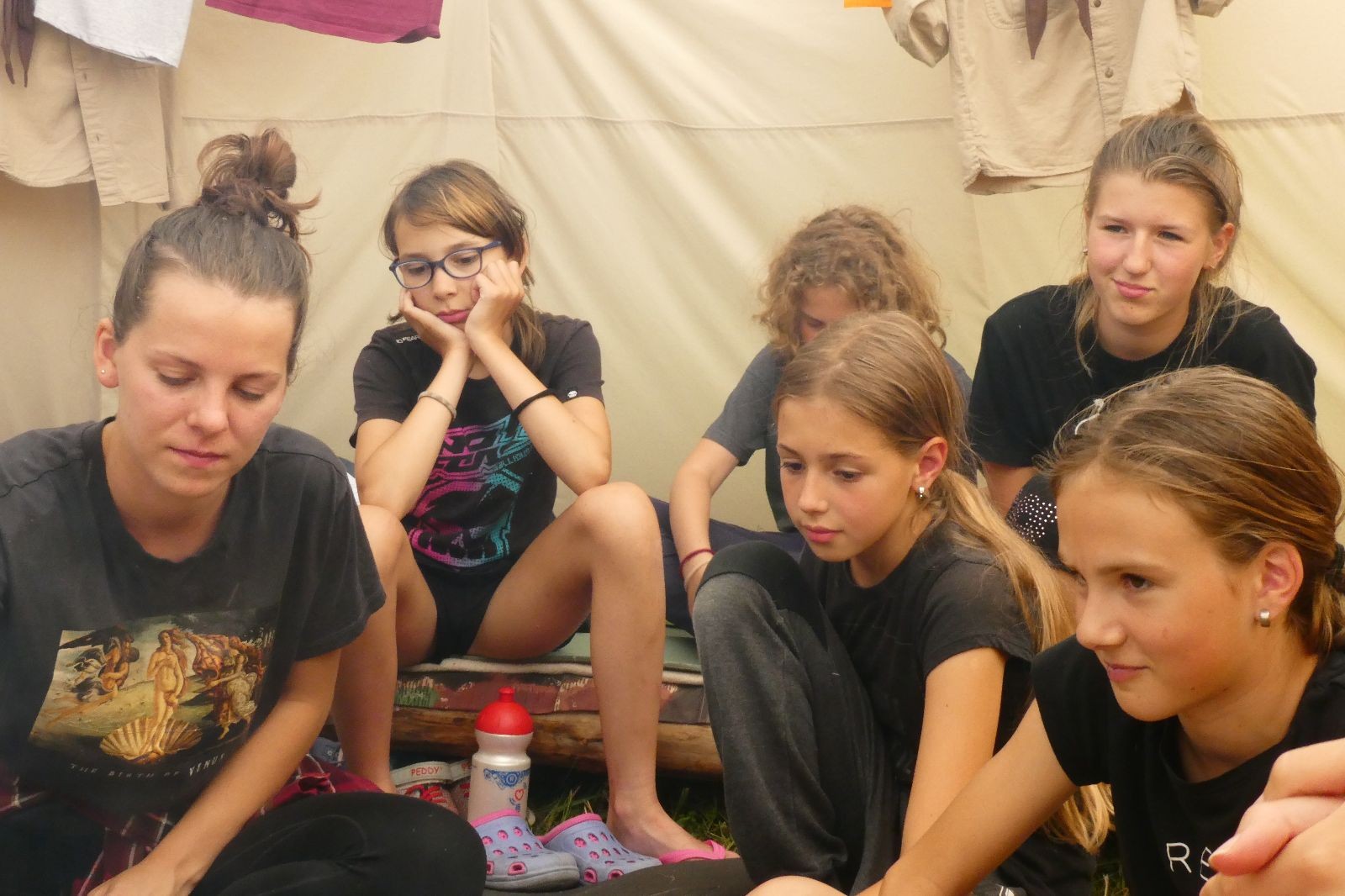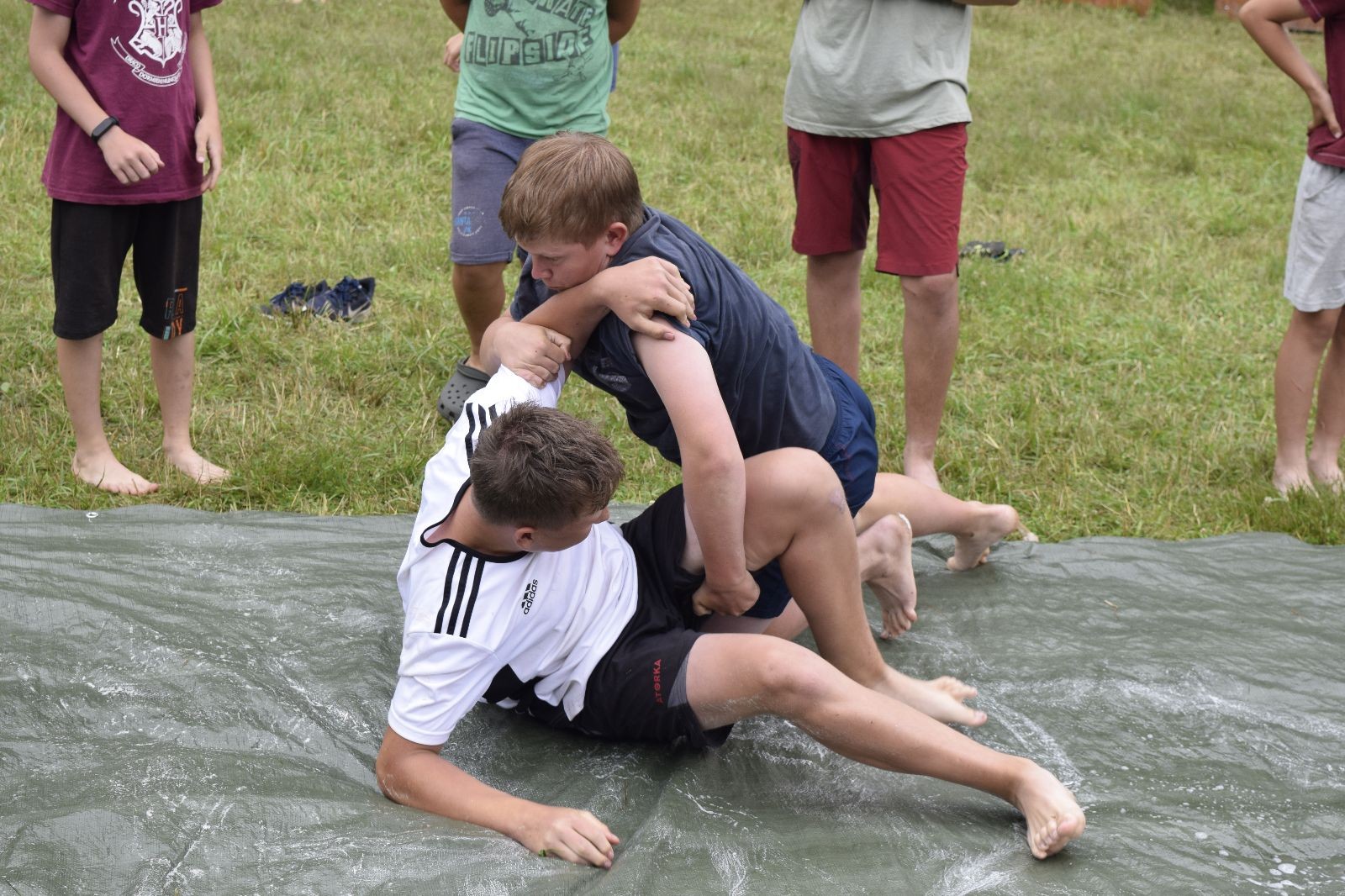 Noční přepad nám opět trošku zvětšil táborový spánkový deficit, ale co, zážitek to byl. Den se rozjíždí piánko – budíček, rozcvička, snídaně, bodování úklidu… A pak: souboje na mýdlové ploše. To je kultovní oddílová soutěž, kterou si obzvláště starší neskutečně užívají. Mladší mezi tím hrají hru v lese. Na oběd máme těstoviny s kečupem a sýrem, po poledním klidu následuje družinový program. Kulinářské zážitky, cesty do okolí tábora, koupání v přehradě, plavba na loďkách na rybníku…co družinka to dobrý nápad. Večer po sněmu zkoušíme novinku – stolní hry. Každý vedoucí má nějakou hru na starost a zájemci si můžou přijít zahrát. Vypadá to, že novinka se osvědčila.